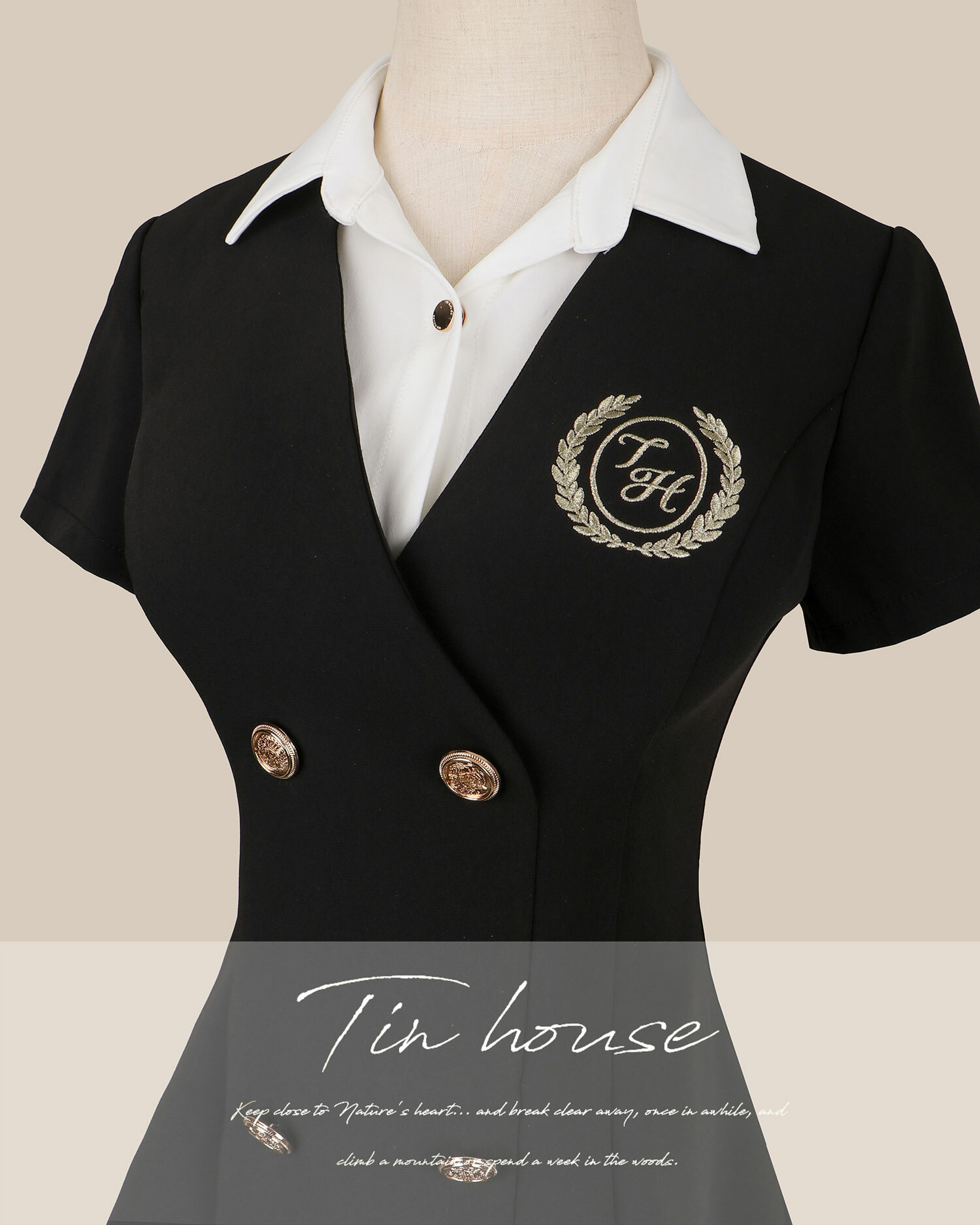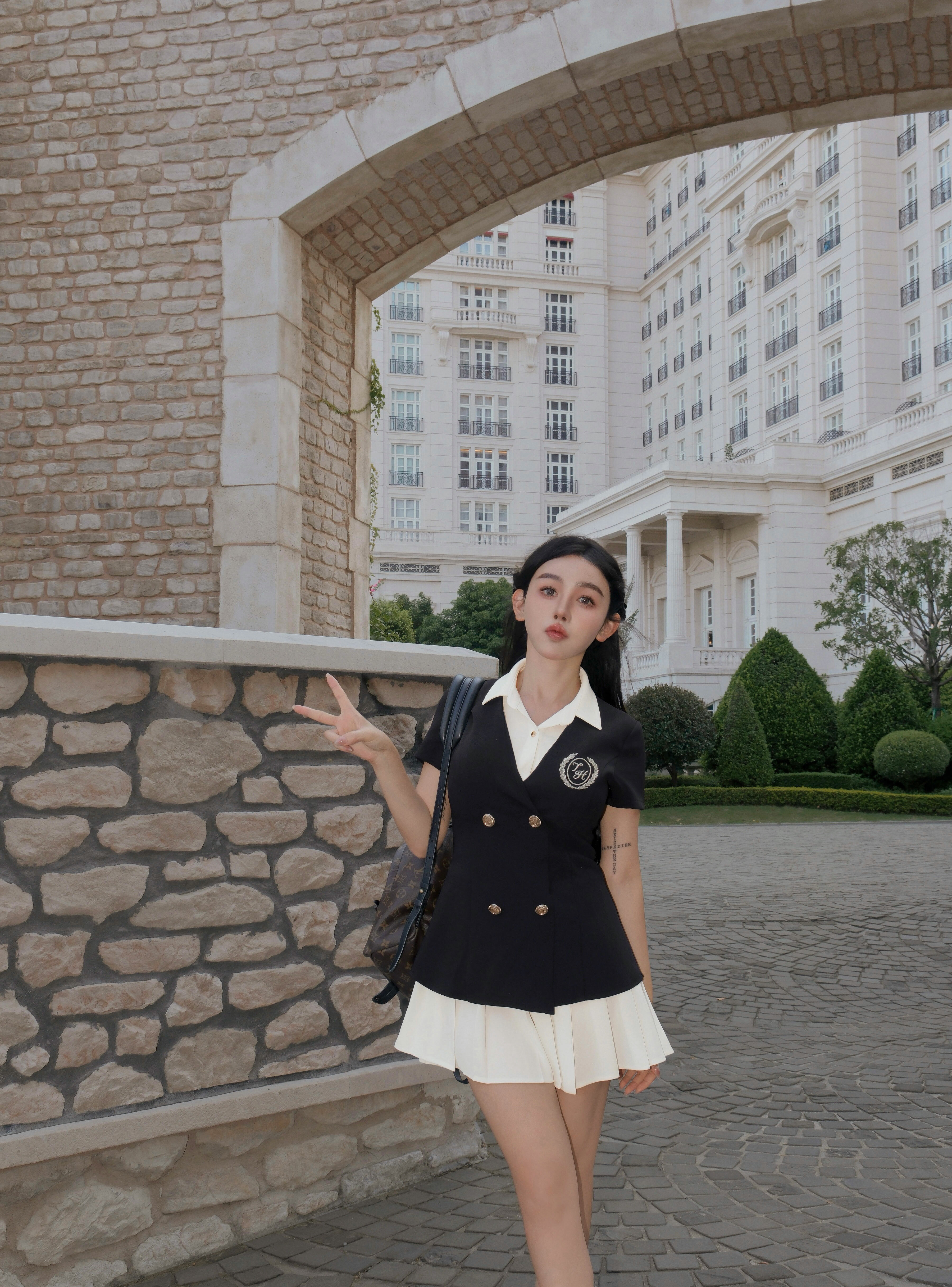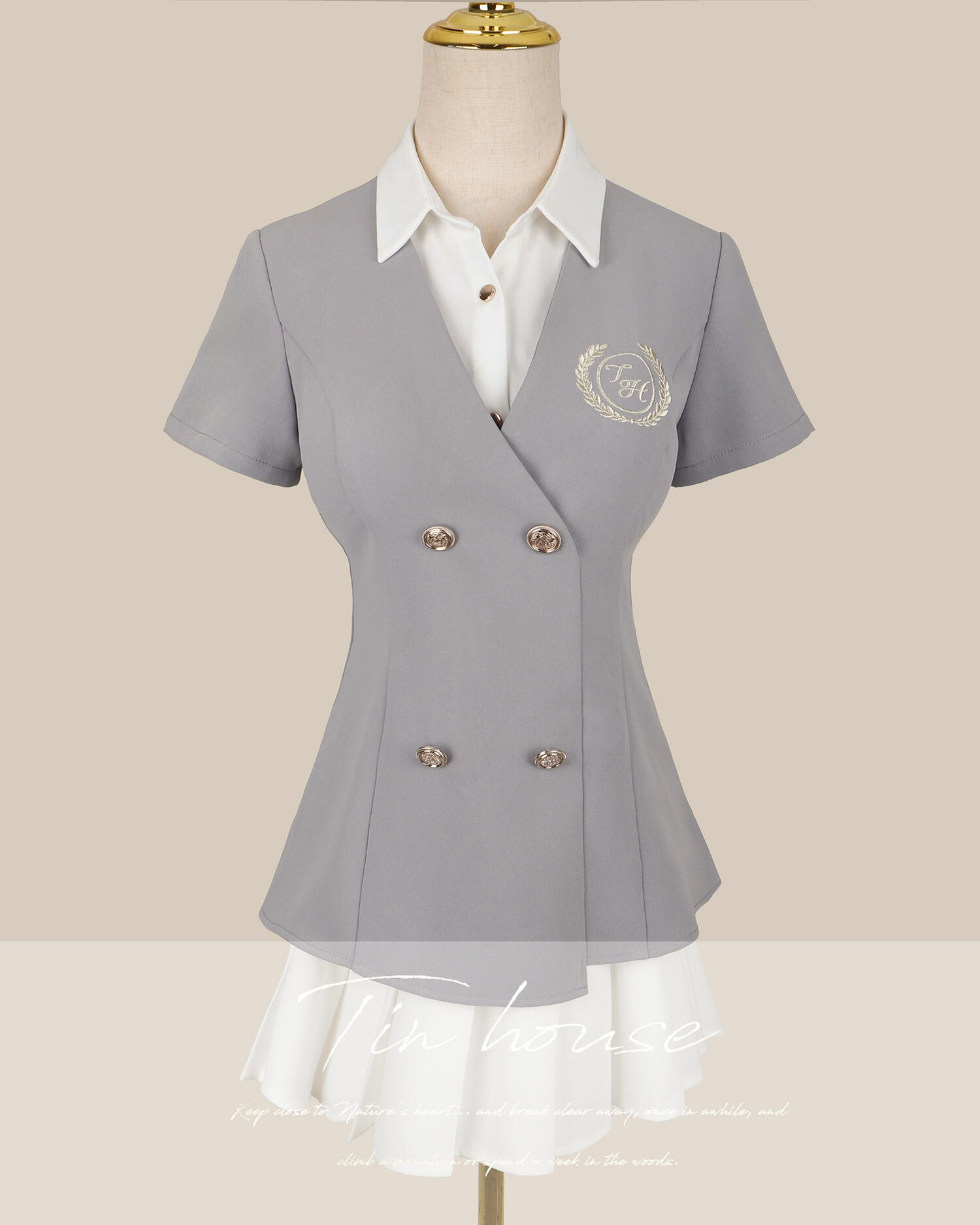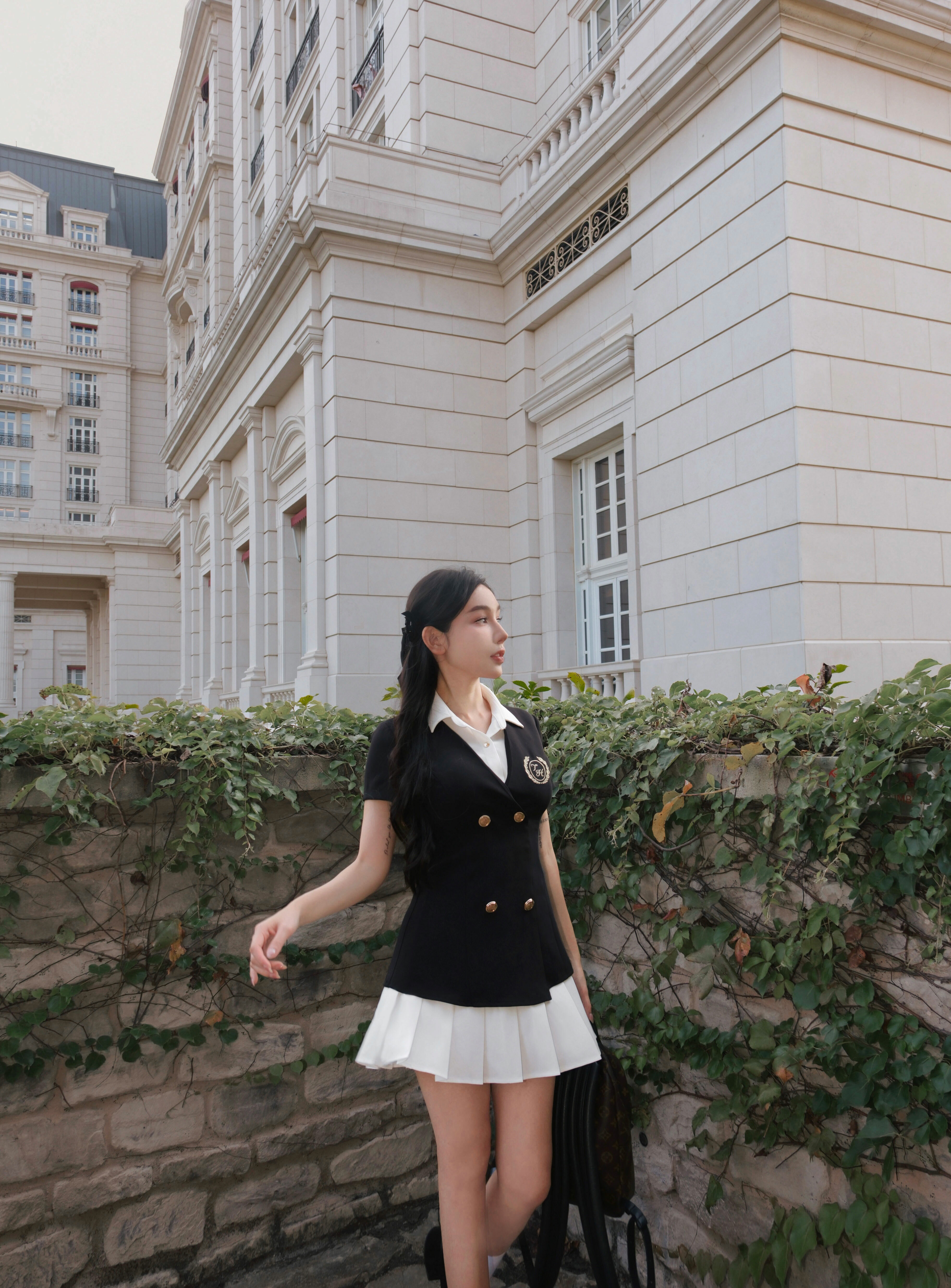 ⭒訂製-學院風刺繡百褶襯衫洋