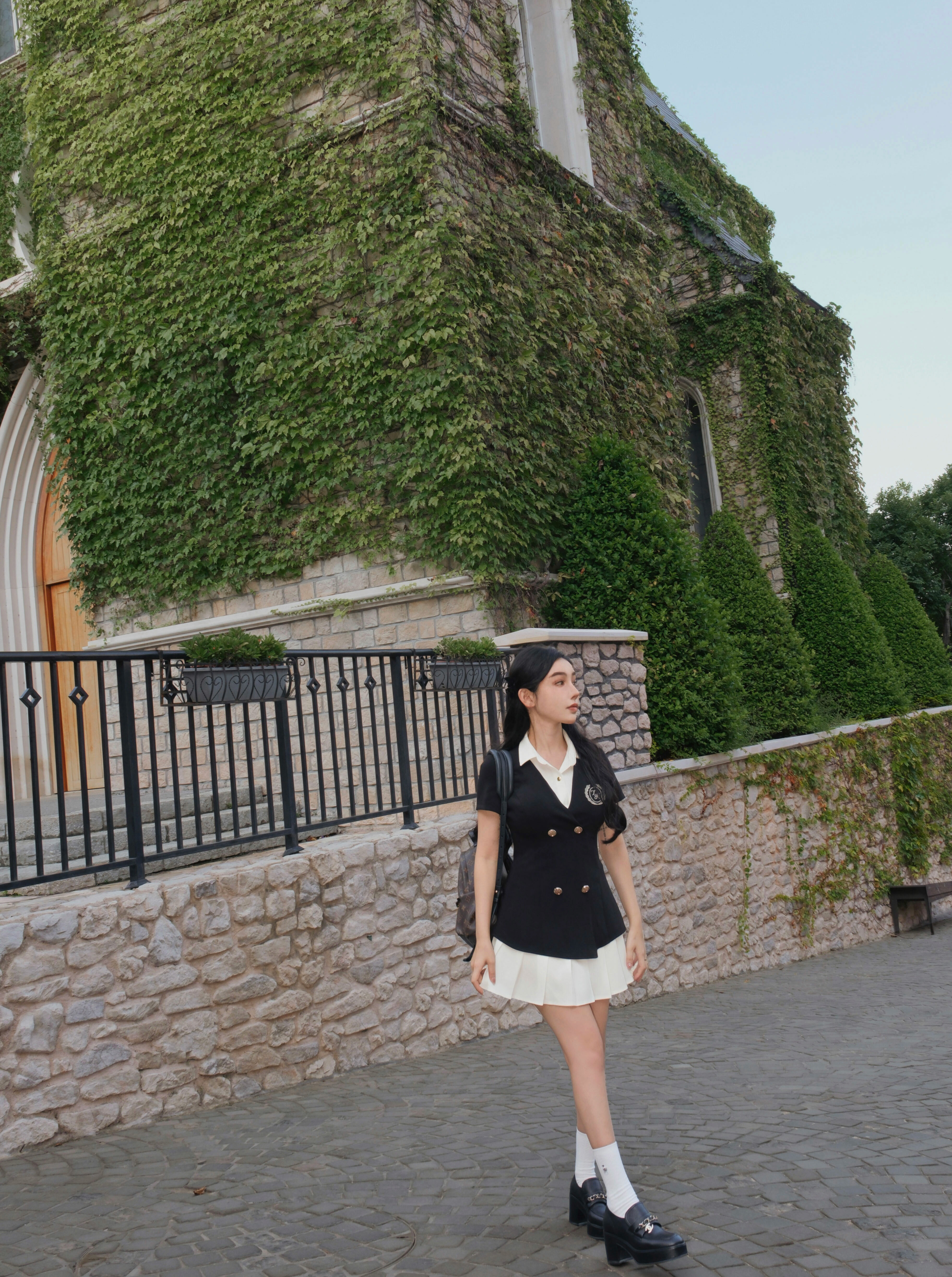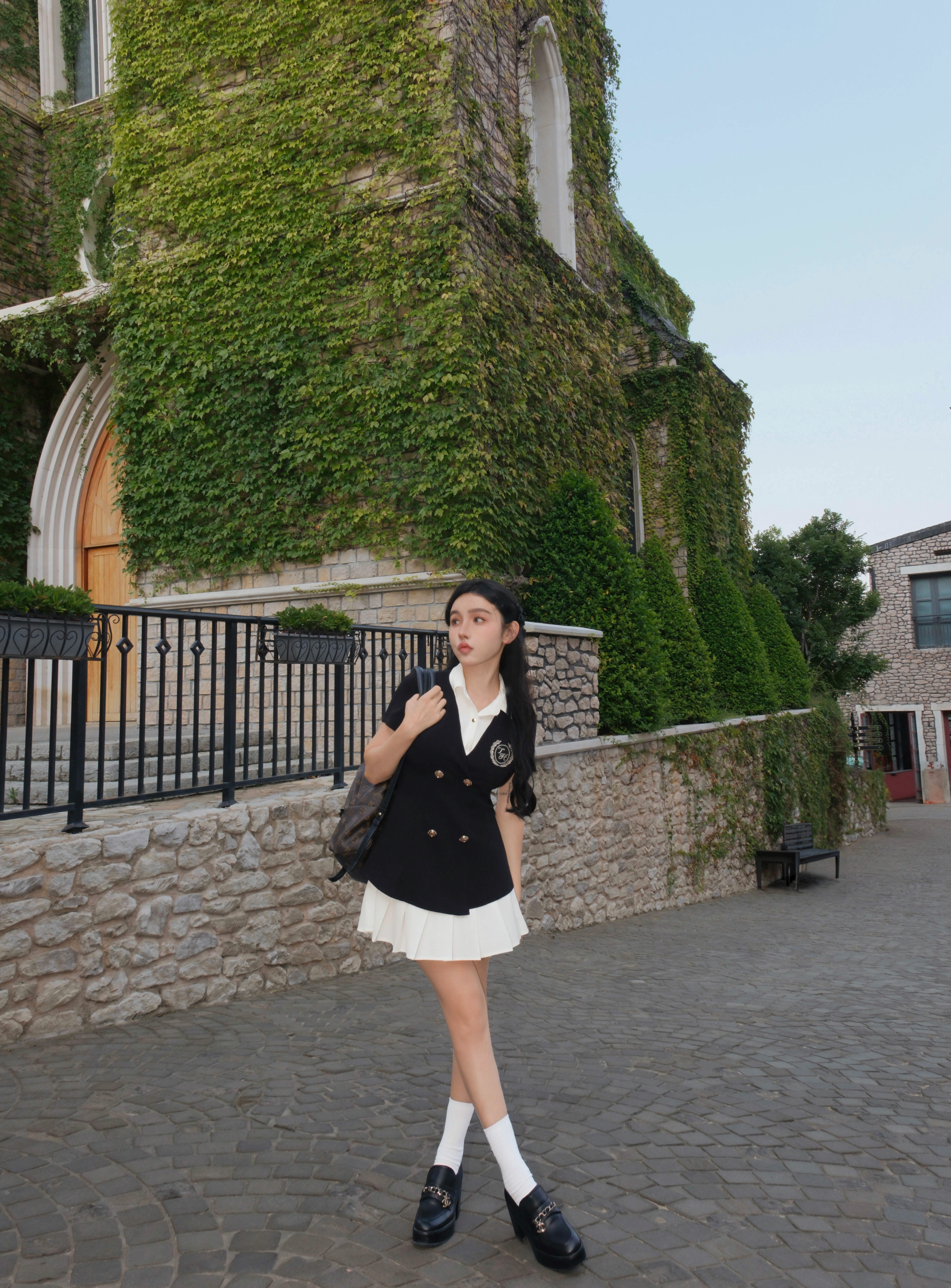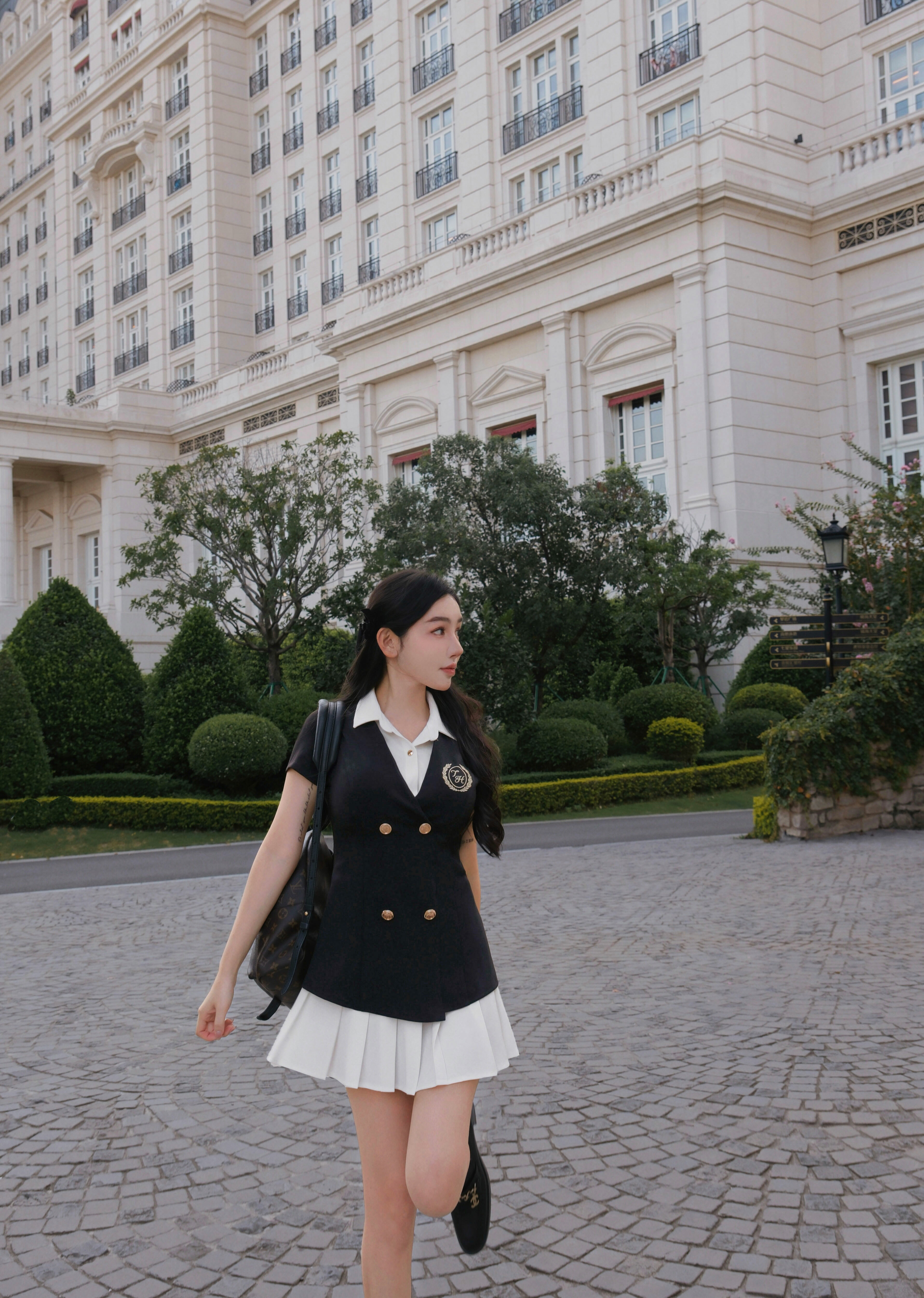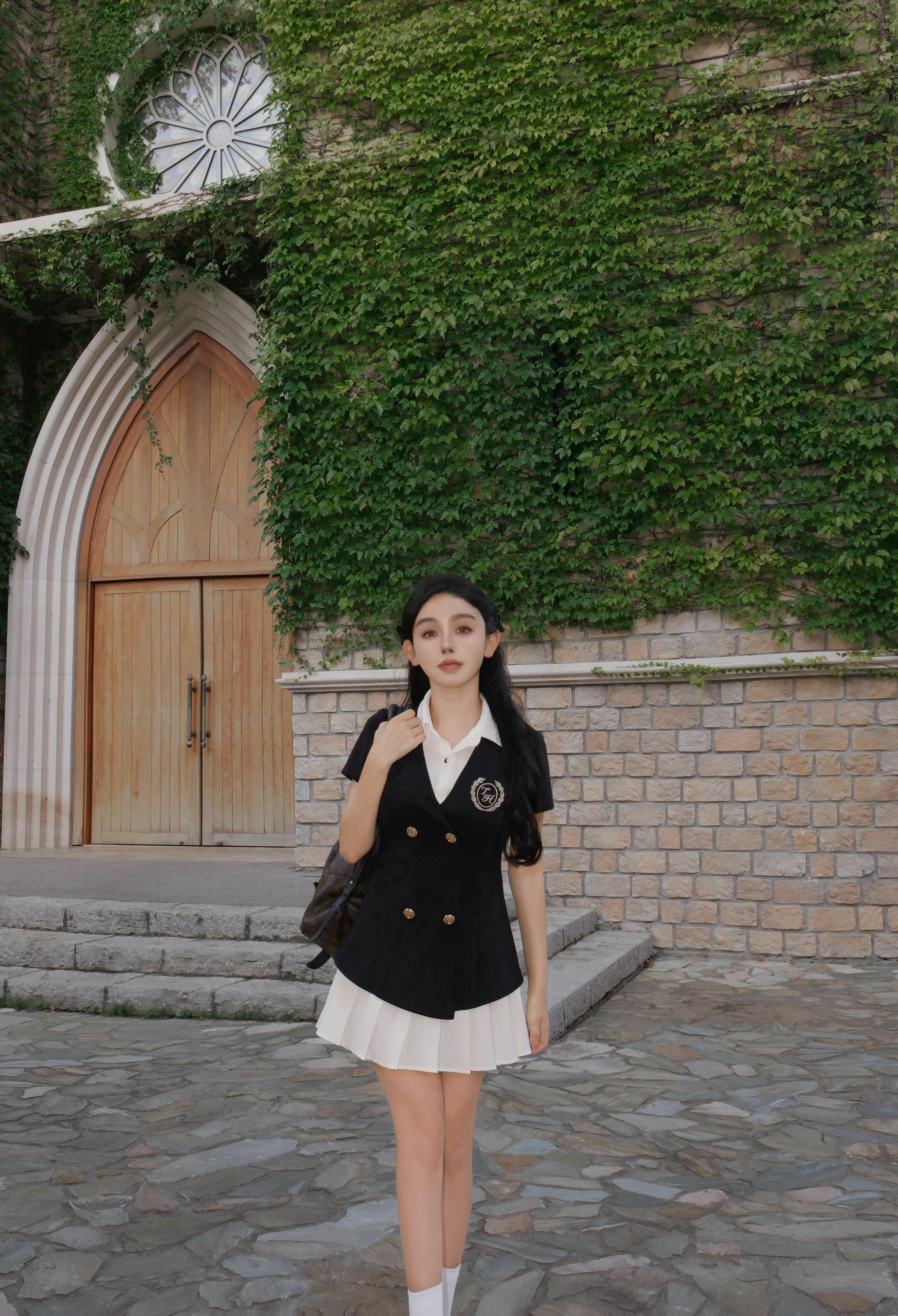 ⭒訂製-學院風刺繡百褶襯衫洋