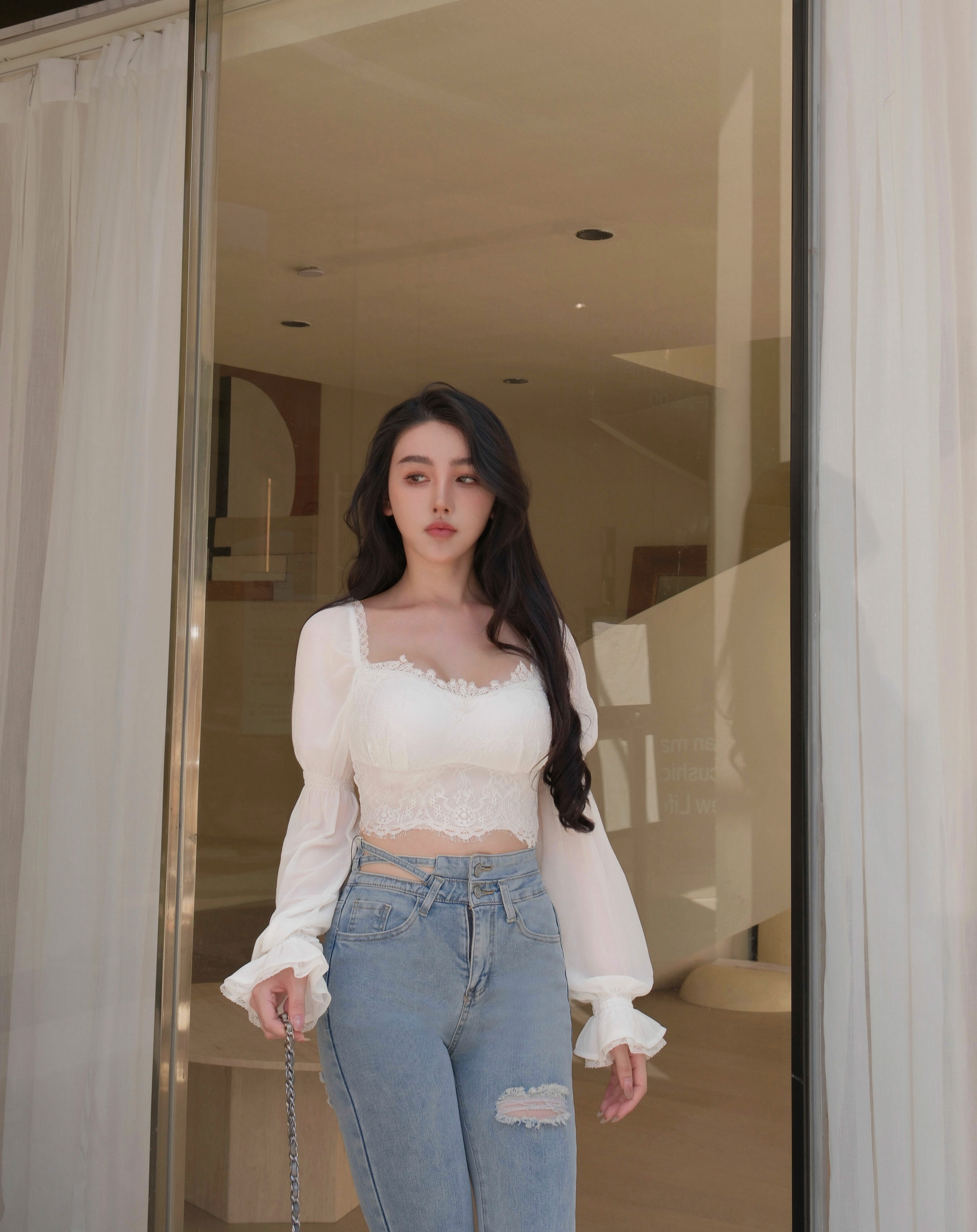 訂製-古典宮廷蕾絲雪紡上衣