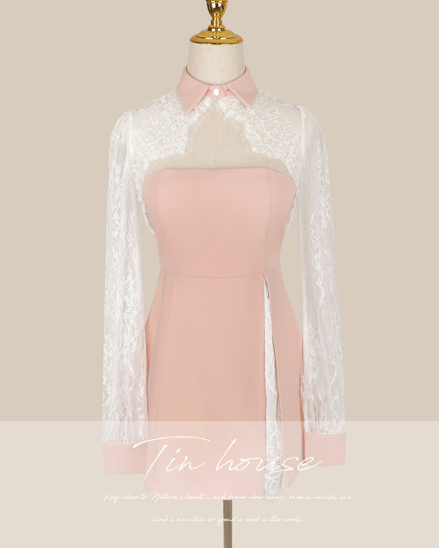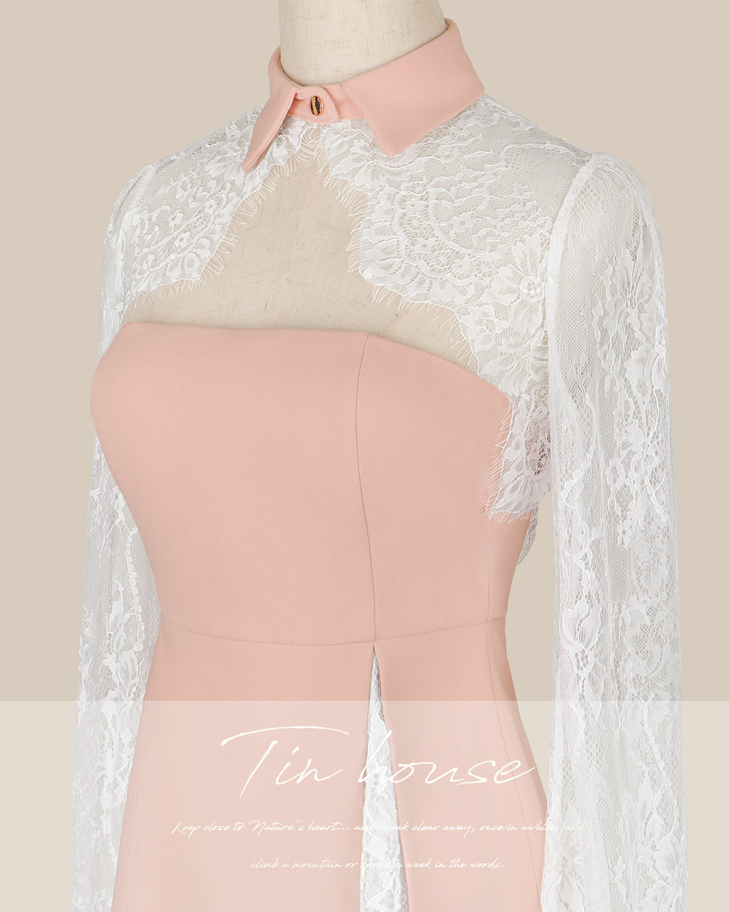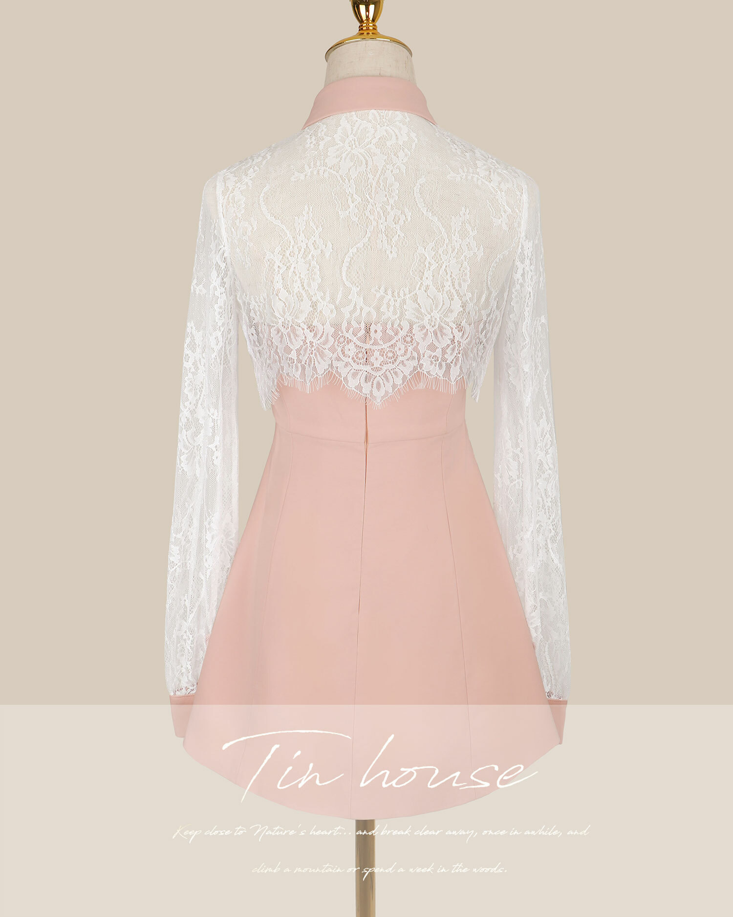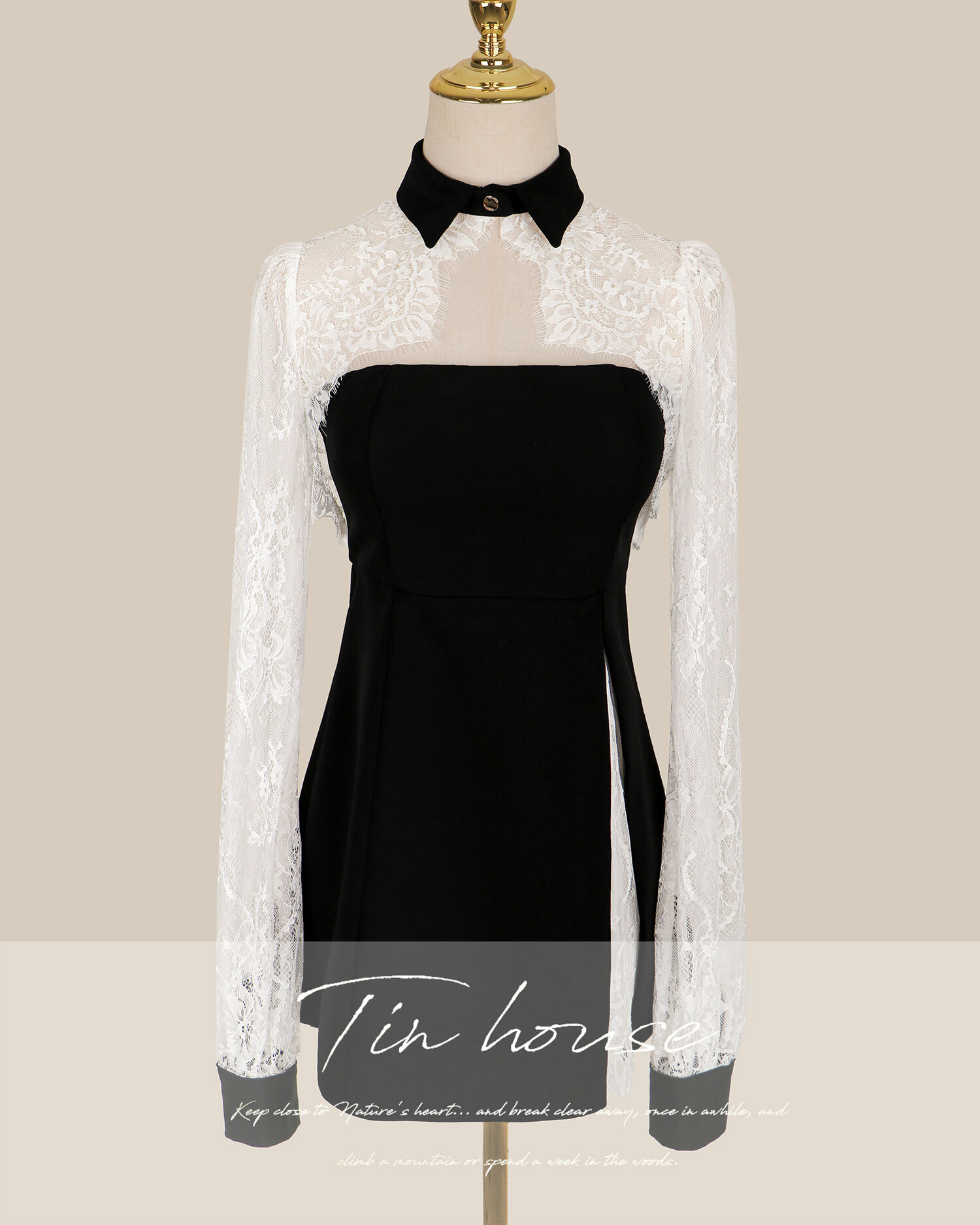 ⭒訂製-唯美撞色蕾絲兩件式平口洋