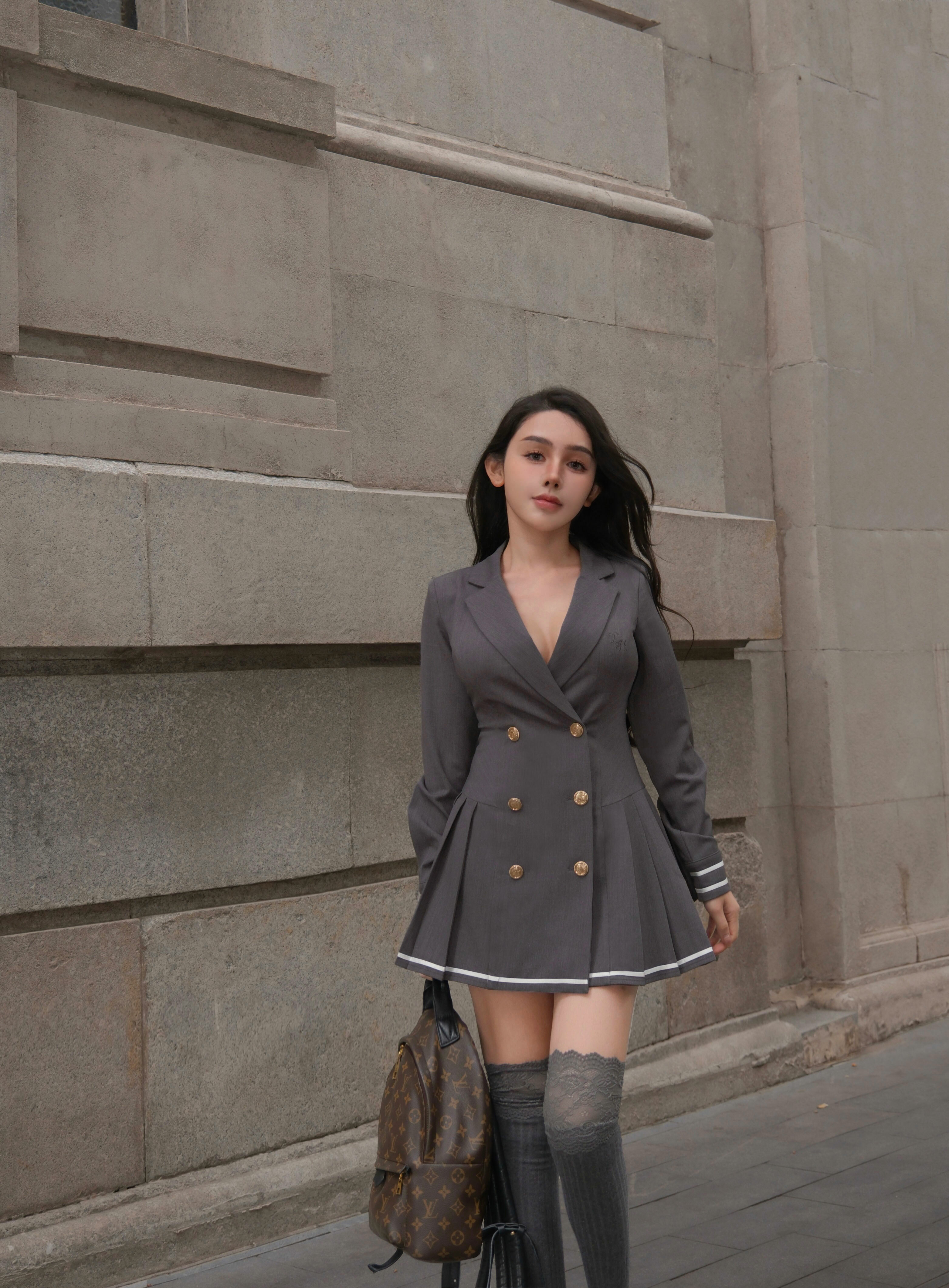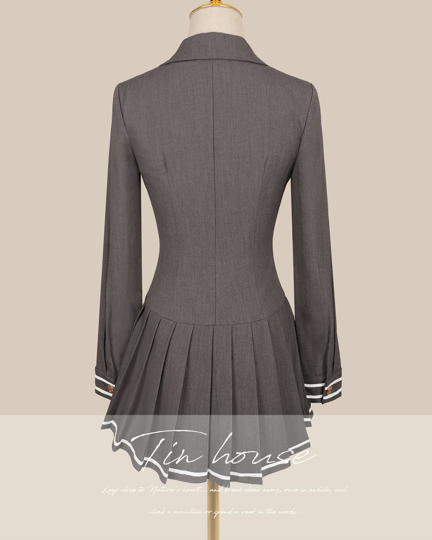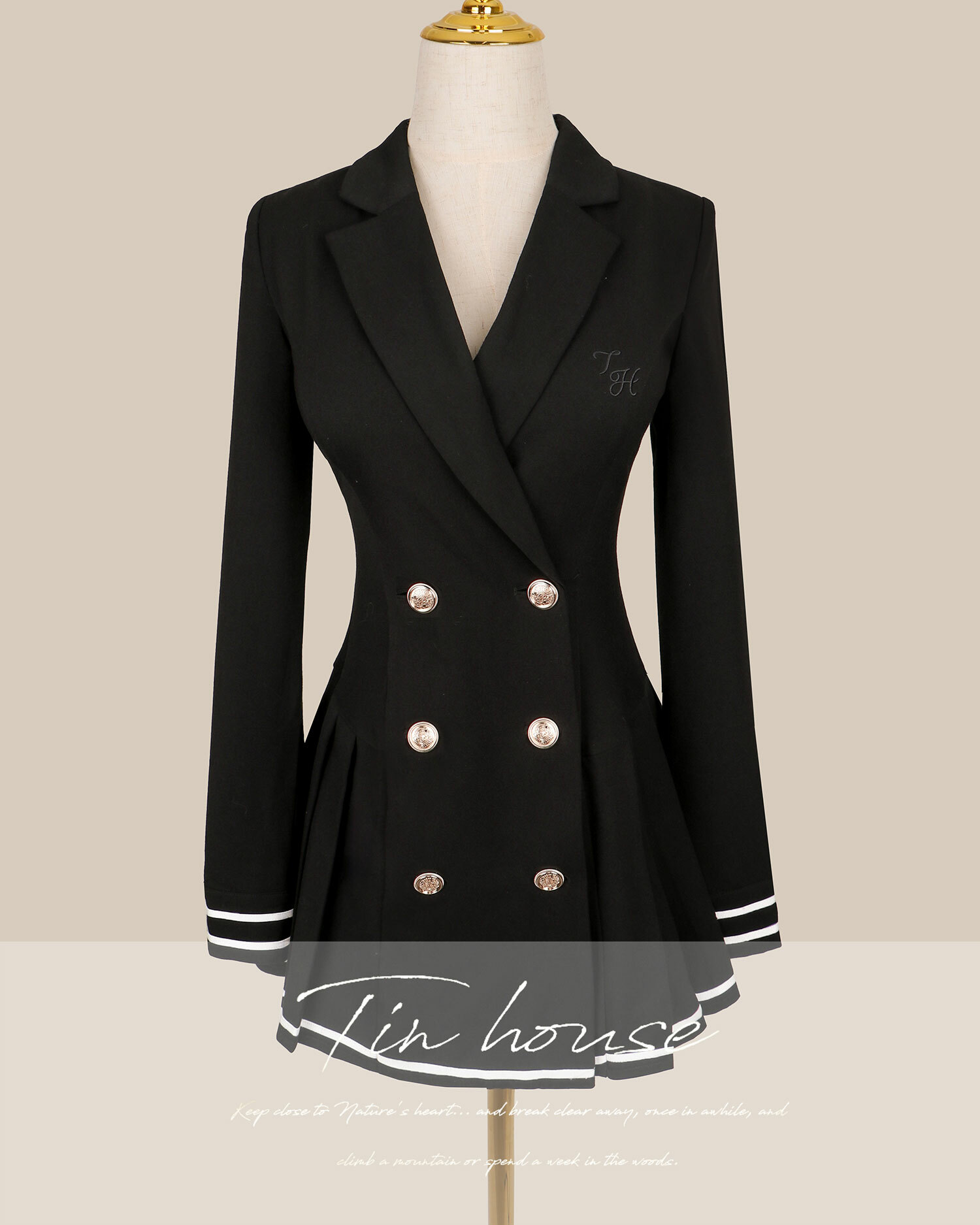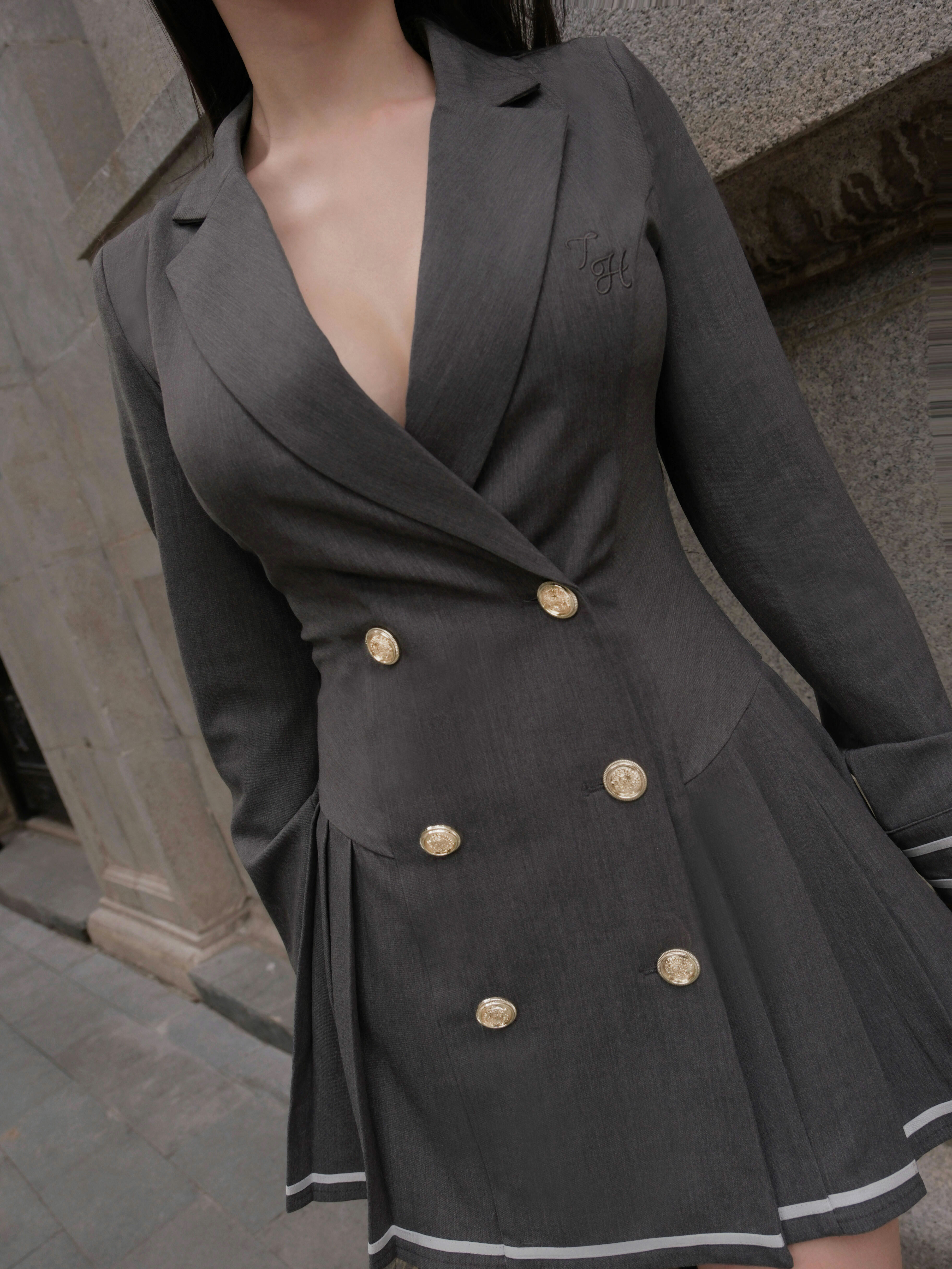 訂製-撞色線條西裝領排釦傘洋