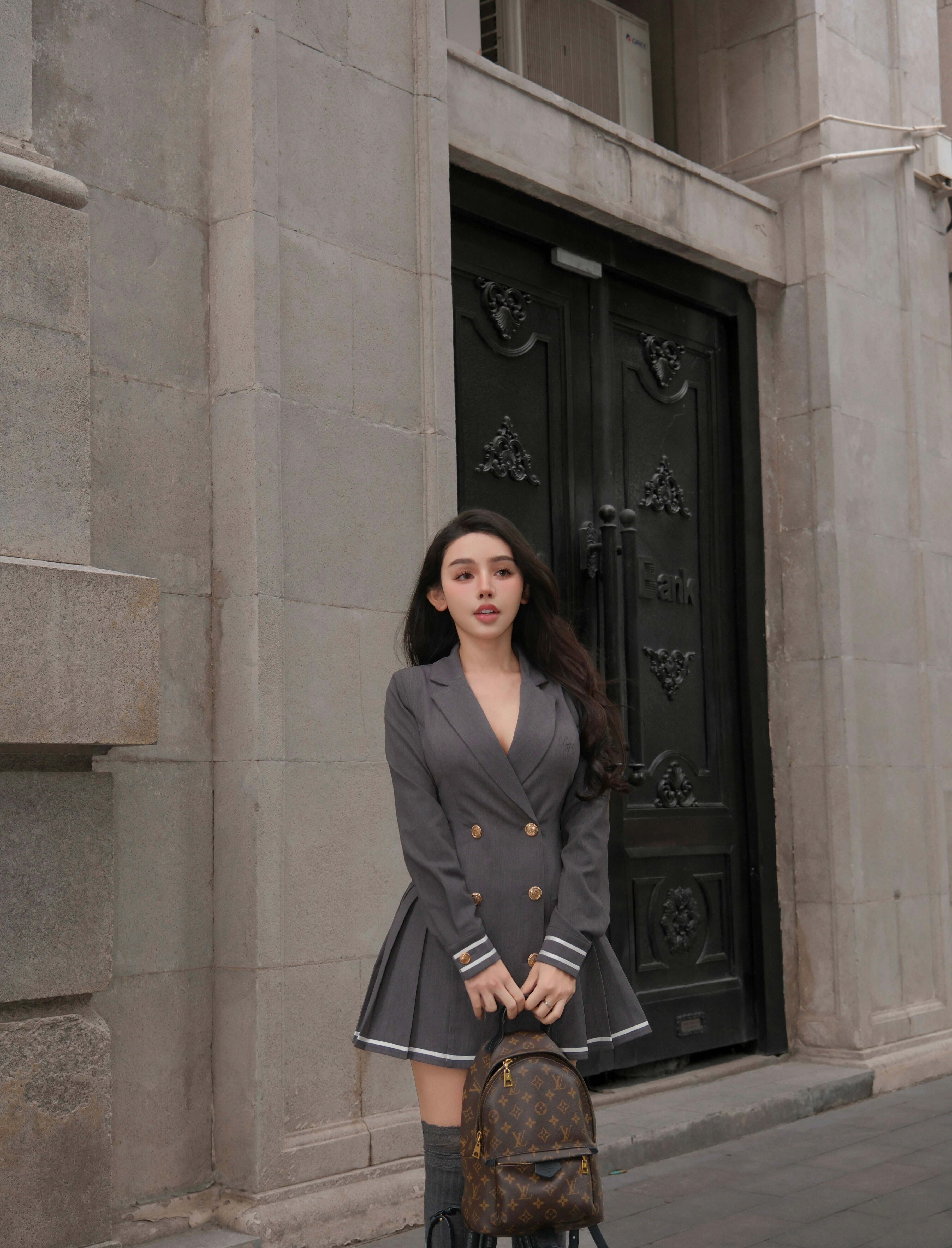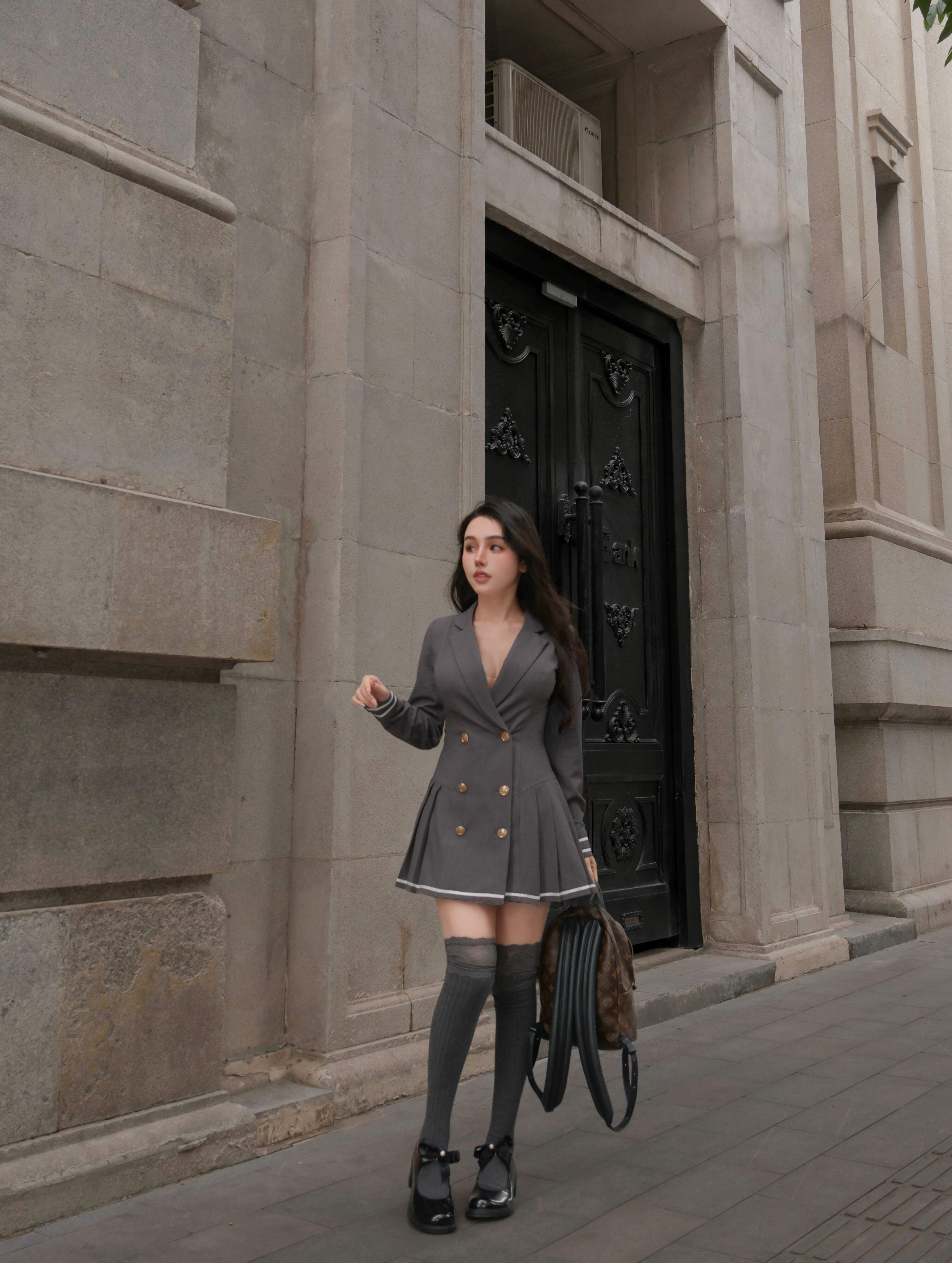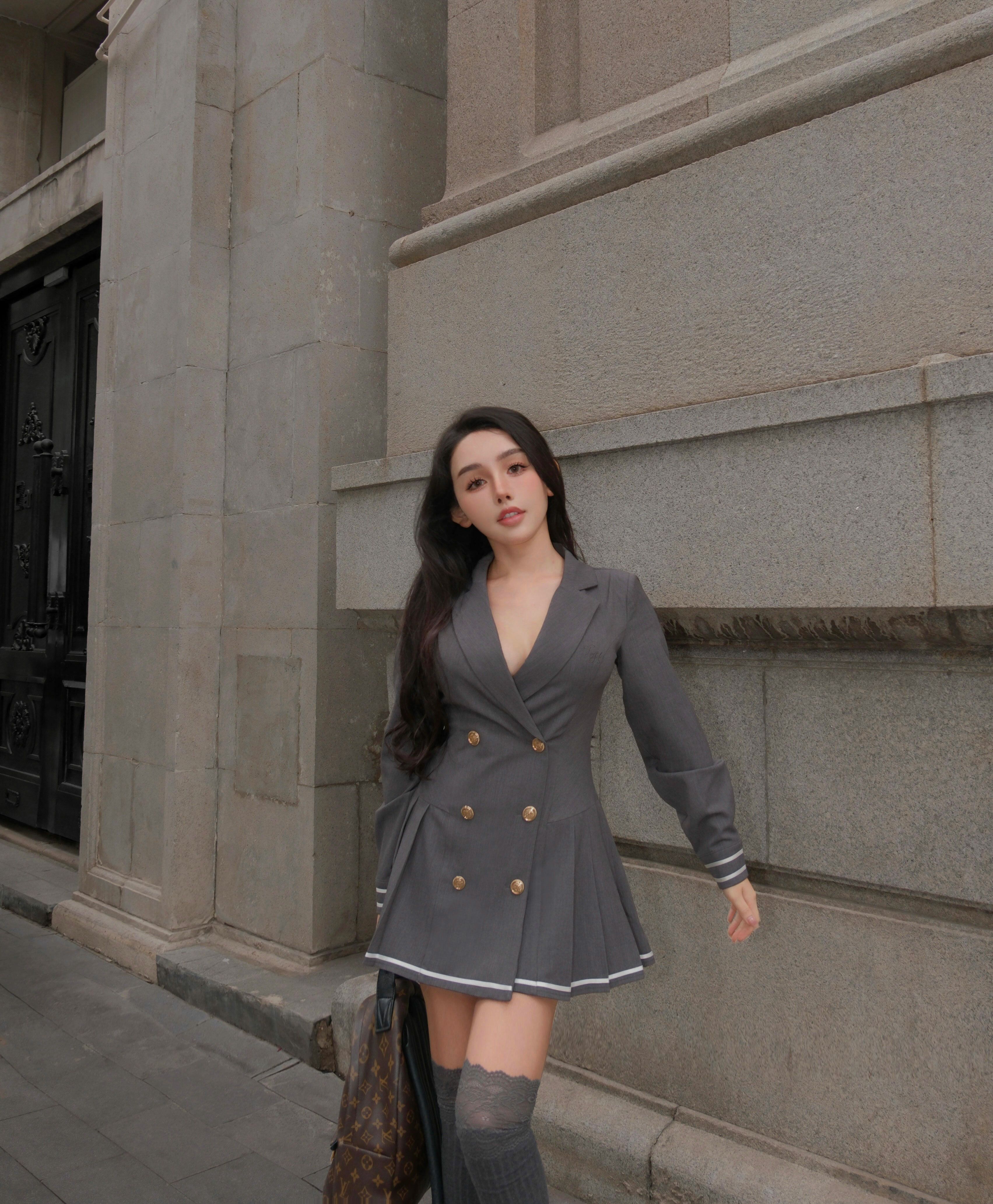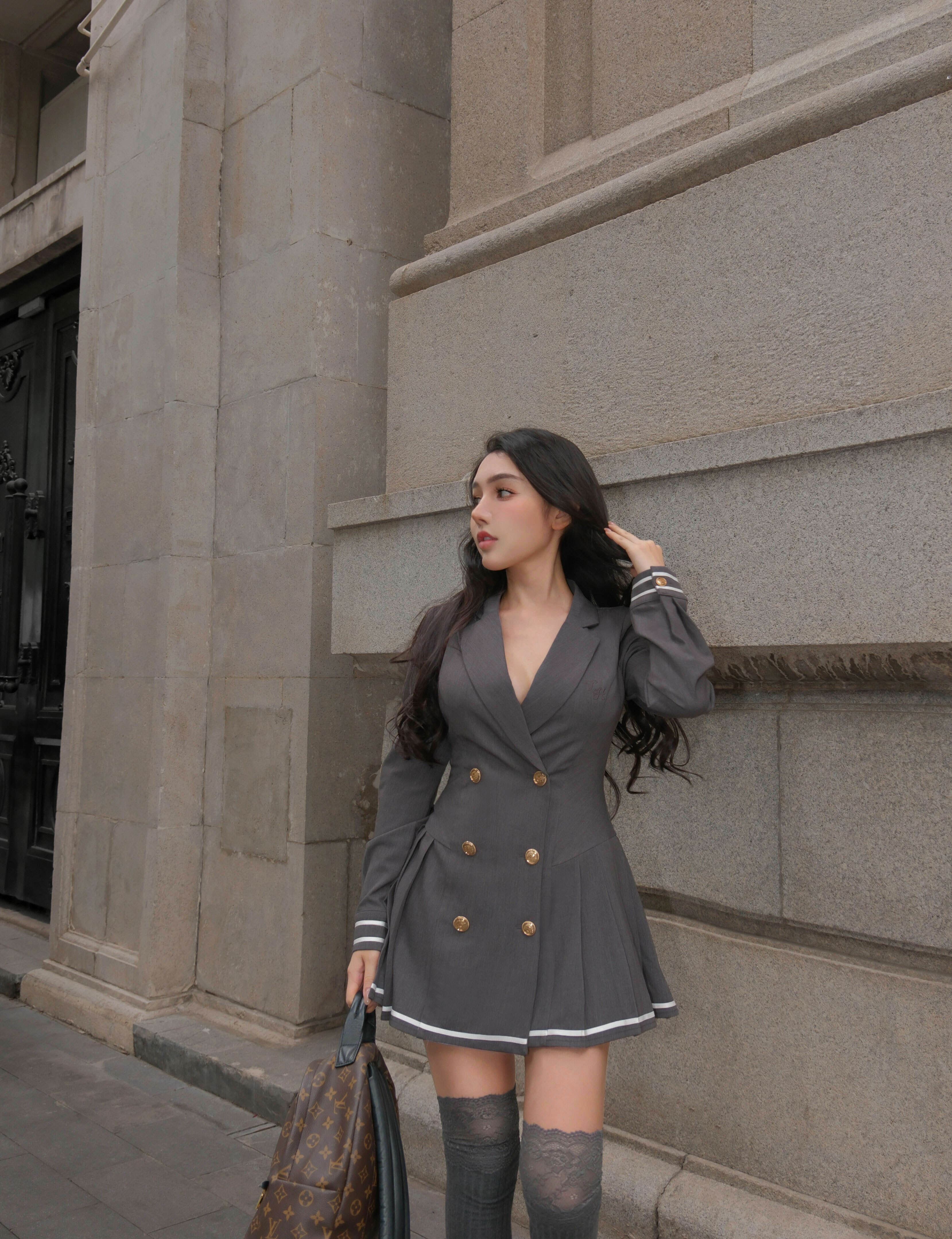 訂製-撞色線條西裝領排釦傘洋