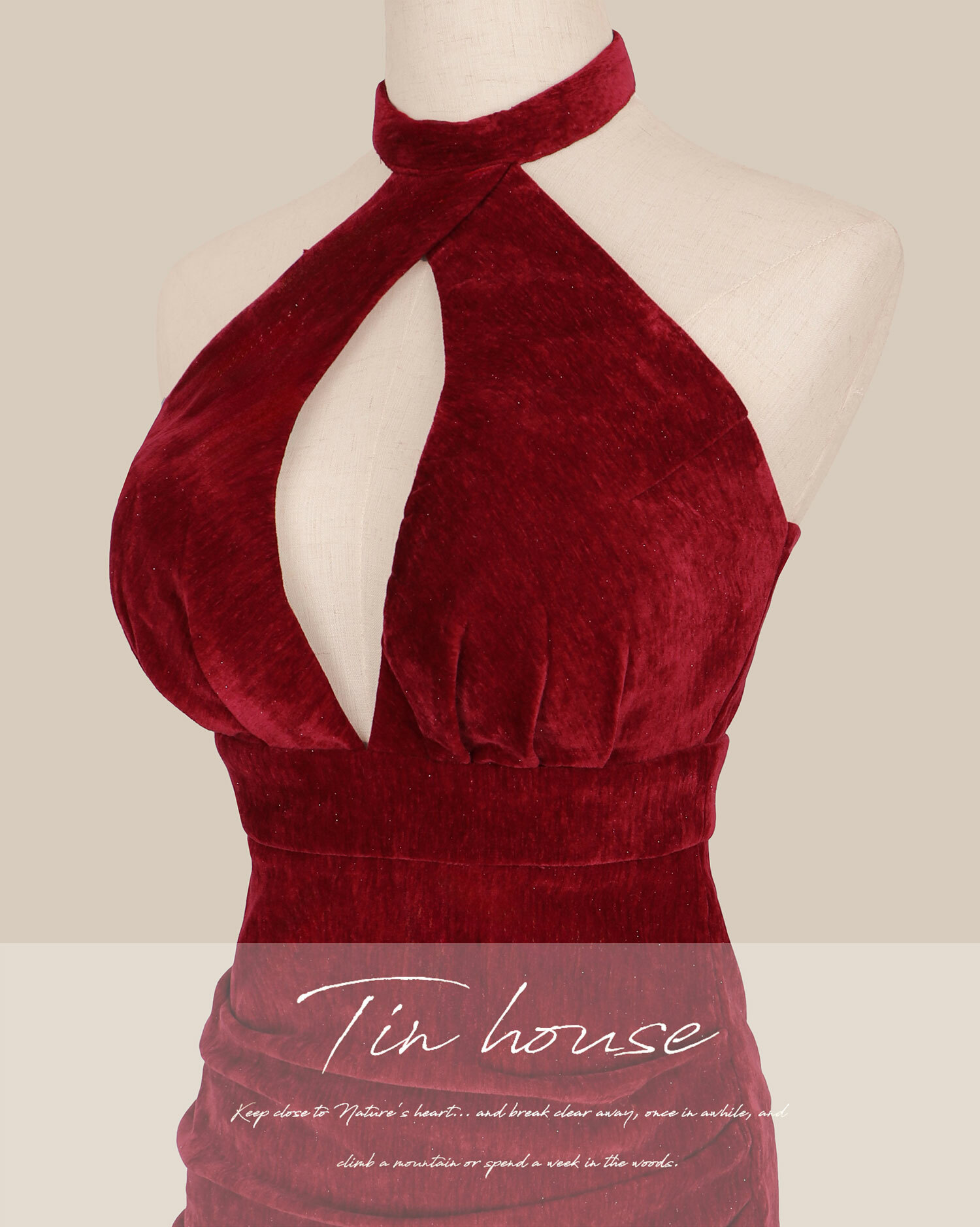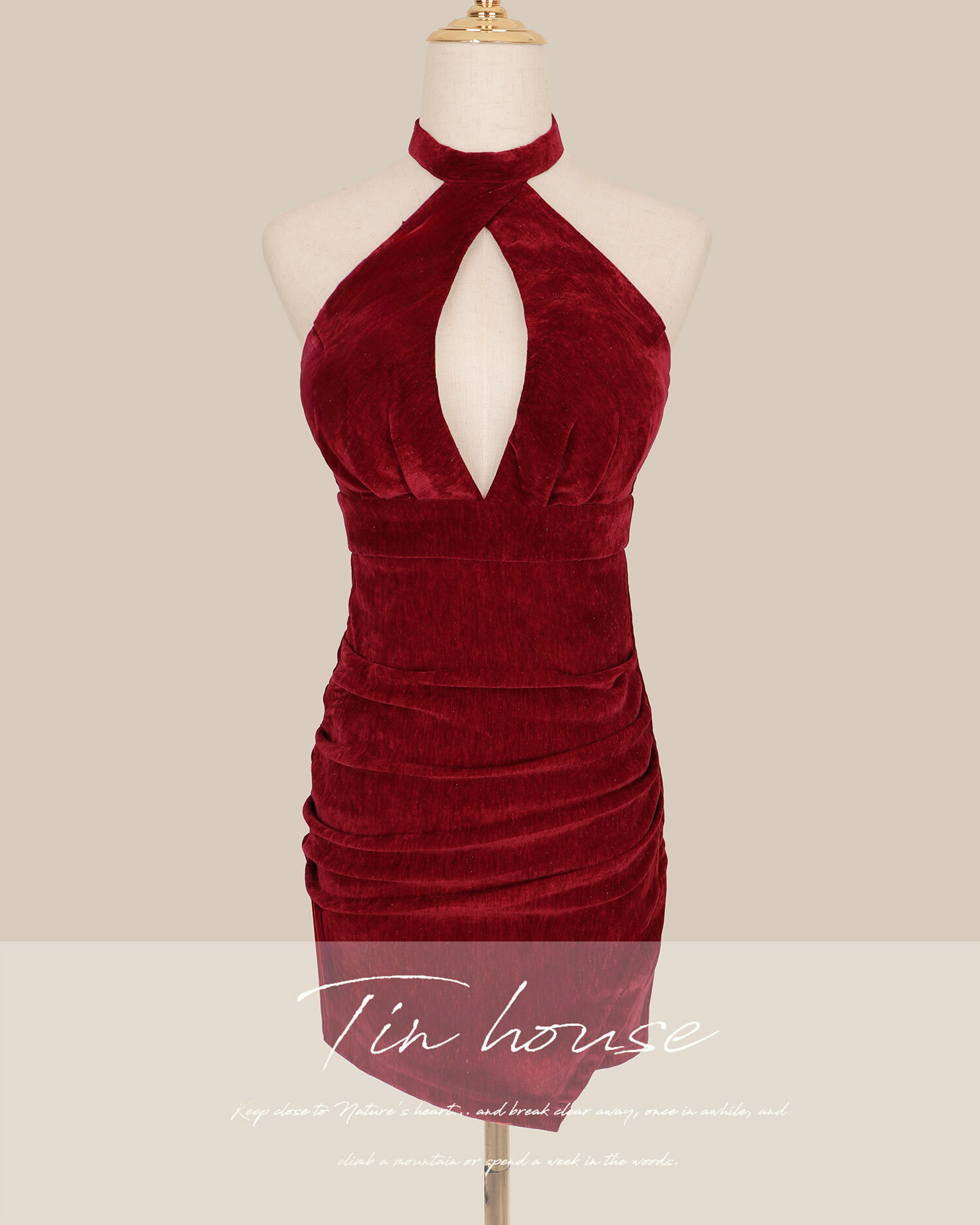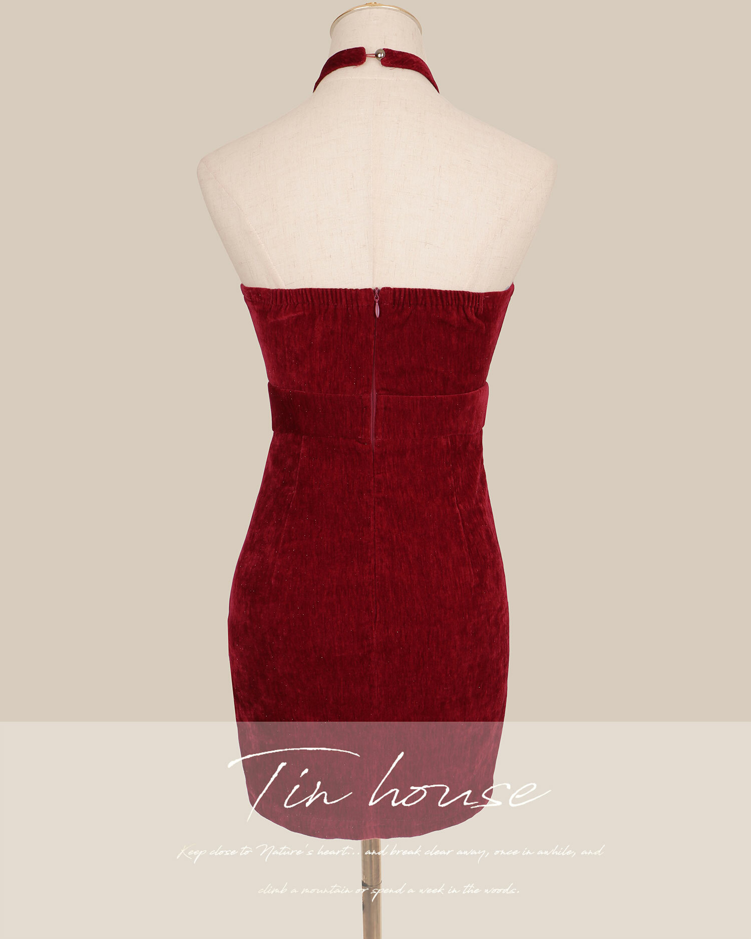 ⭒限量-立領挖胸美背合身洋