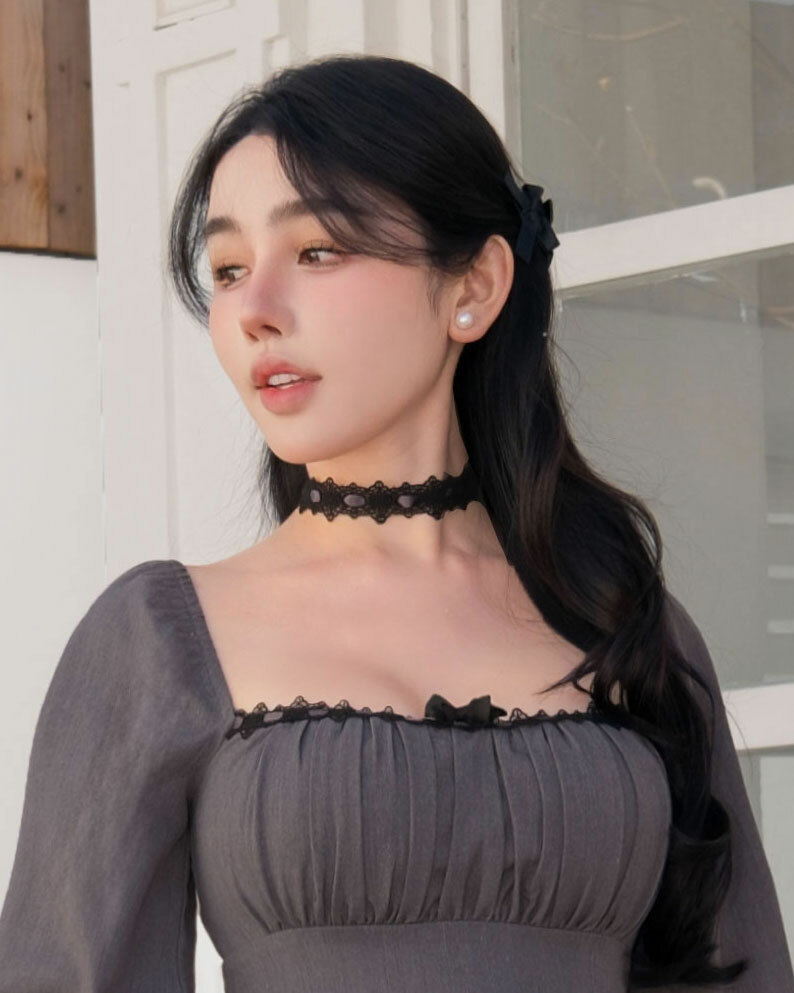 限量-宮廷撞色緞帶蕾絲頸鏈
