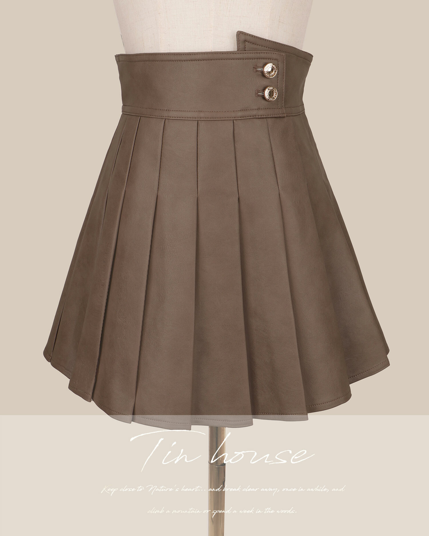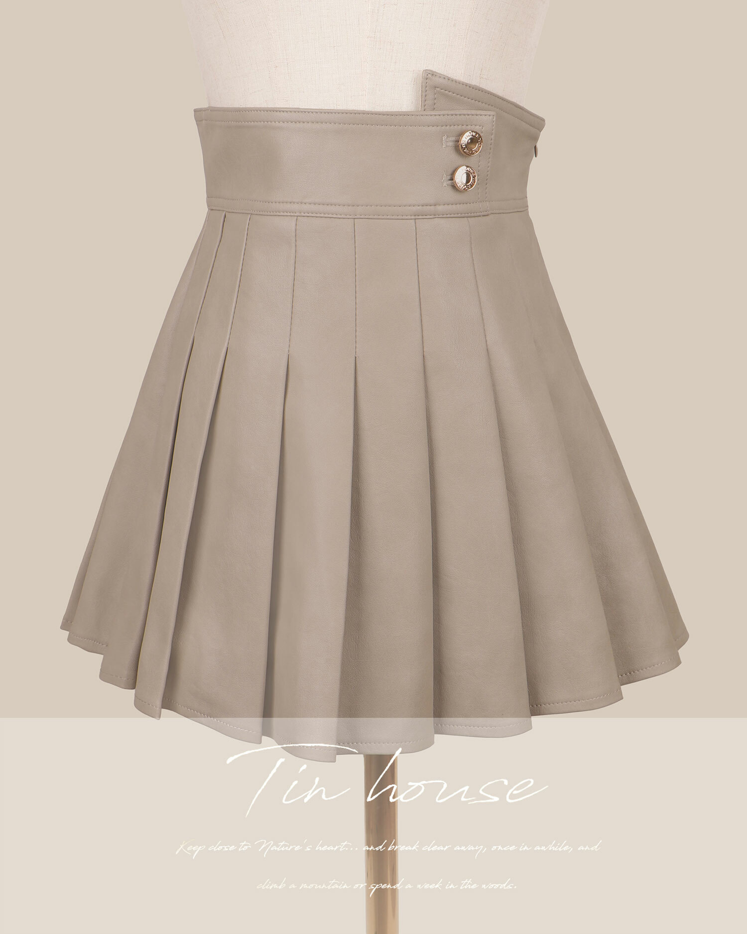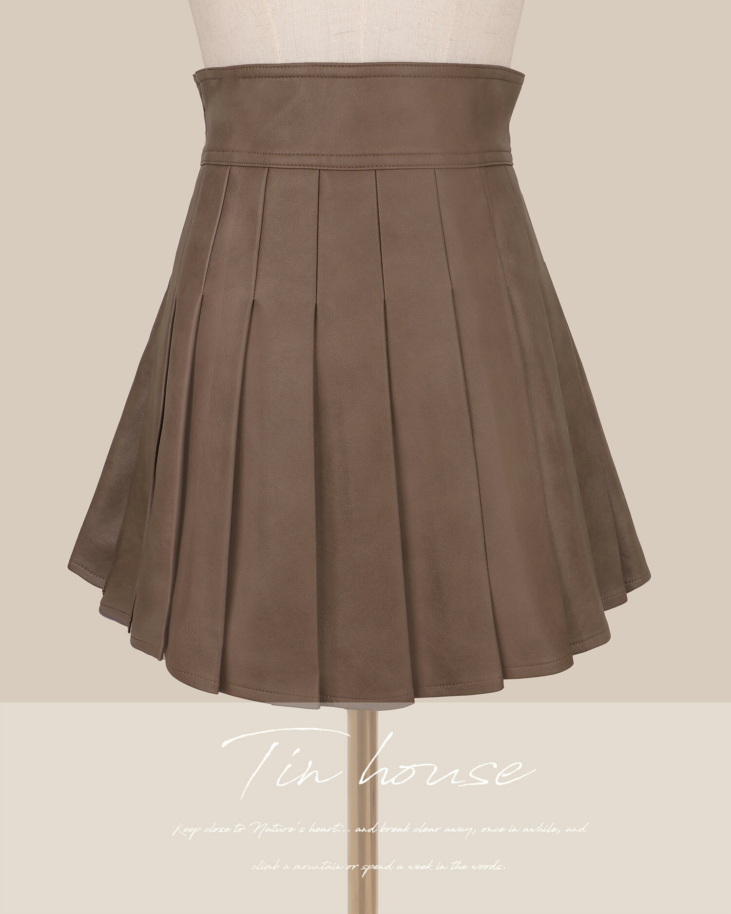 訂製-柔霧皮革不對稱百褶裙