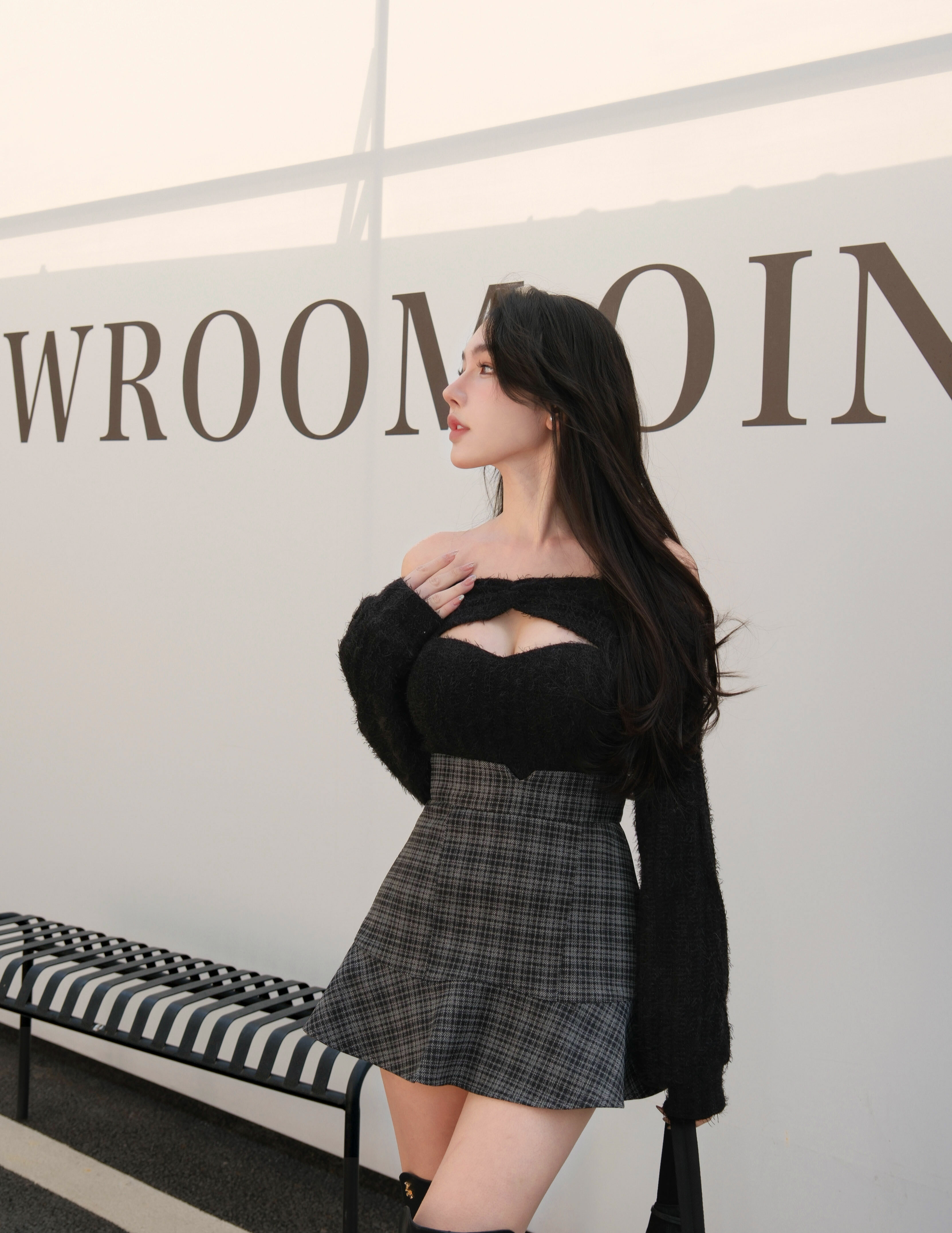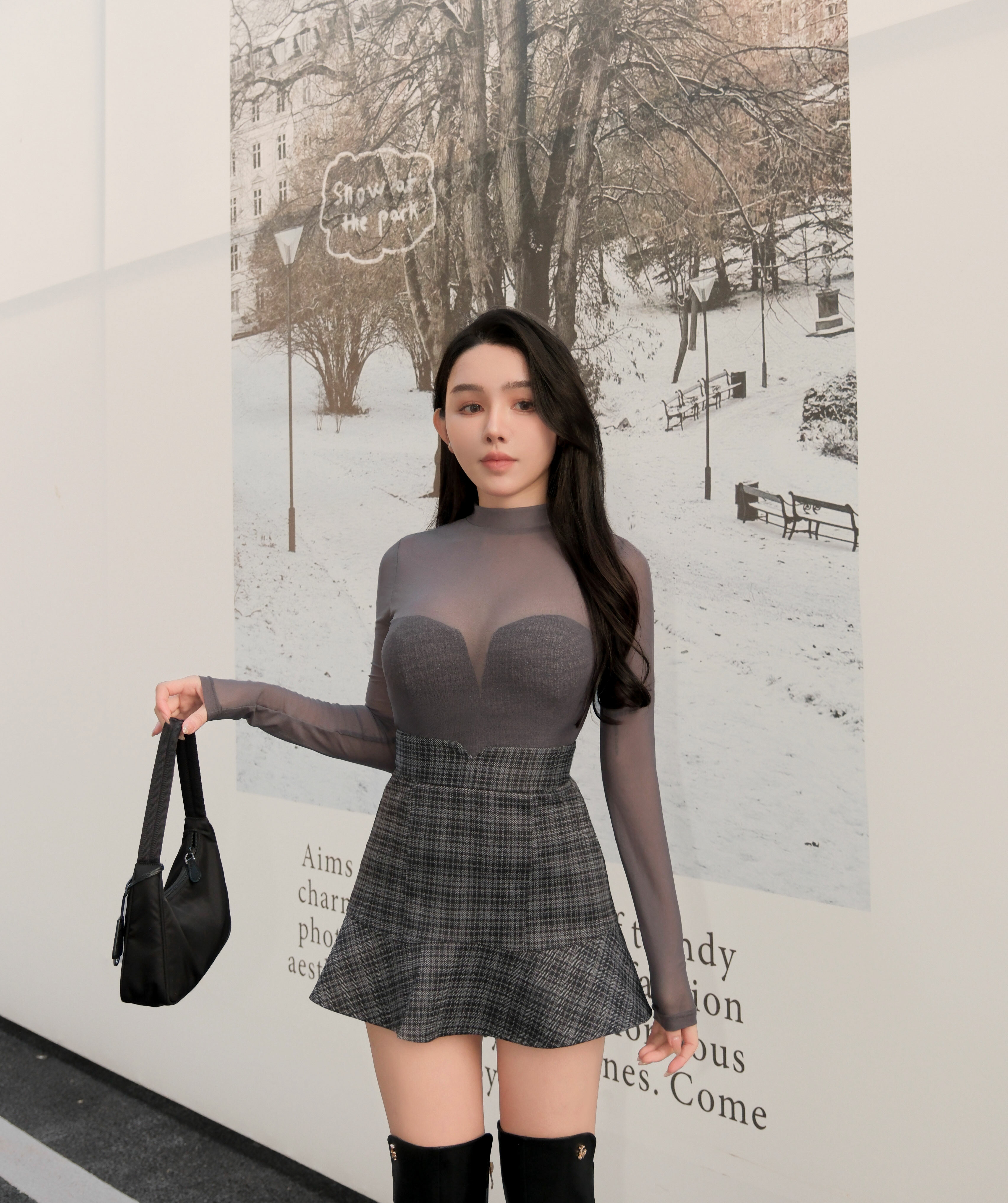 訂製-霧面格紋魚尾褲裙
