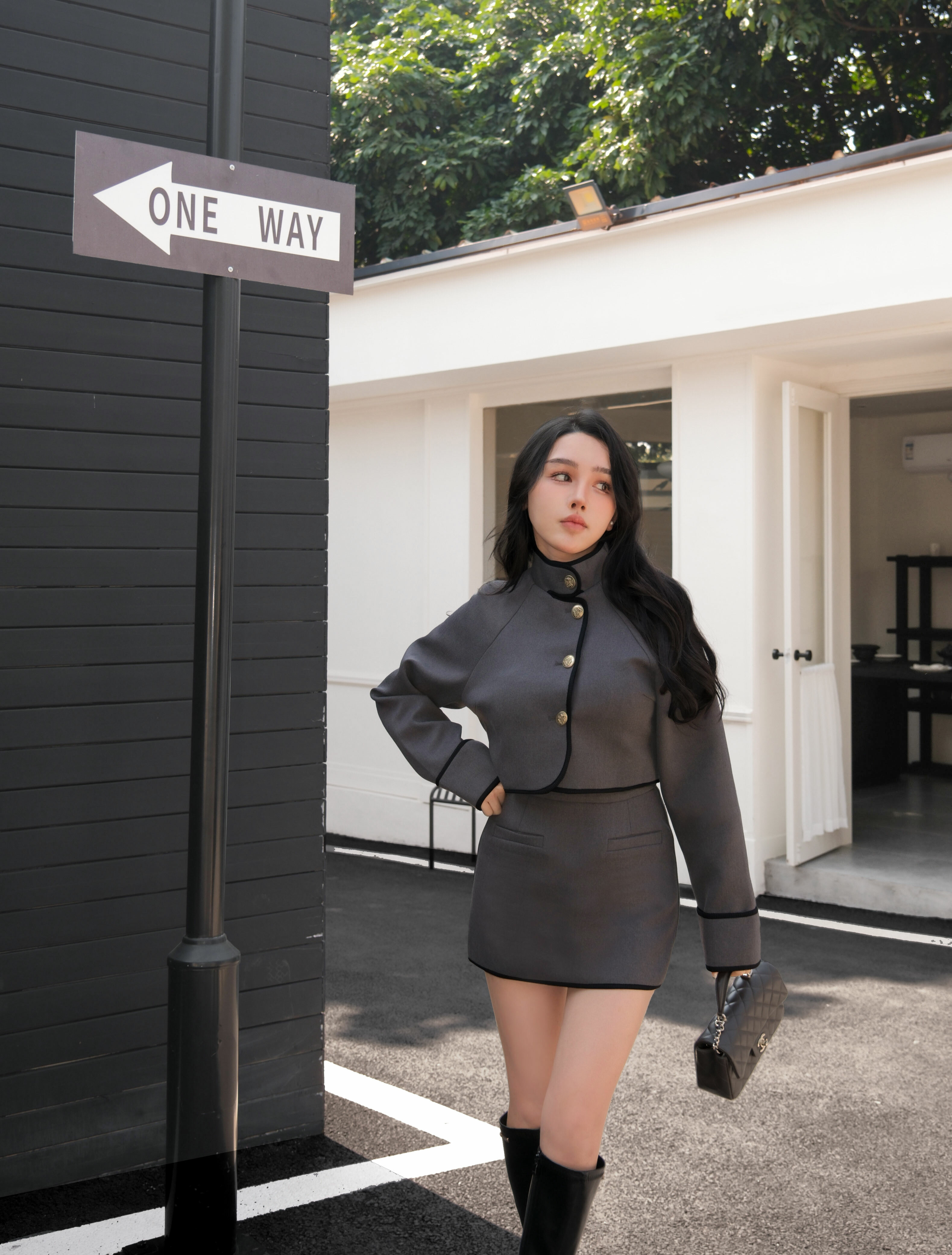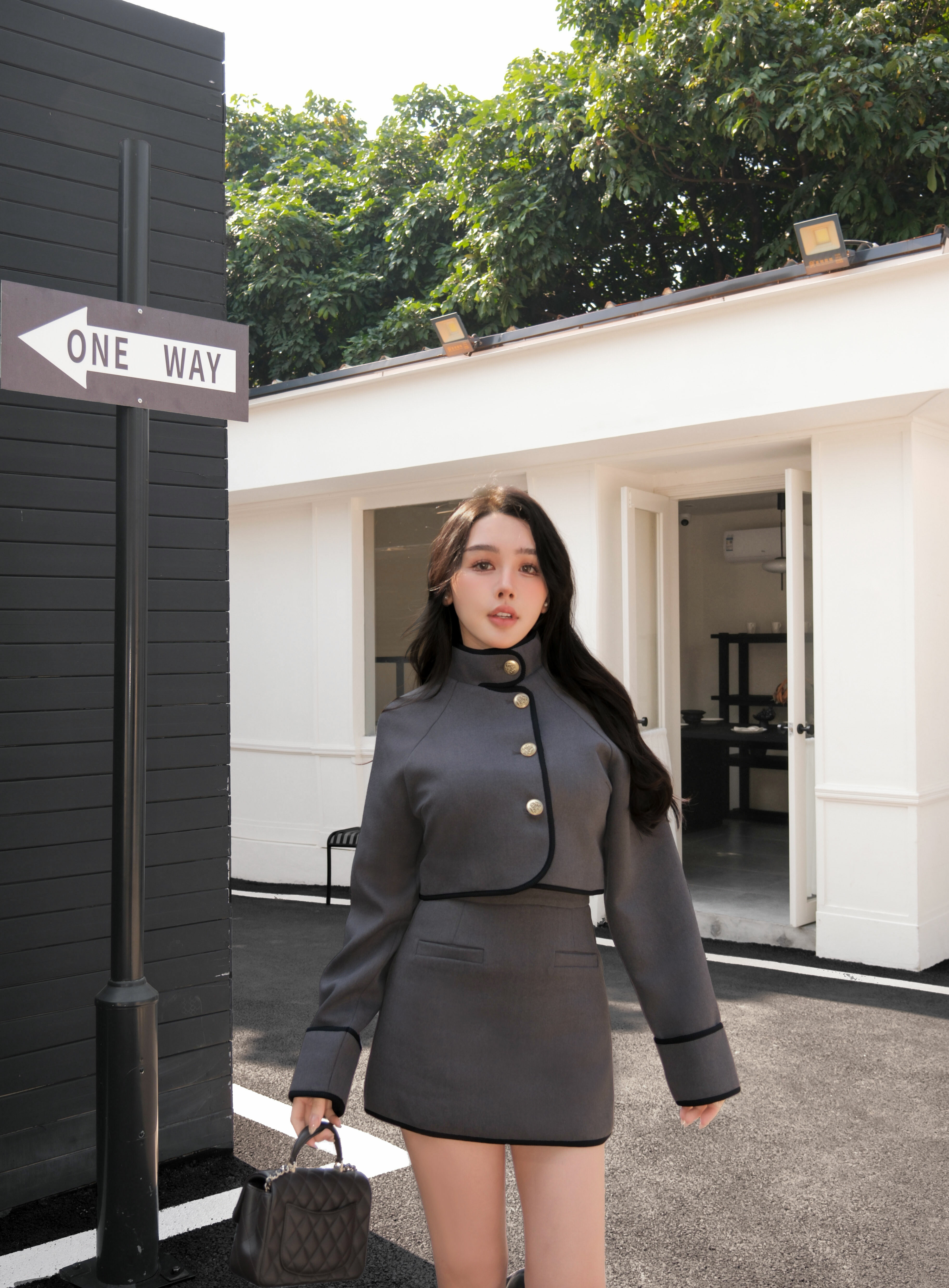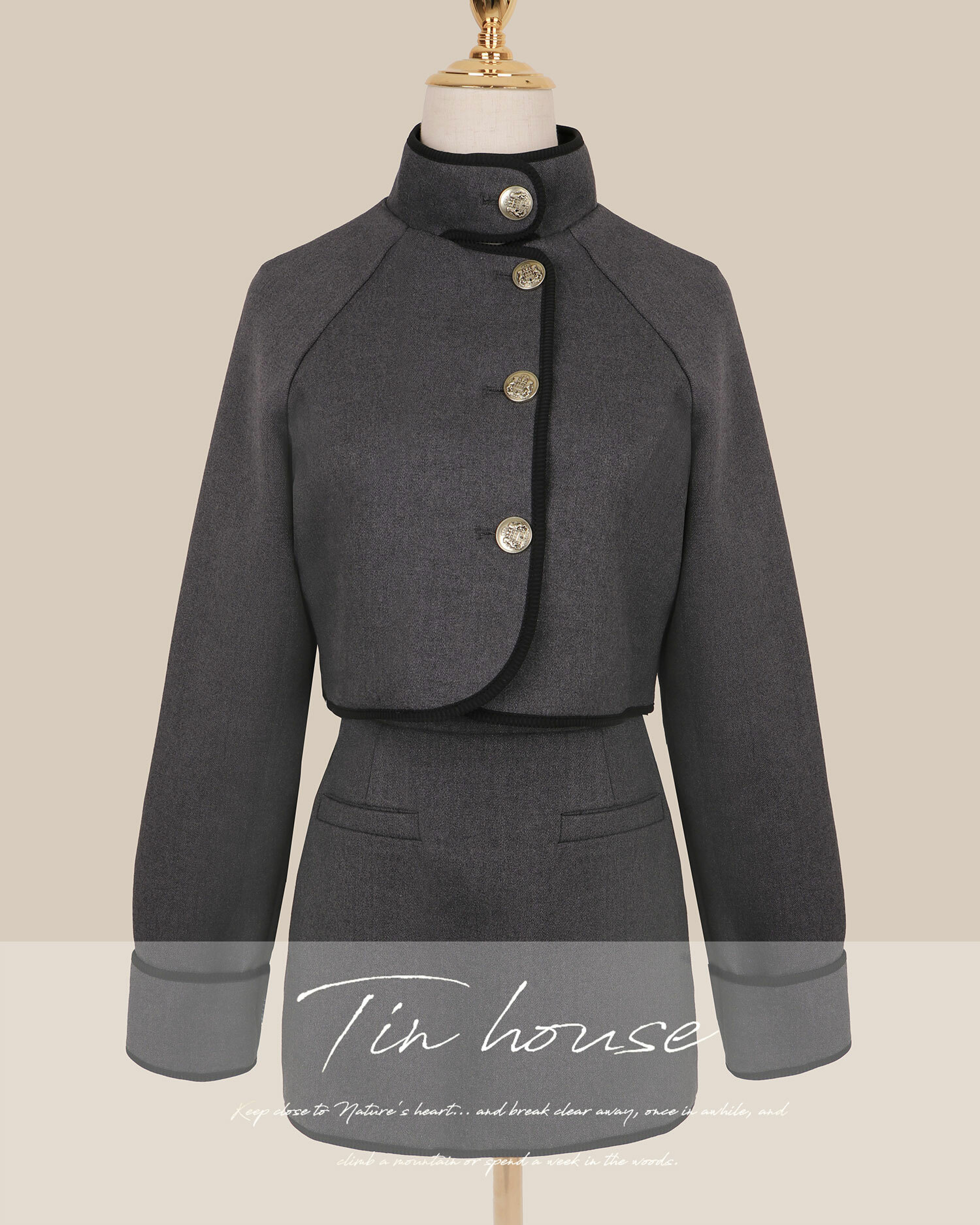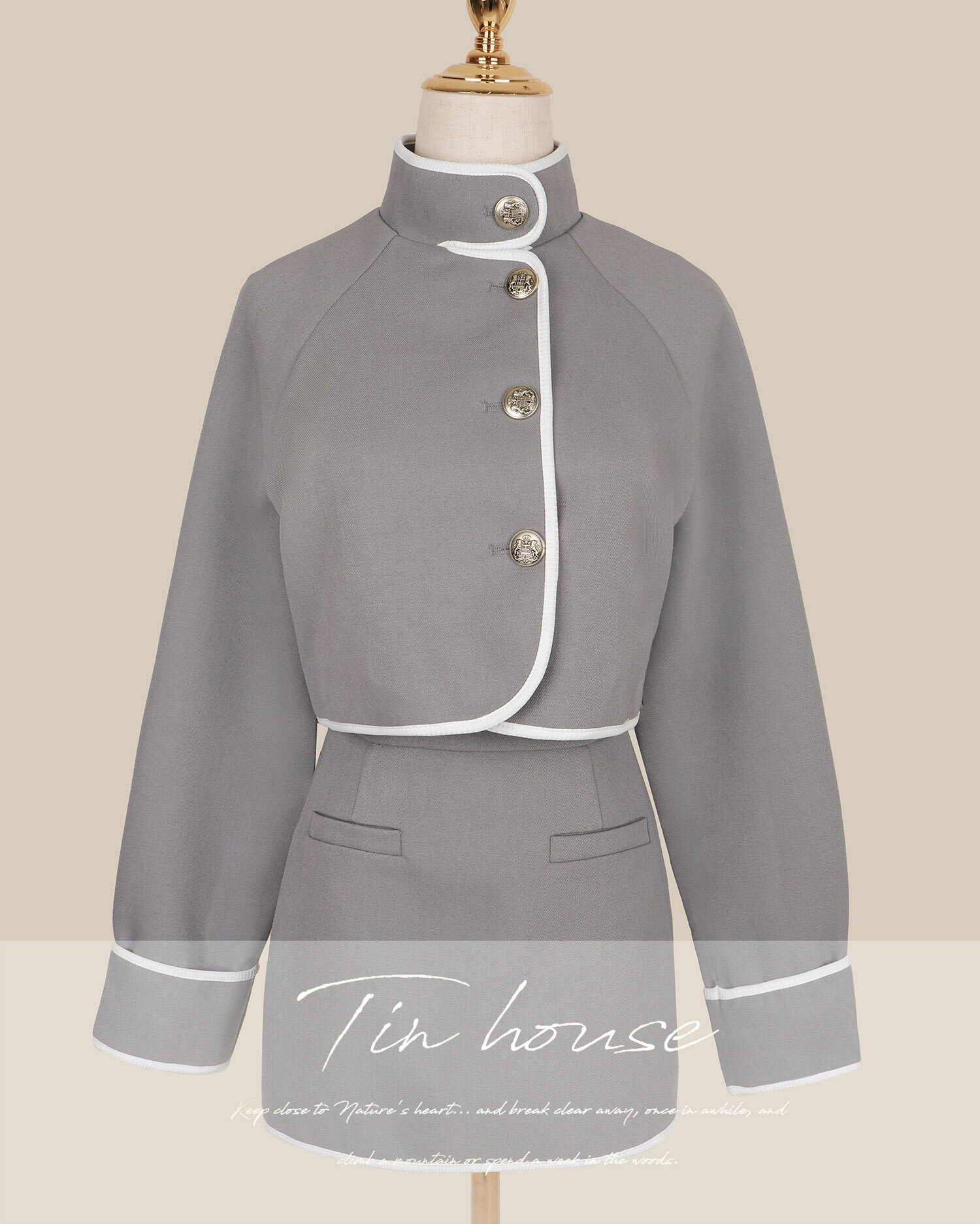 ⭒訂製-經典撞色立領金釦套裝