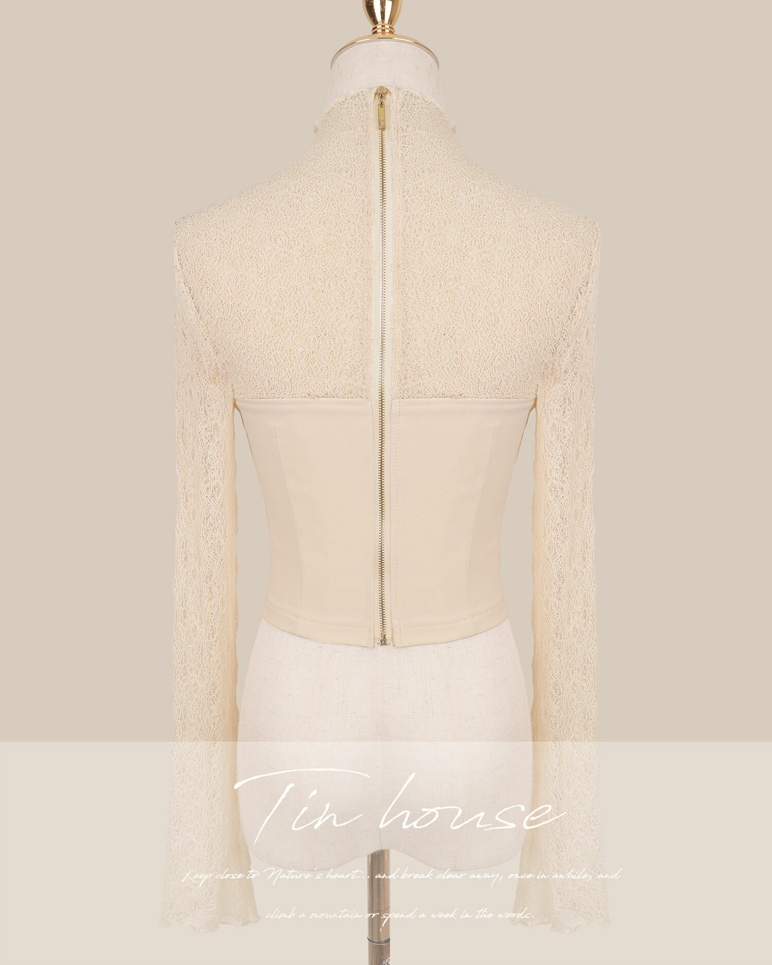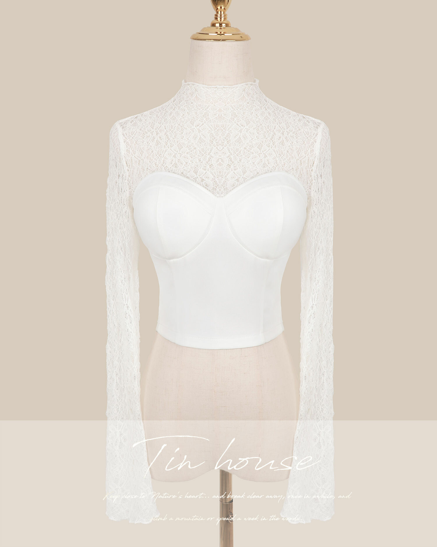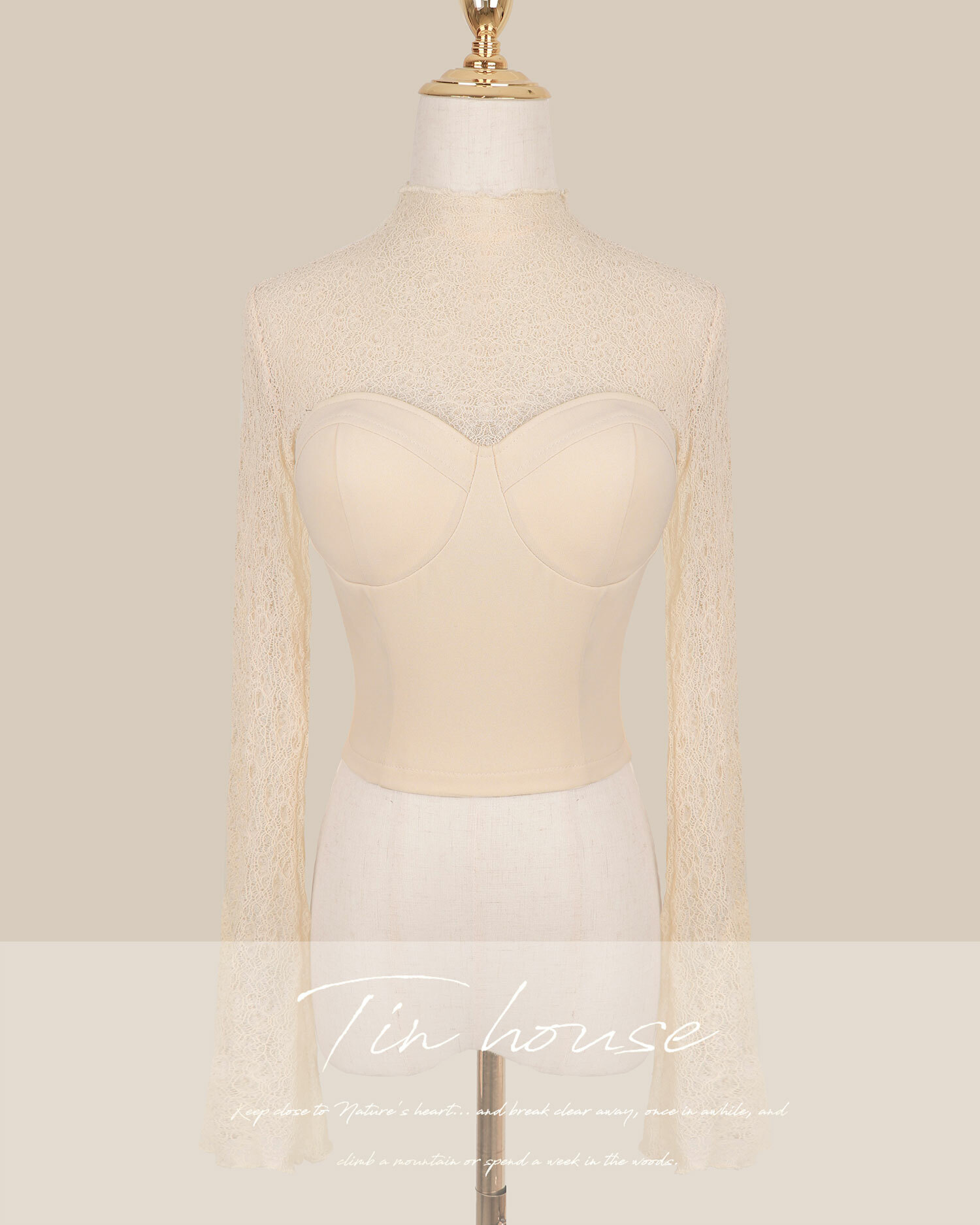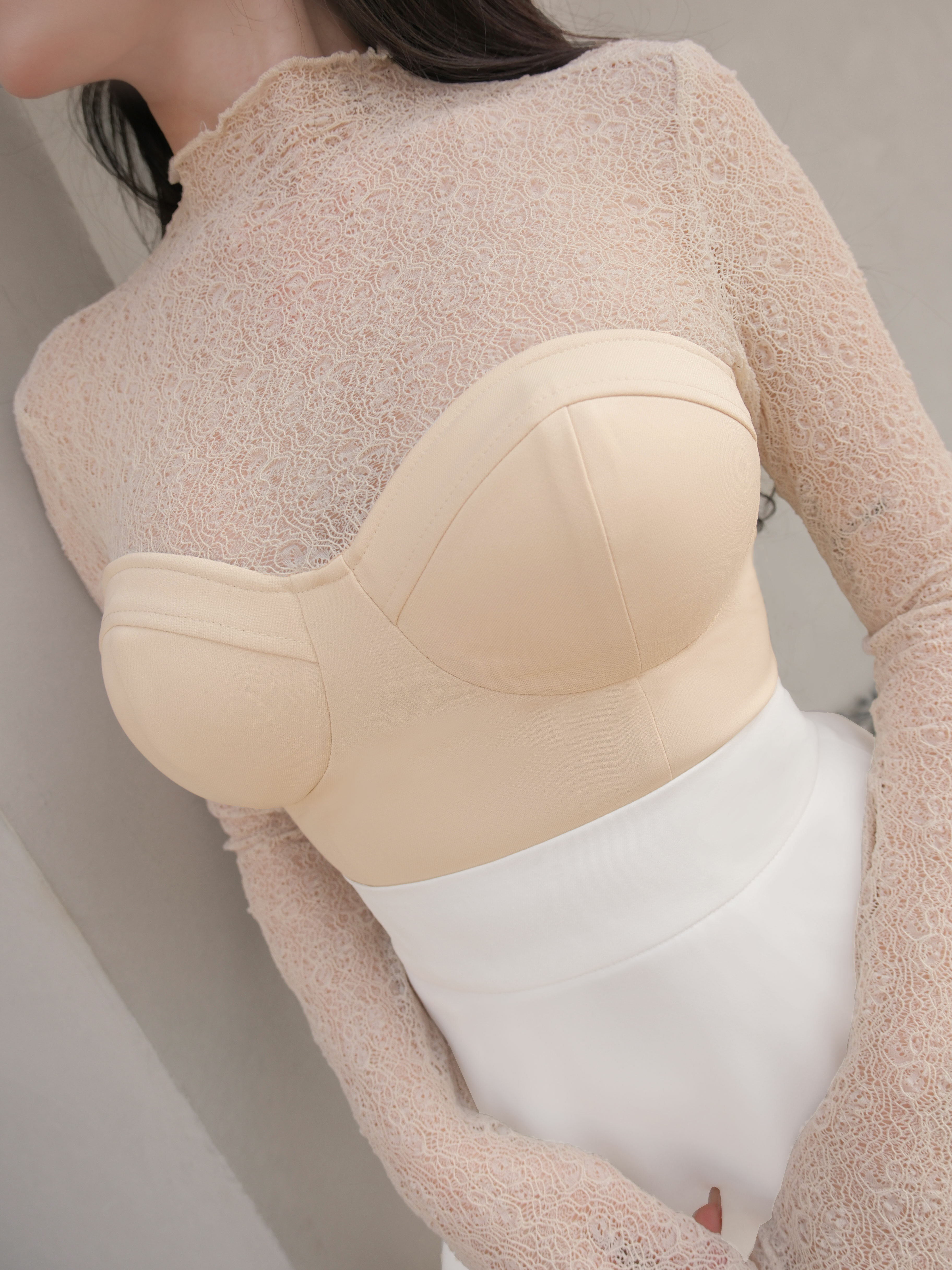 訂製-柔感蕾絲高領馬甲上衣