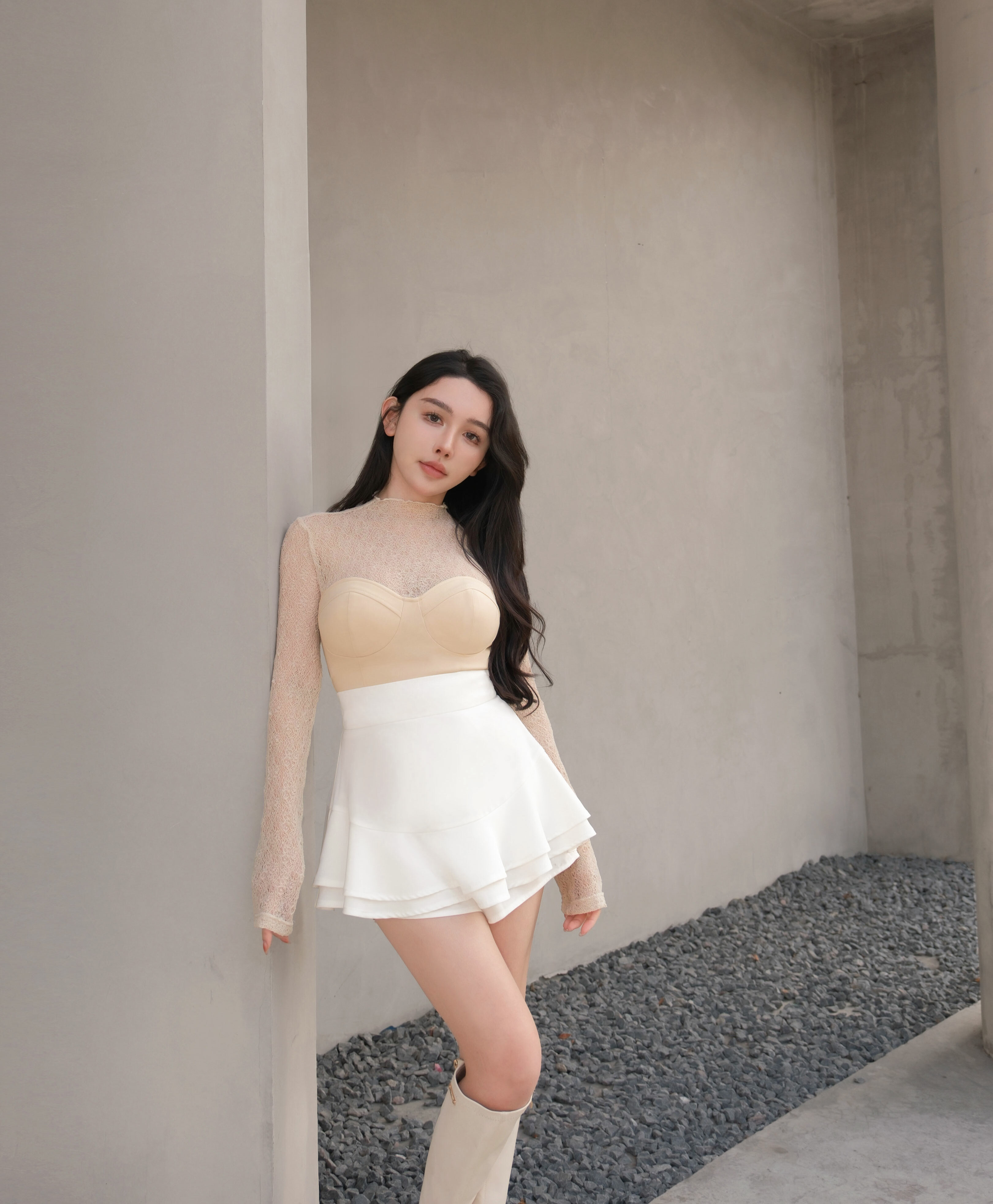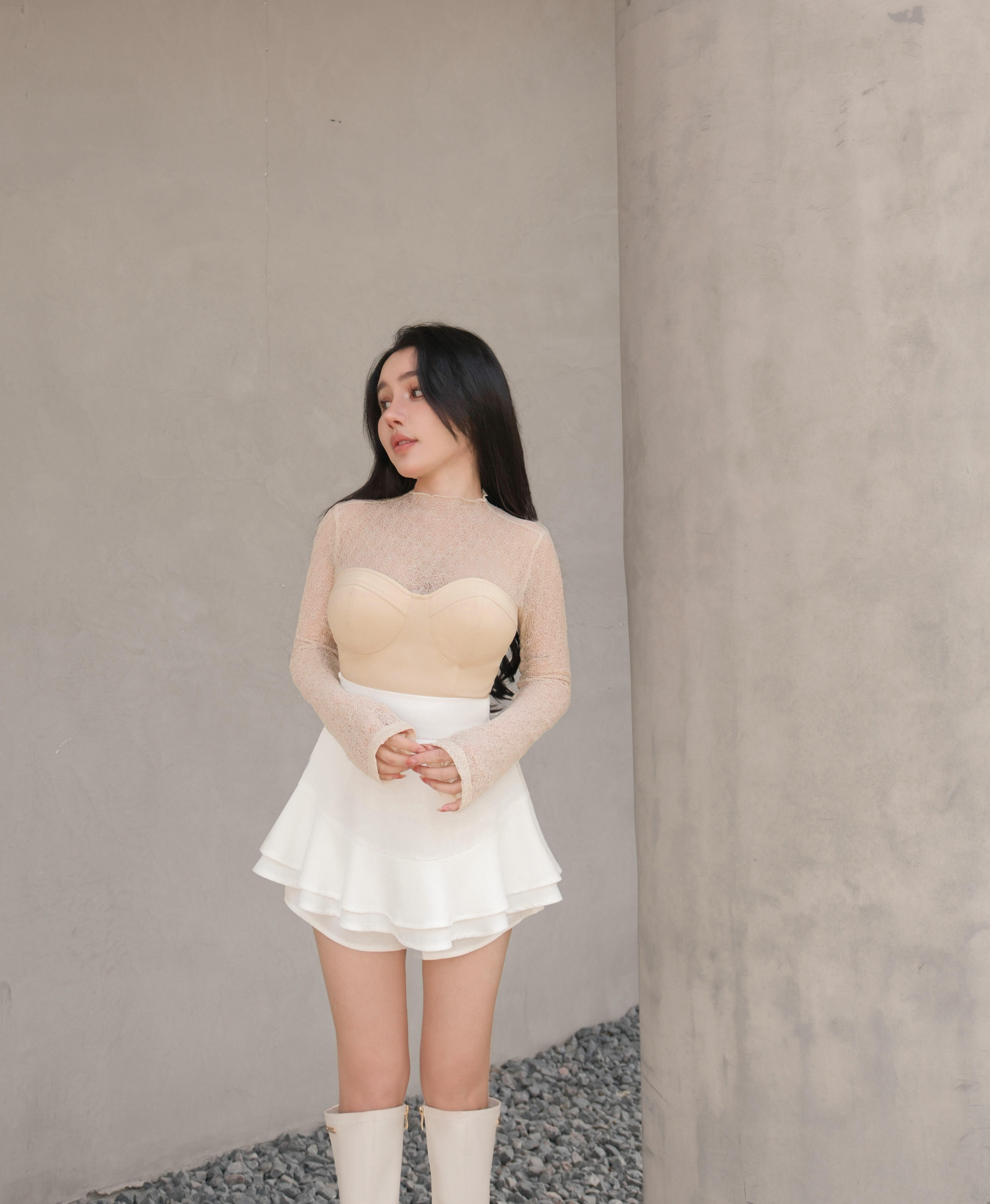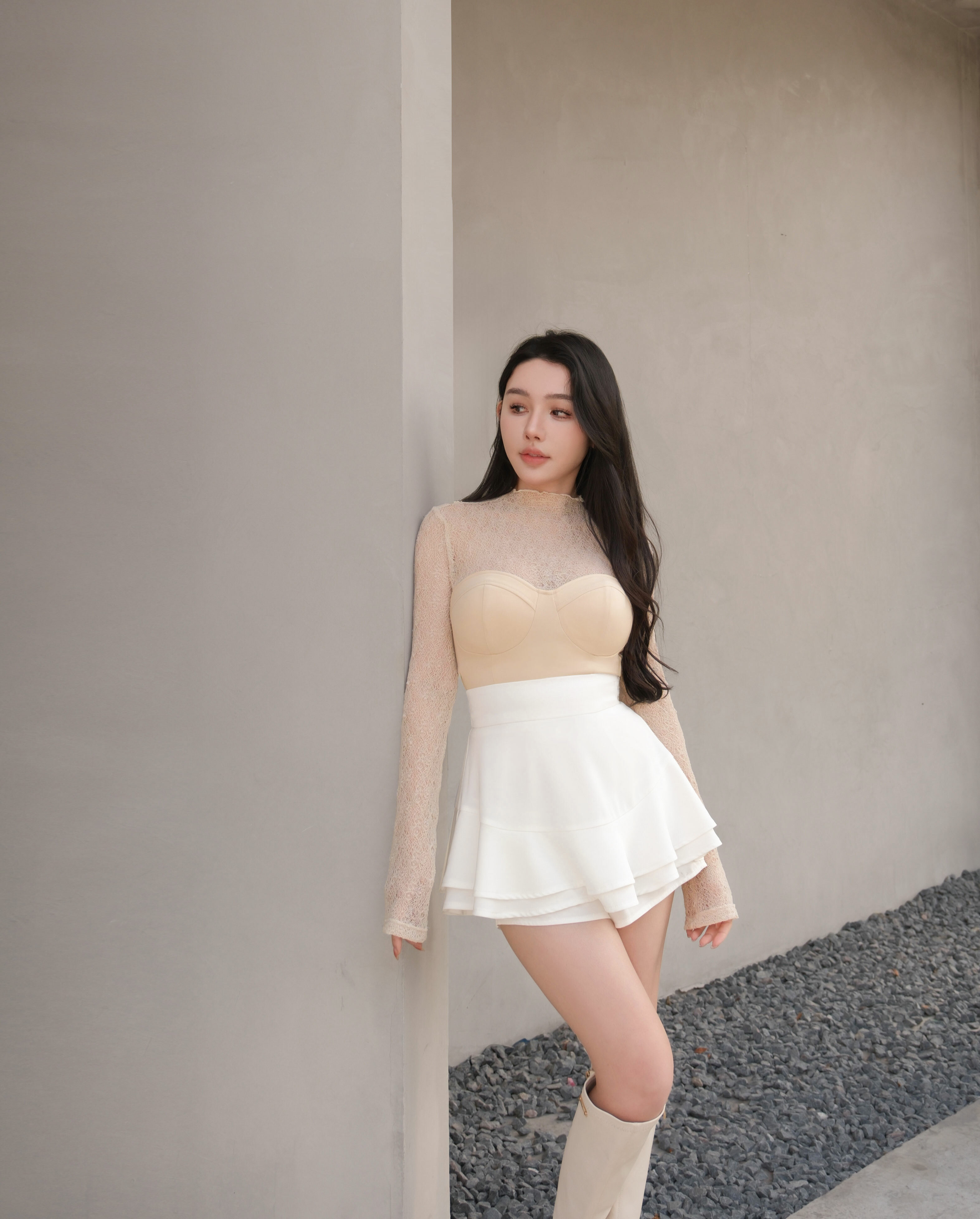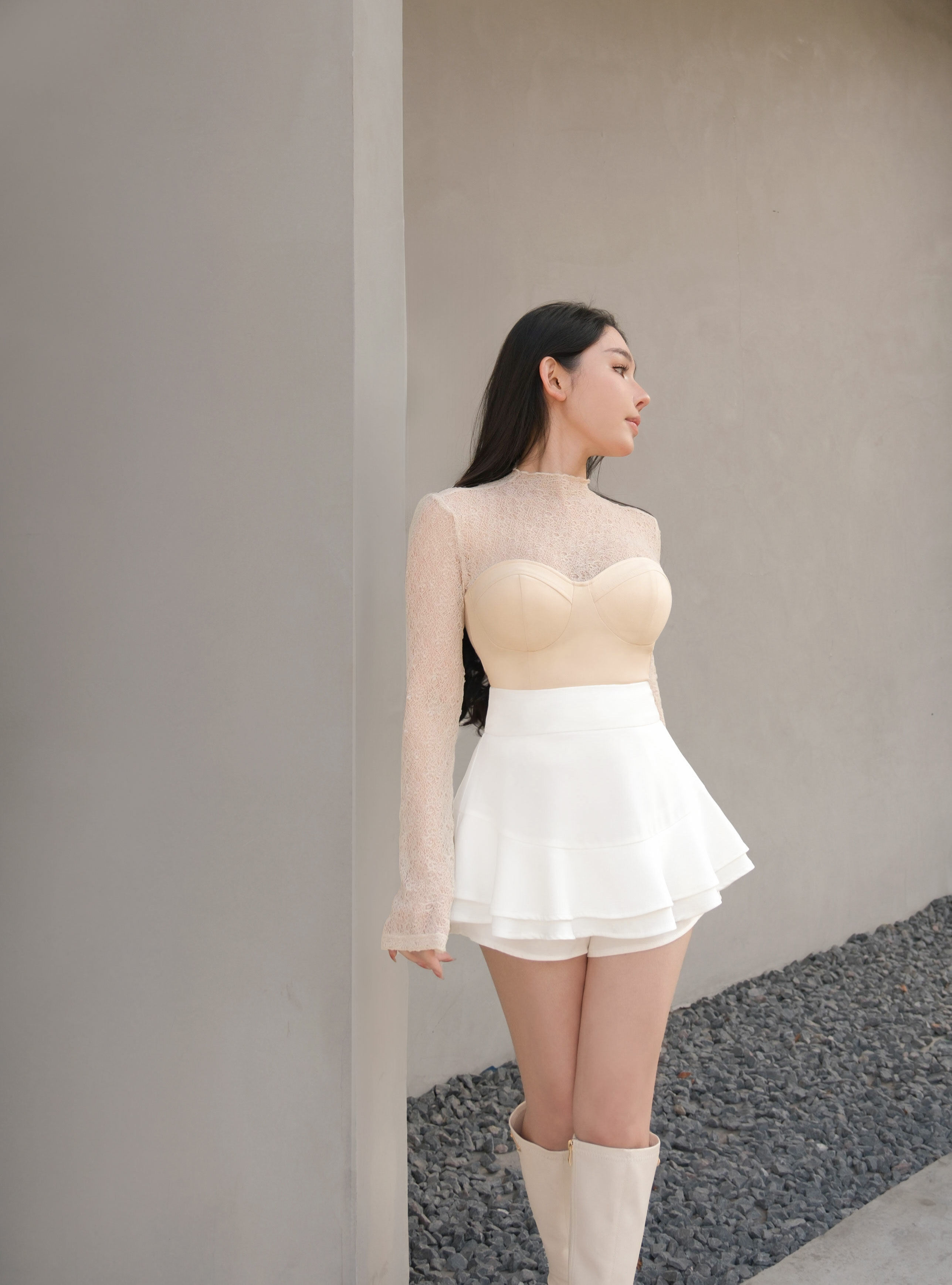訂製-柔感蕾絲高領馬甲上衣