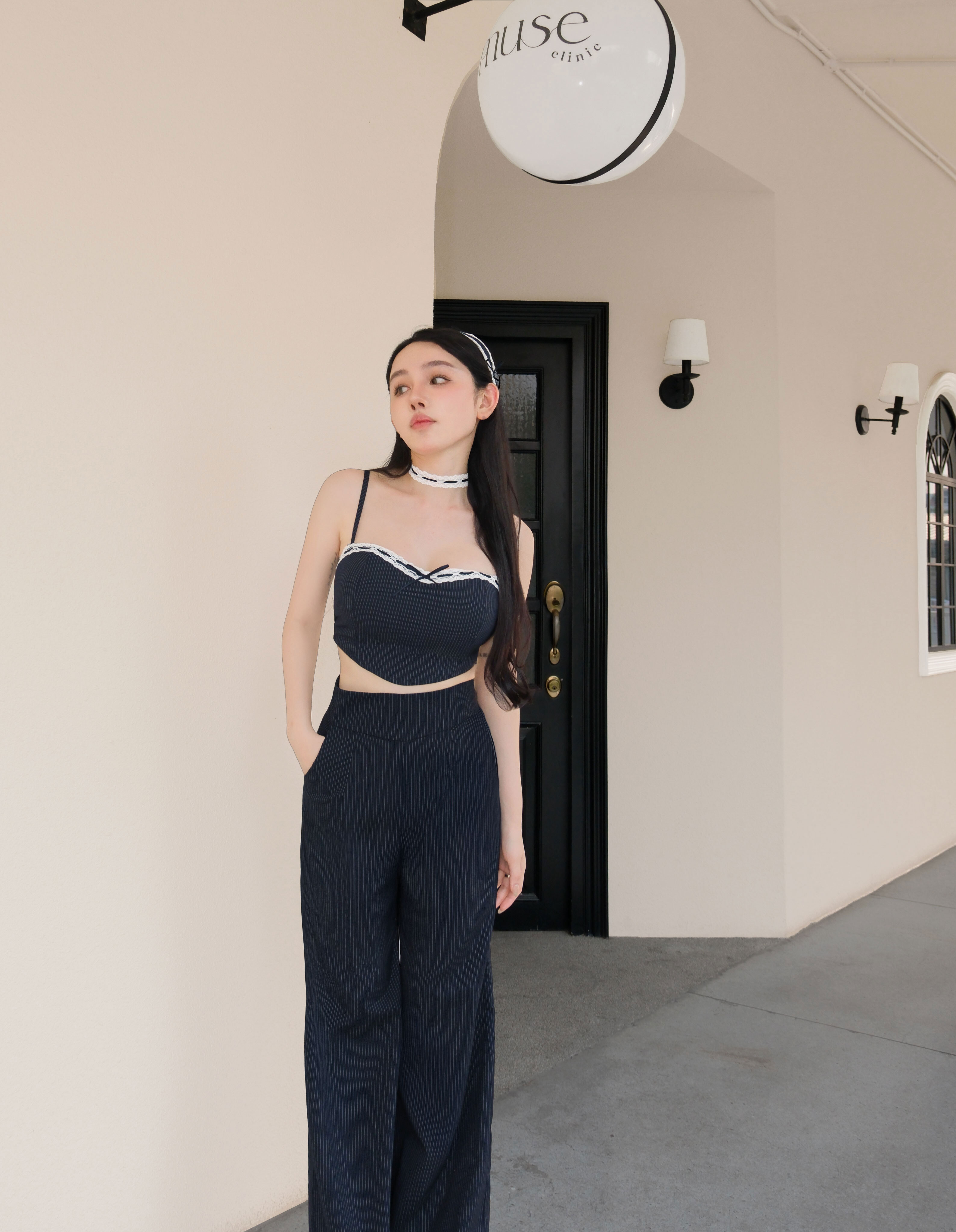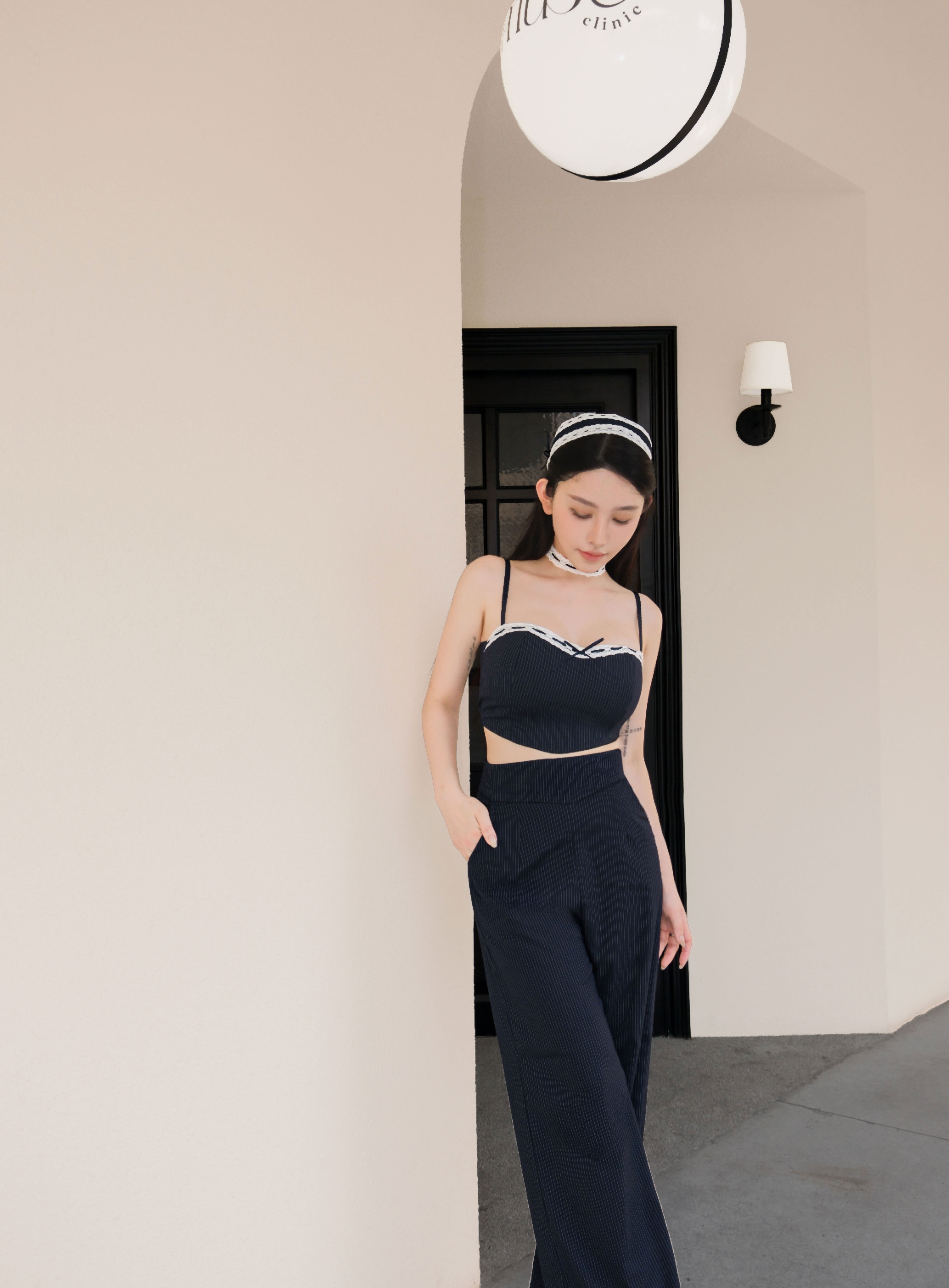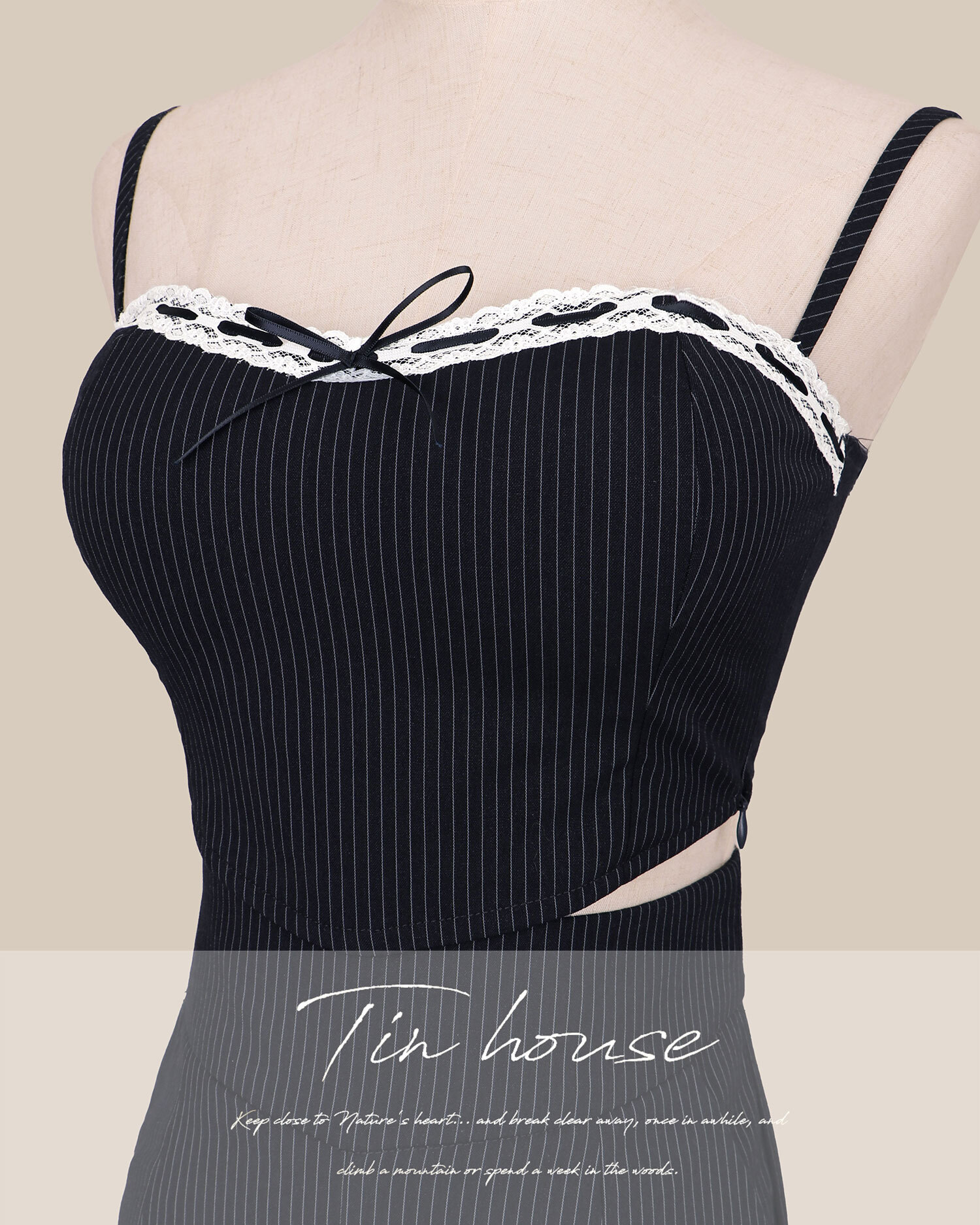 訂製-純欲緞帶蕾絲x條紋桃心套裝