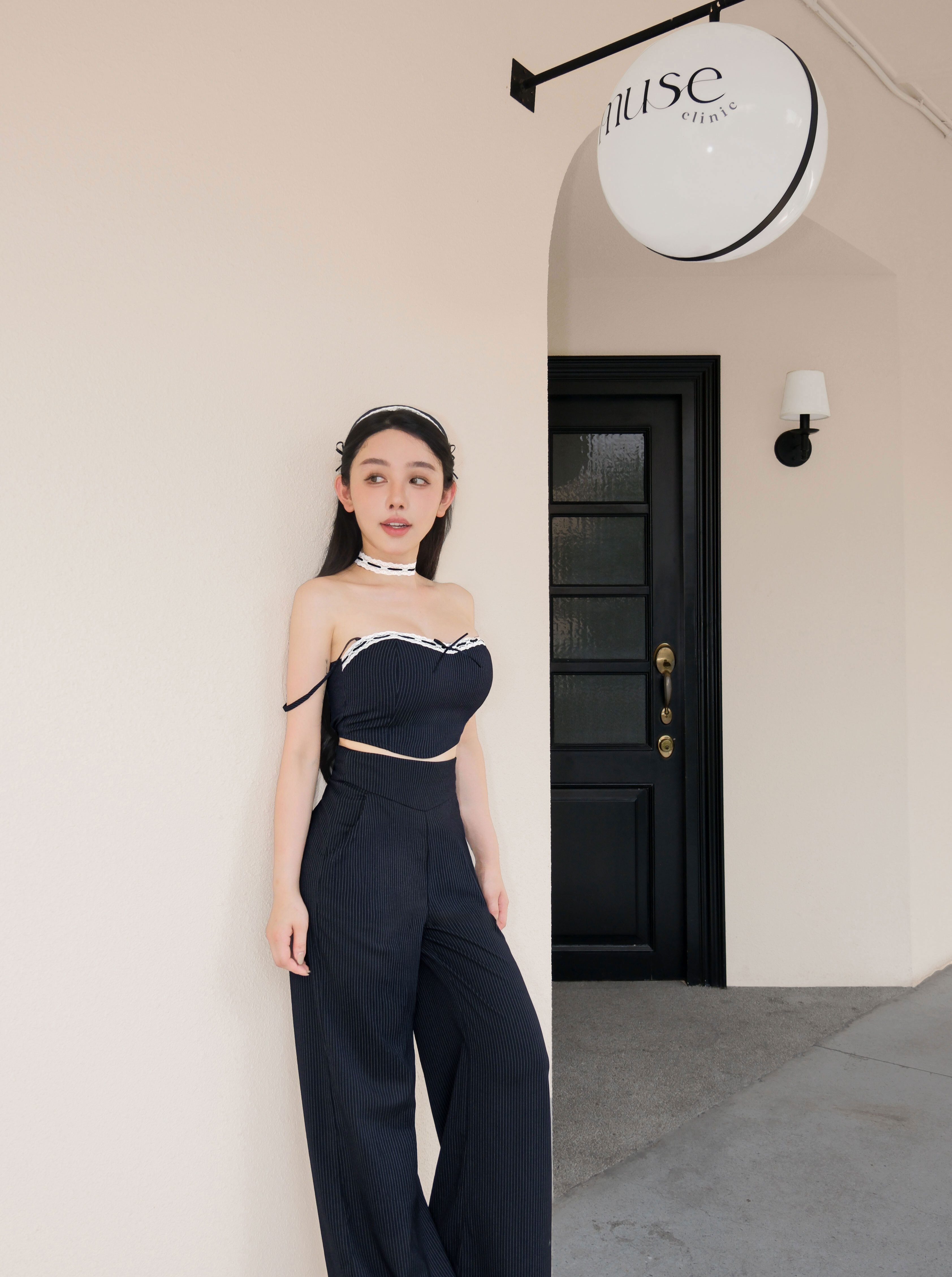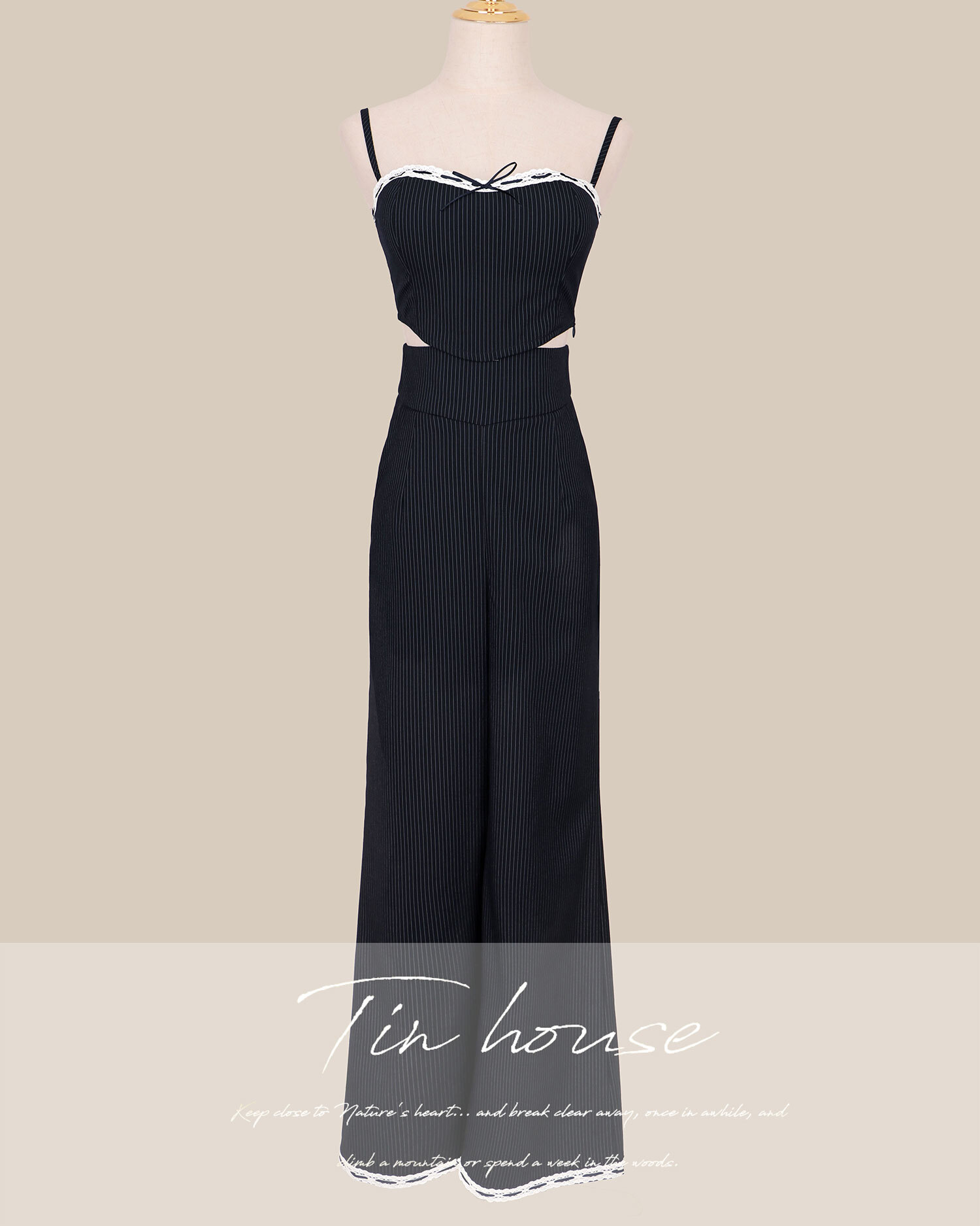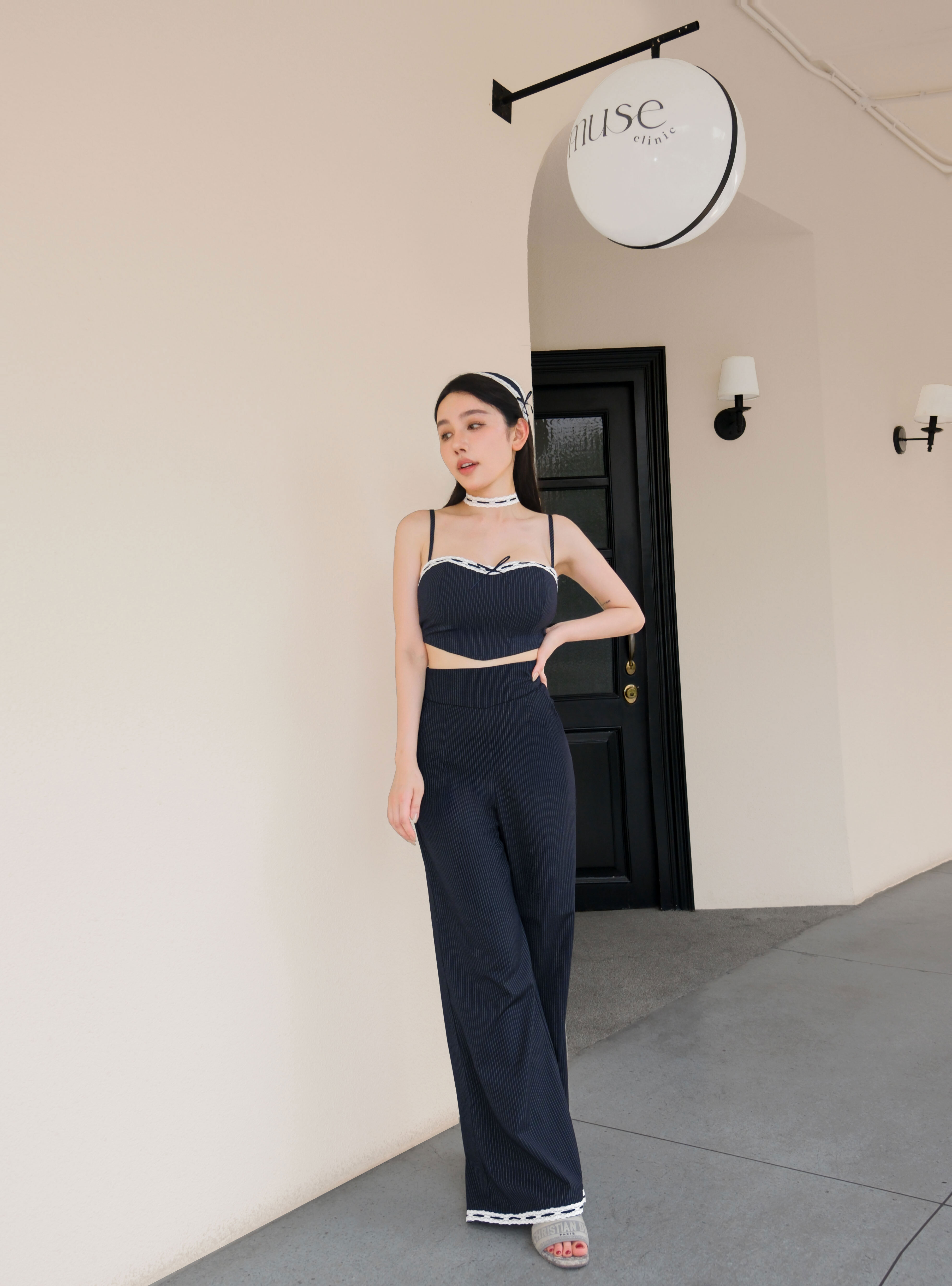 訂製-純欲緞帶蕾絲x條紋桃心套裝