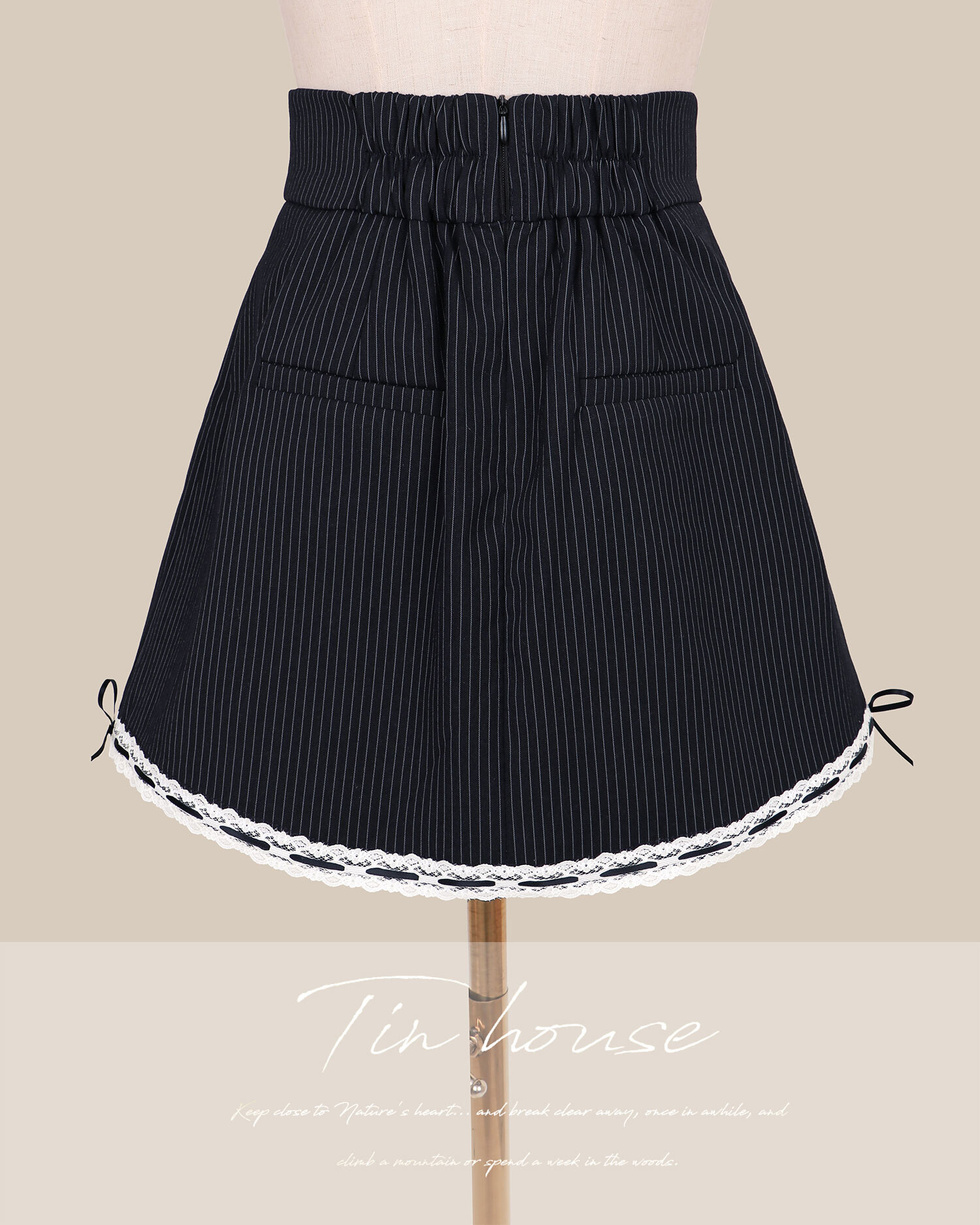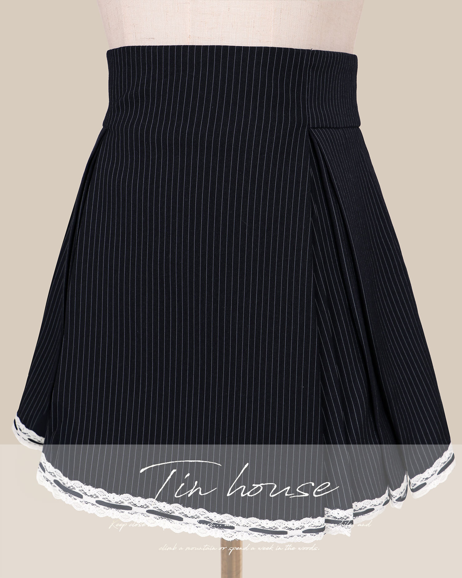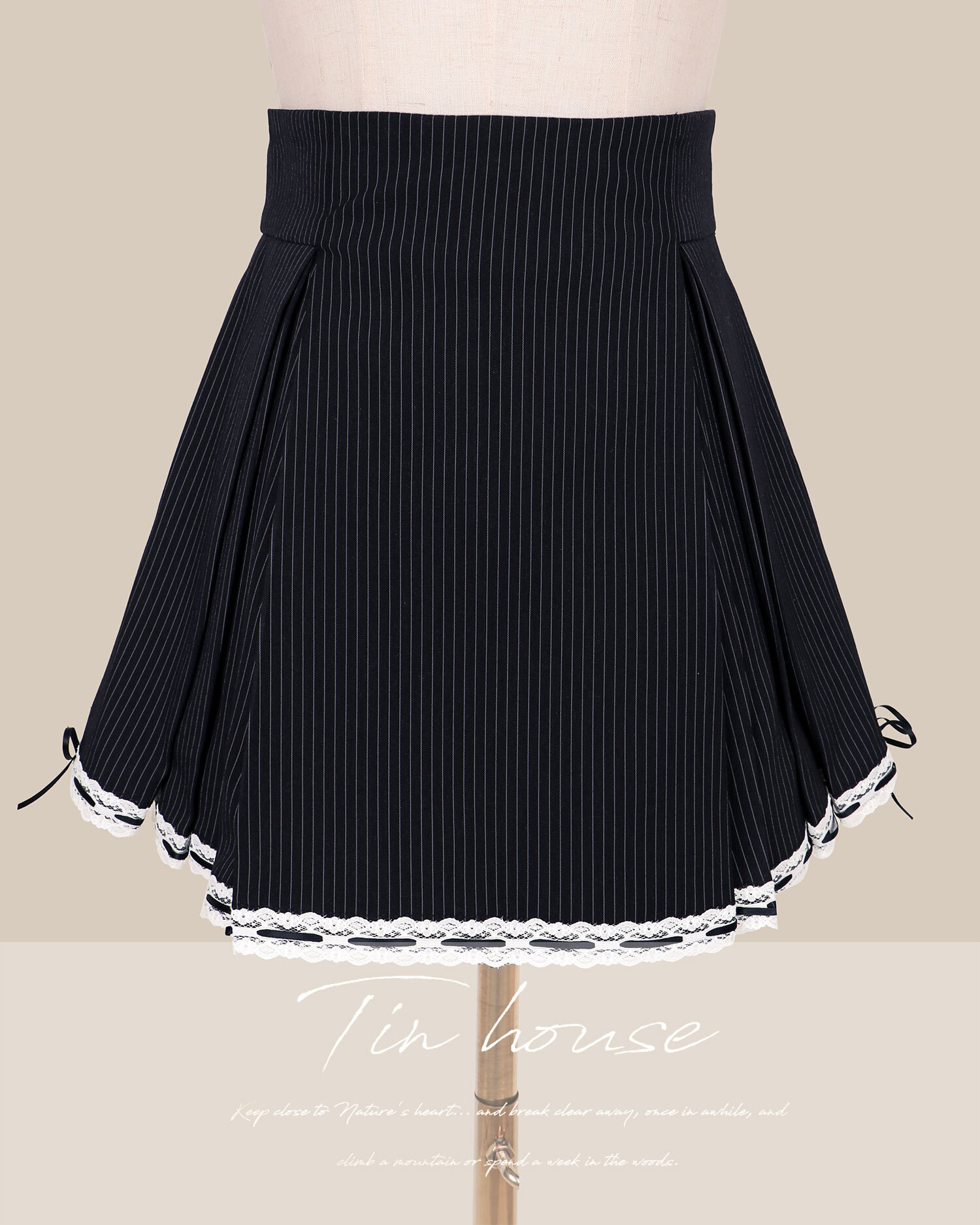 訂製-純欲緞帶蕾絲x條紋百褶裙