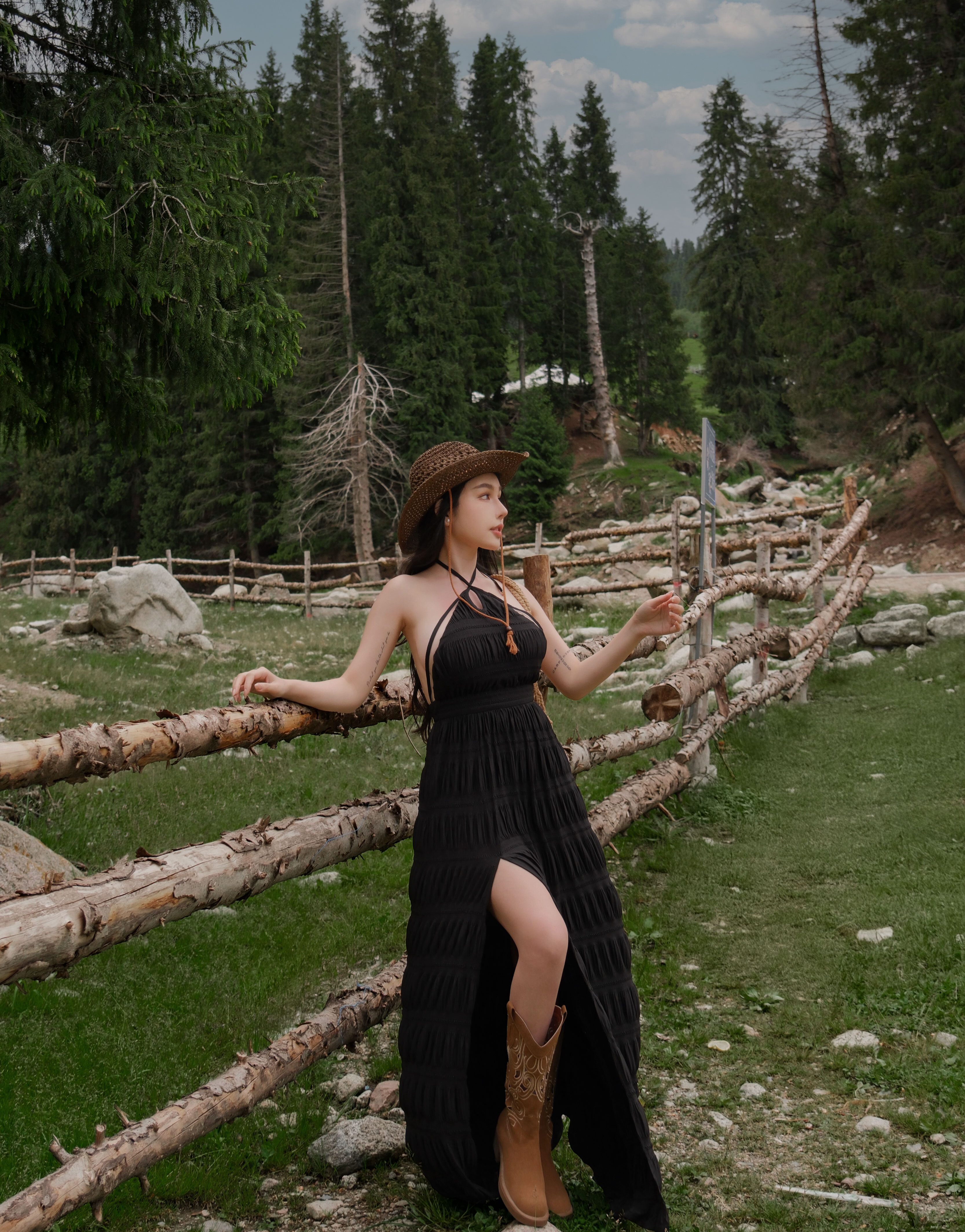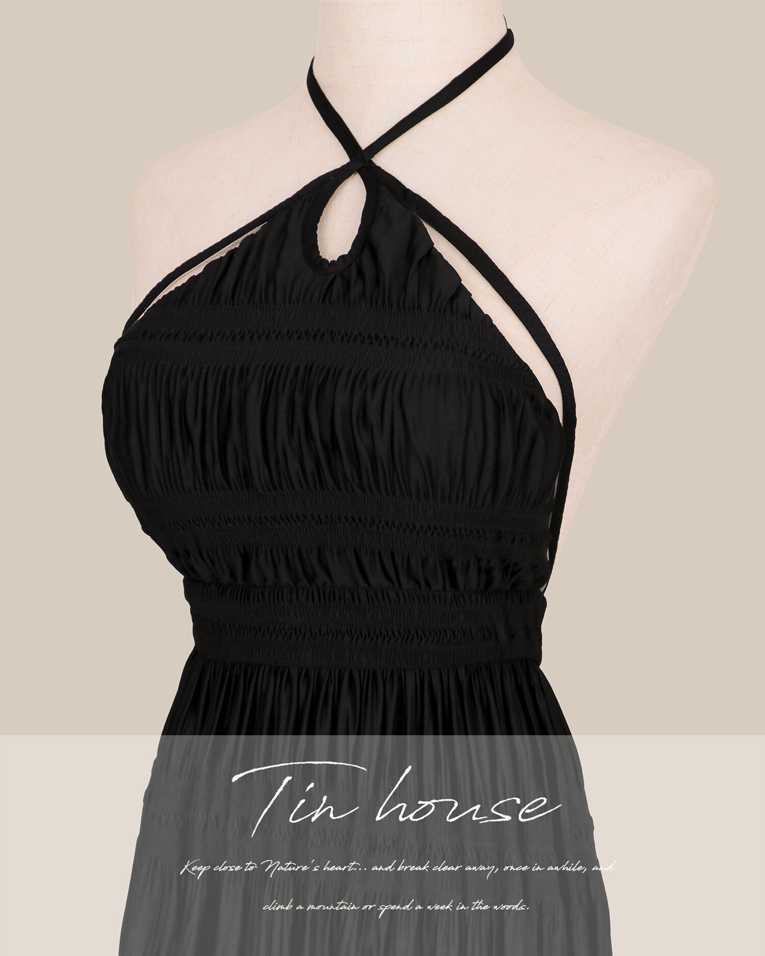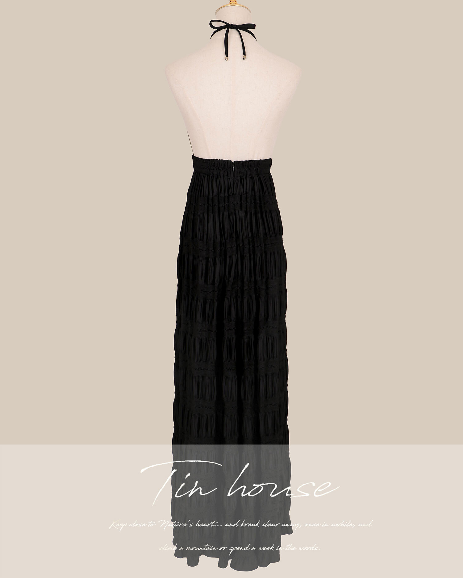 訂製-性感削肩露網紗壓皺長洋