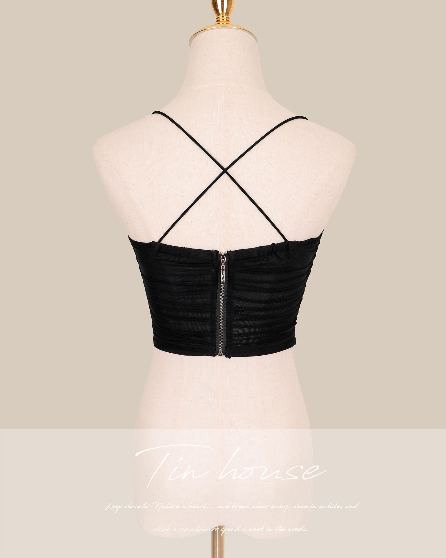 指定商品,抓皺網紗細肩背心-2件優惠價