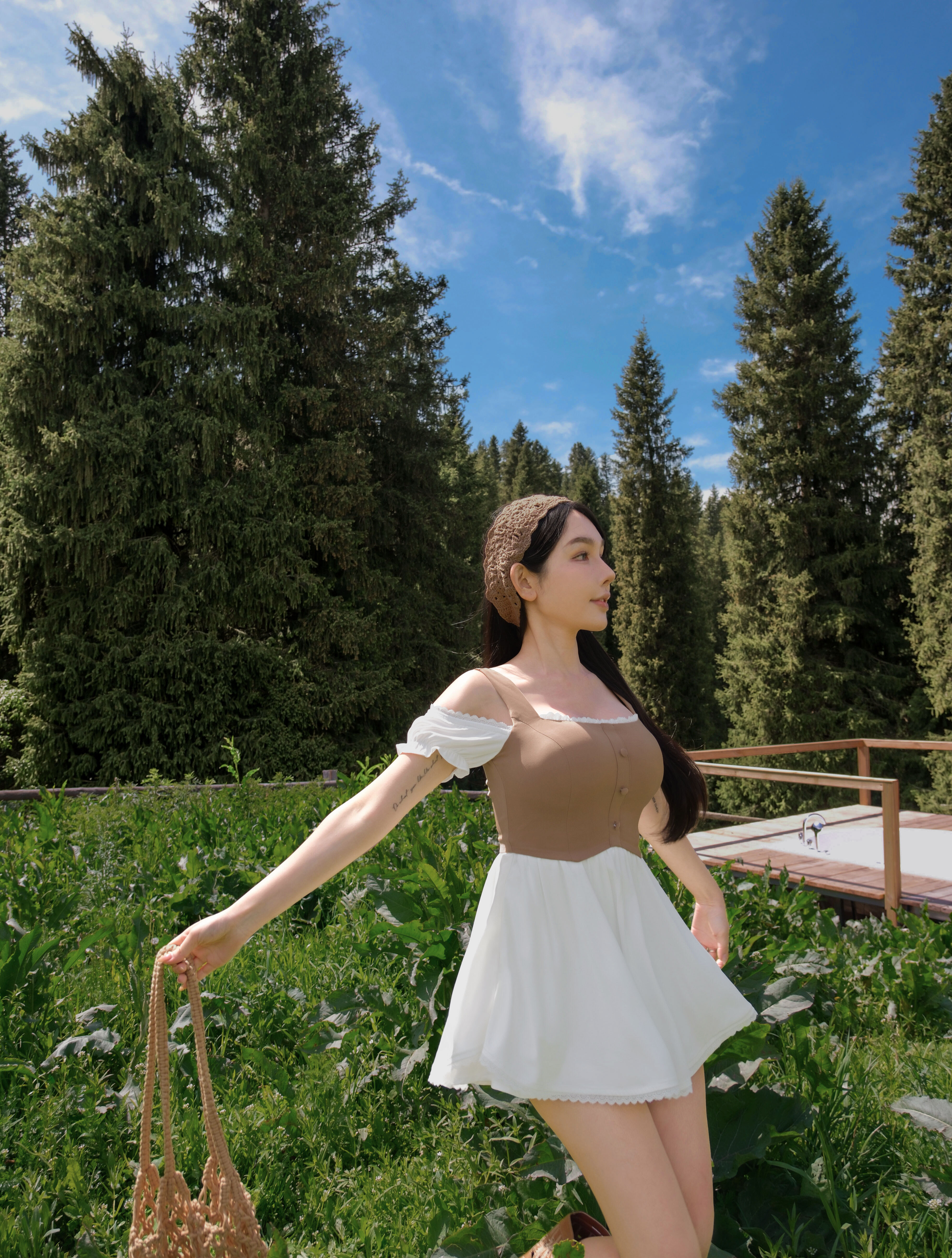訂製-假兩件撞色背心連身褲裝