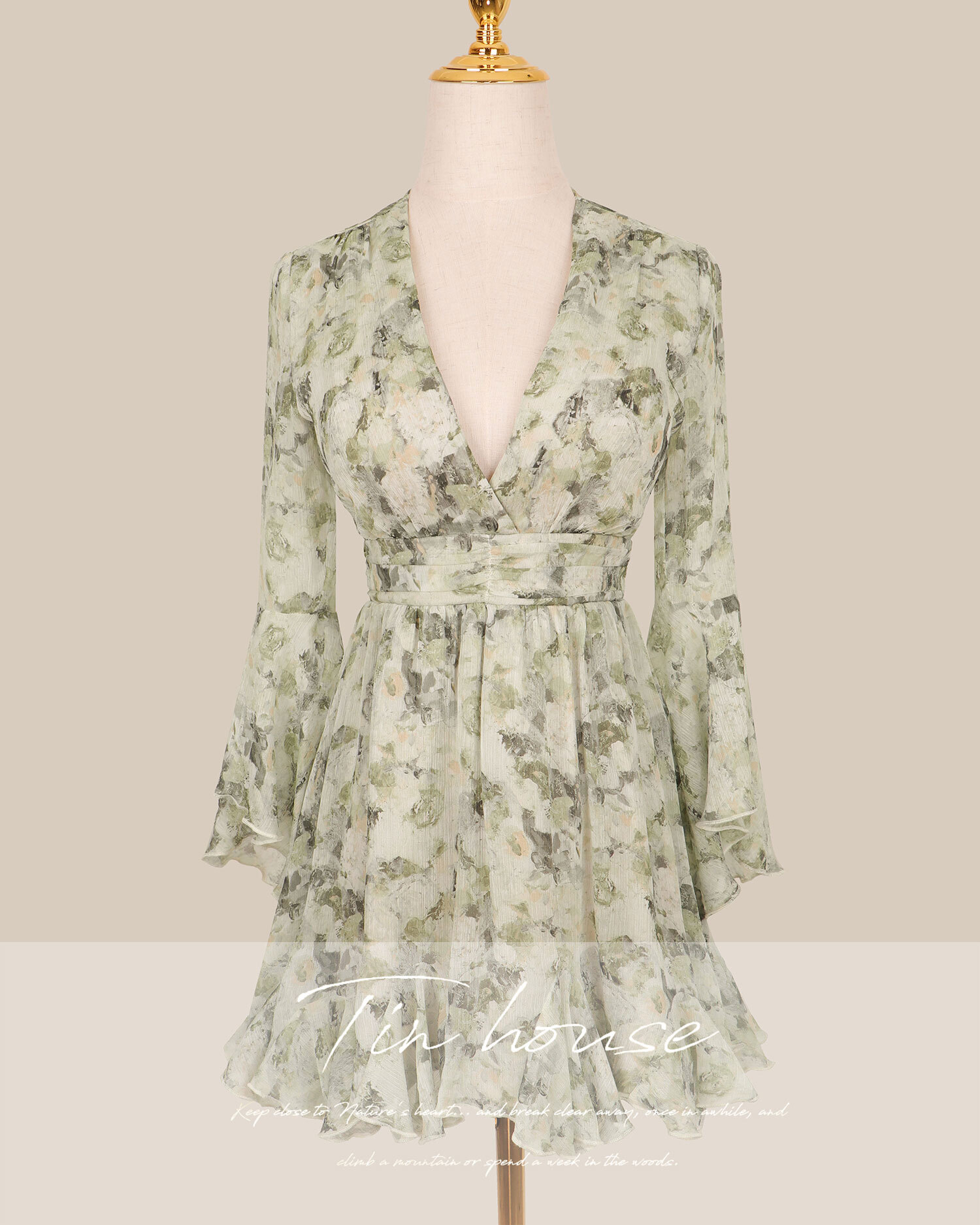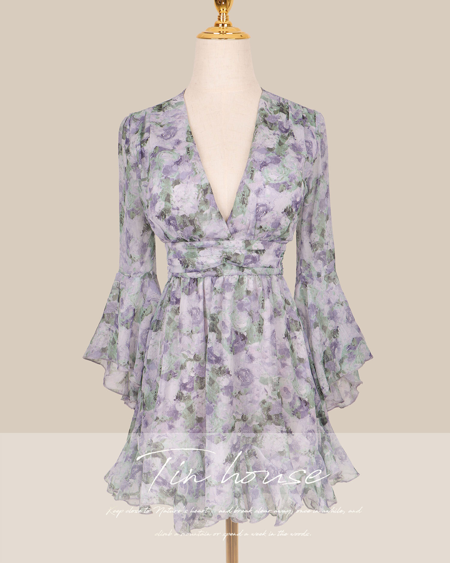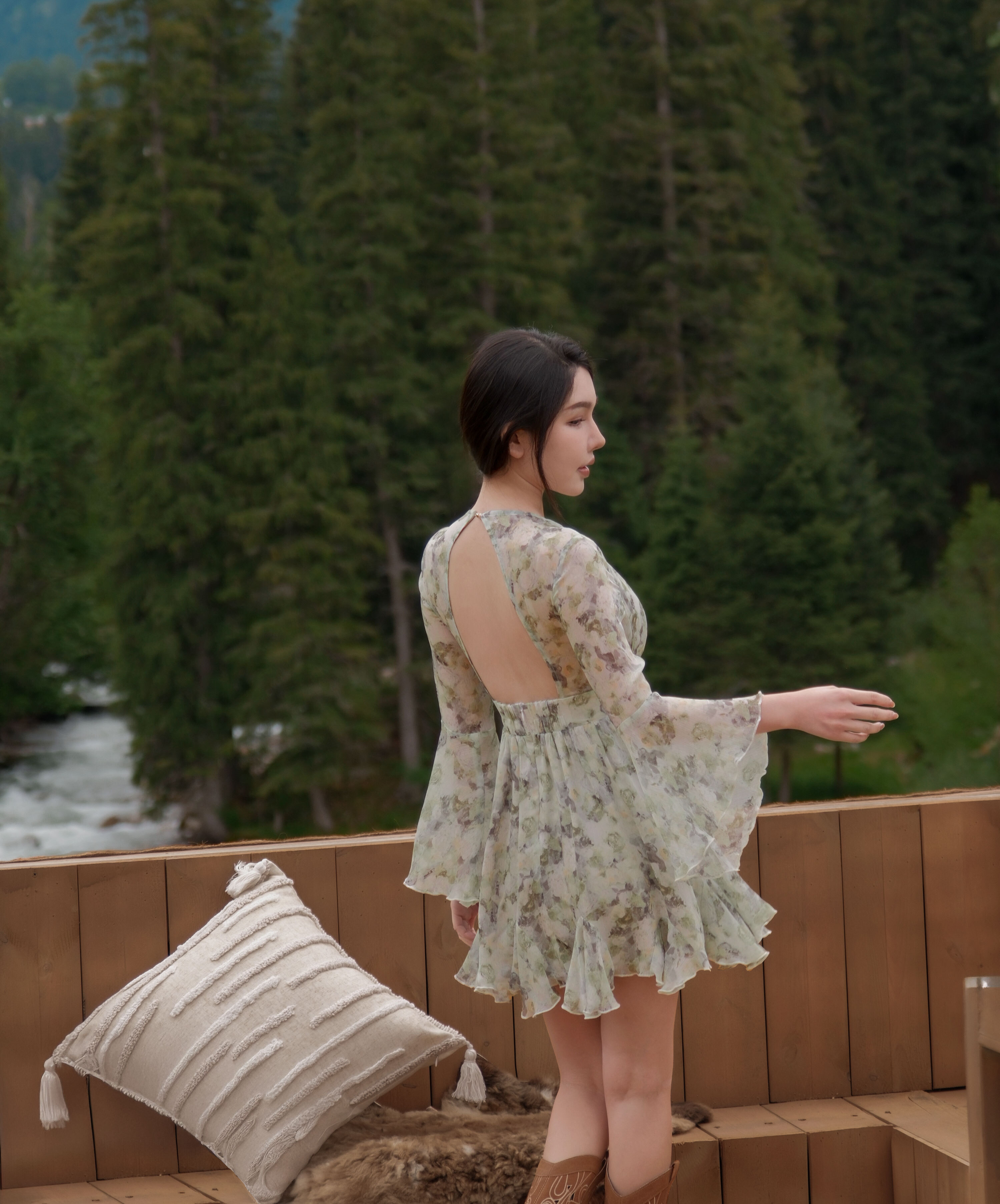 訂製-浪漫油畫印花水袖雪紡短洋