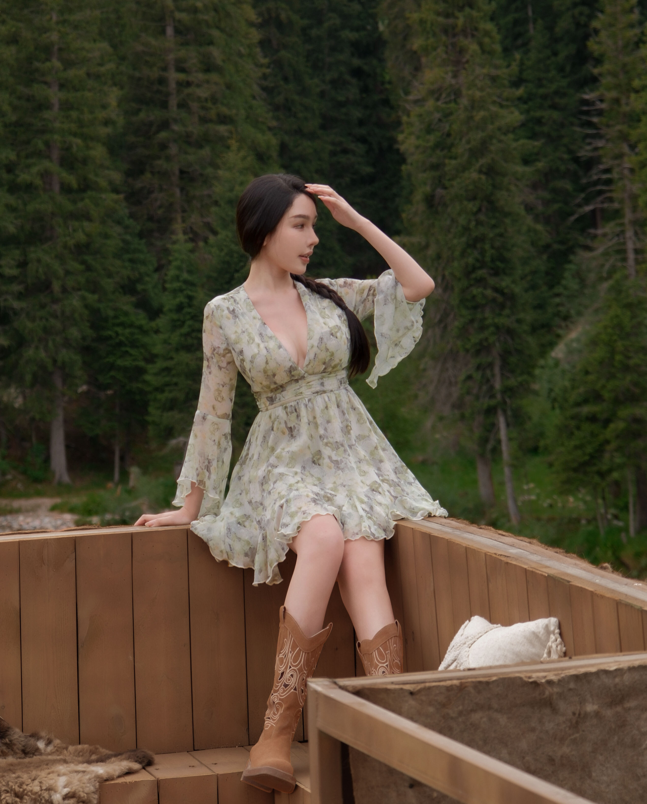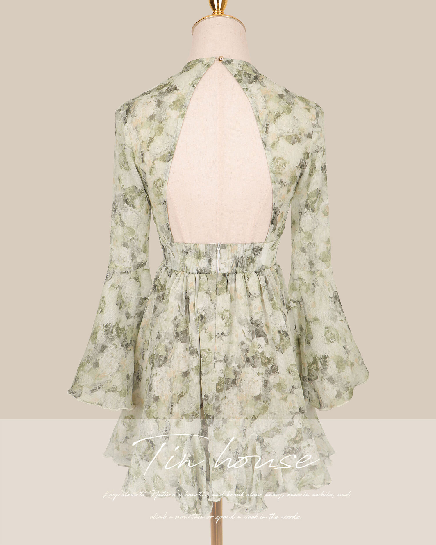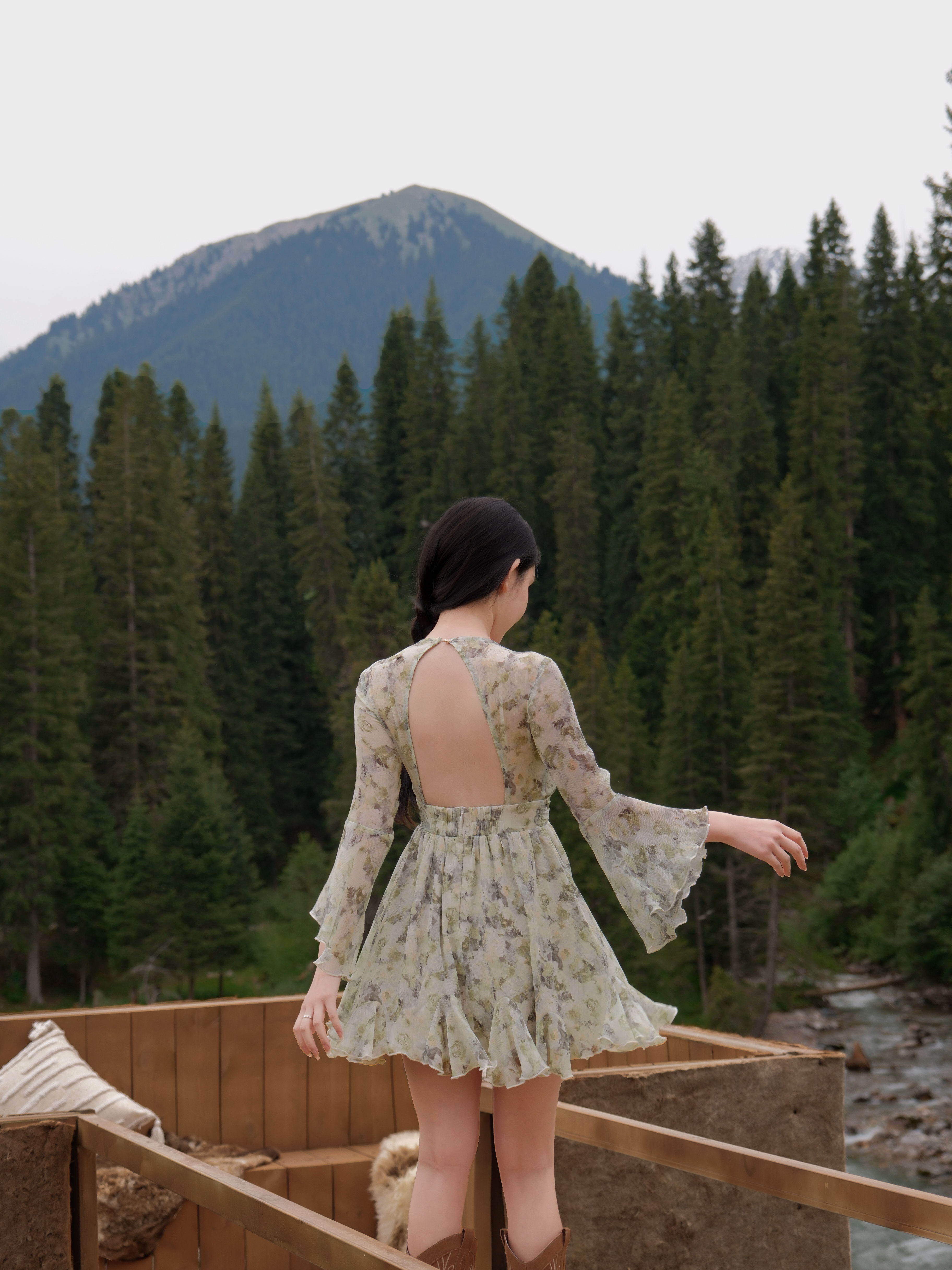 訂製-浪漫油畫印花水袖雪紡短洋