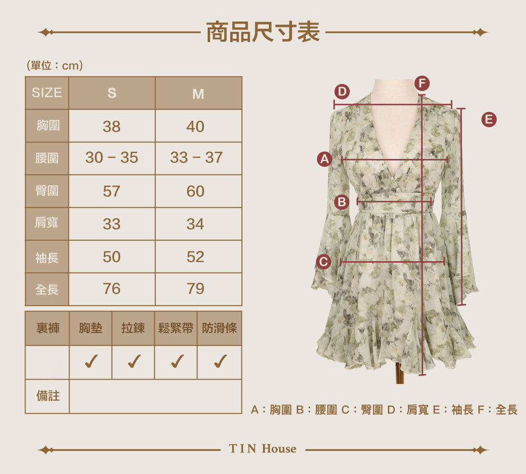 5. 如需整燙,請以低溫隔布熨燙,溫度不可高於110°C 或使用掛燙式蒸氣熨斗。