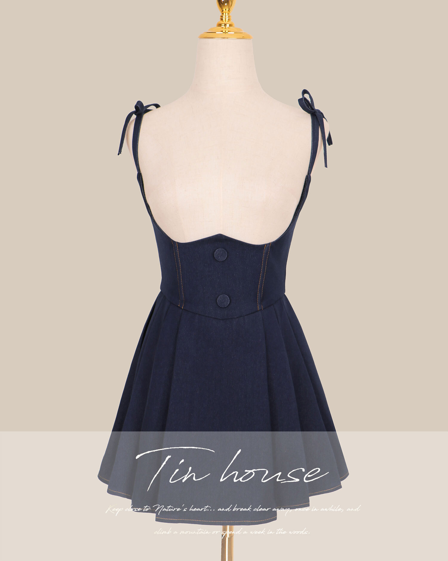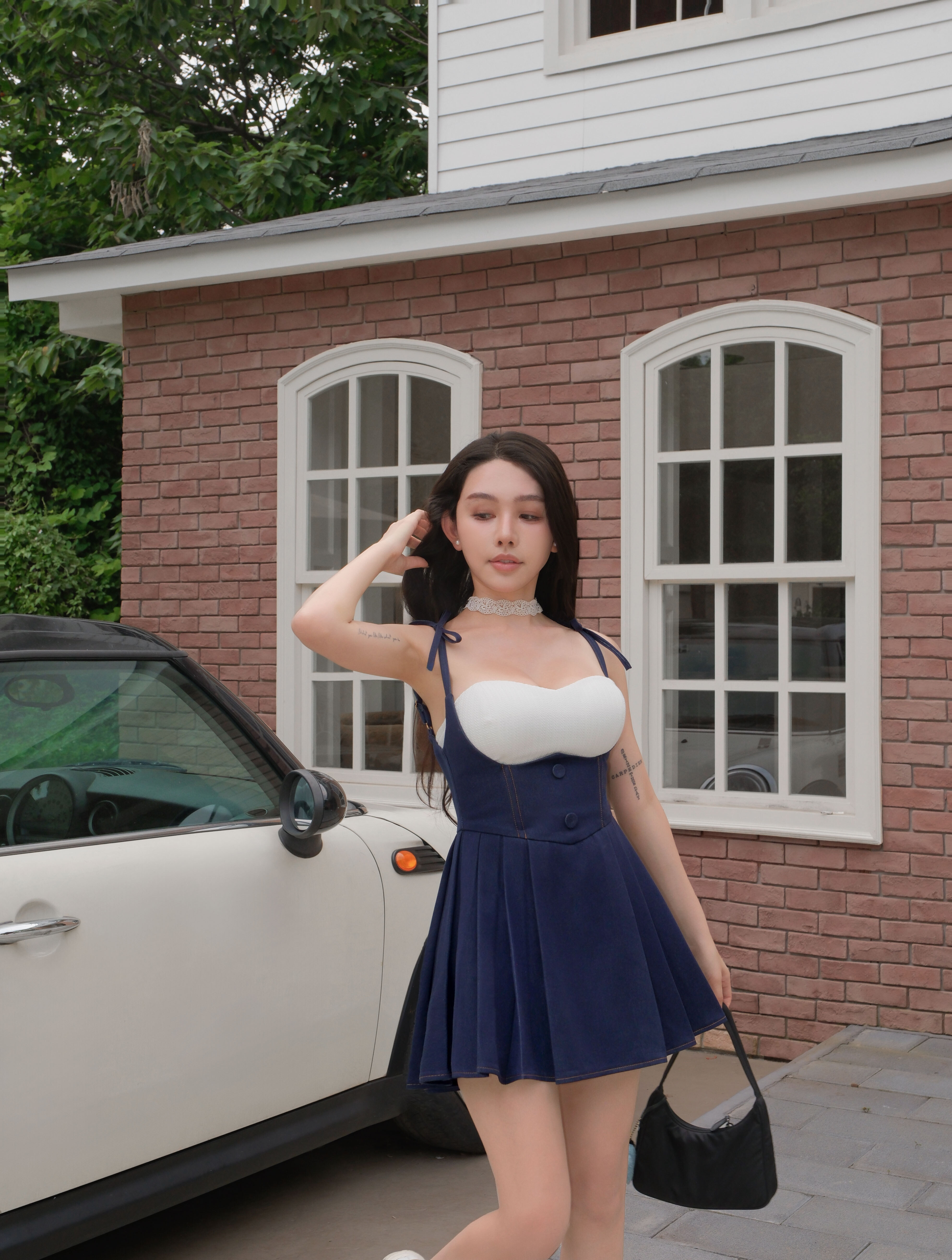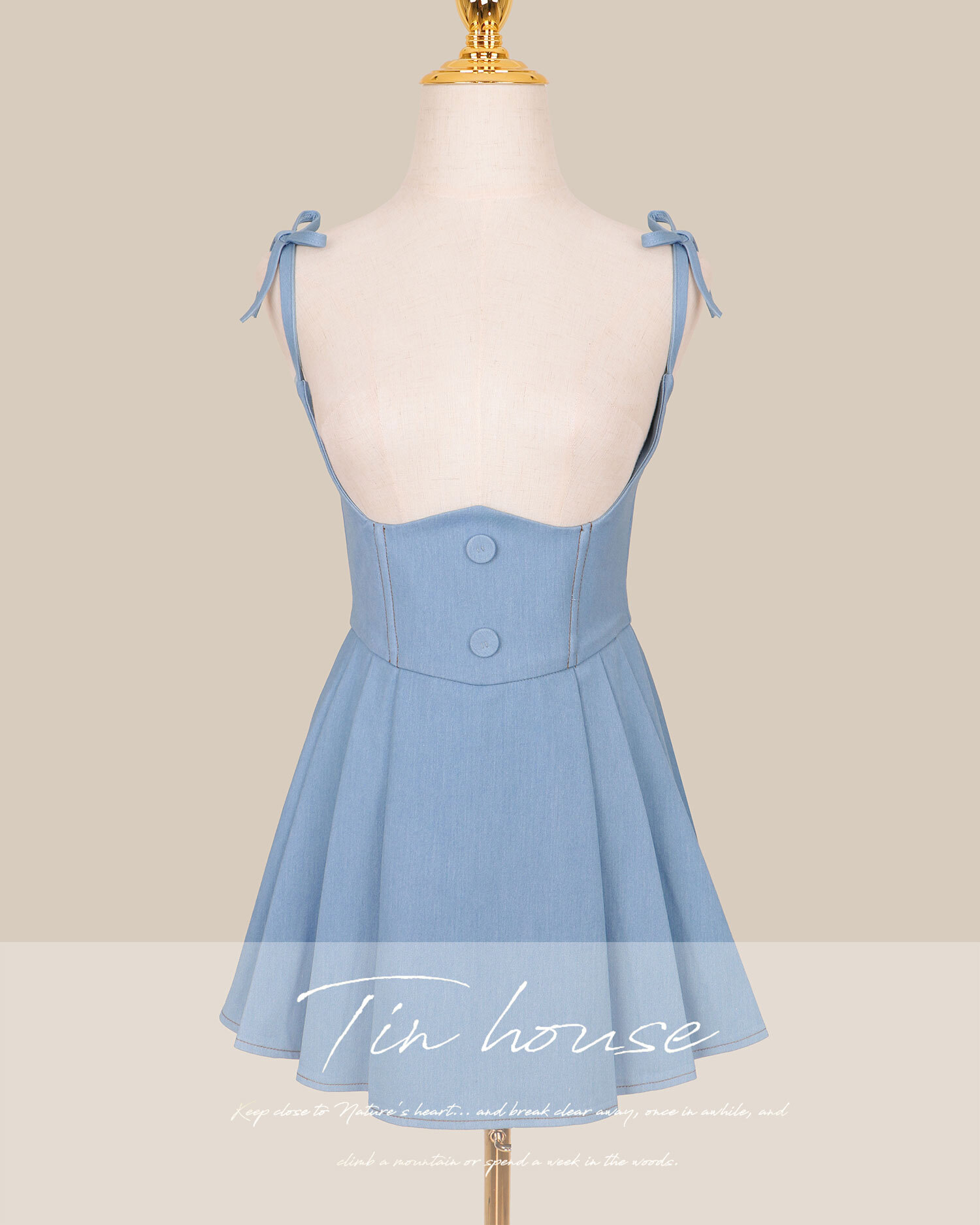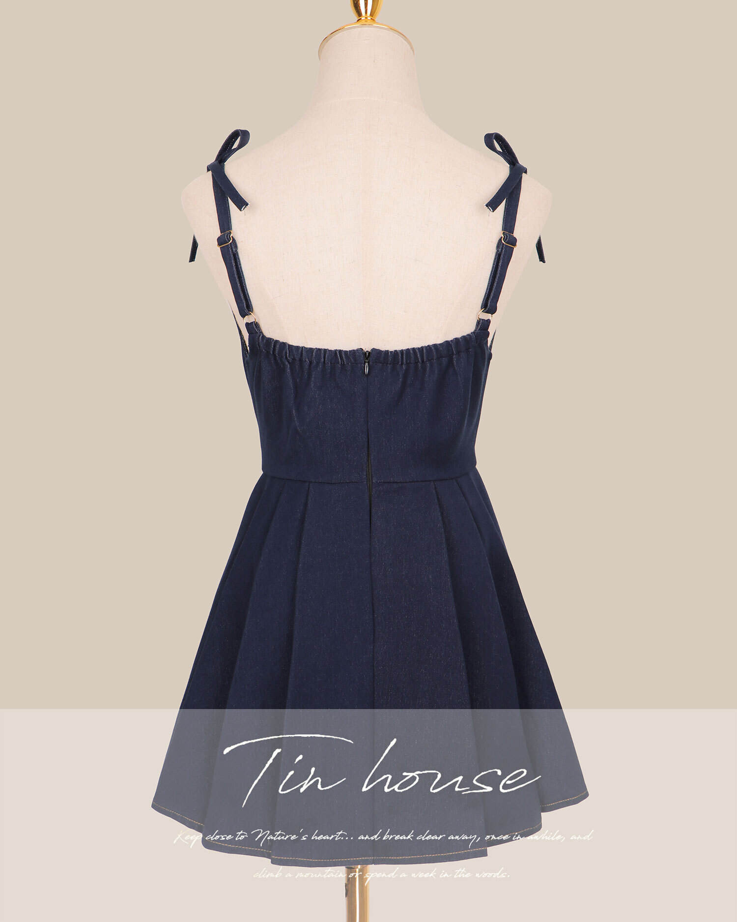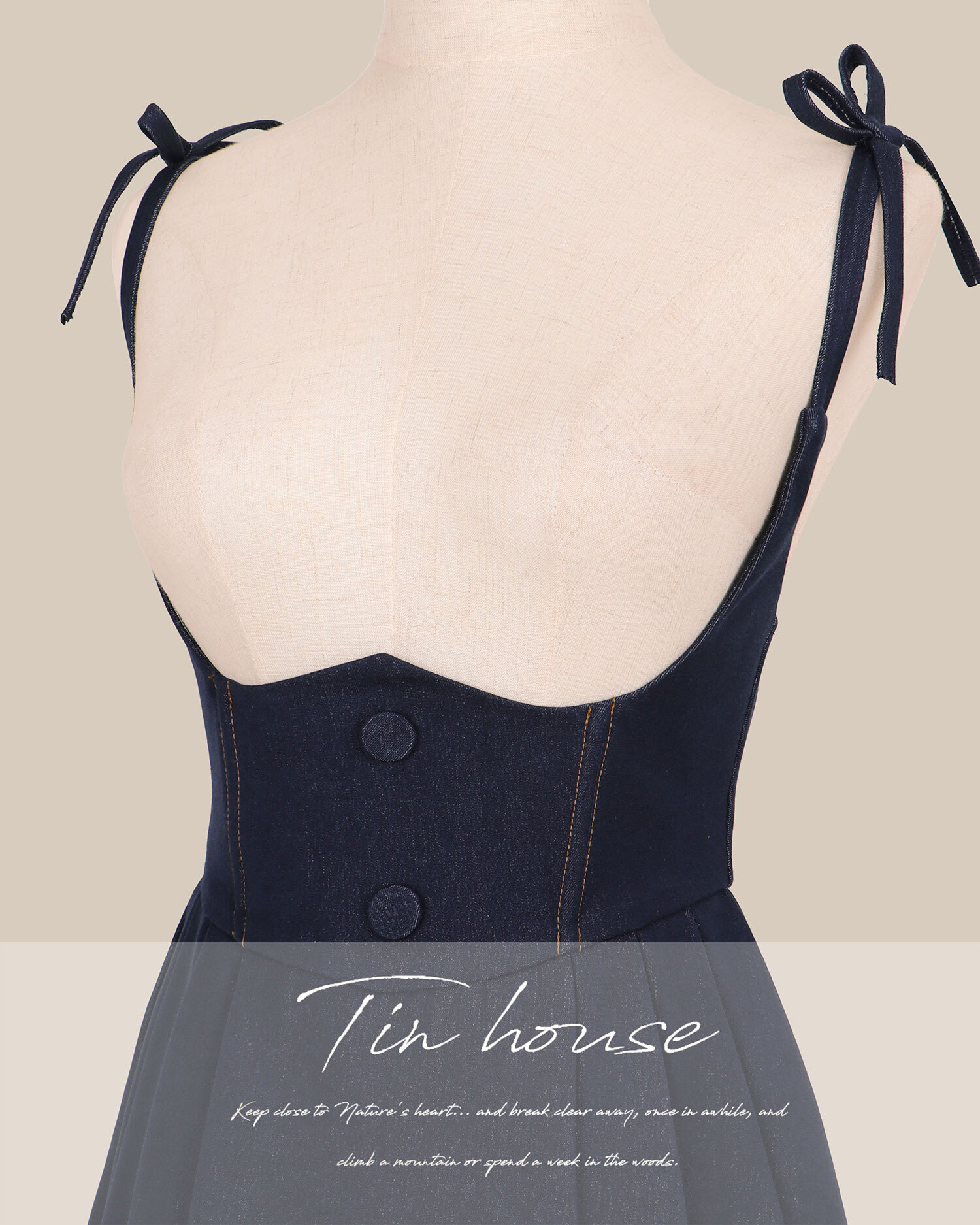 訂製-車線牛仔高腰百褶吊帶褲裙