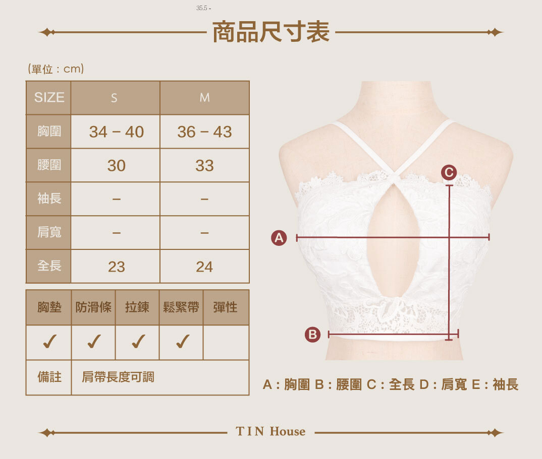此款蕾絲無彈力。固稍偏小