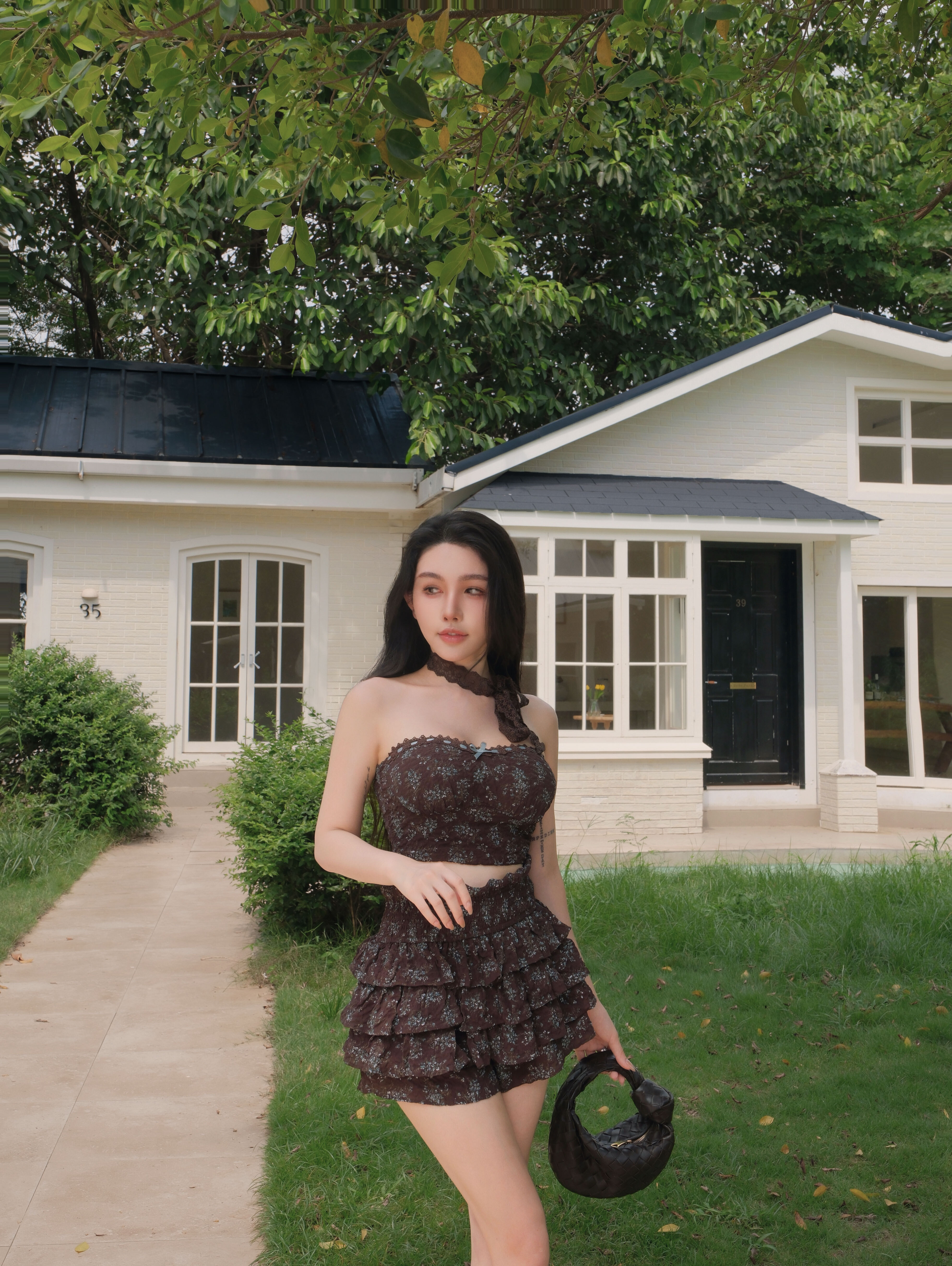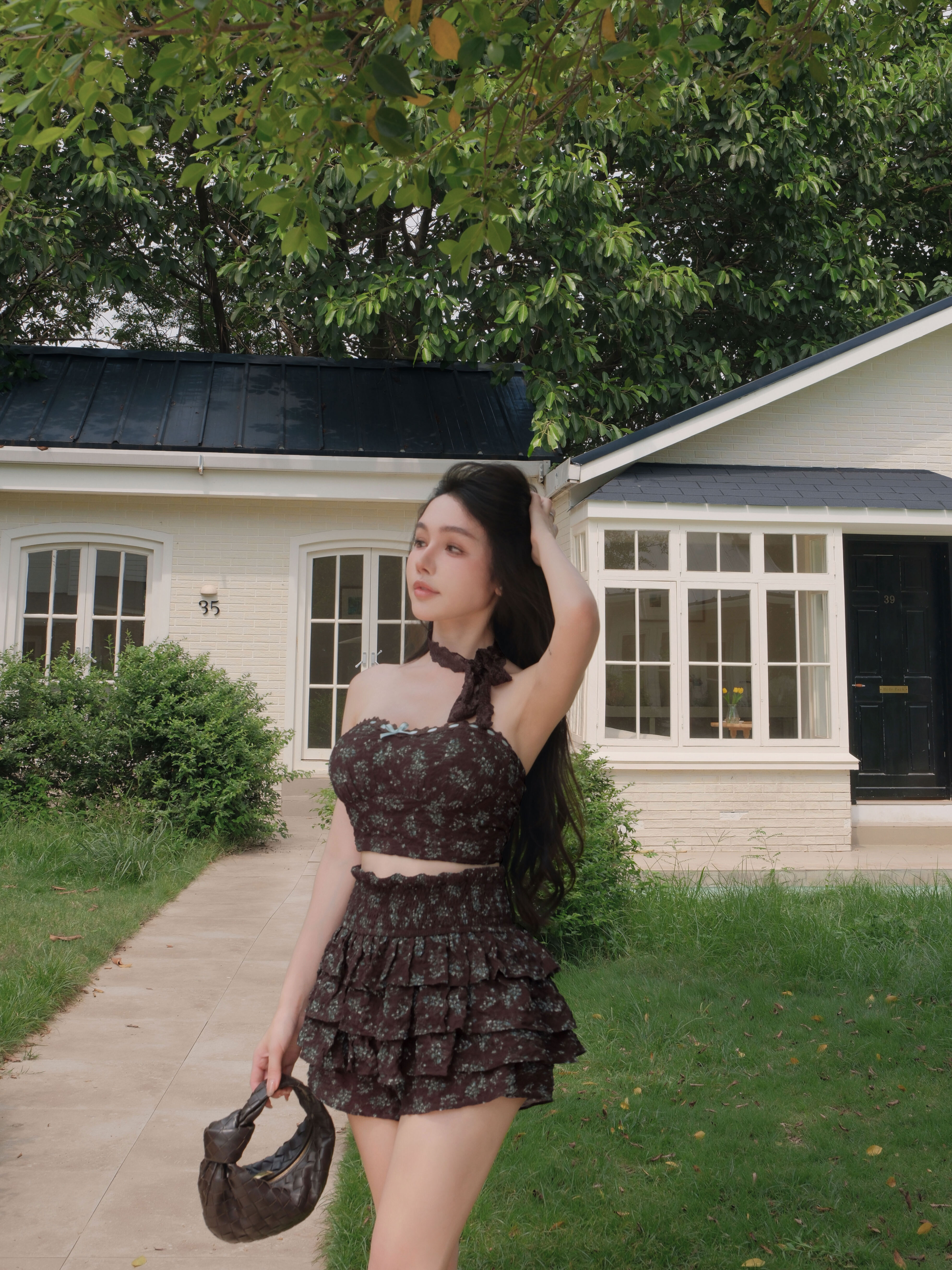 訂製-復古碎花捲邊荷葉短褲