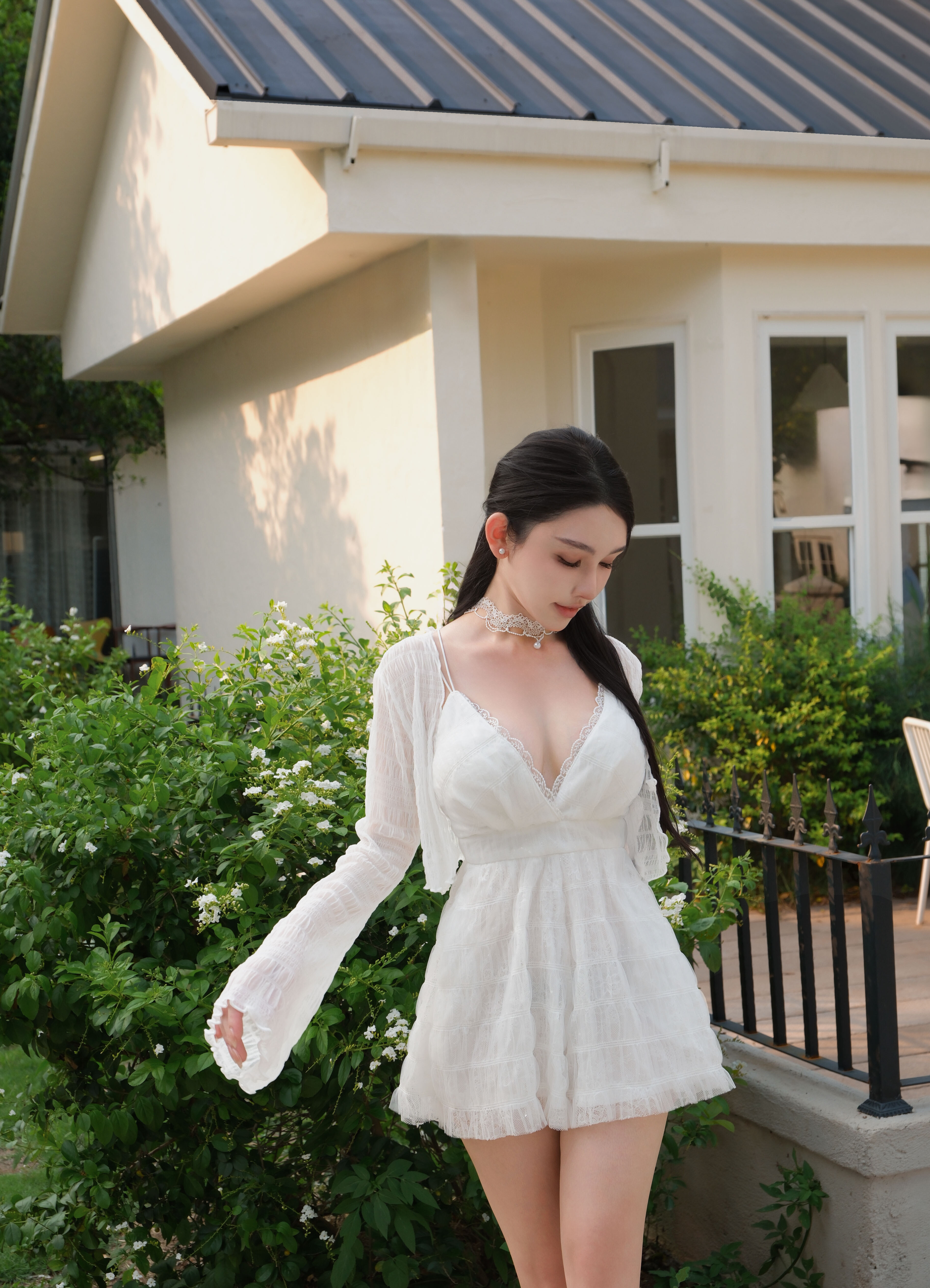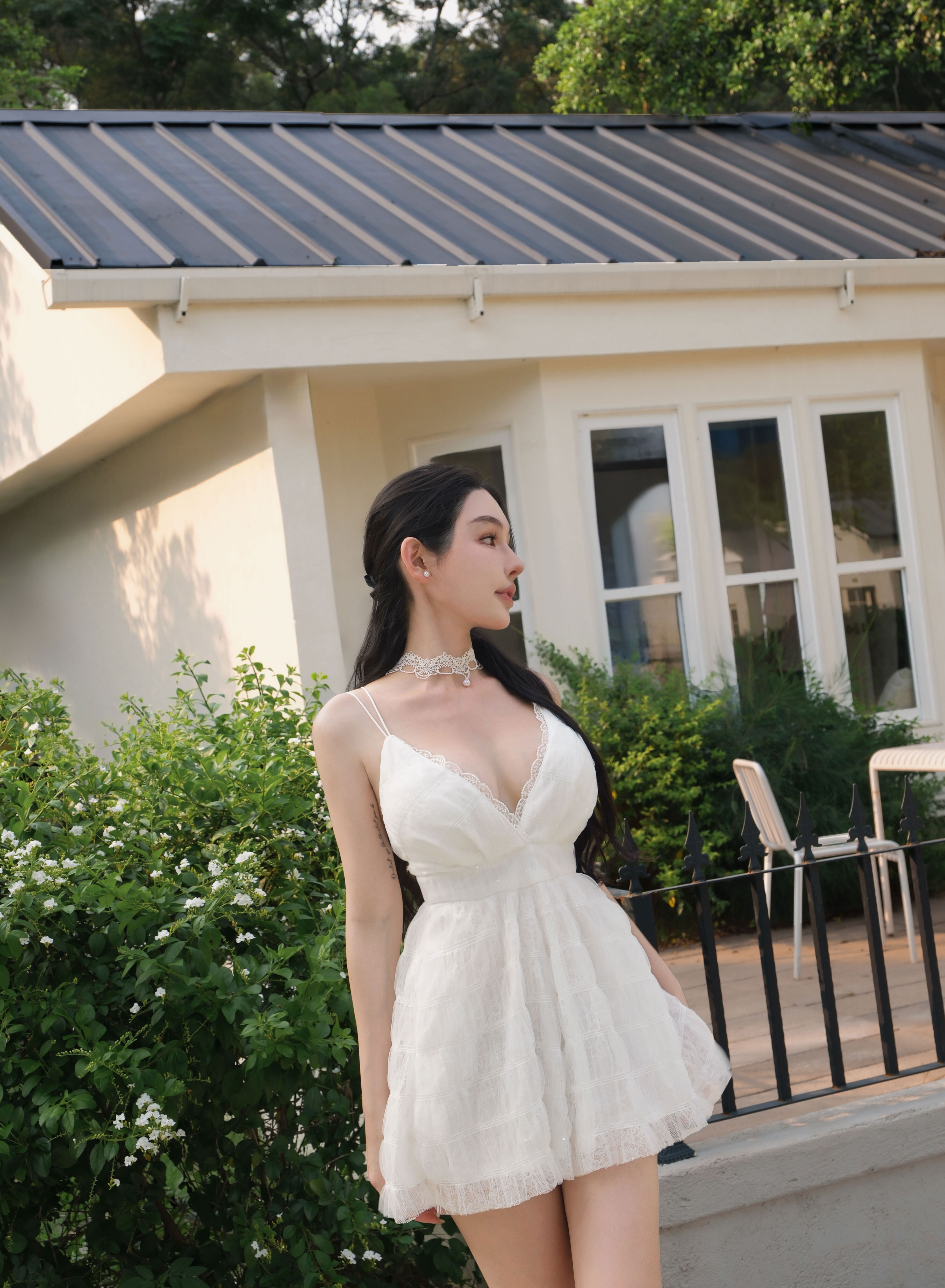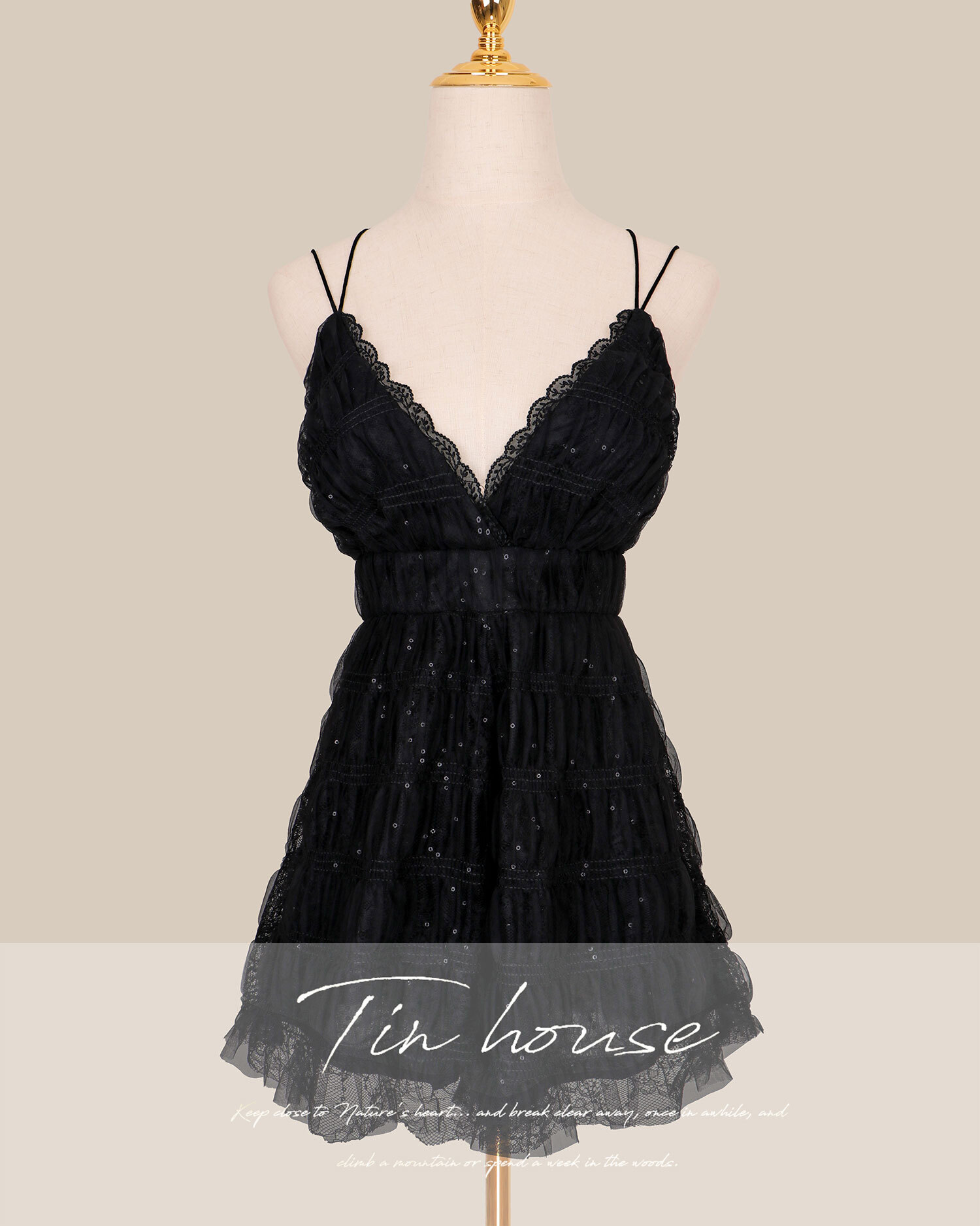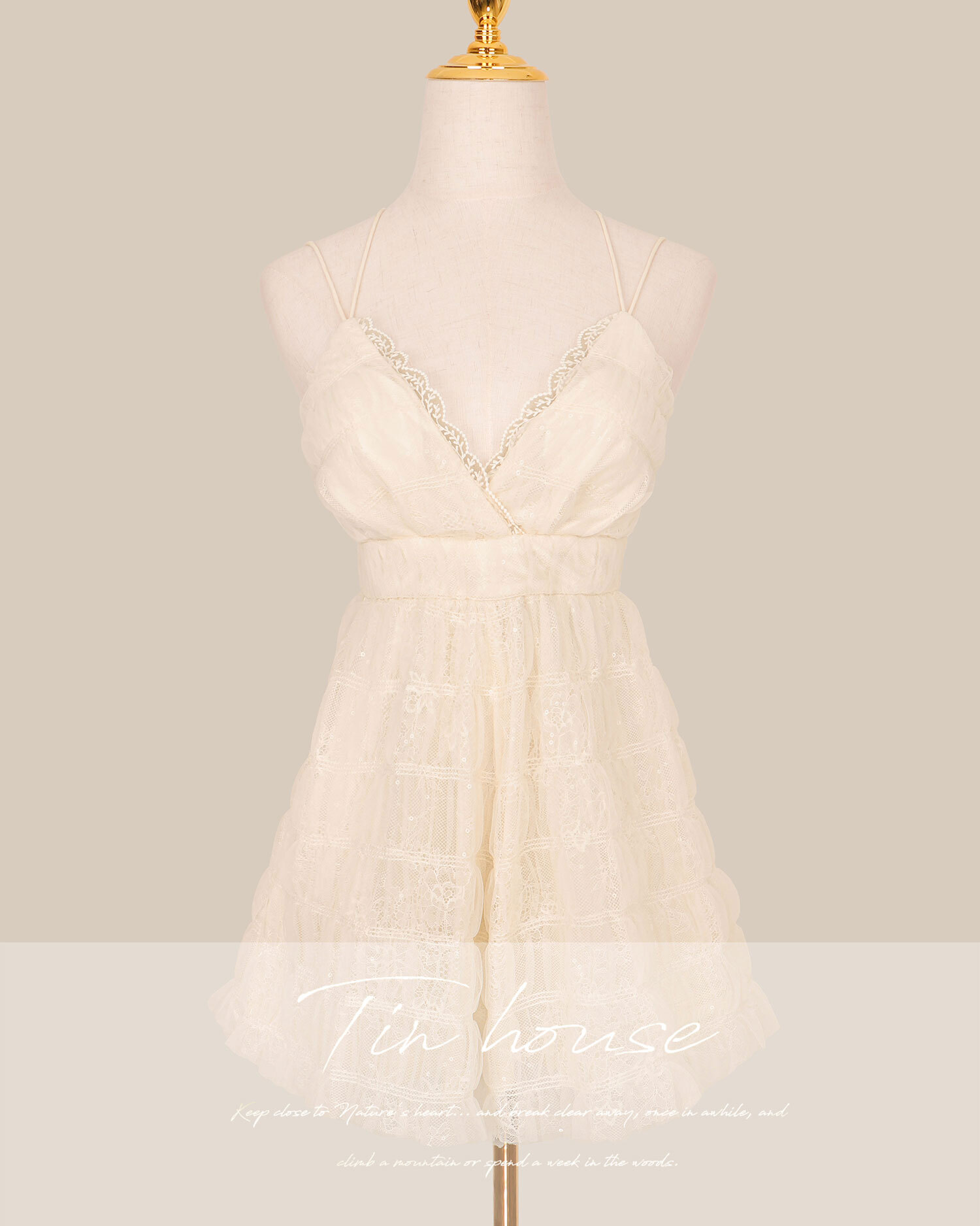 訂製-夢幻亮片蕾絲網紗連身短褲
