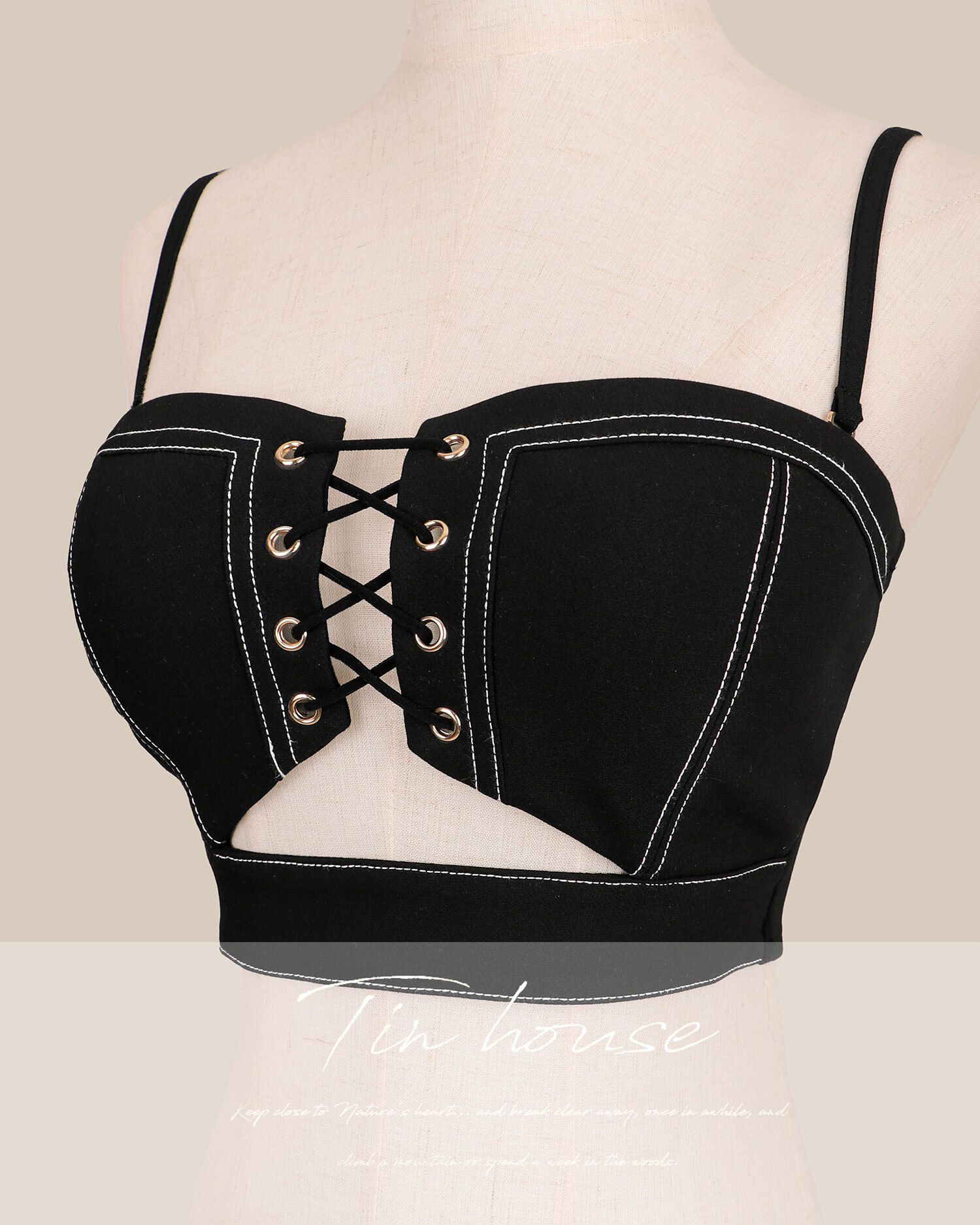 限定-個性穿繩鏤空車線馬甲