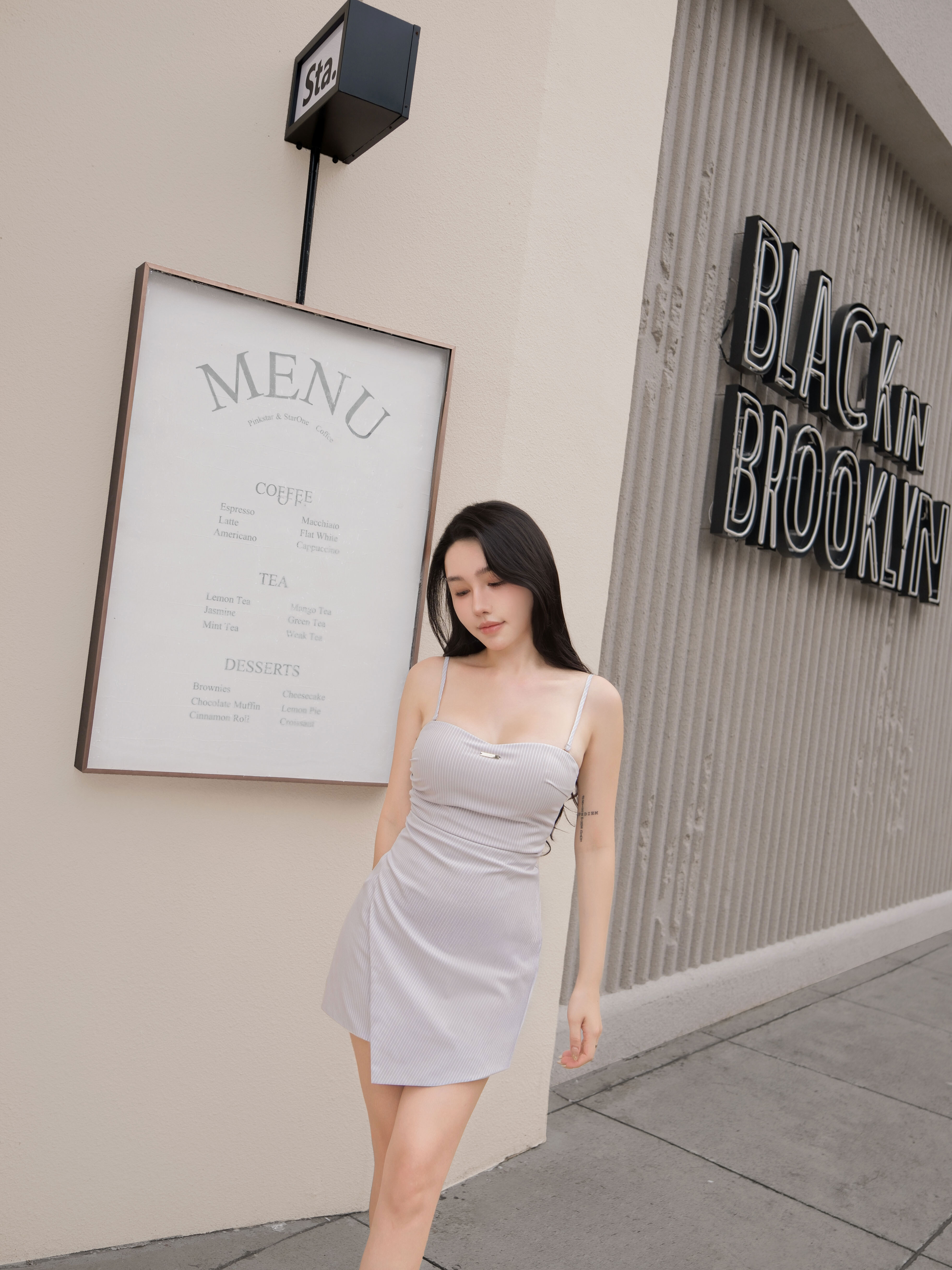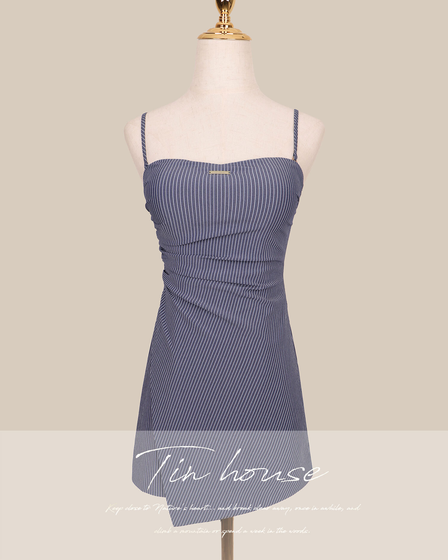 訂製-簡約條紋桃心開衩合身短洋