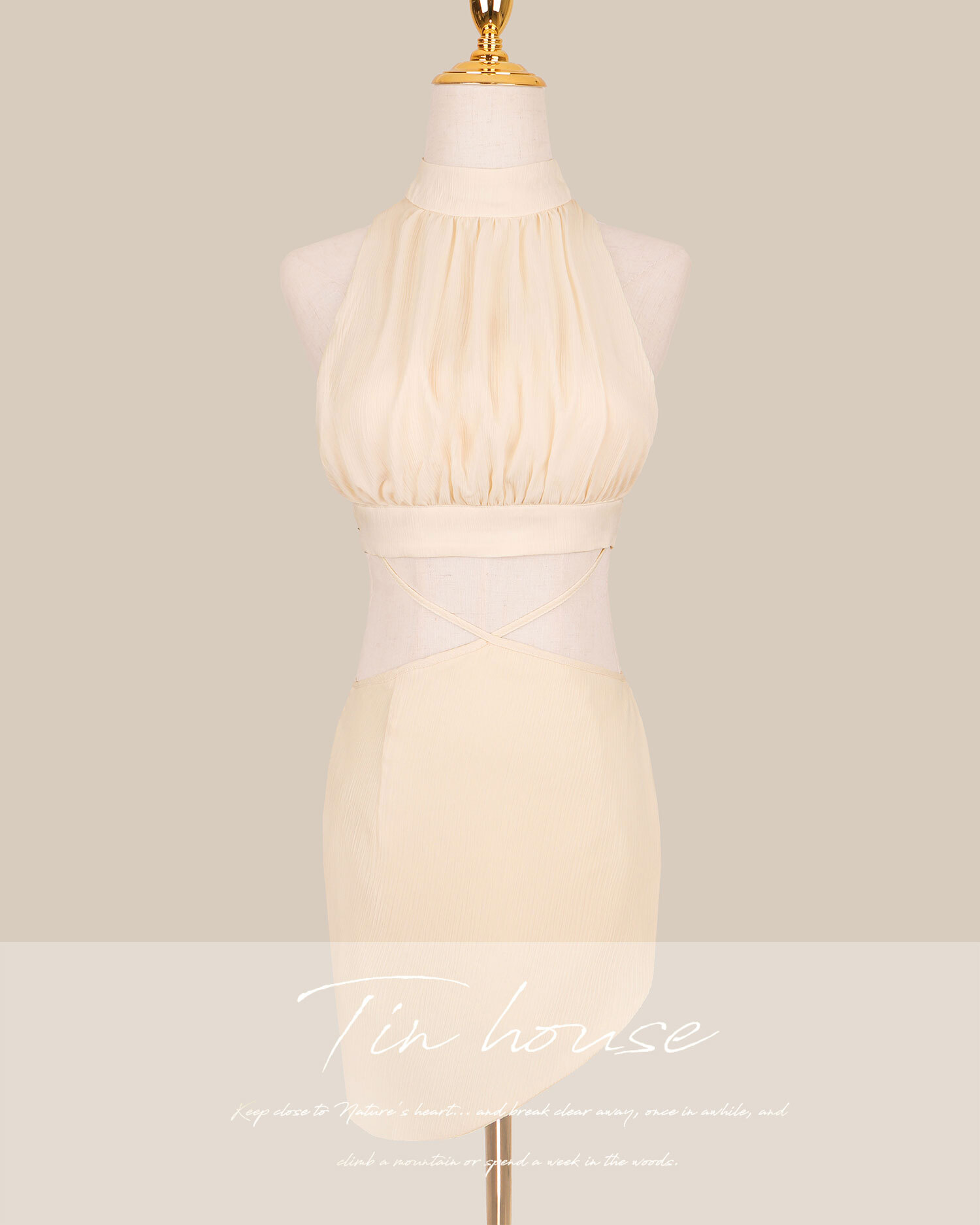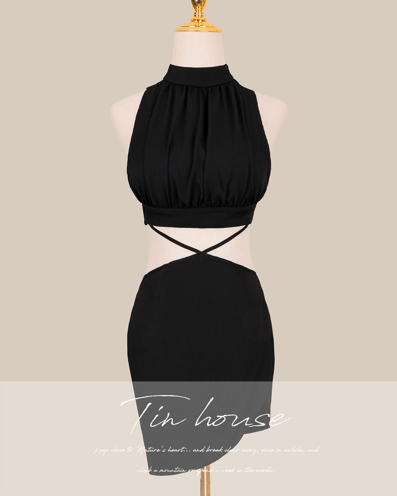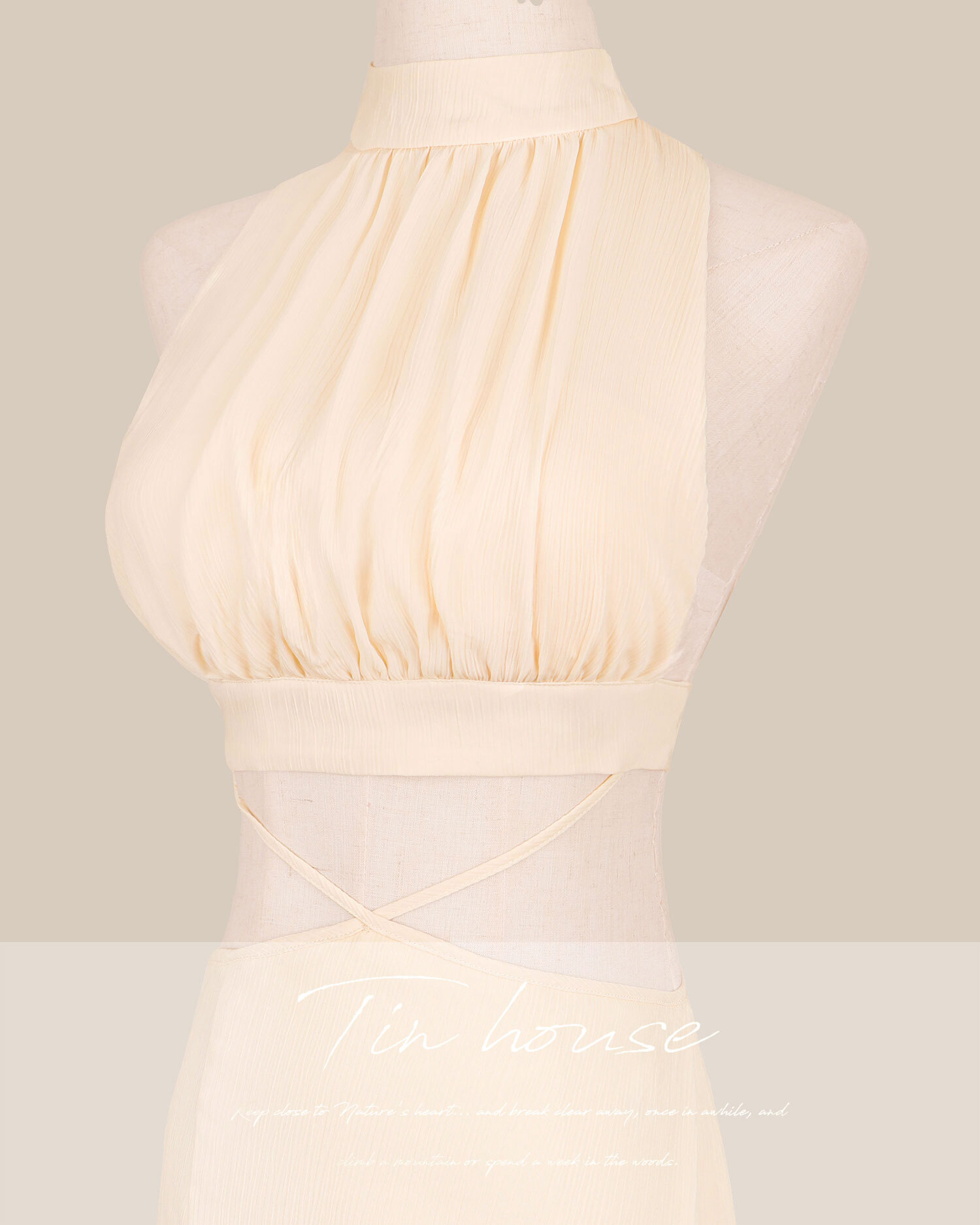 訂製-性感側露美背兩截式交叉連身洋