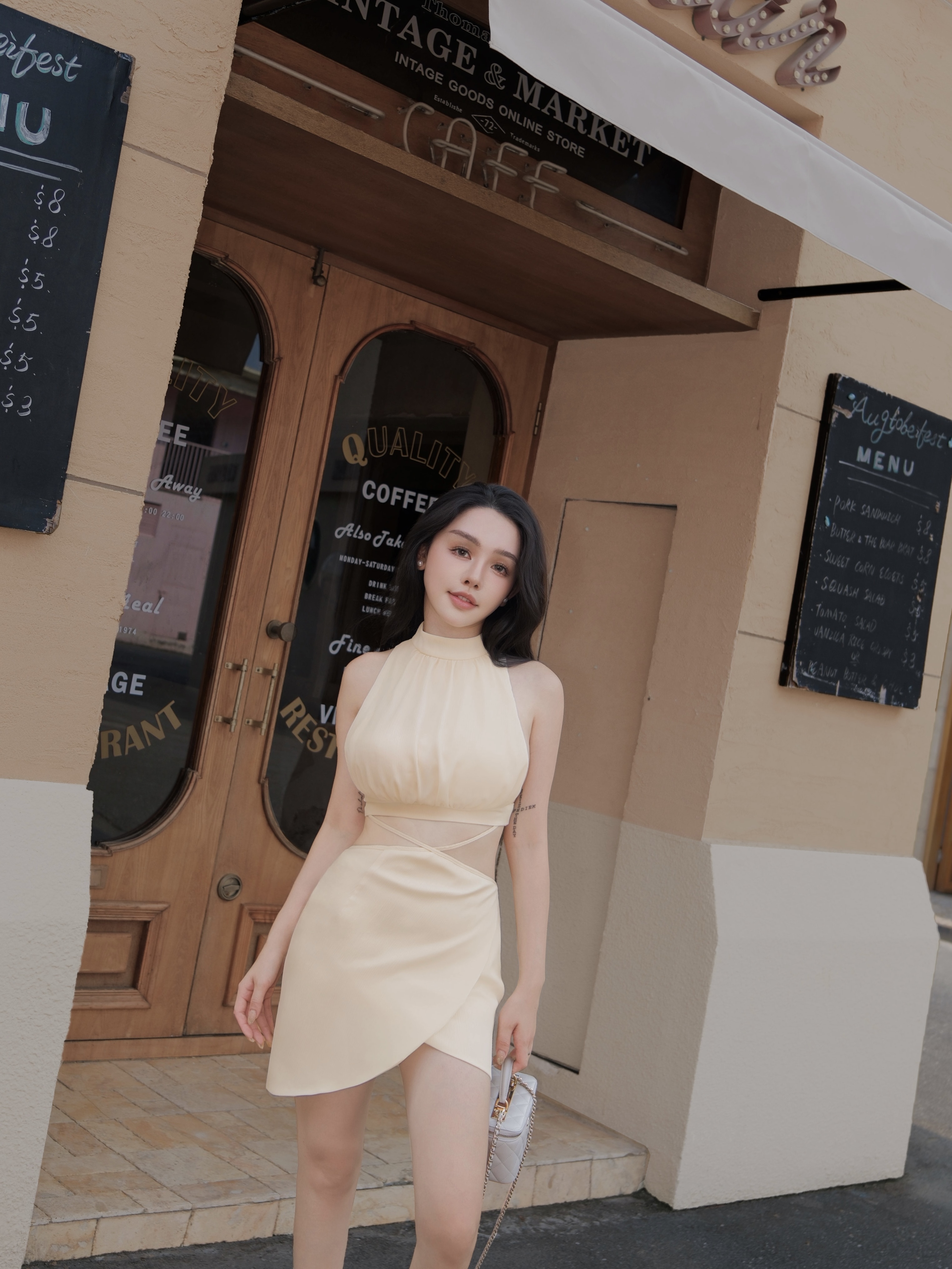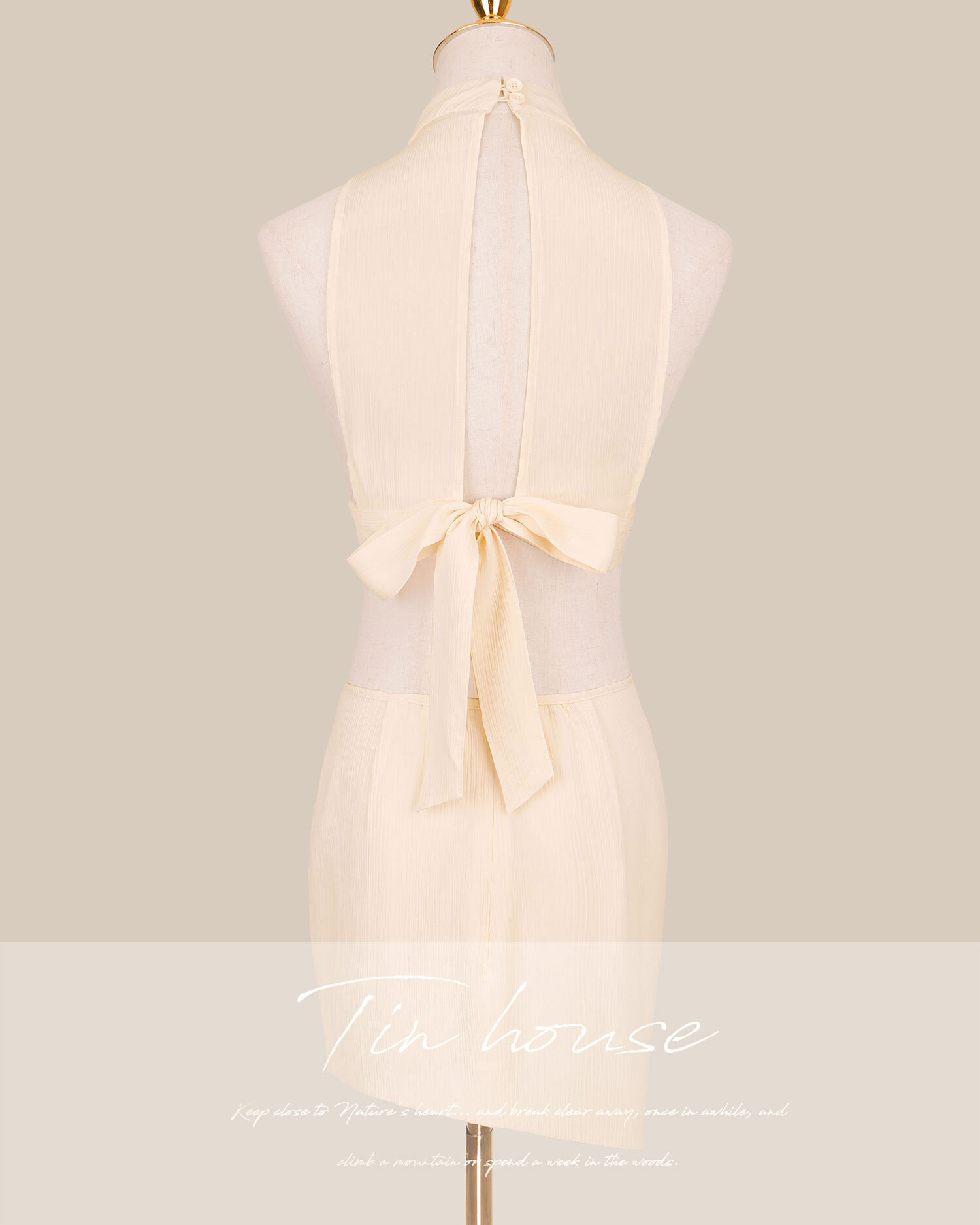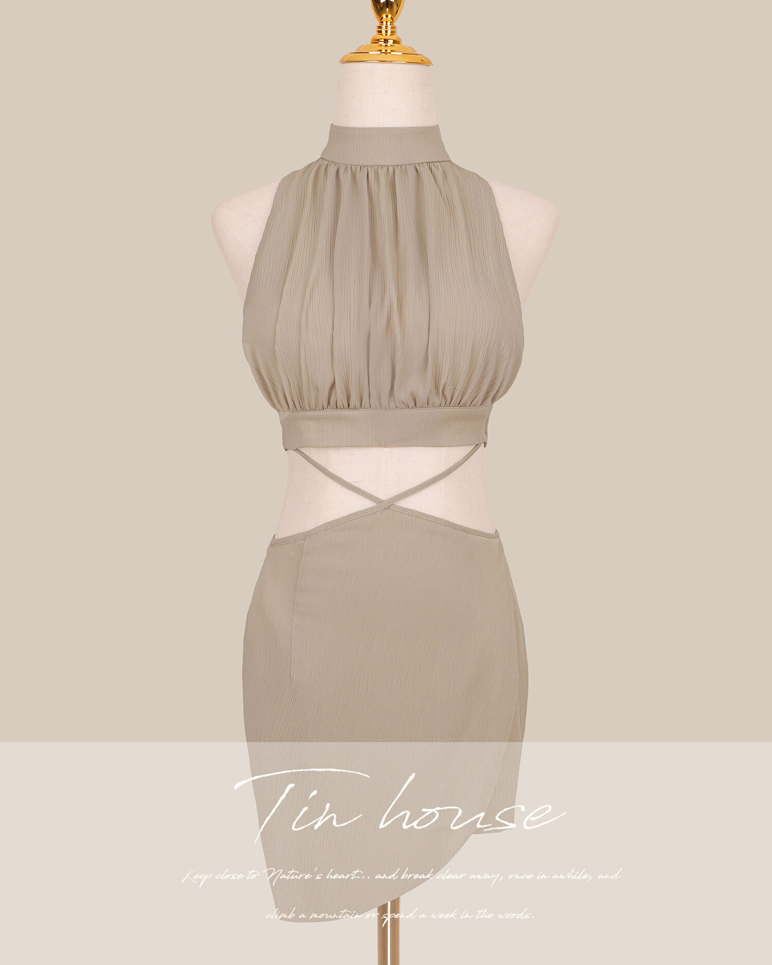 訂製-性感側露美背兩截式交叉連身洋
