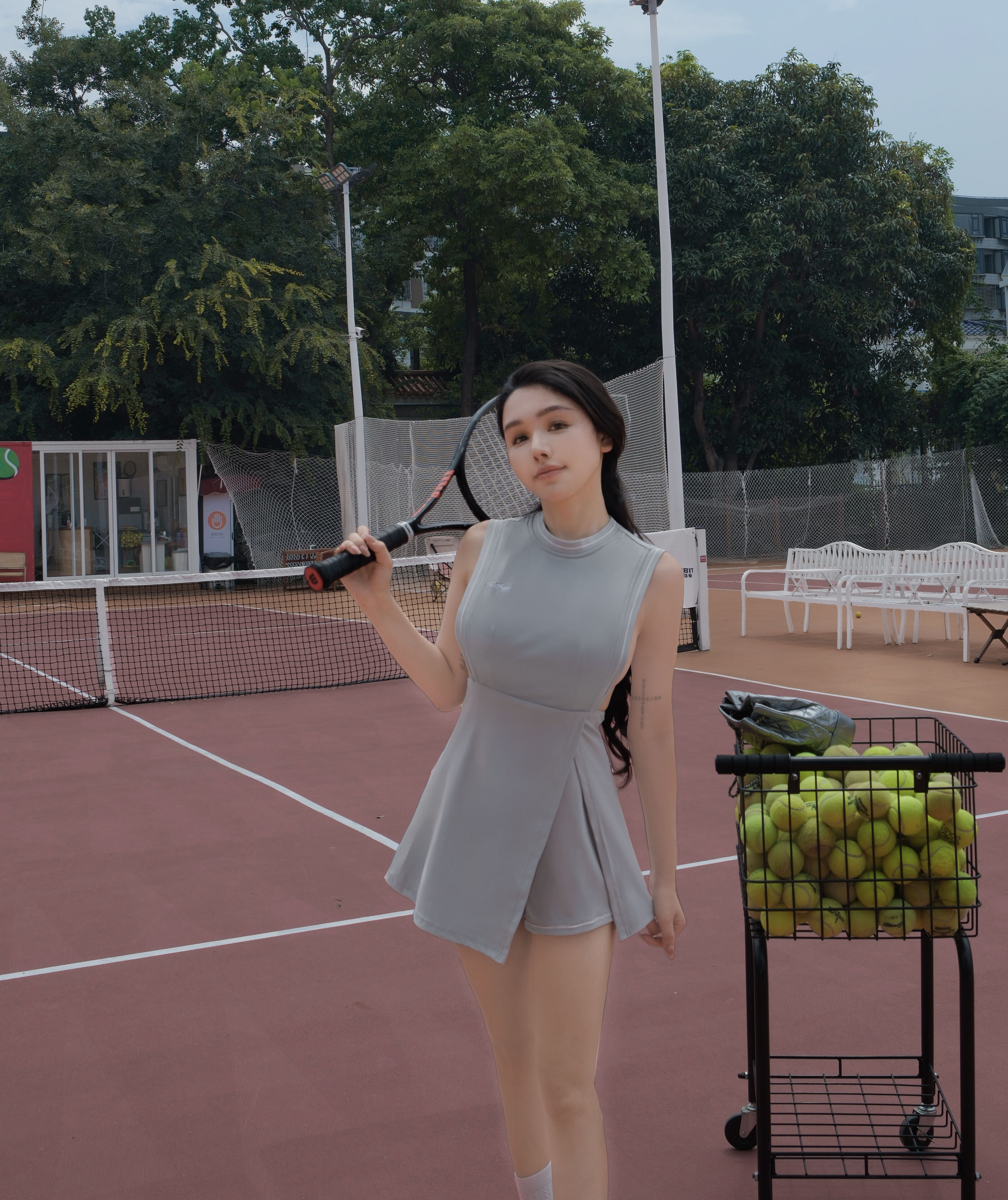 訂製-運動學院系·線條側露連身褲裝