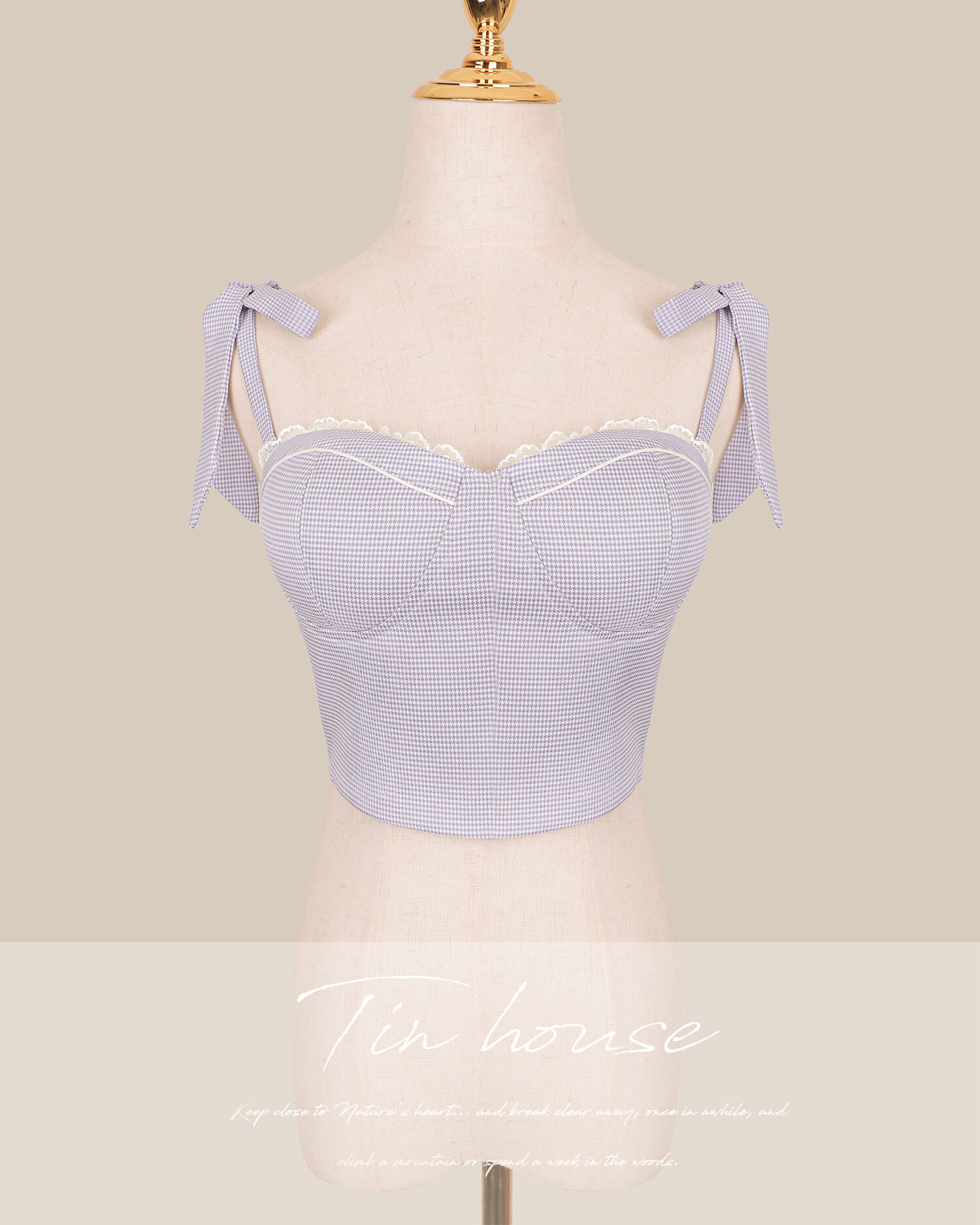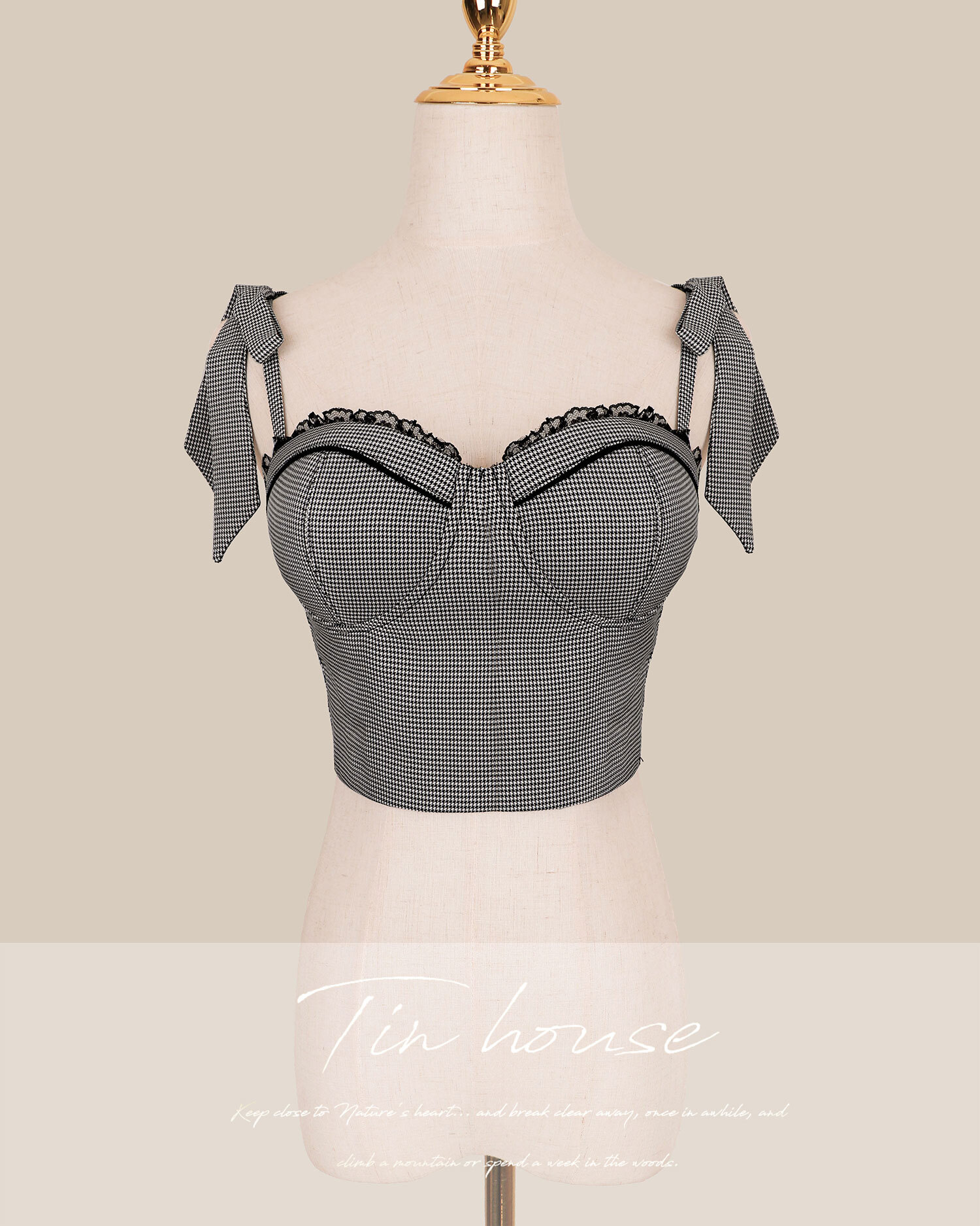訂製-甜美千鳥格蕾絲馬甲