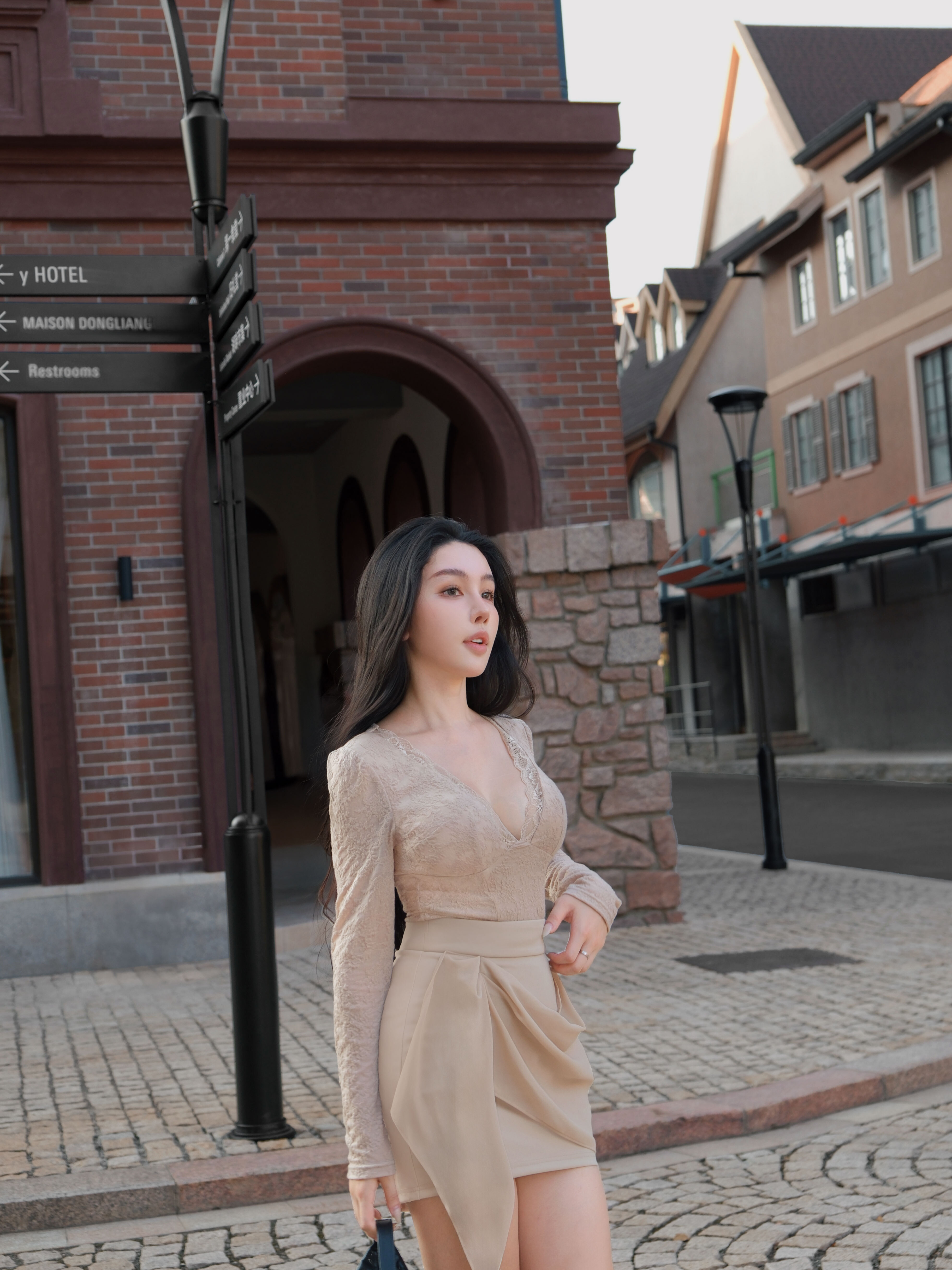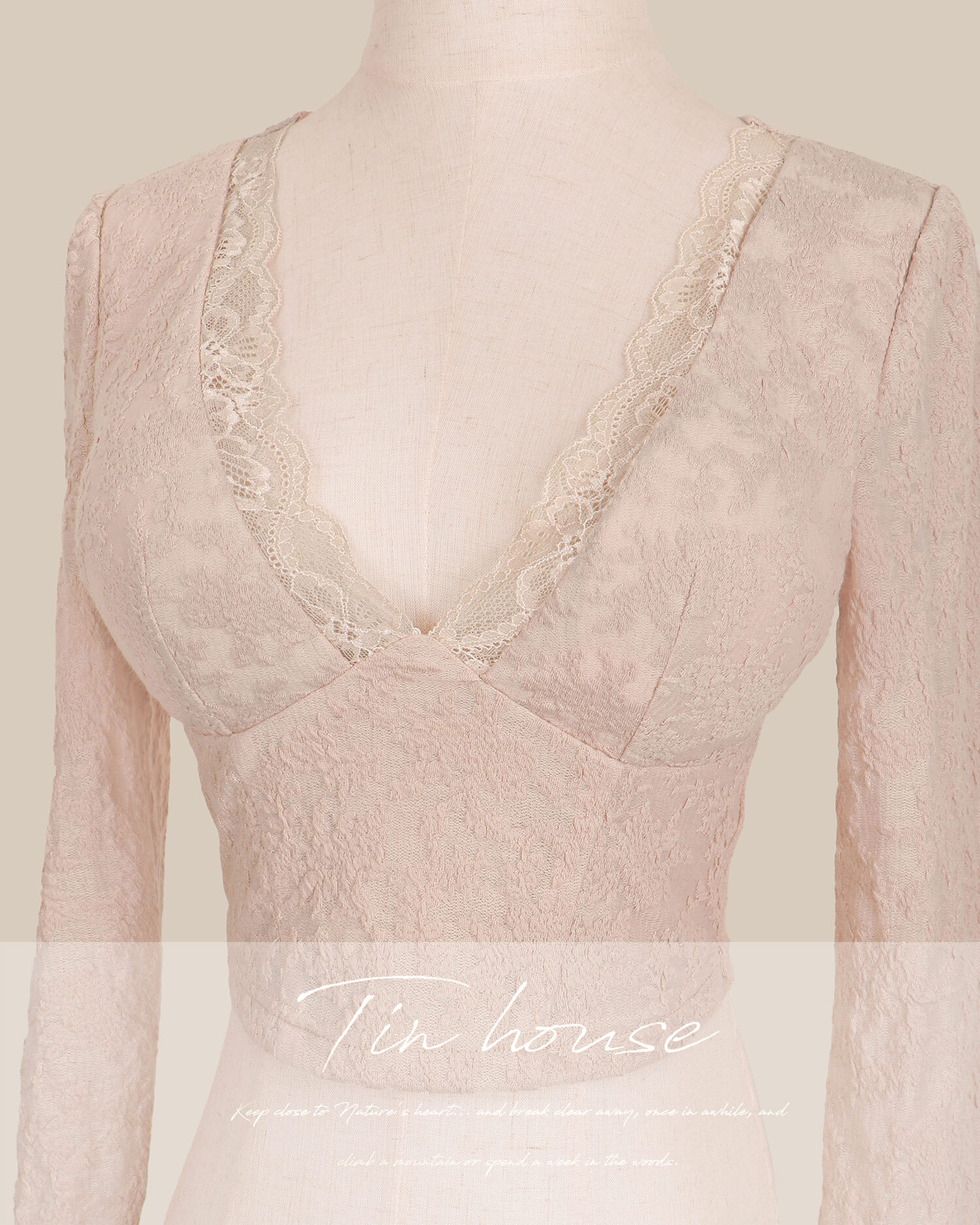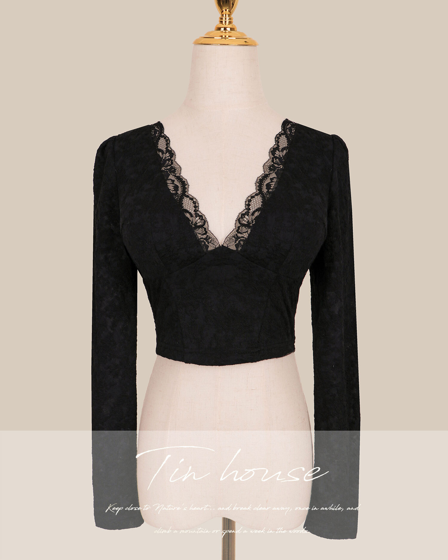 訂製-性感宮廷蕾絲低胸長袖上衣