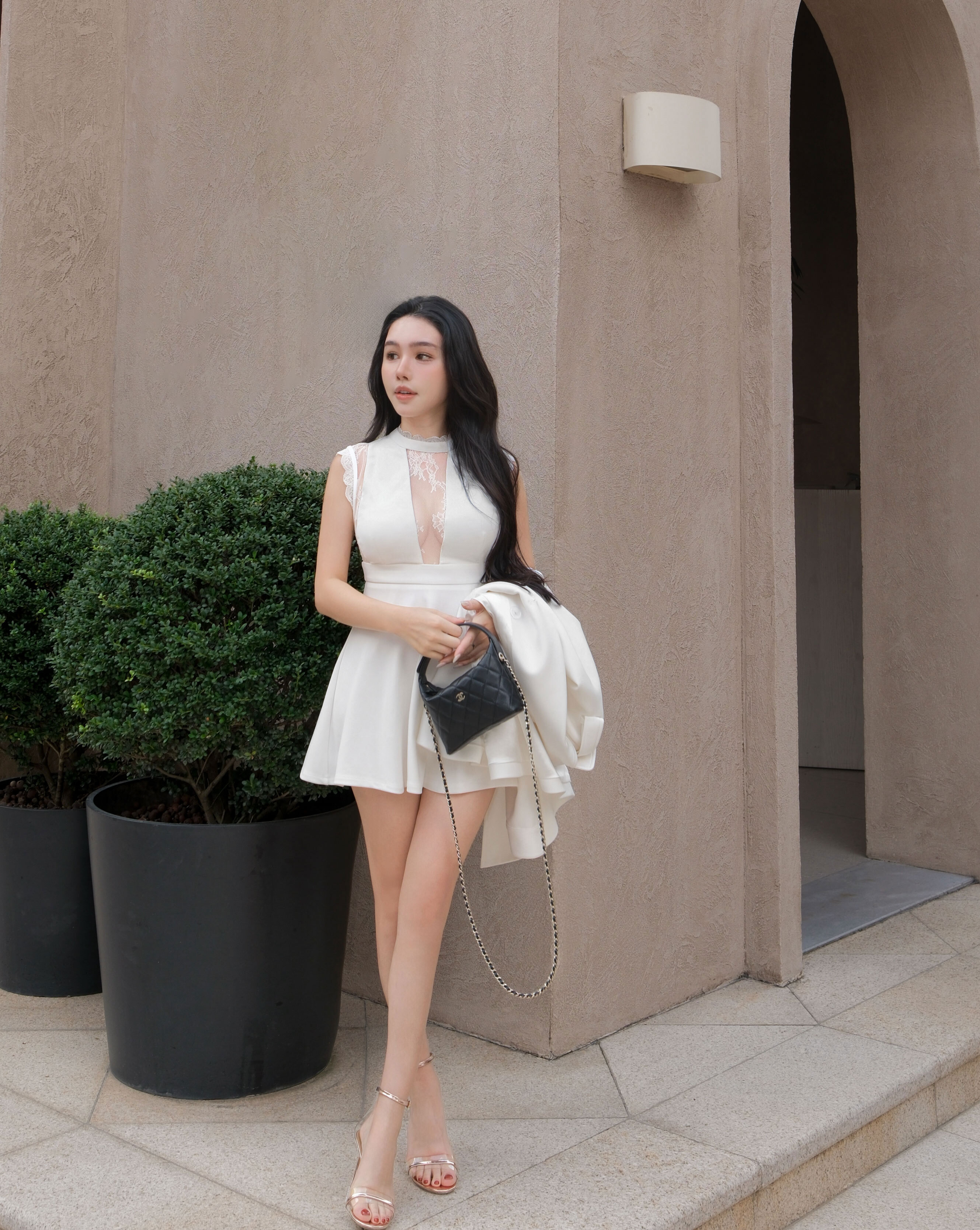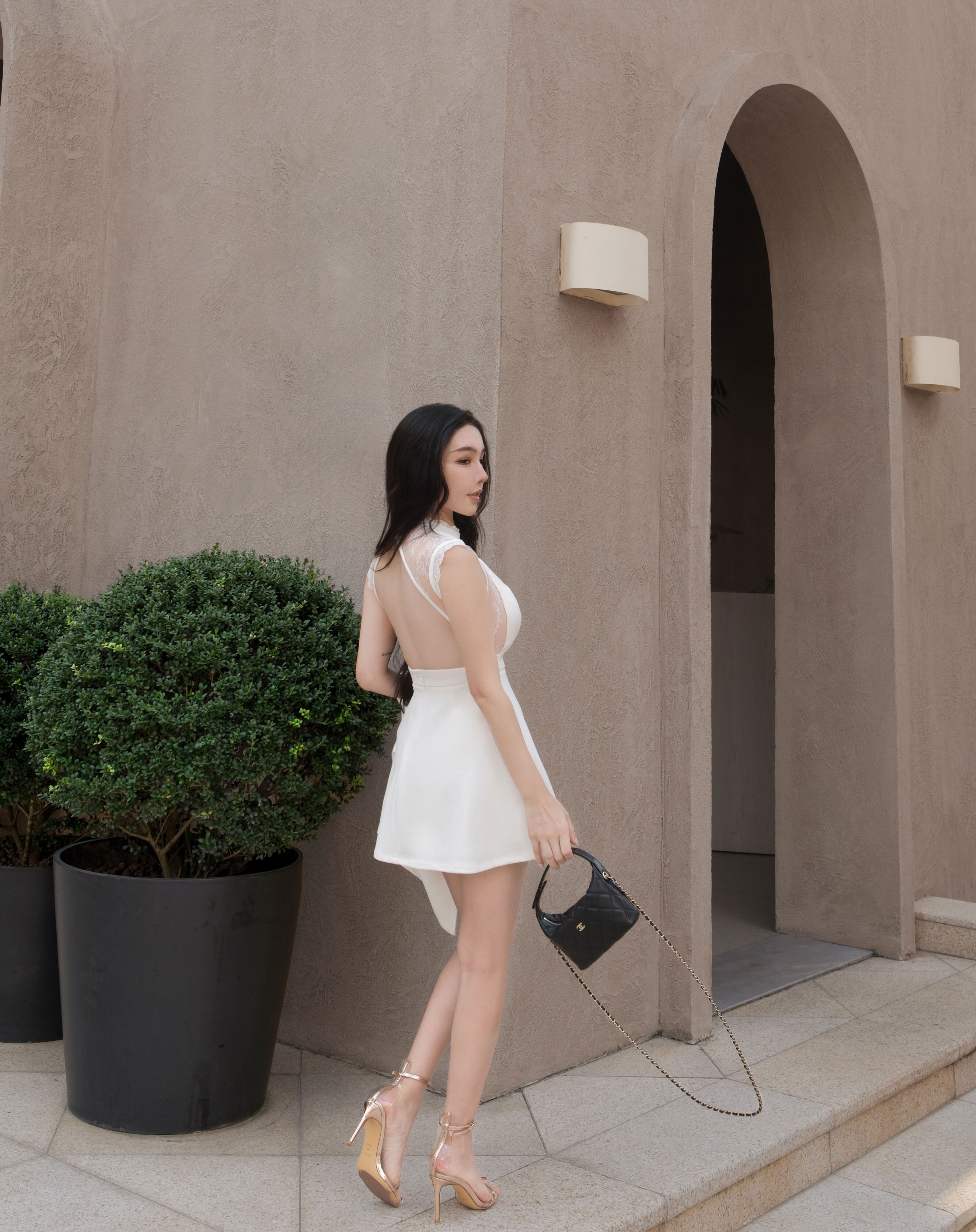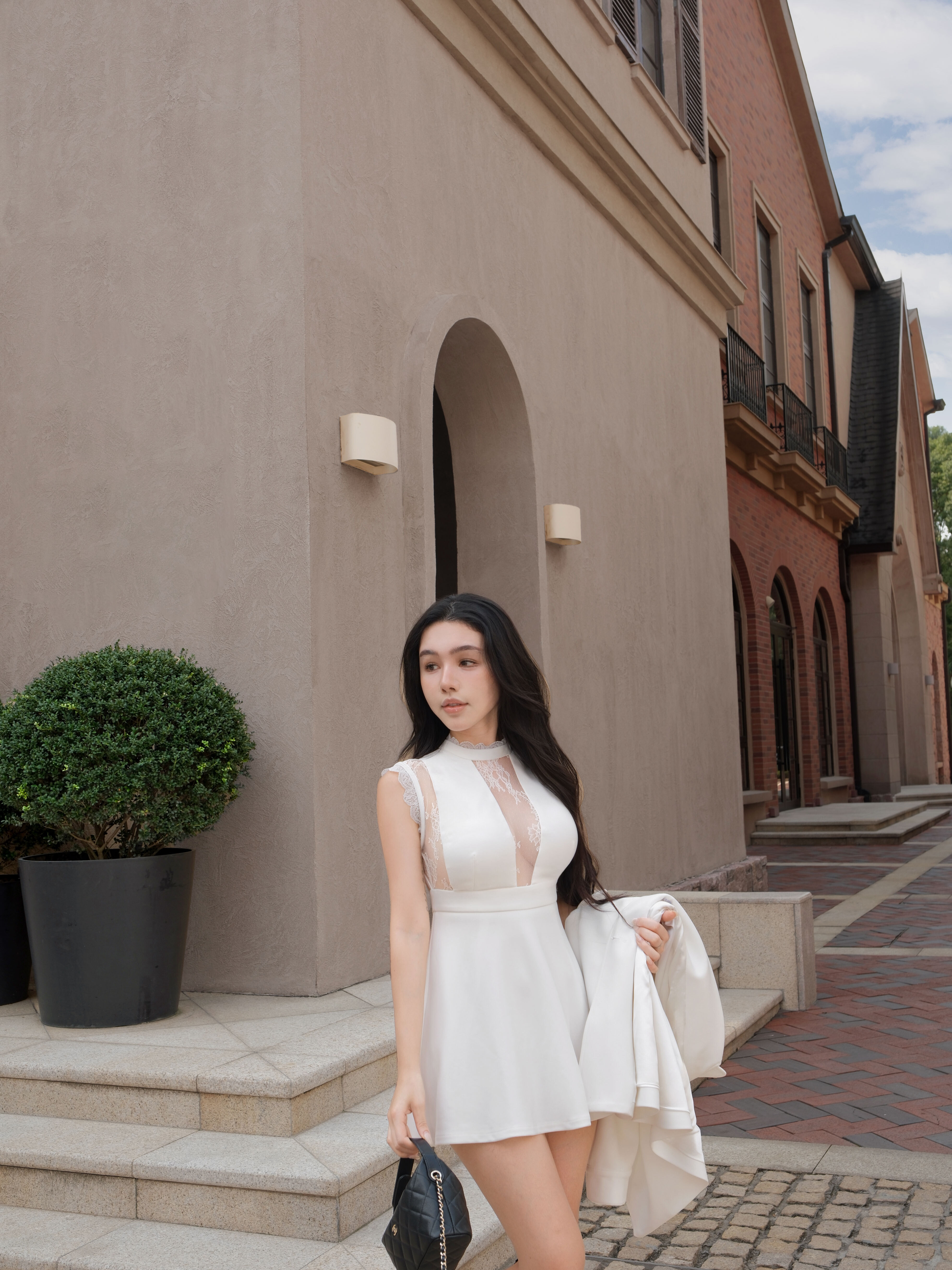 訂製-性感透視蕾絲美背傘洋