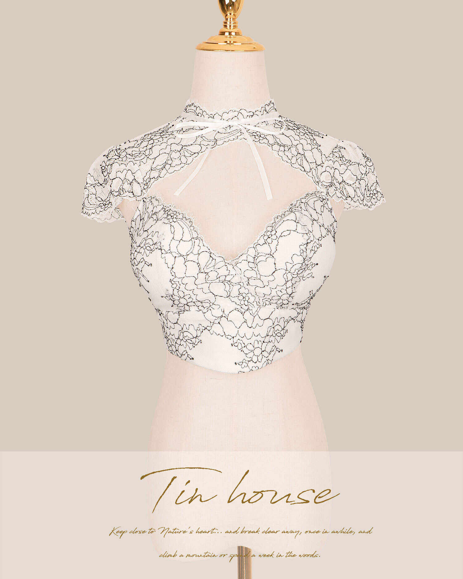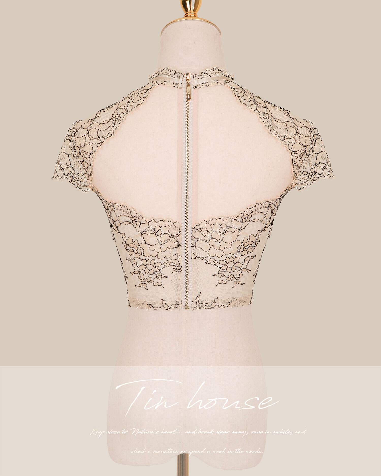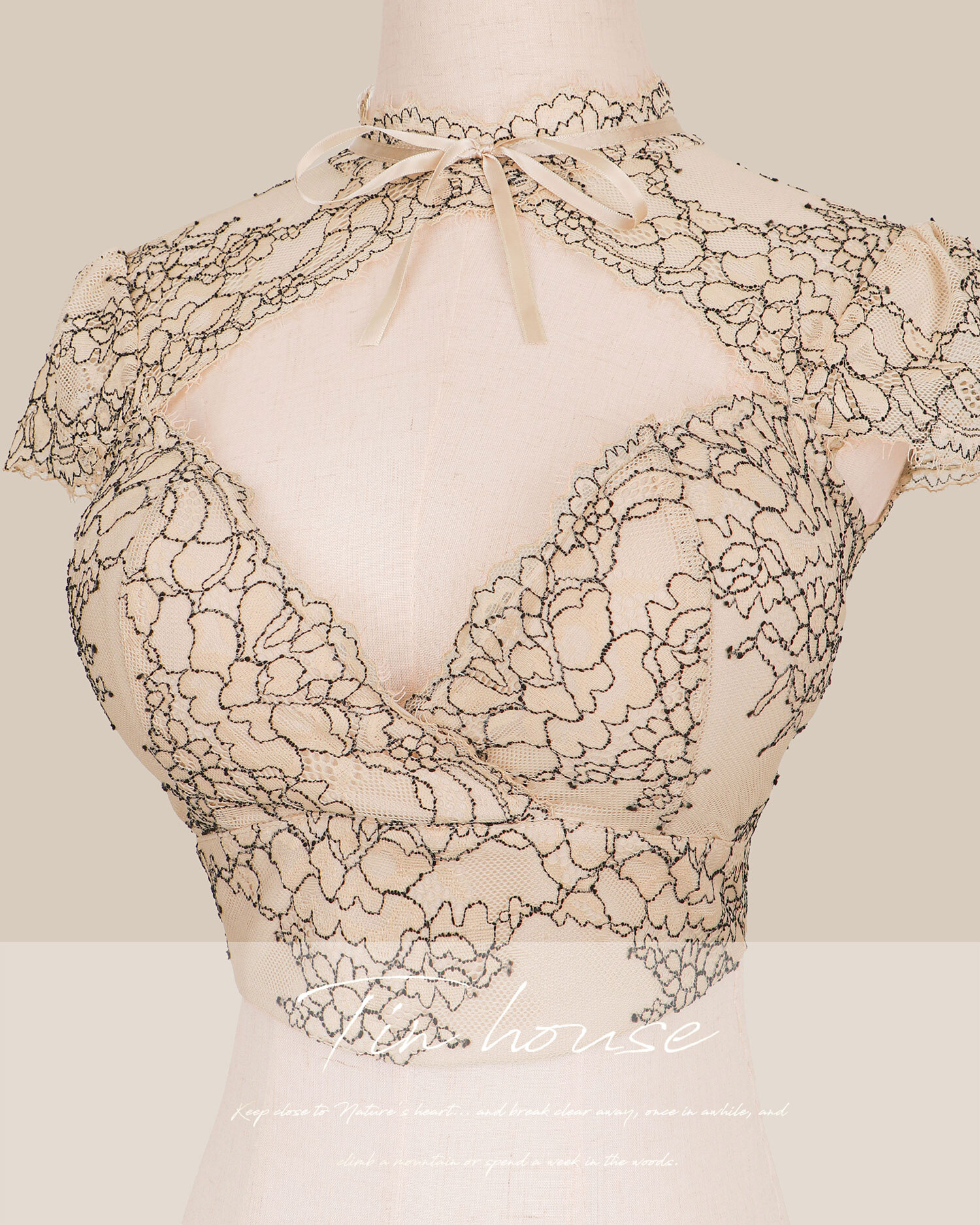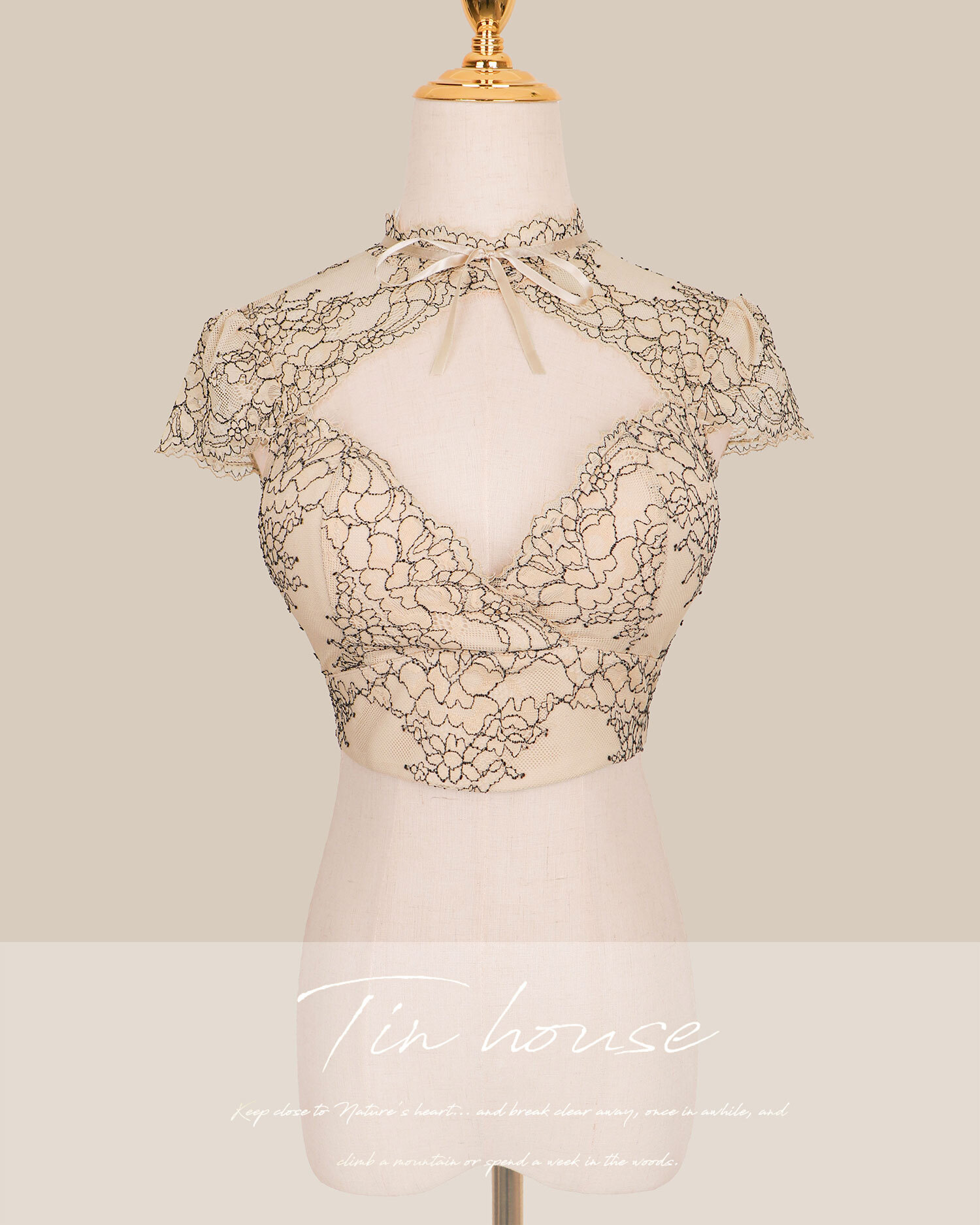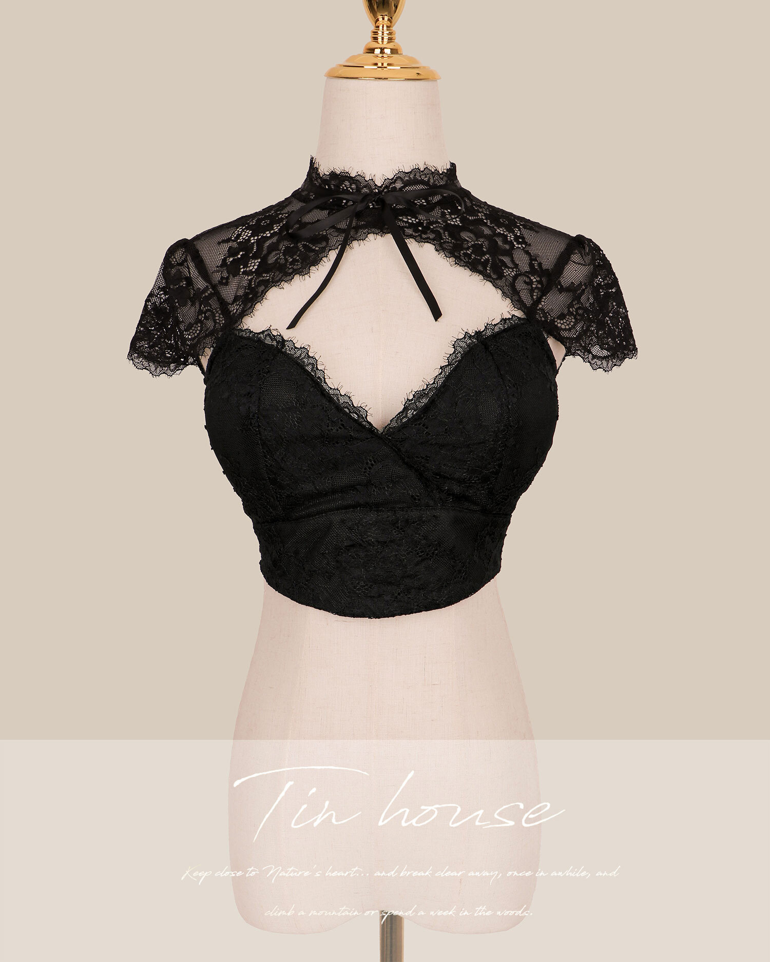 訂製-純欲雙色蕾絲低胸短袖上衣