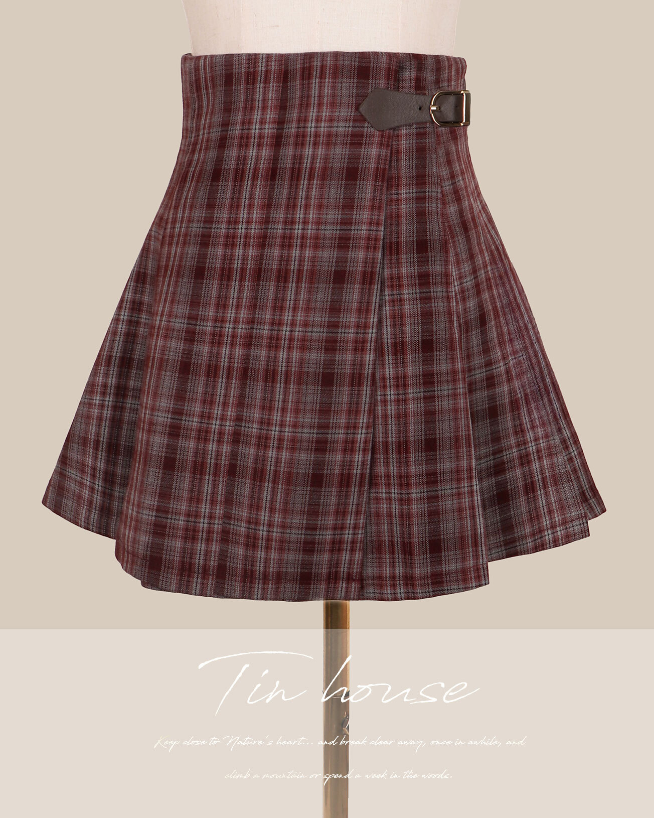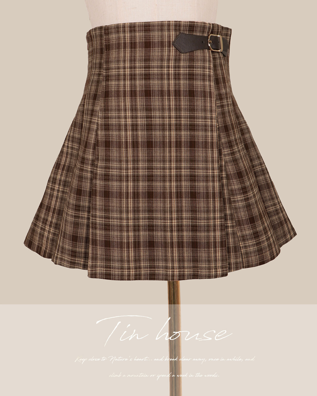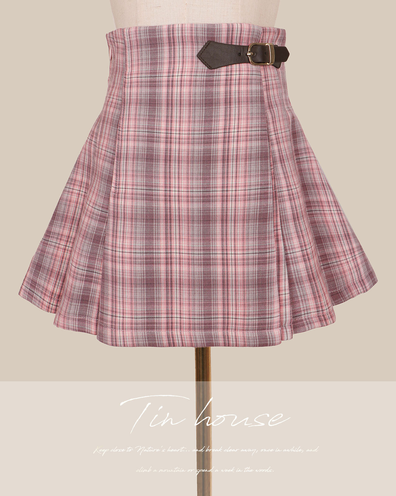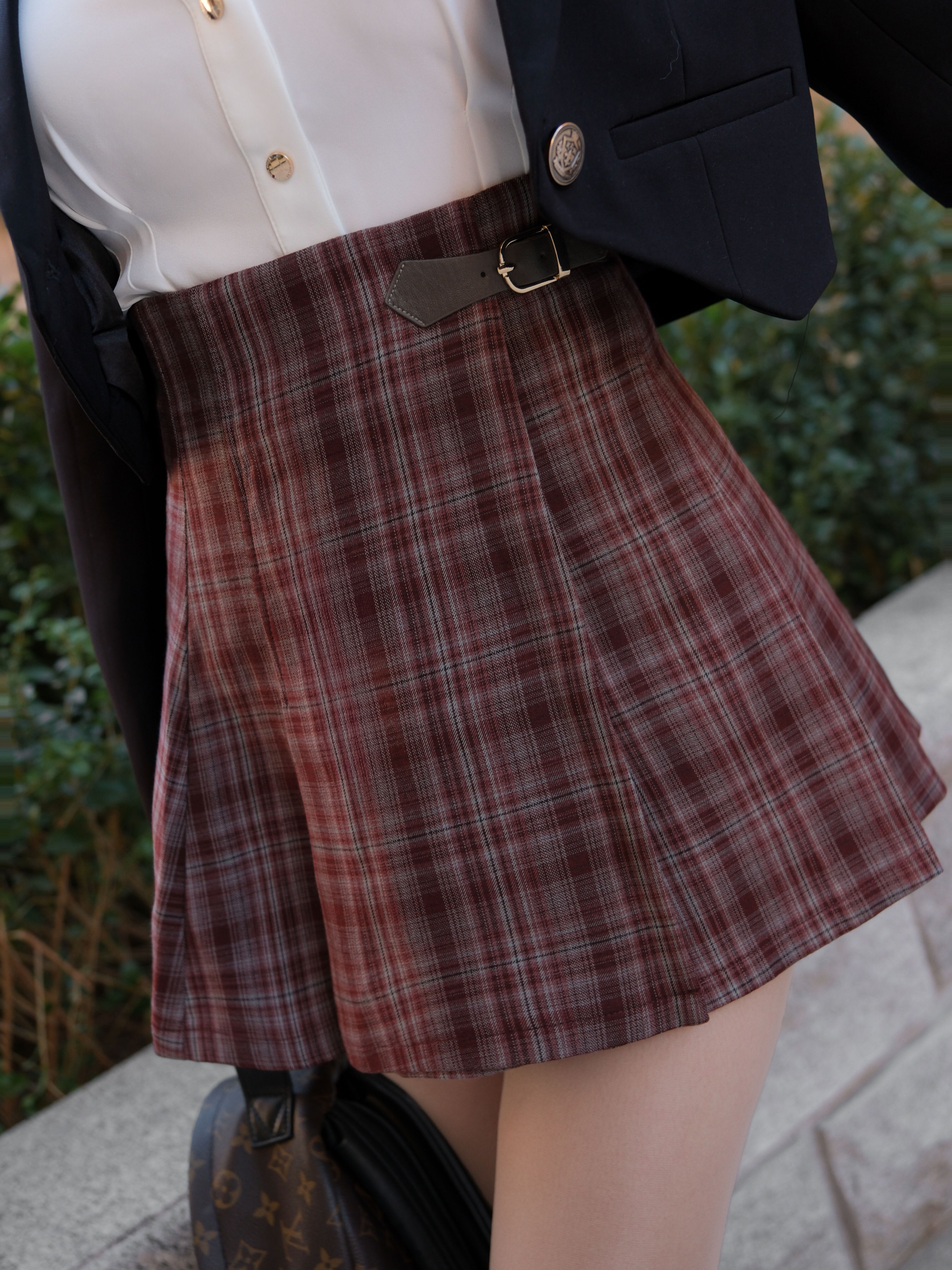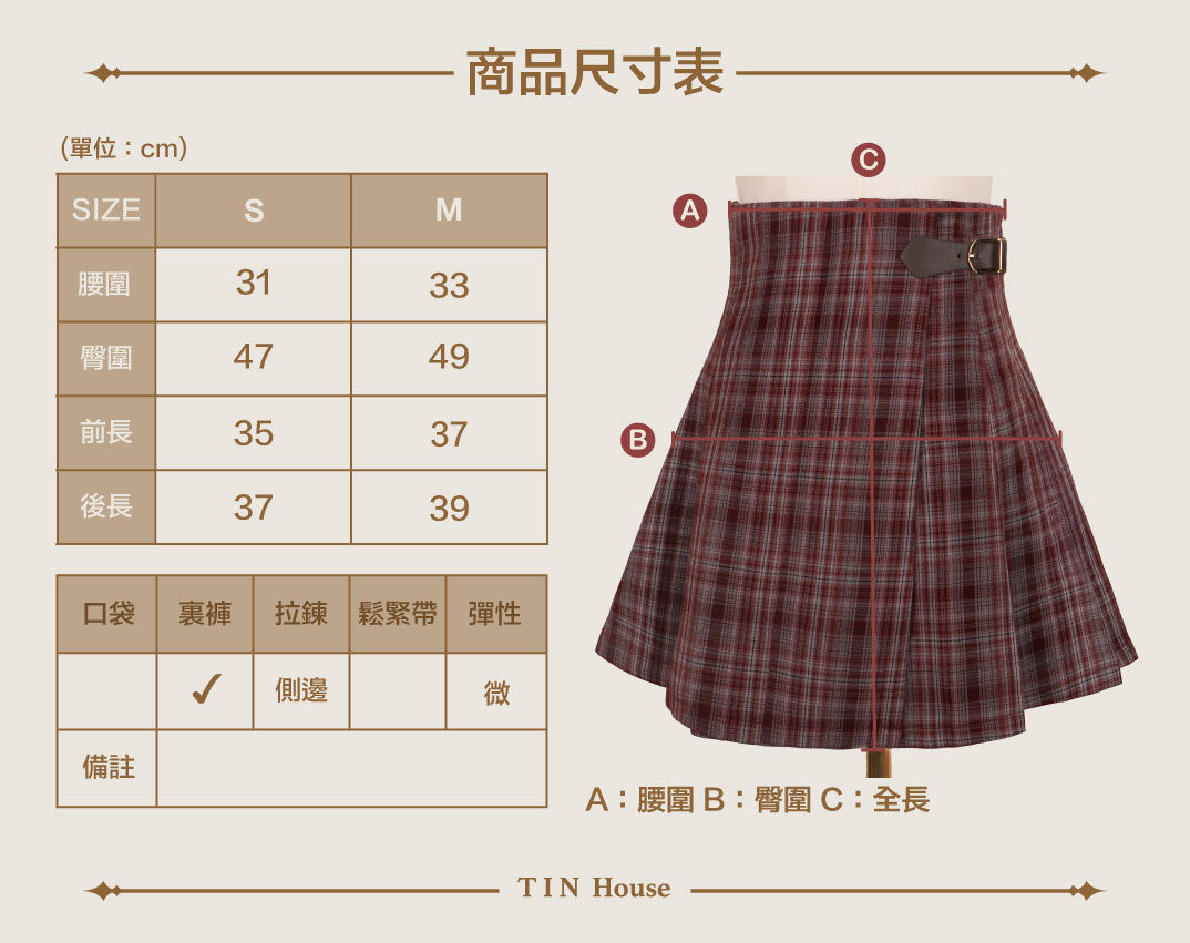 訂製- 學院風格紋側皮帶百褶裙
