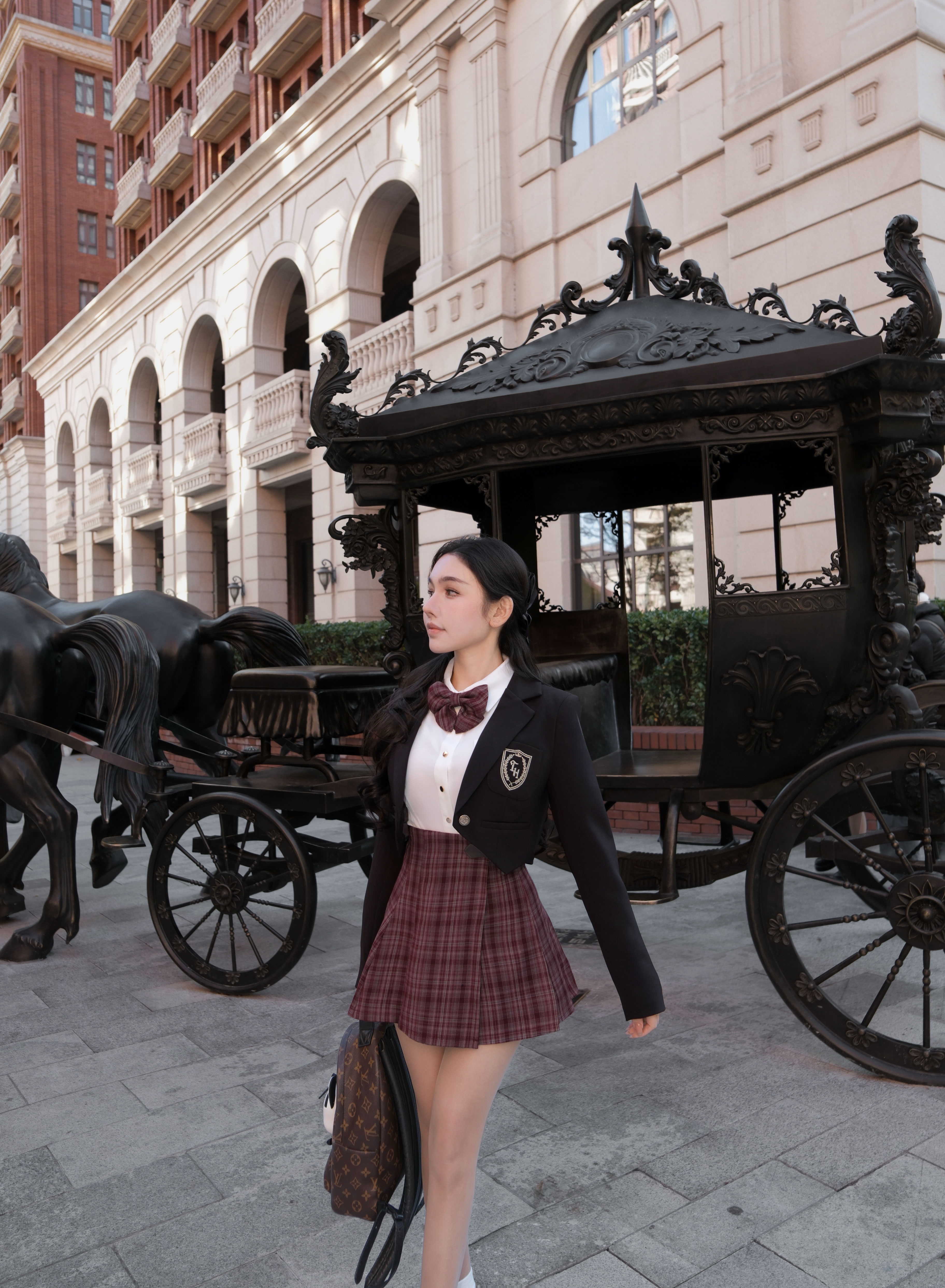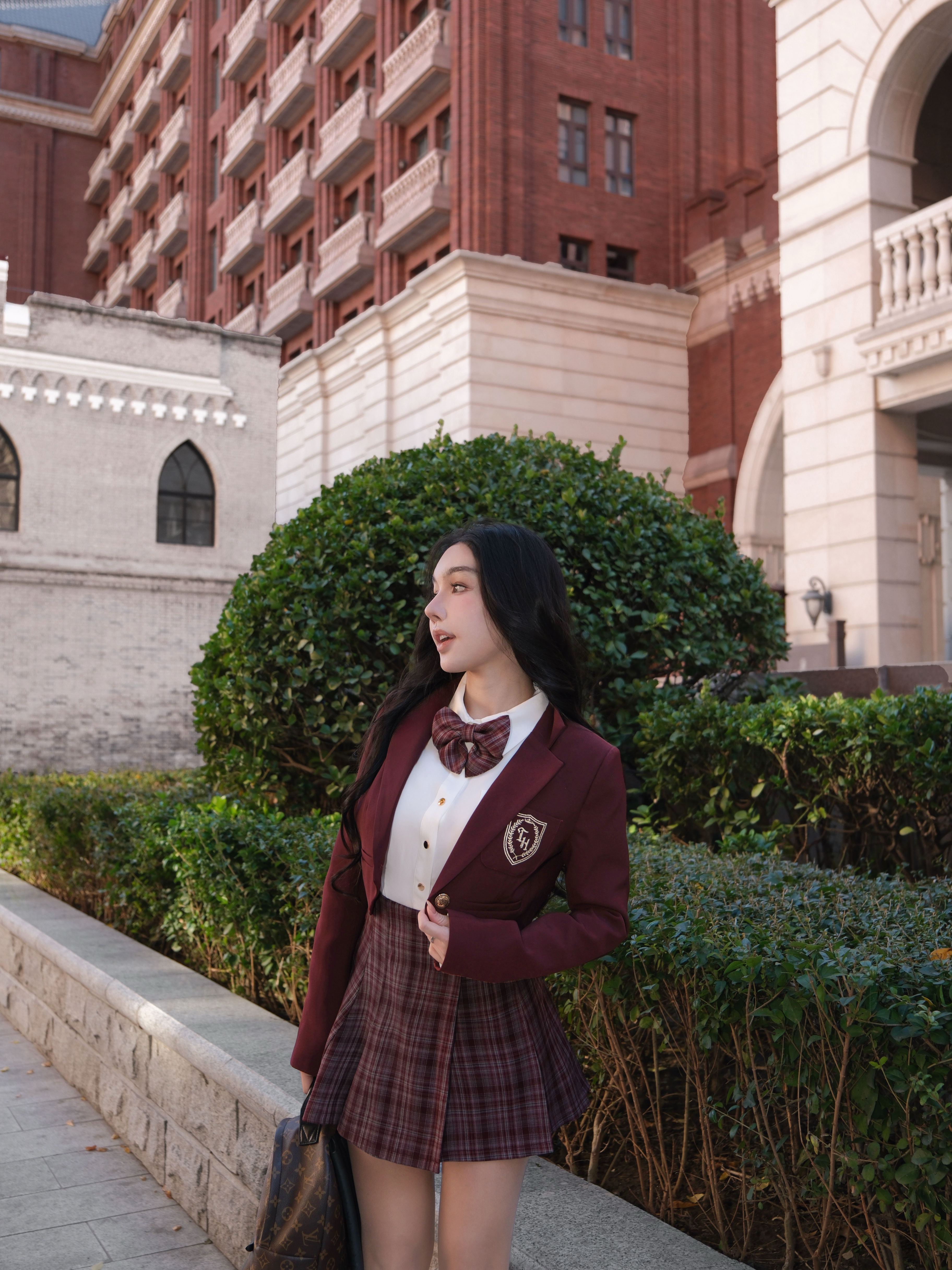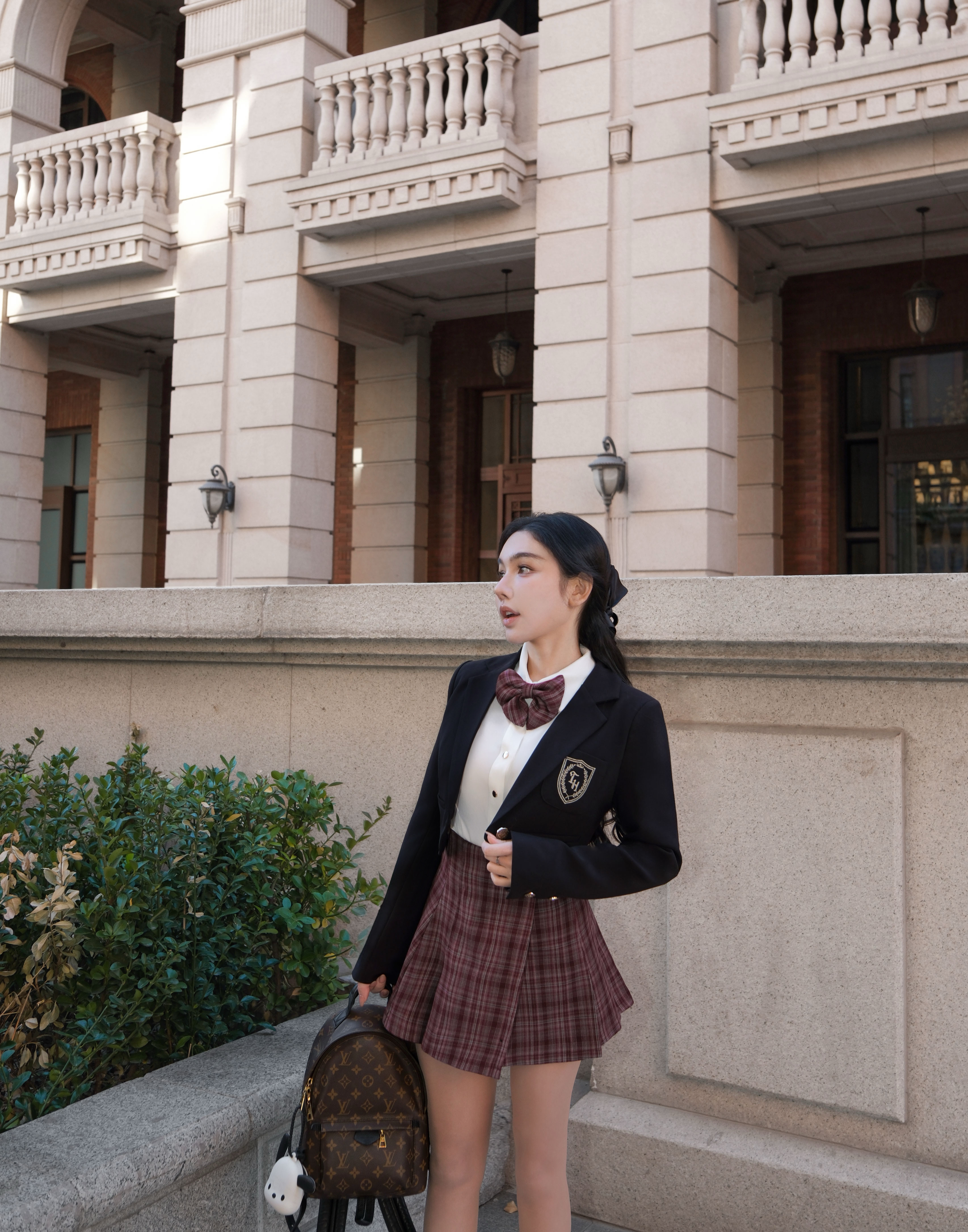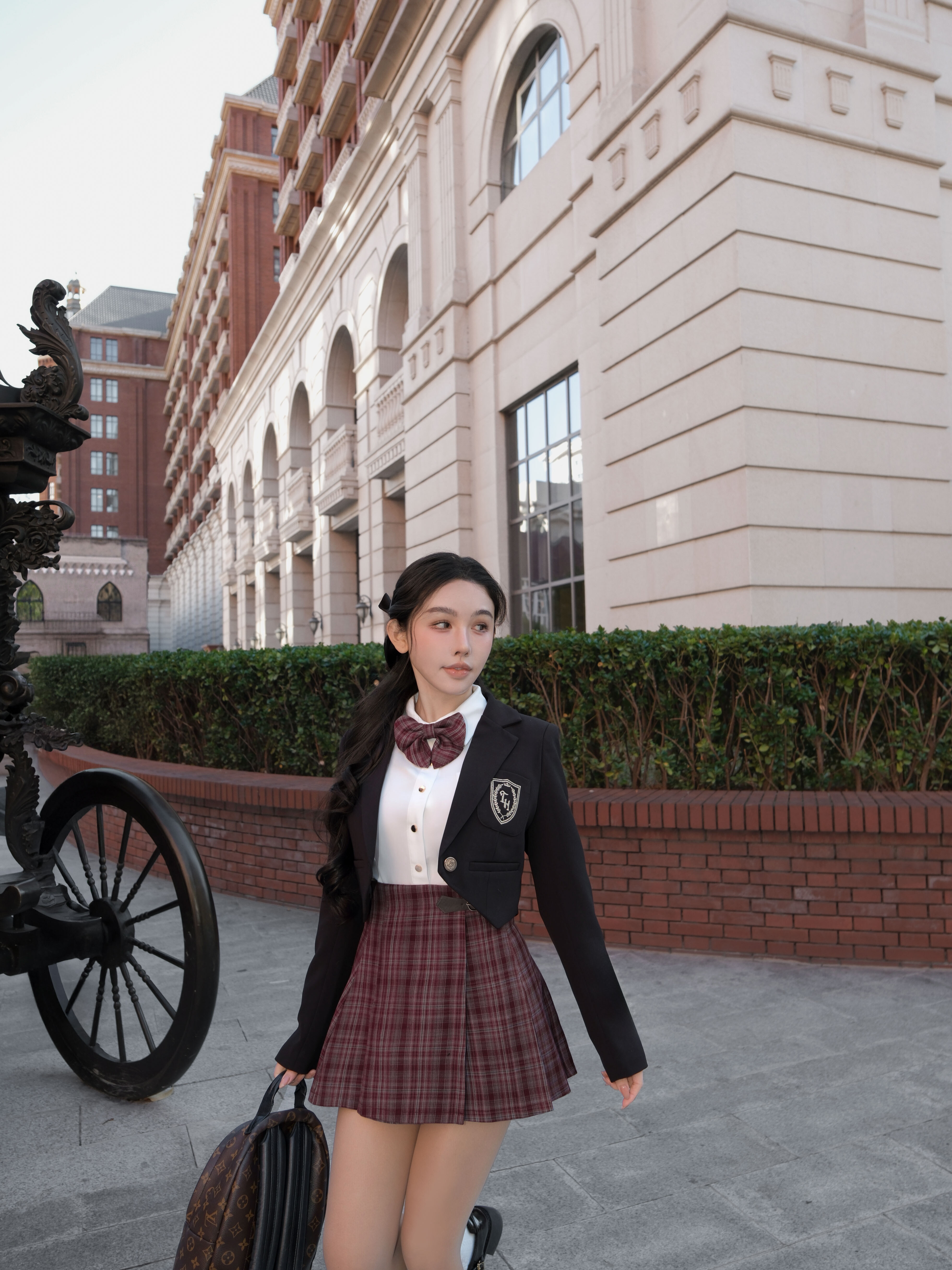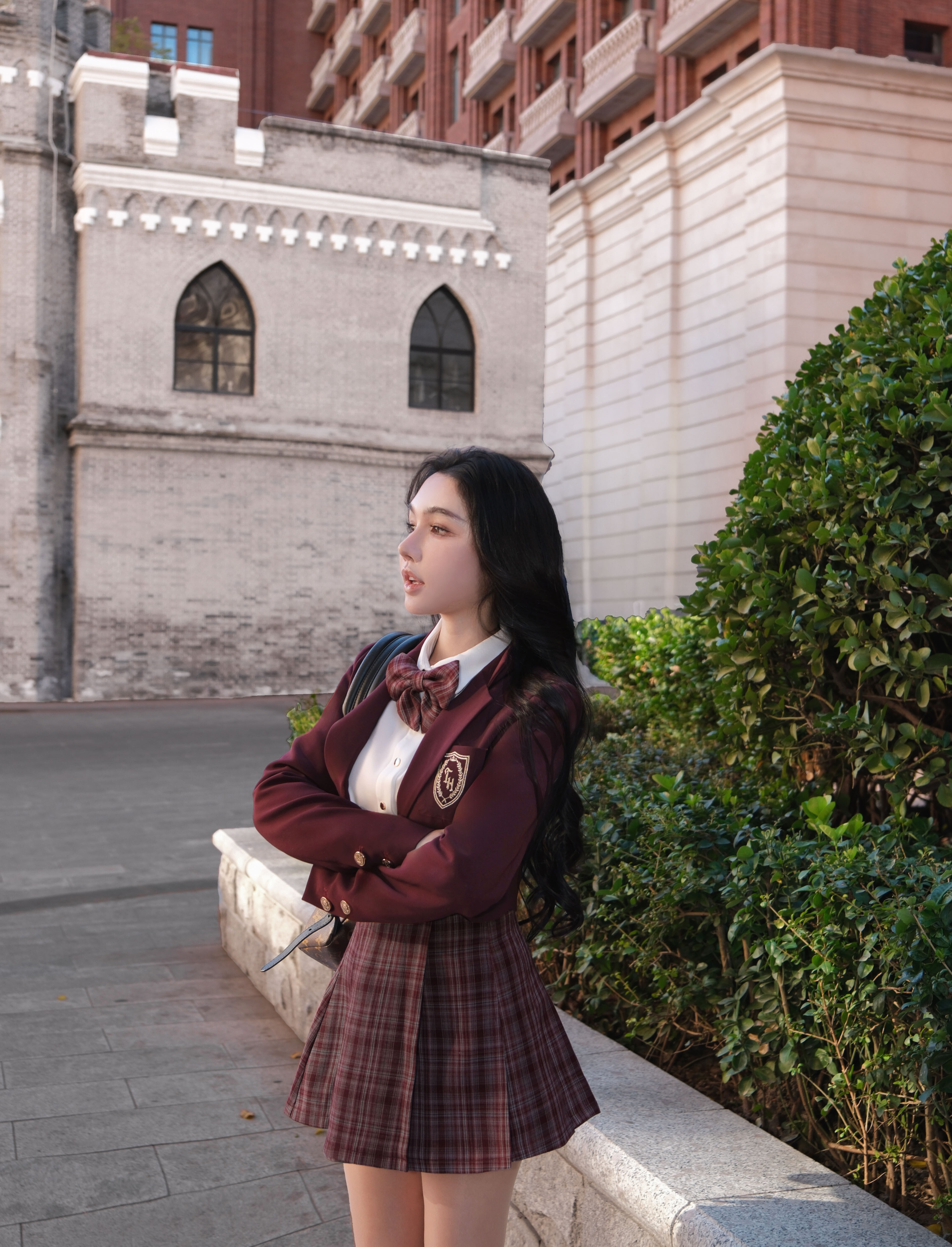 訂製- 學院風格紋側皮帶百褶裙