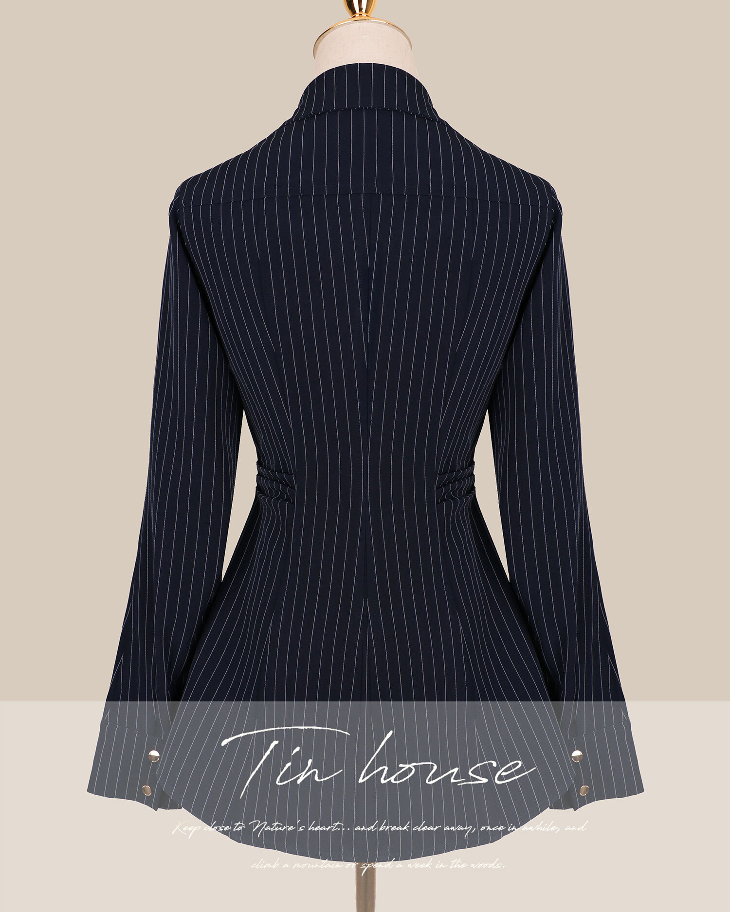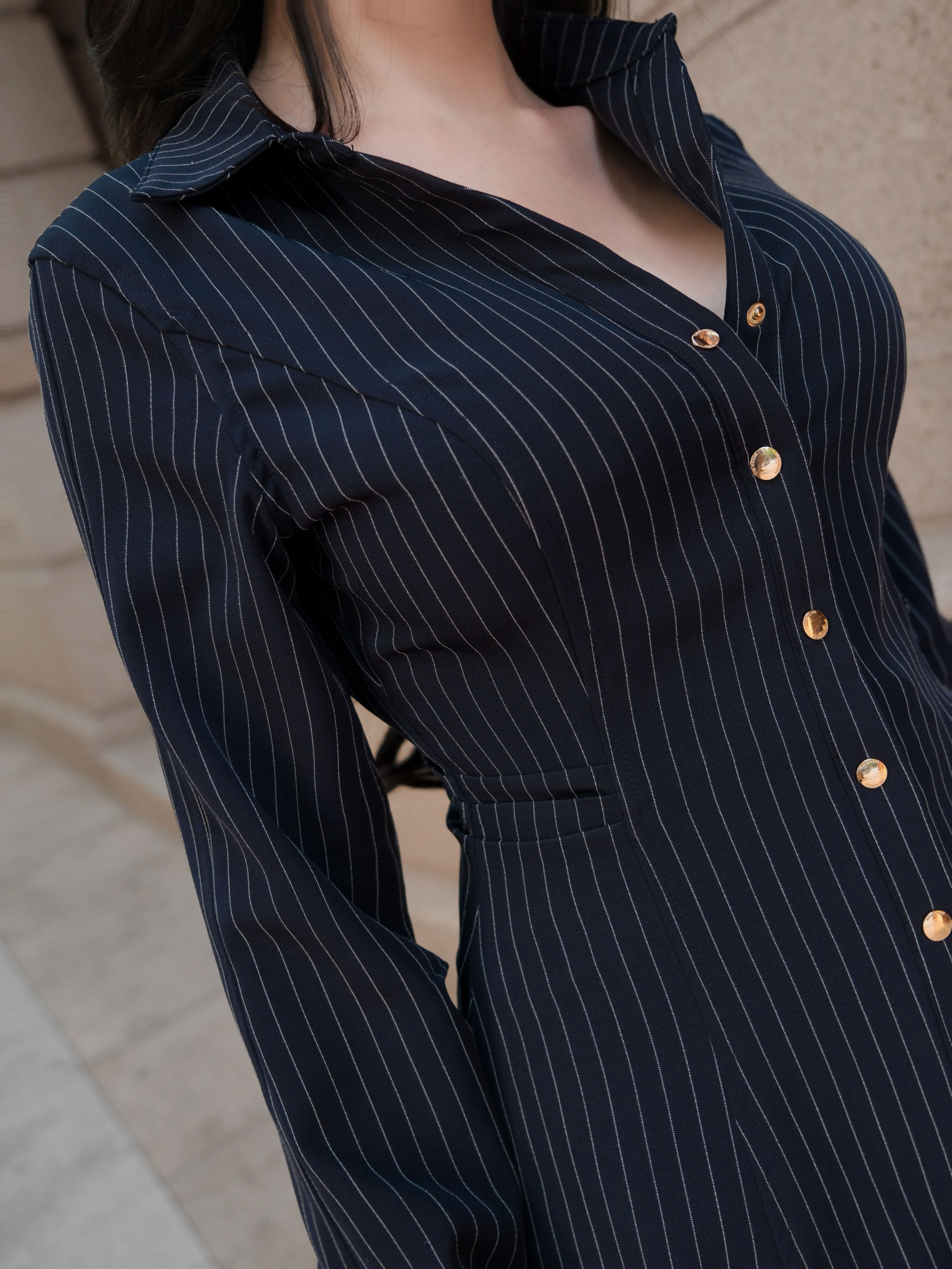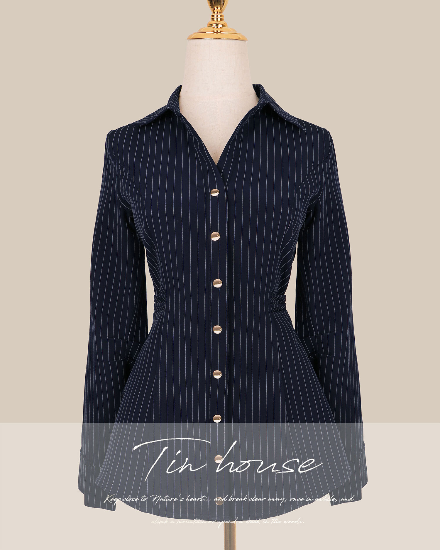 訂製-知性條紋收腰長襯衫