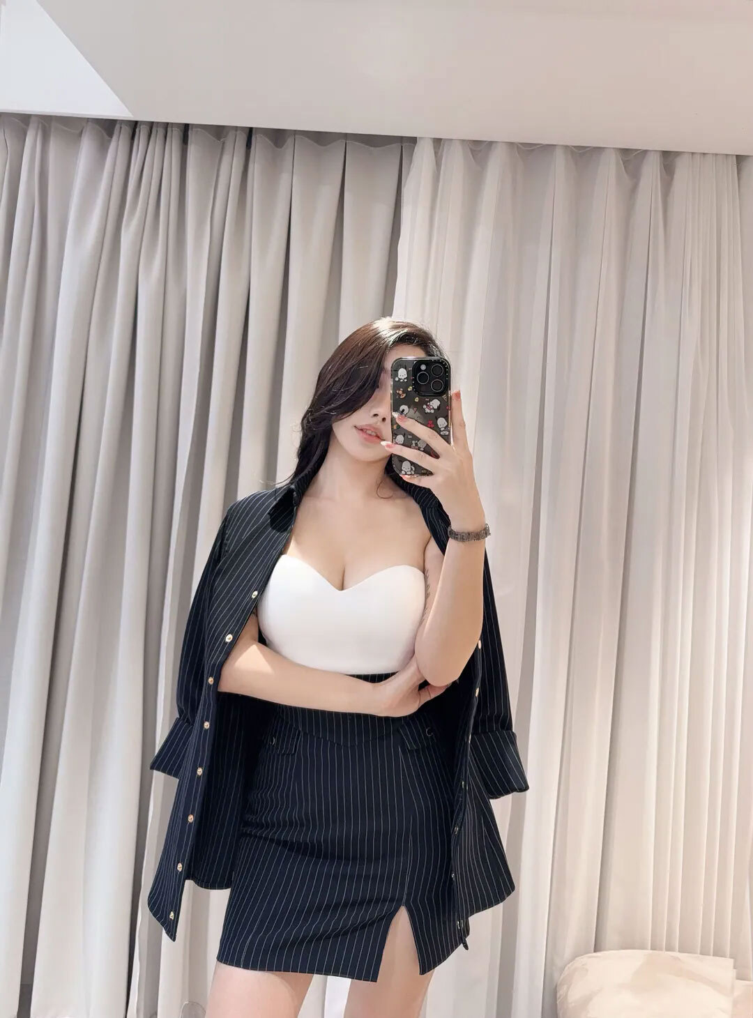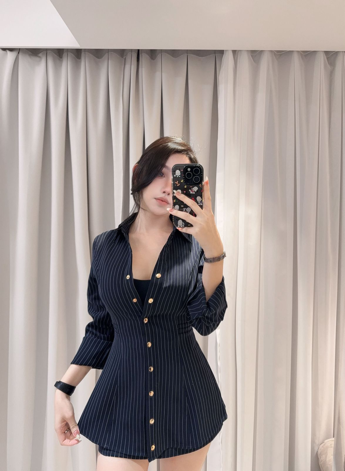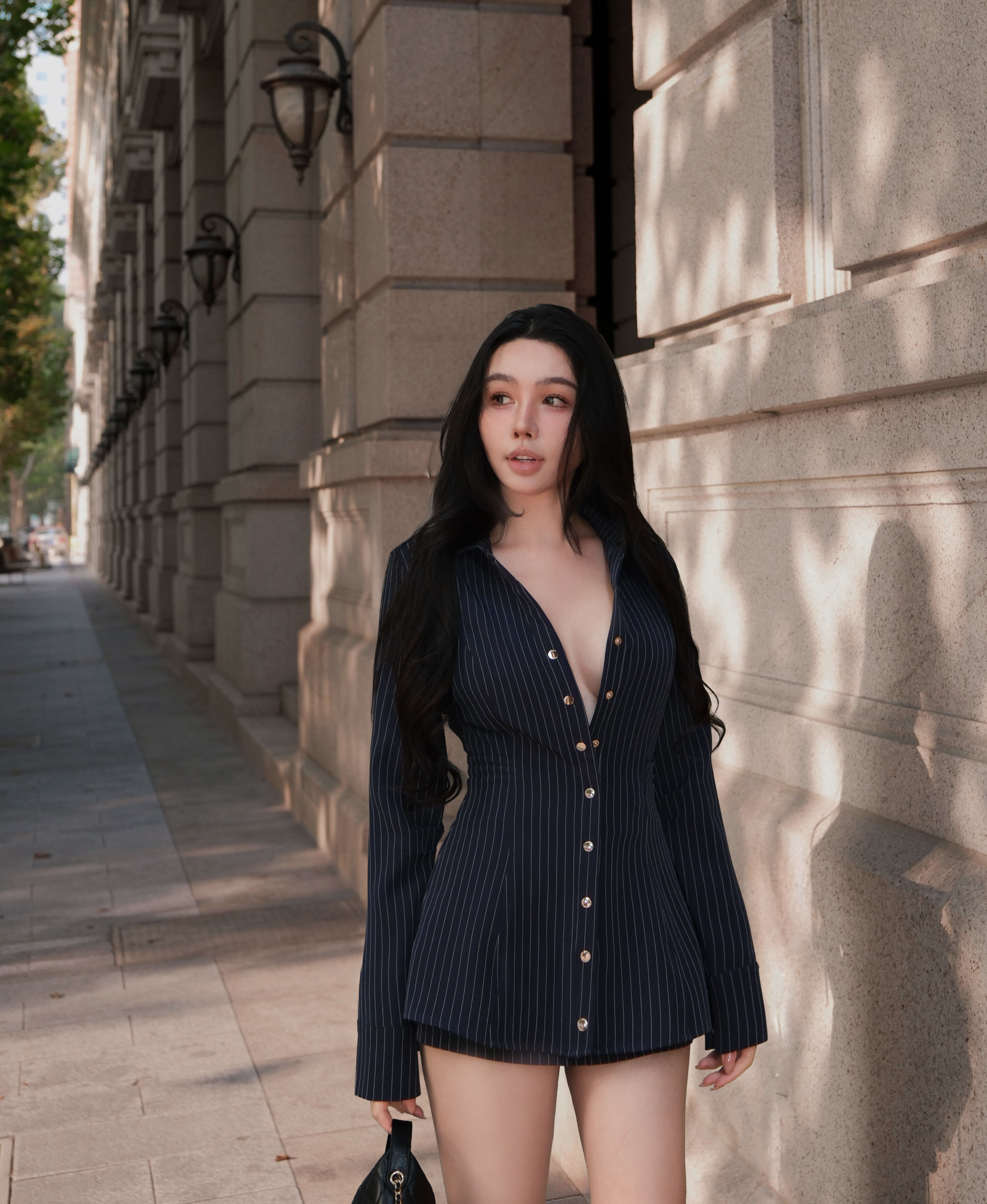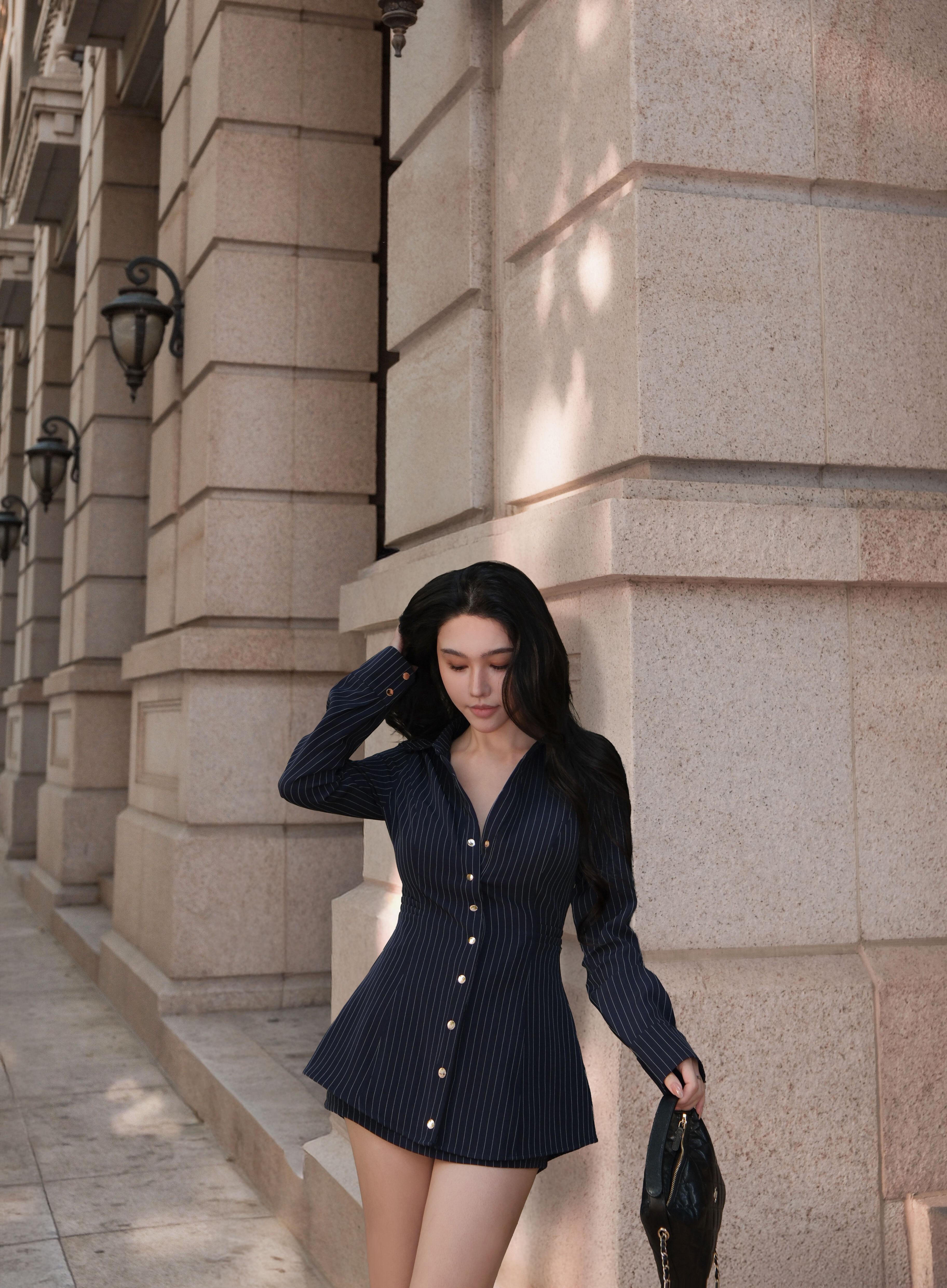 訂製-知性條紋收腰長襯衫