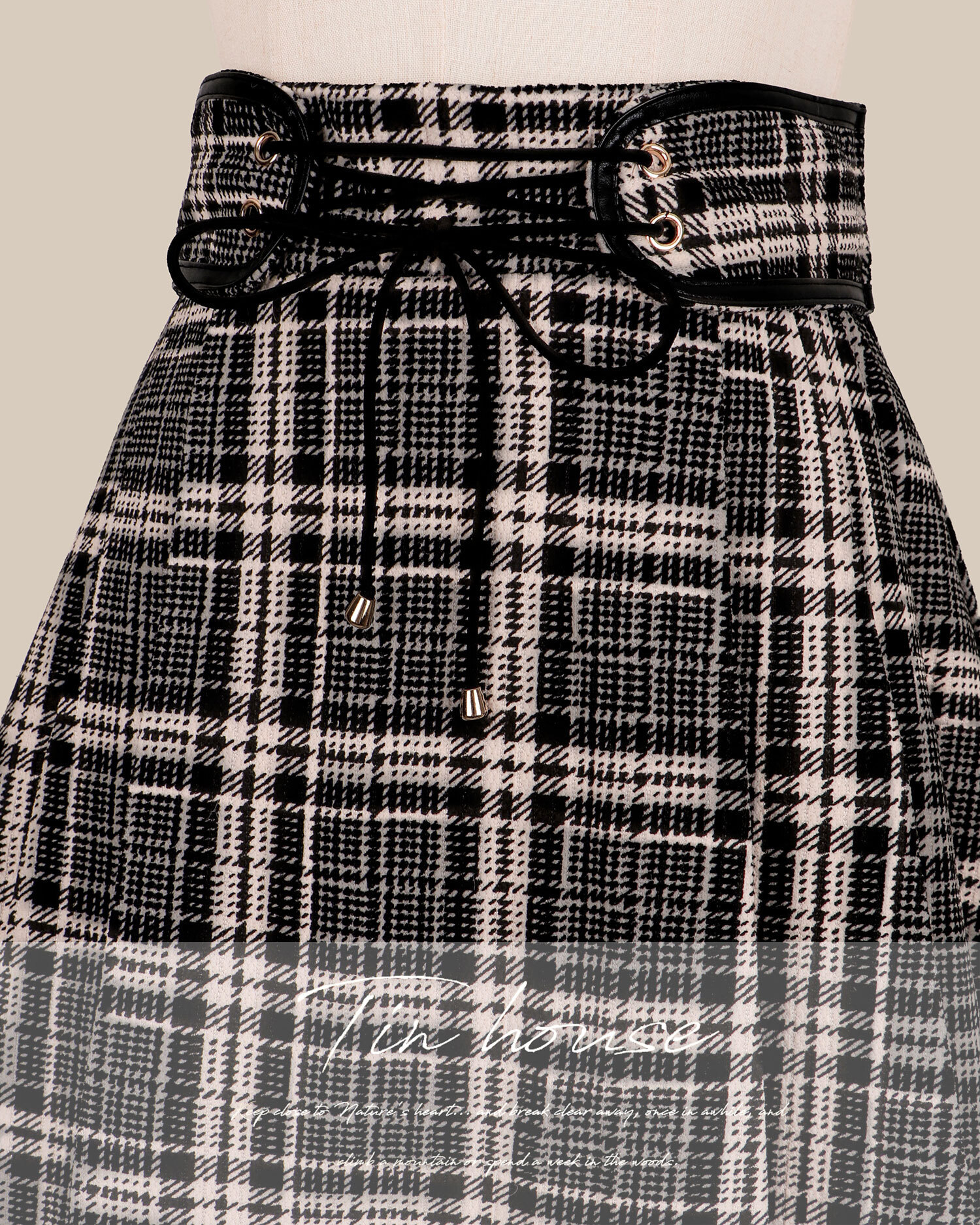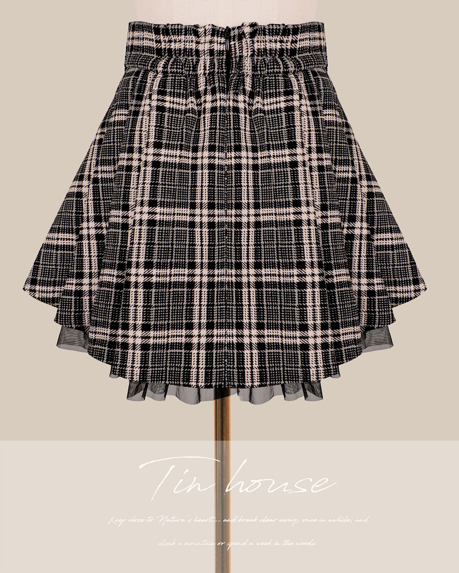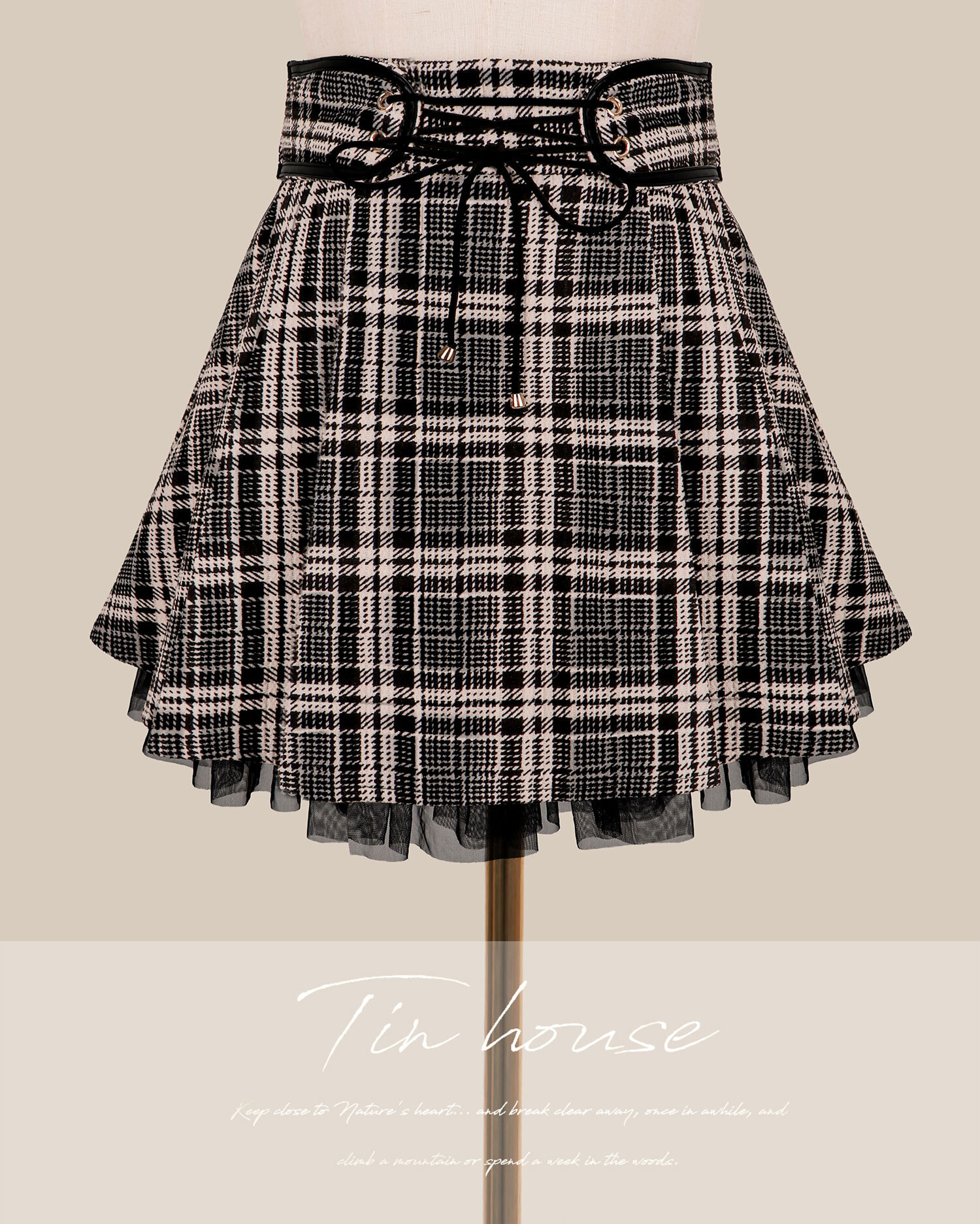聖誕限定-皮革線條拼接網紗百褶裙