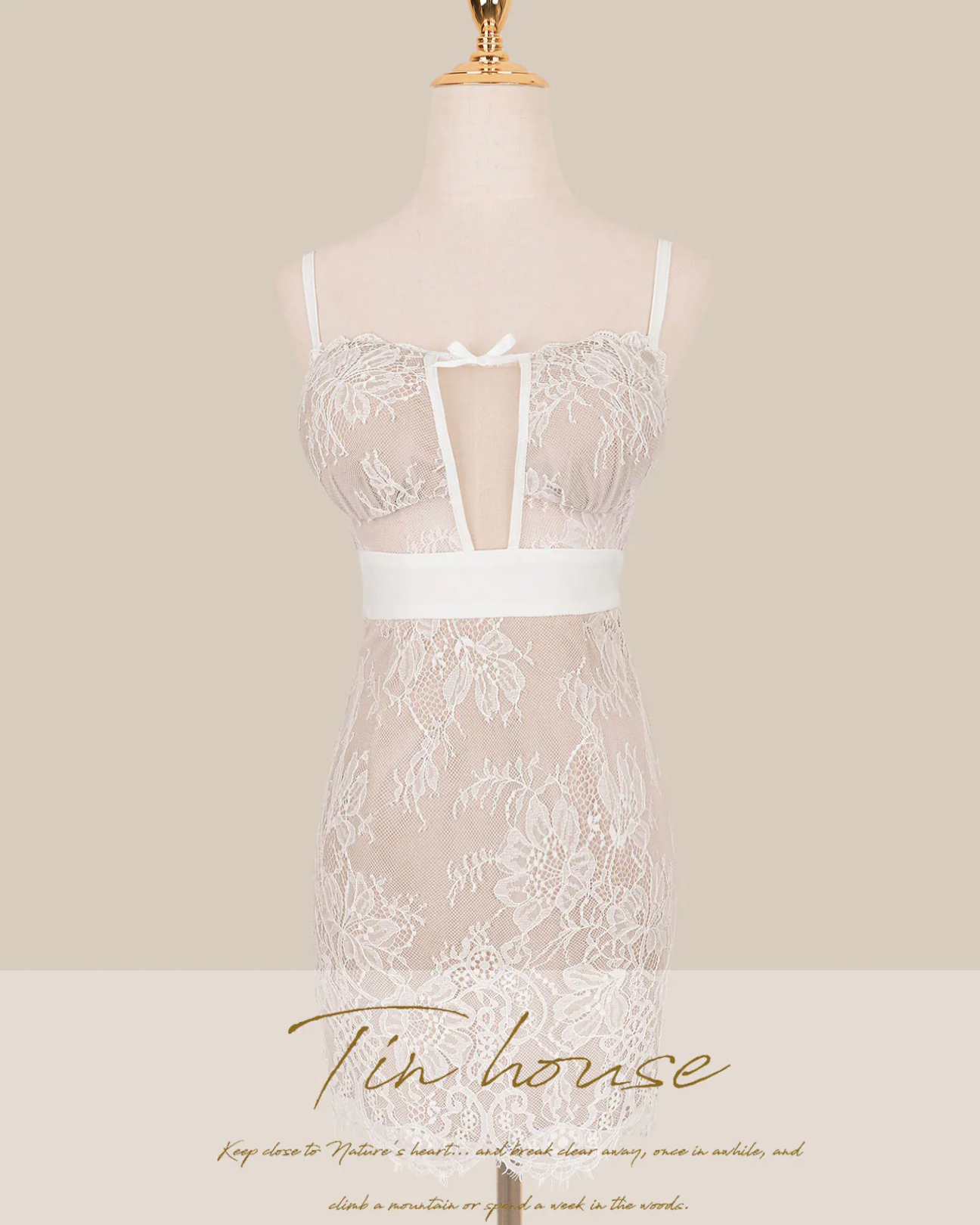 訂製-純欲透視網紗蕾絲桃心包臀洋