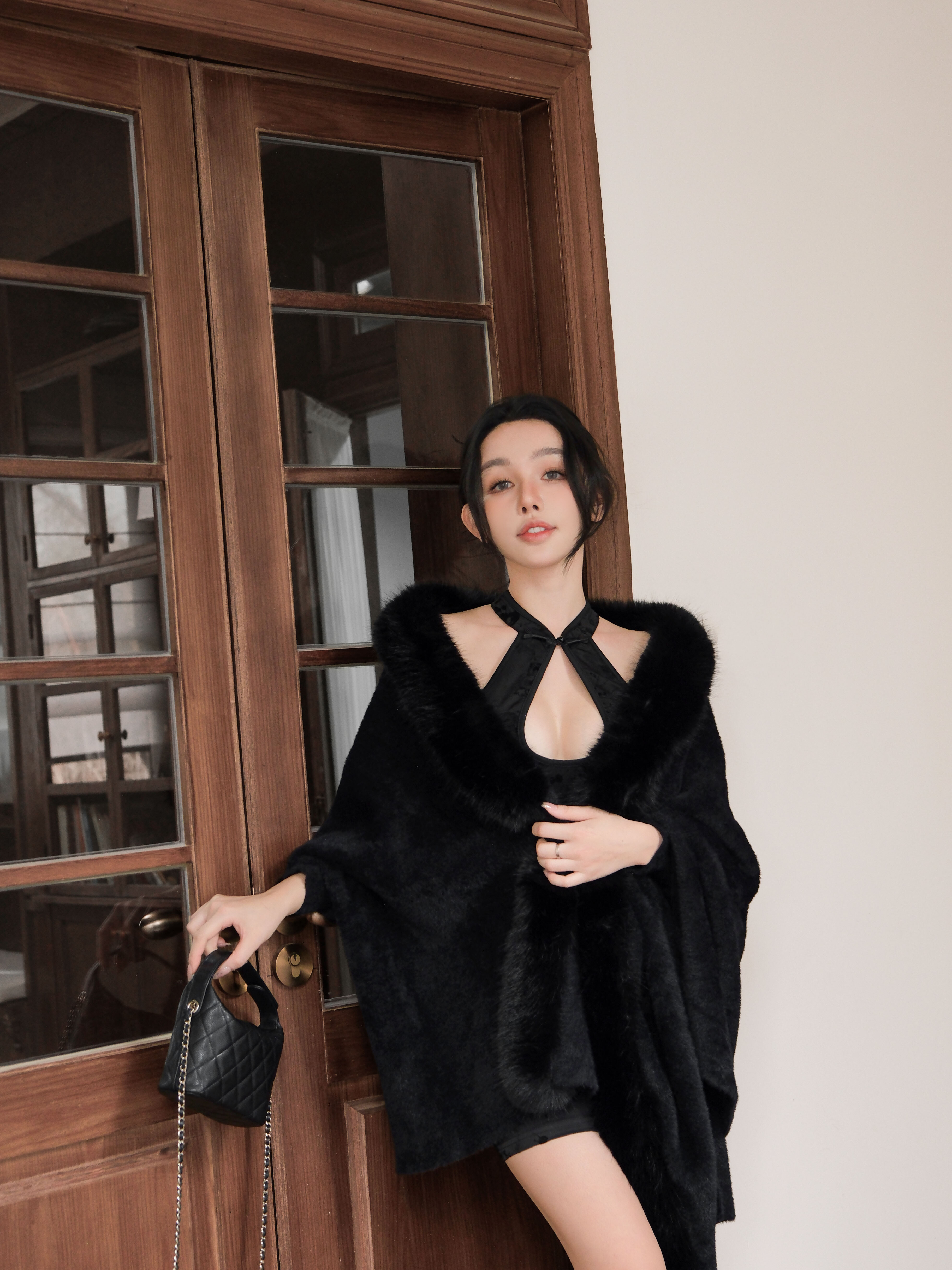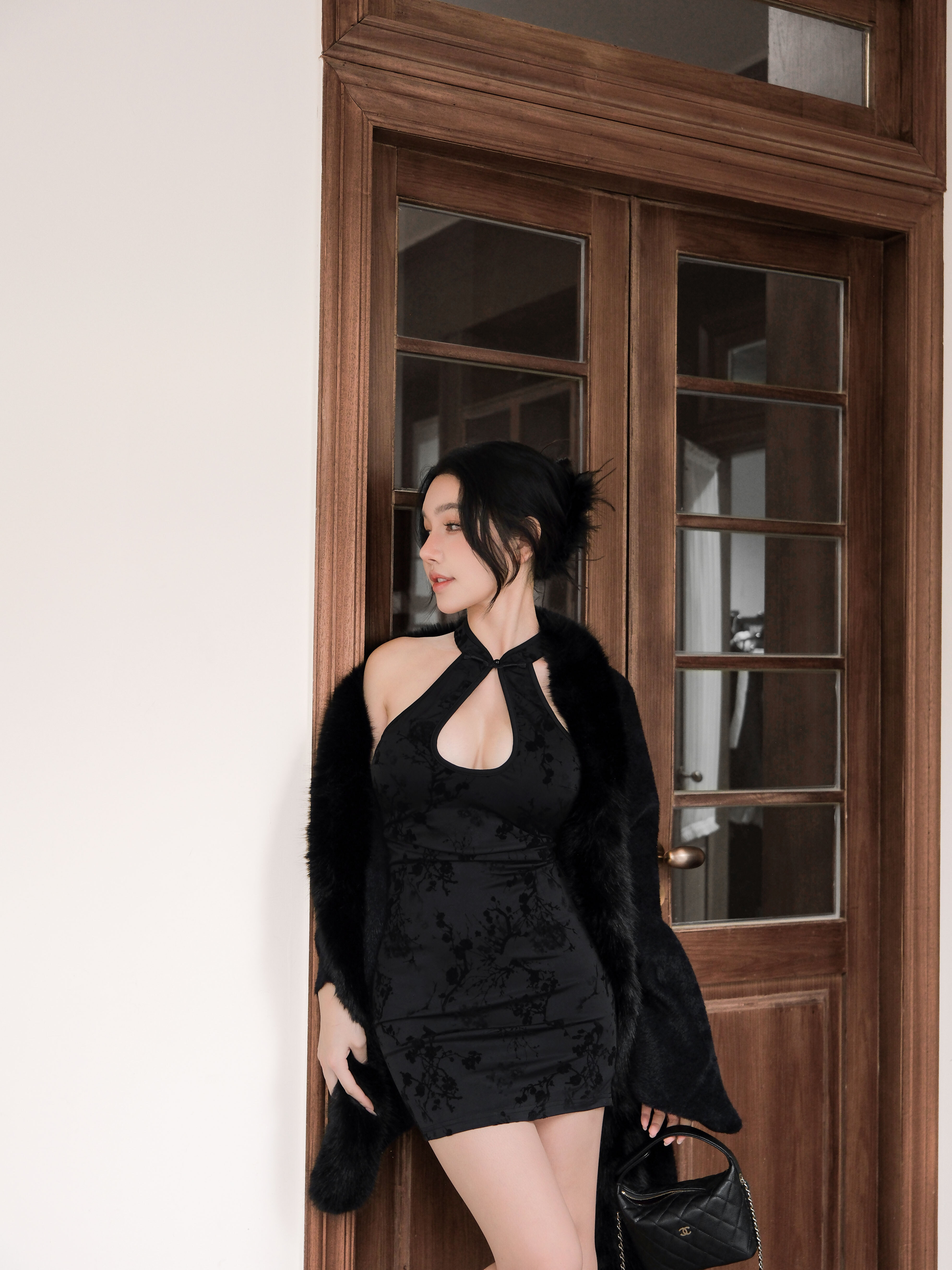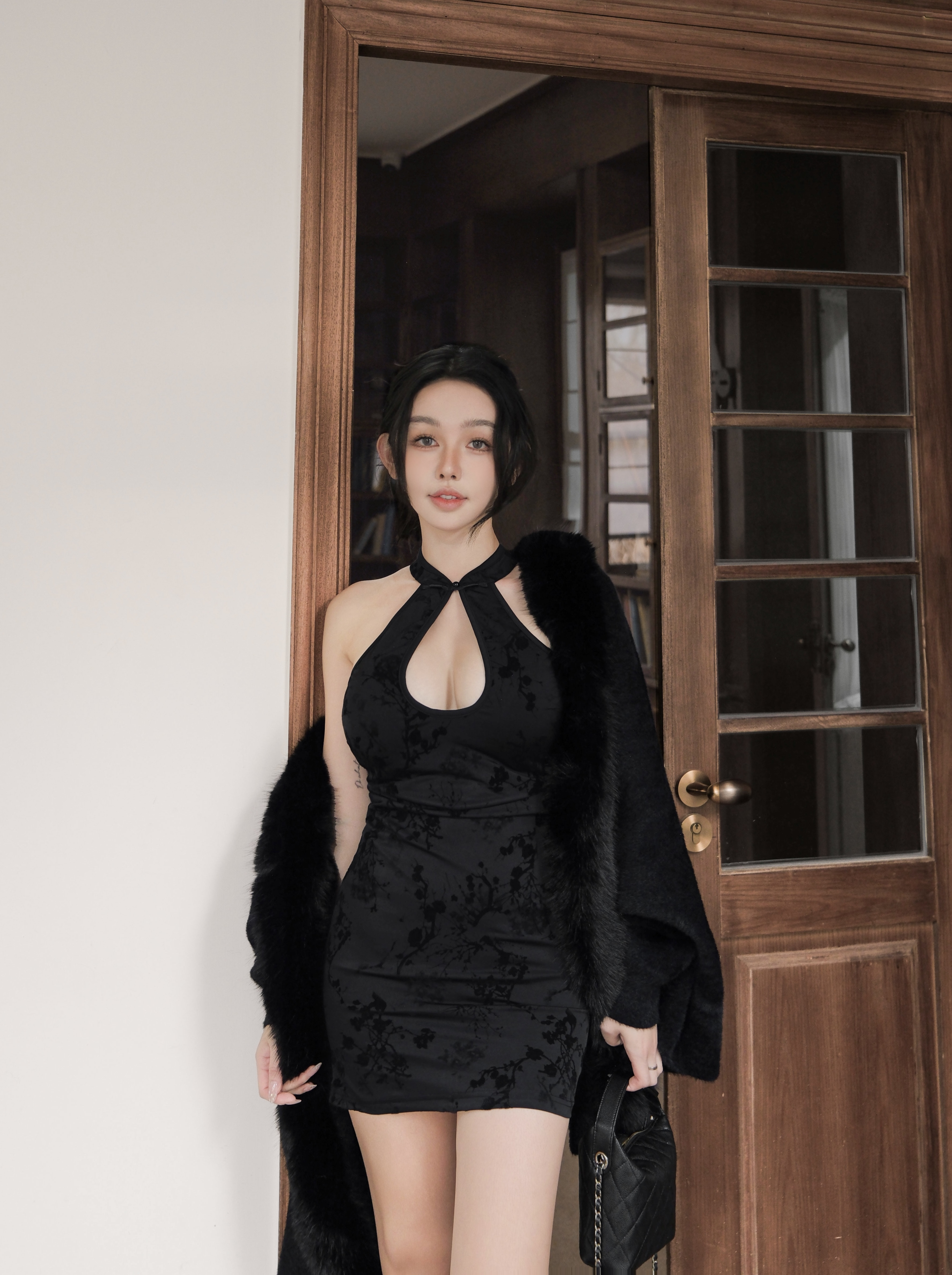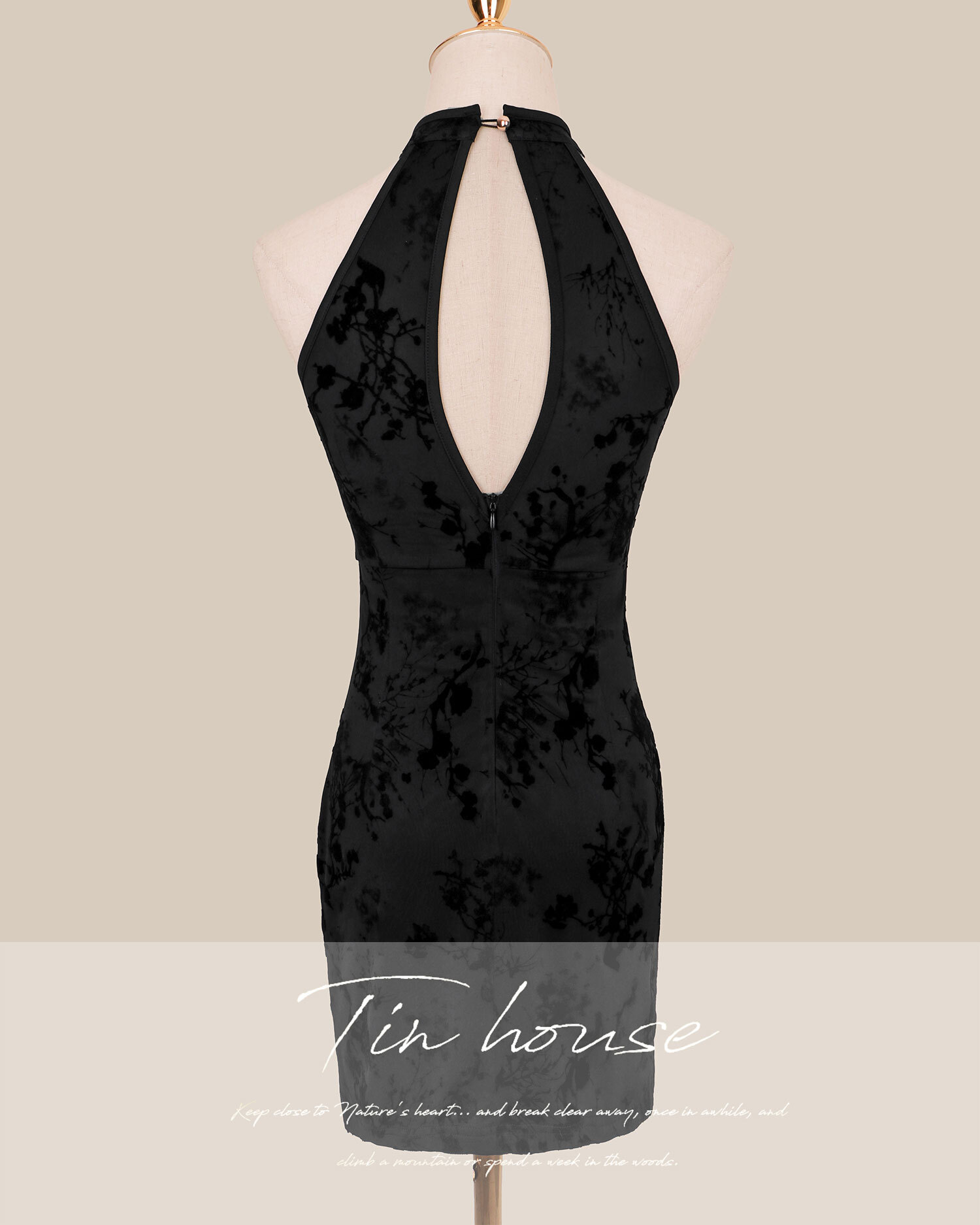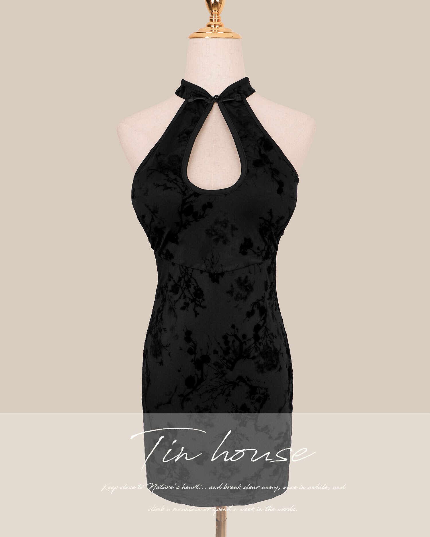 訂製-霧黑水墨新中式挖胸短洋