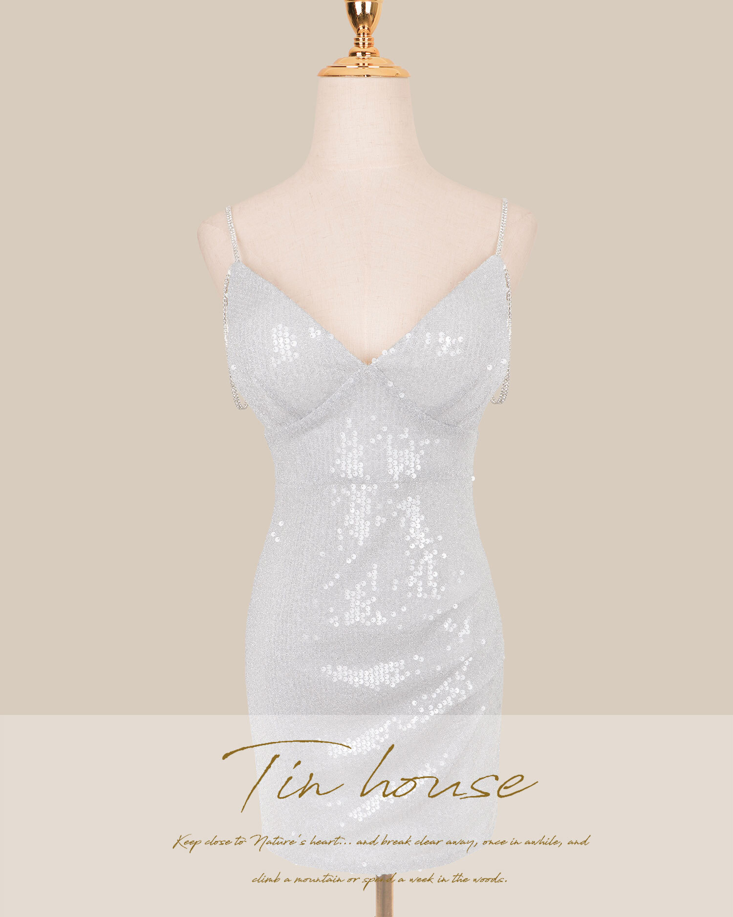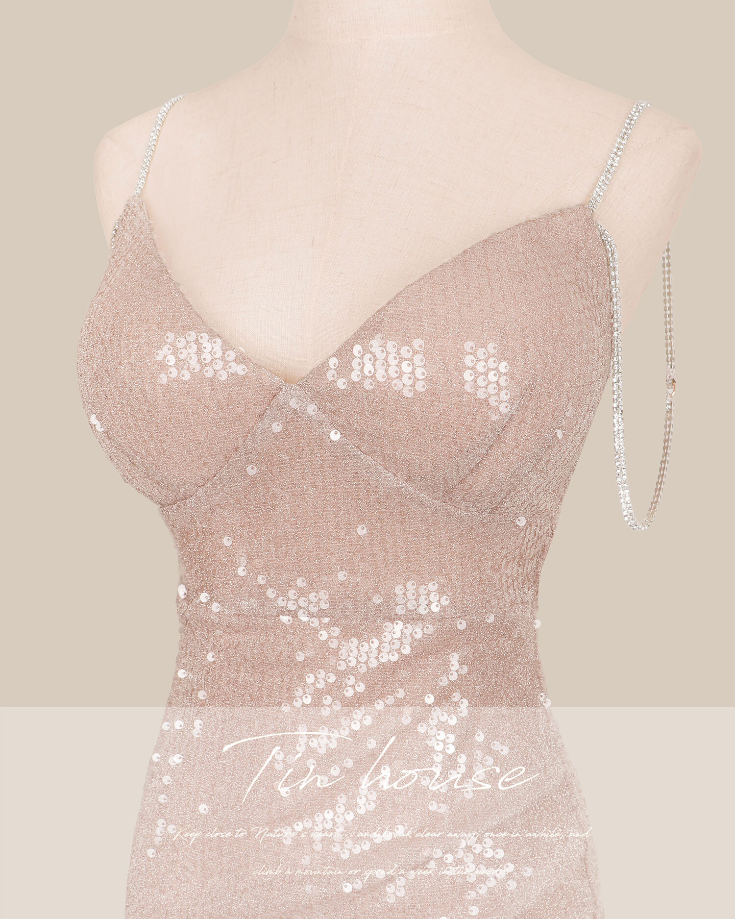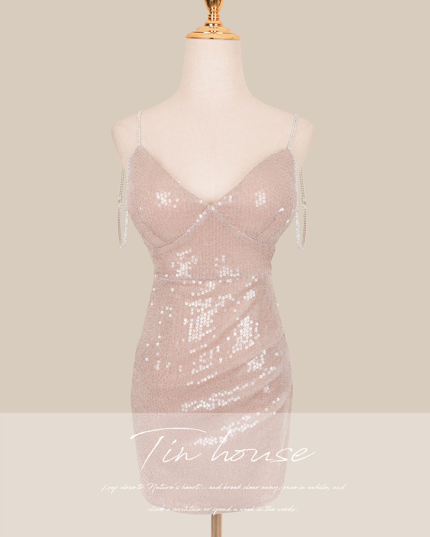 訂製-性感低胸水鑽雙肩帶合身短洋