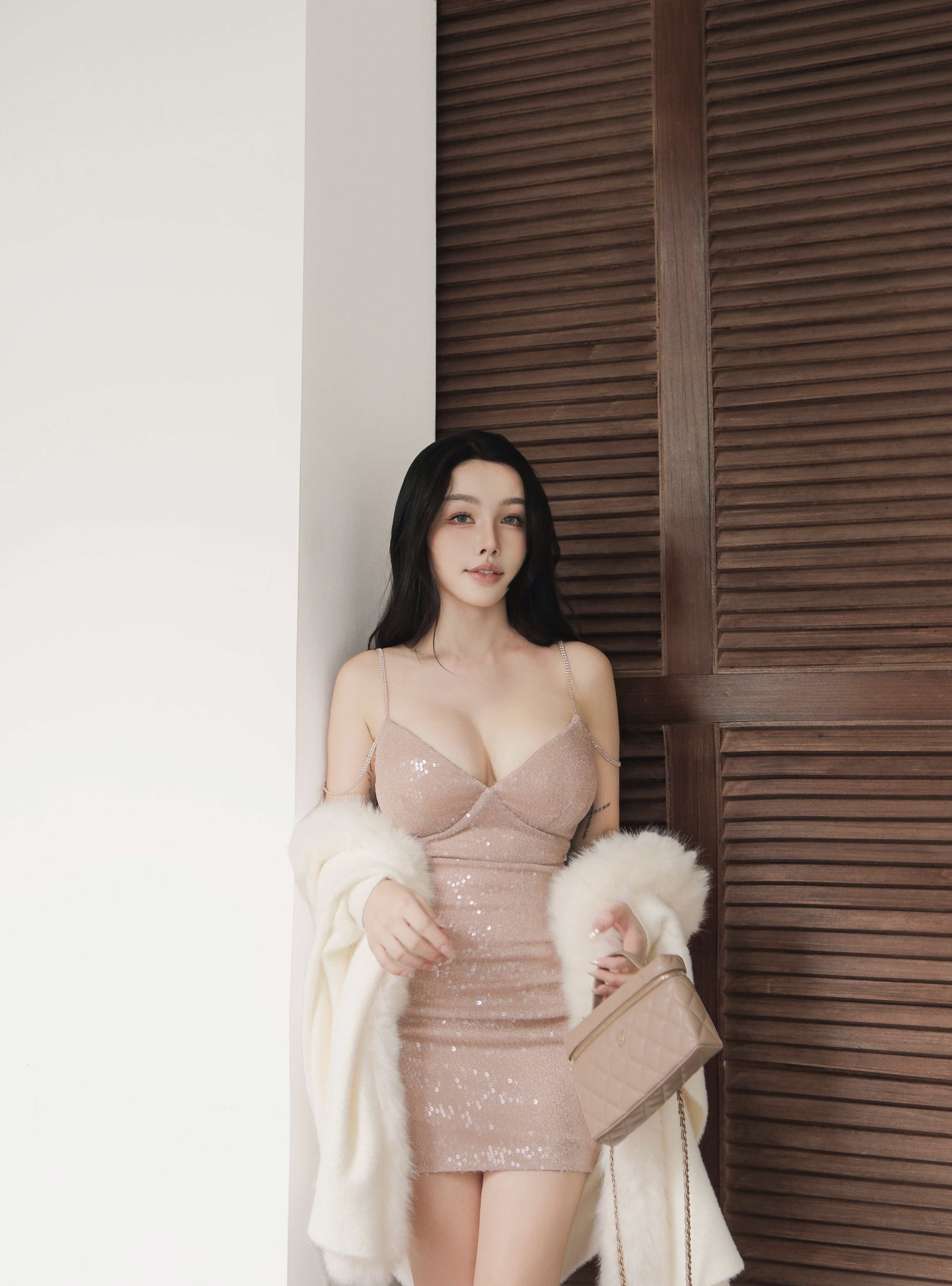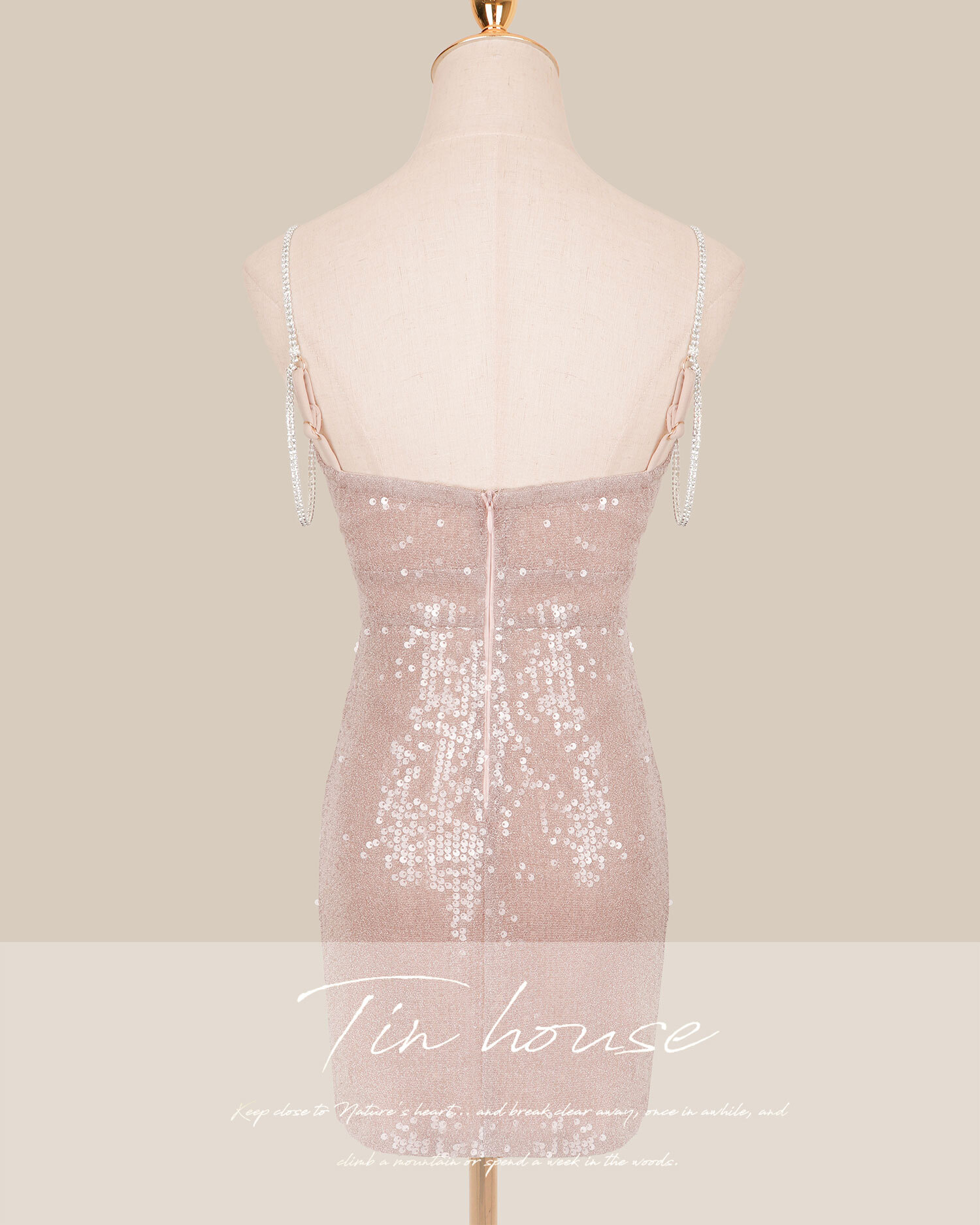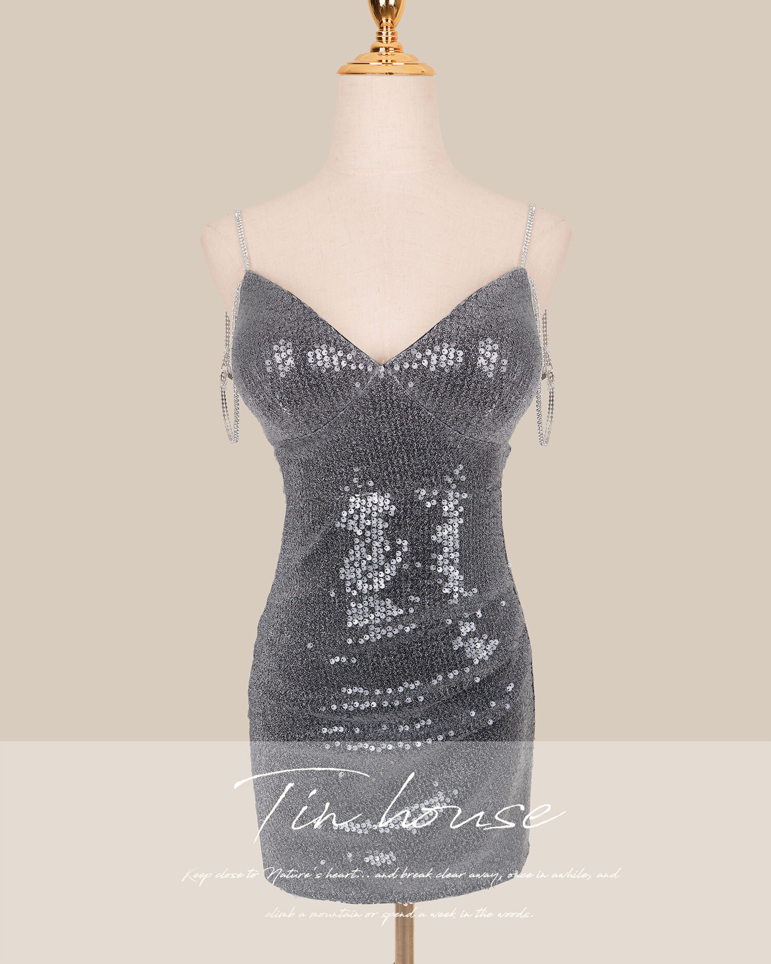 訂製-性感低胸水鑽雙肩帶合身短洋