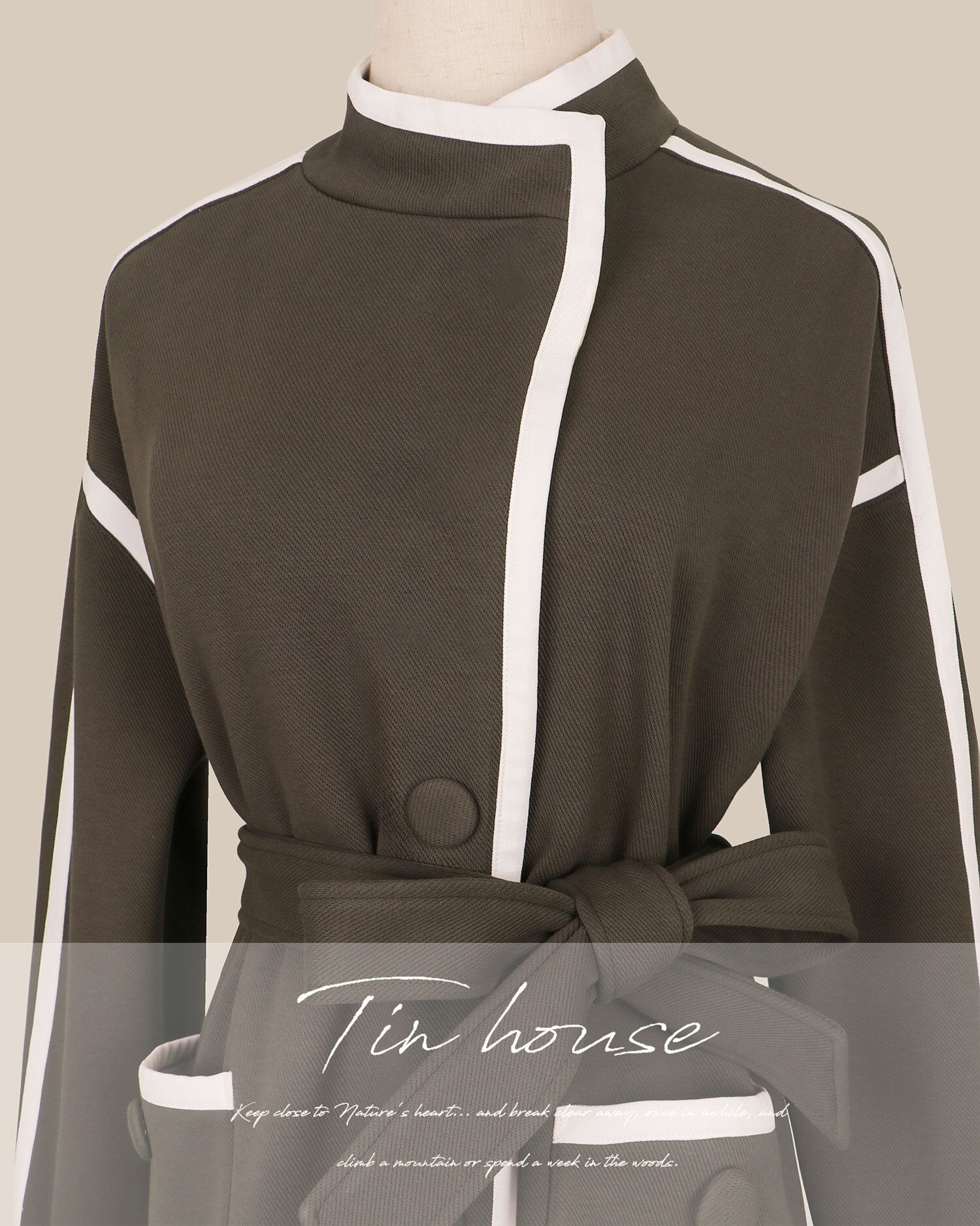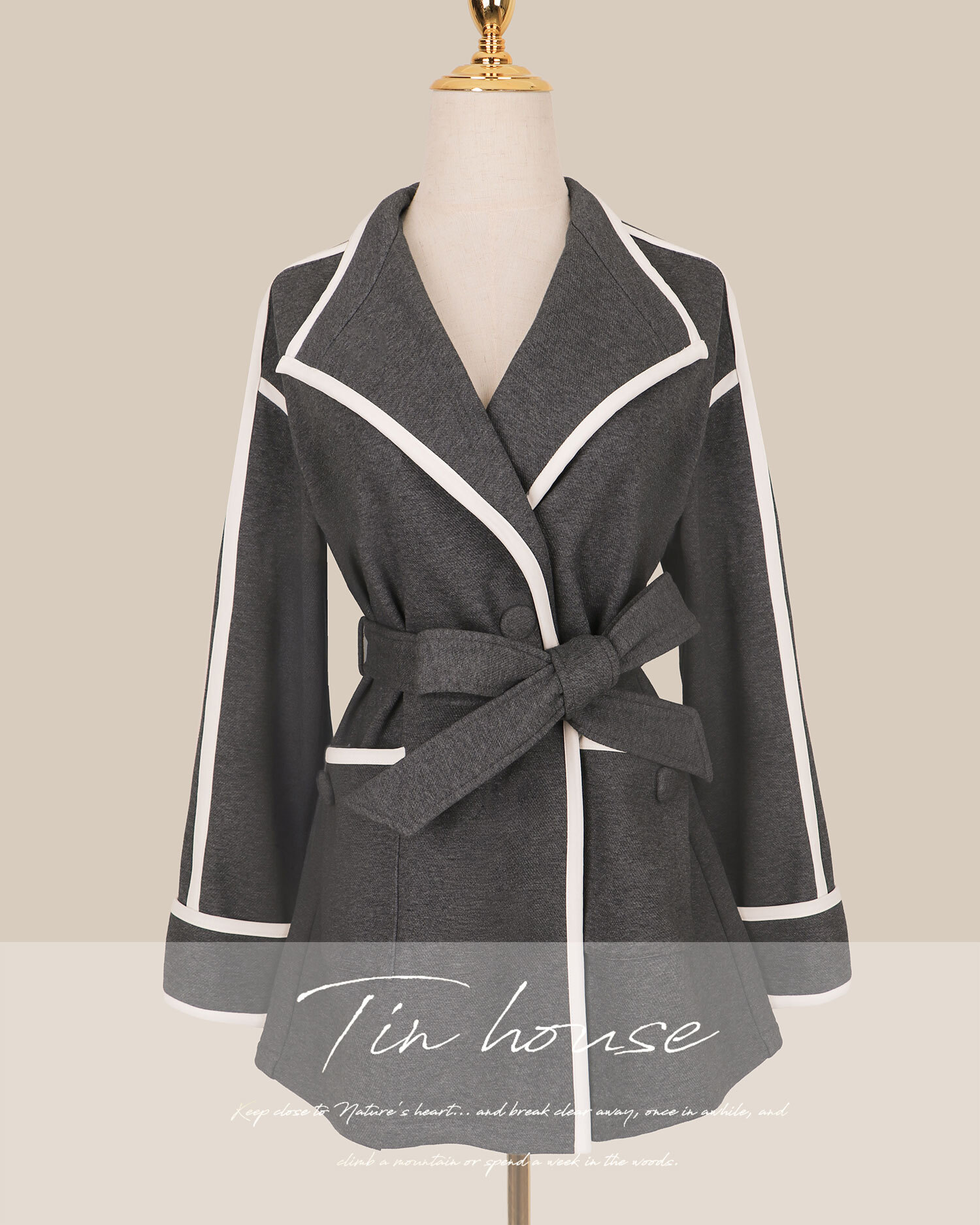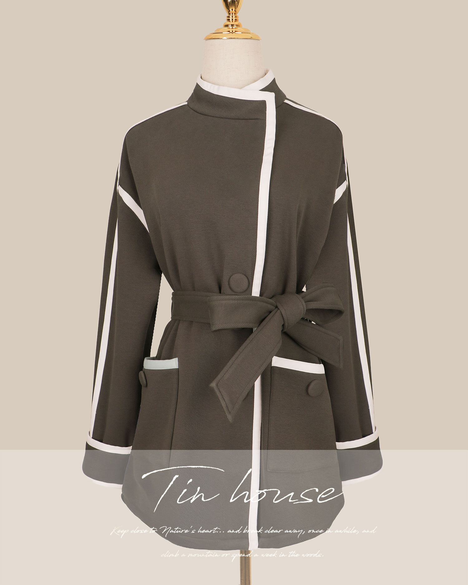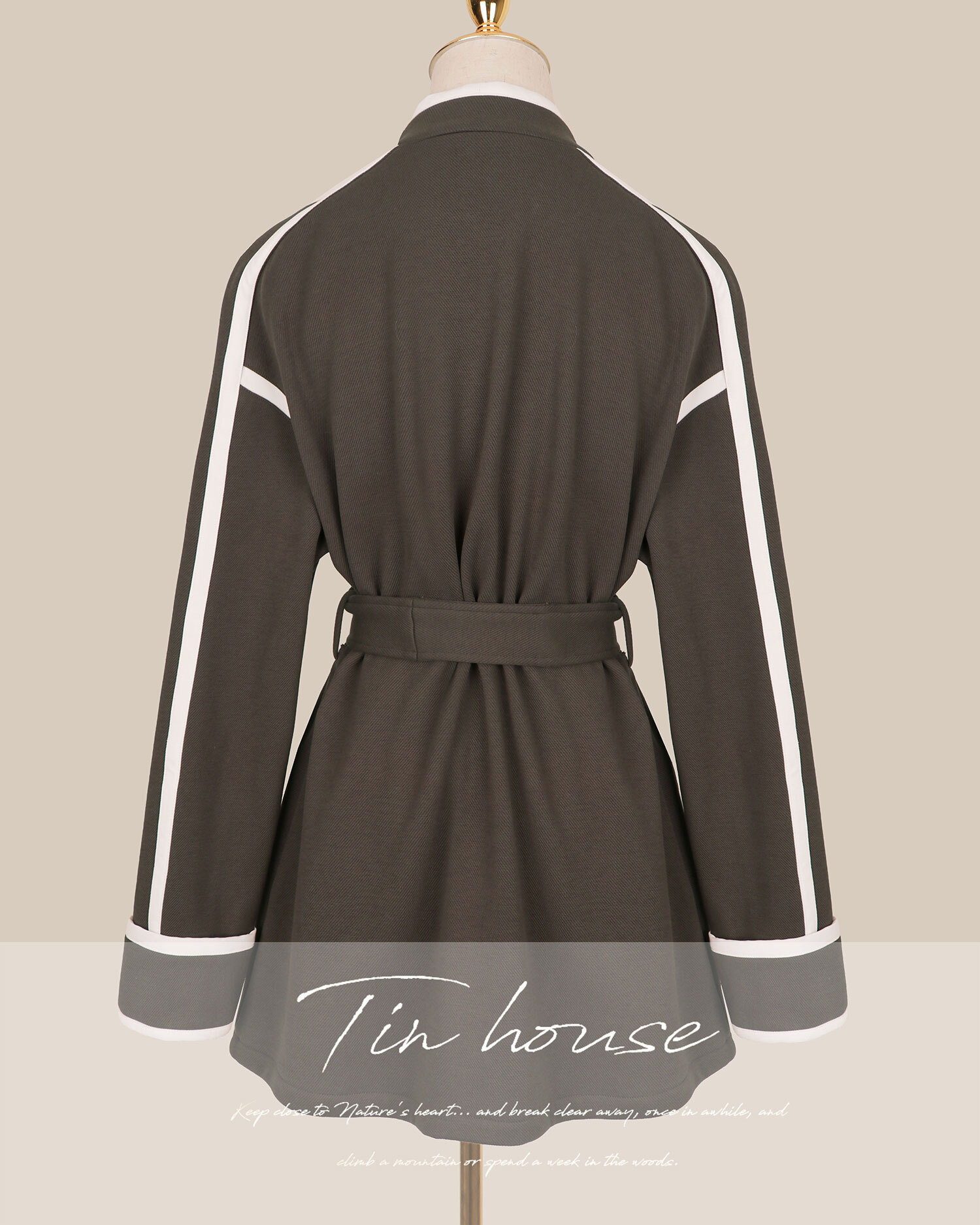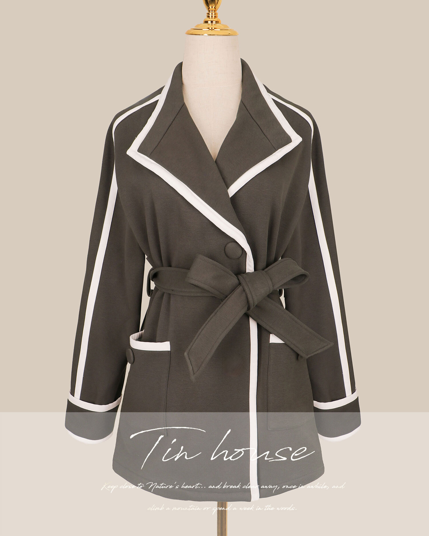 訂製-個性刷毛白滾邊風衣外套