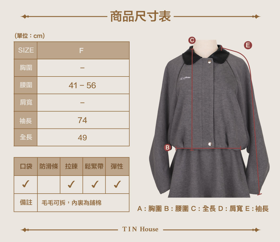 領口、袖口毛可拆;內裡鋪棉