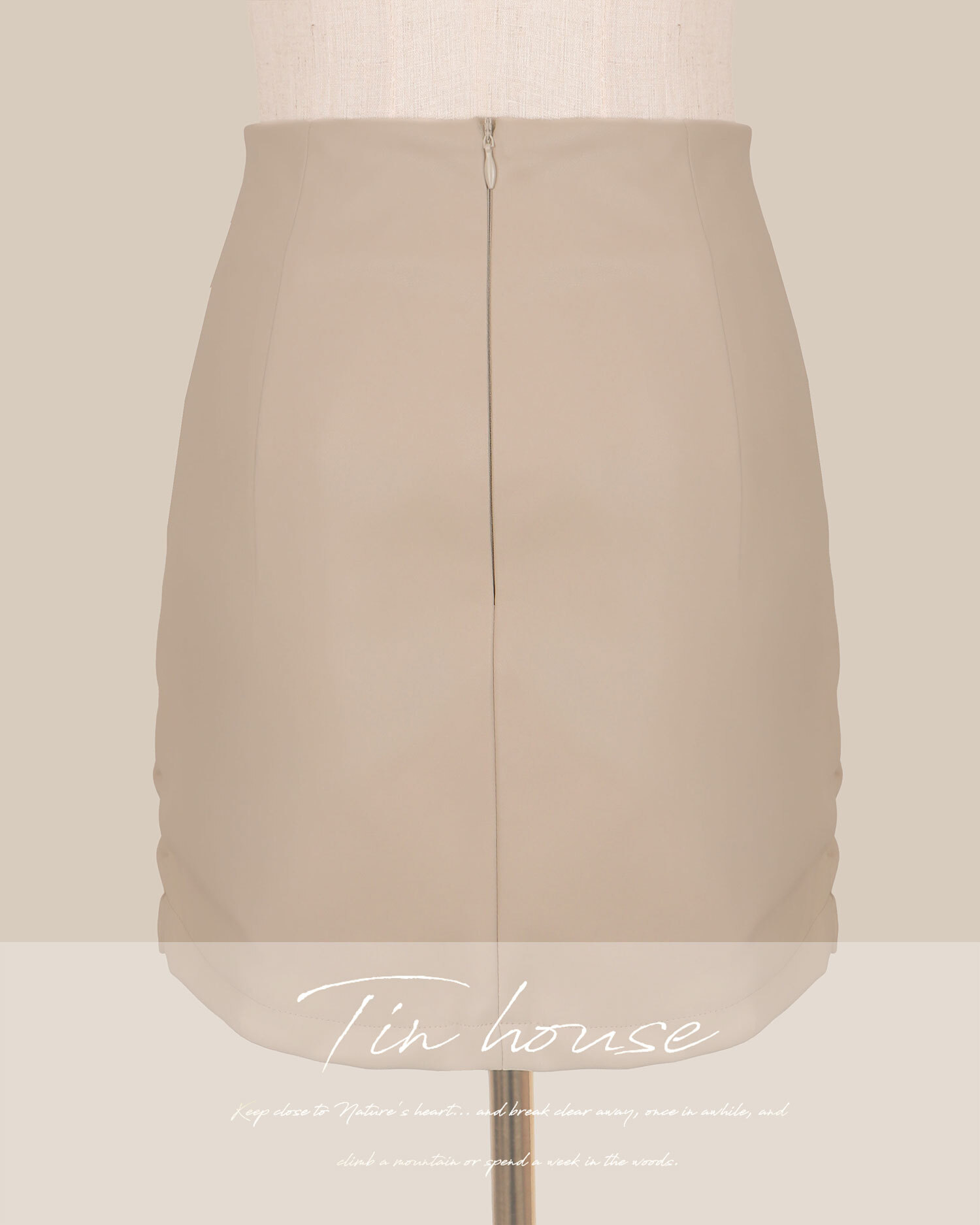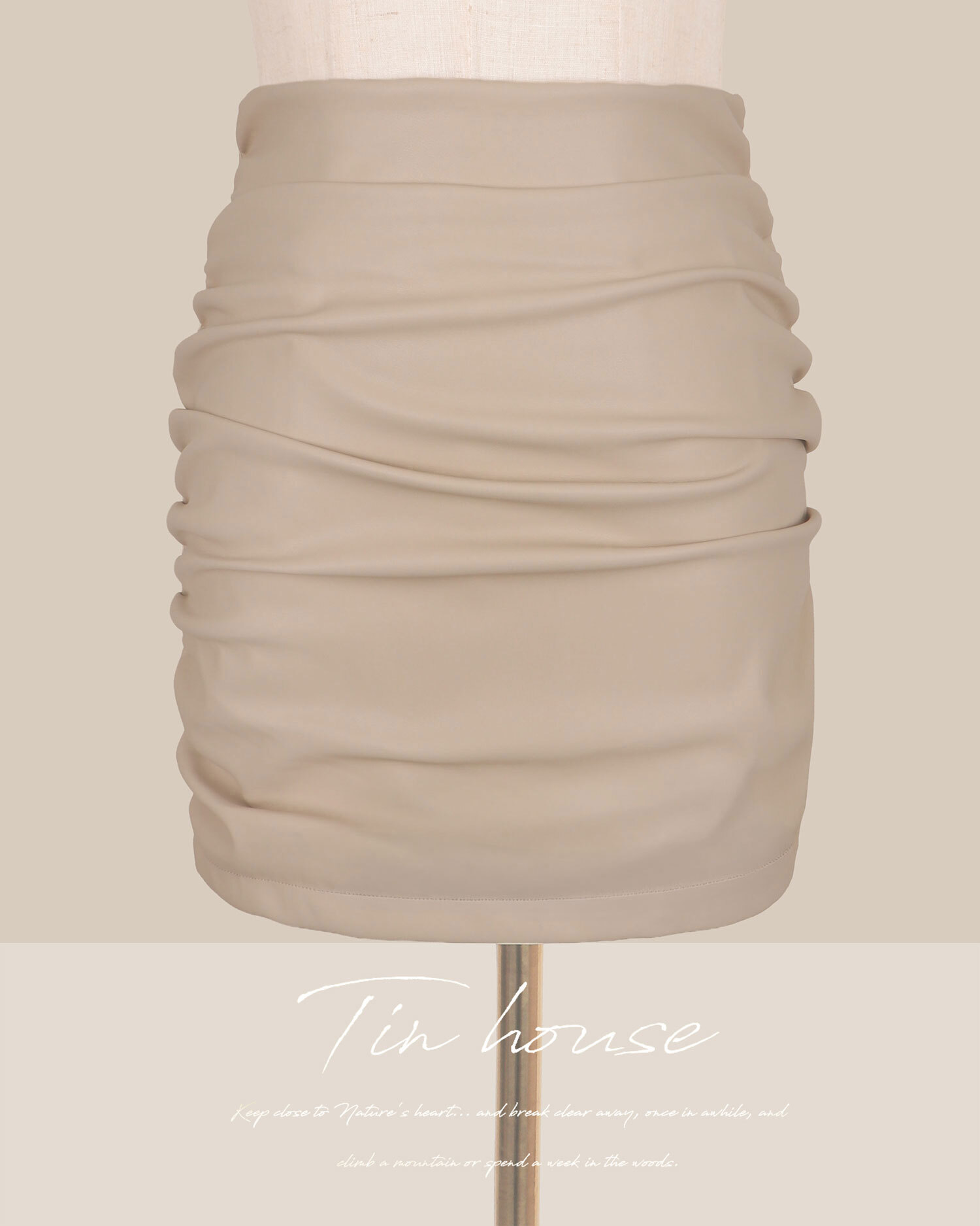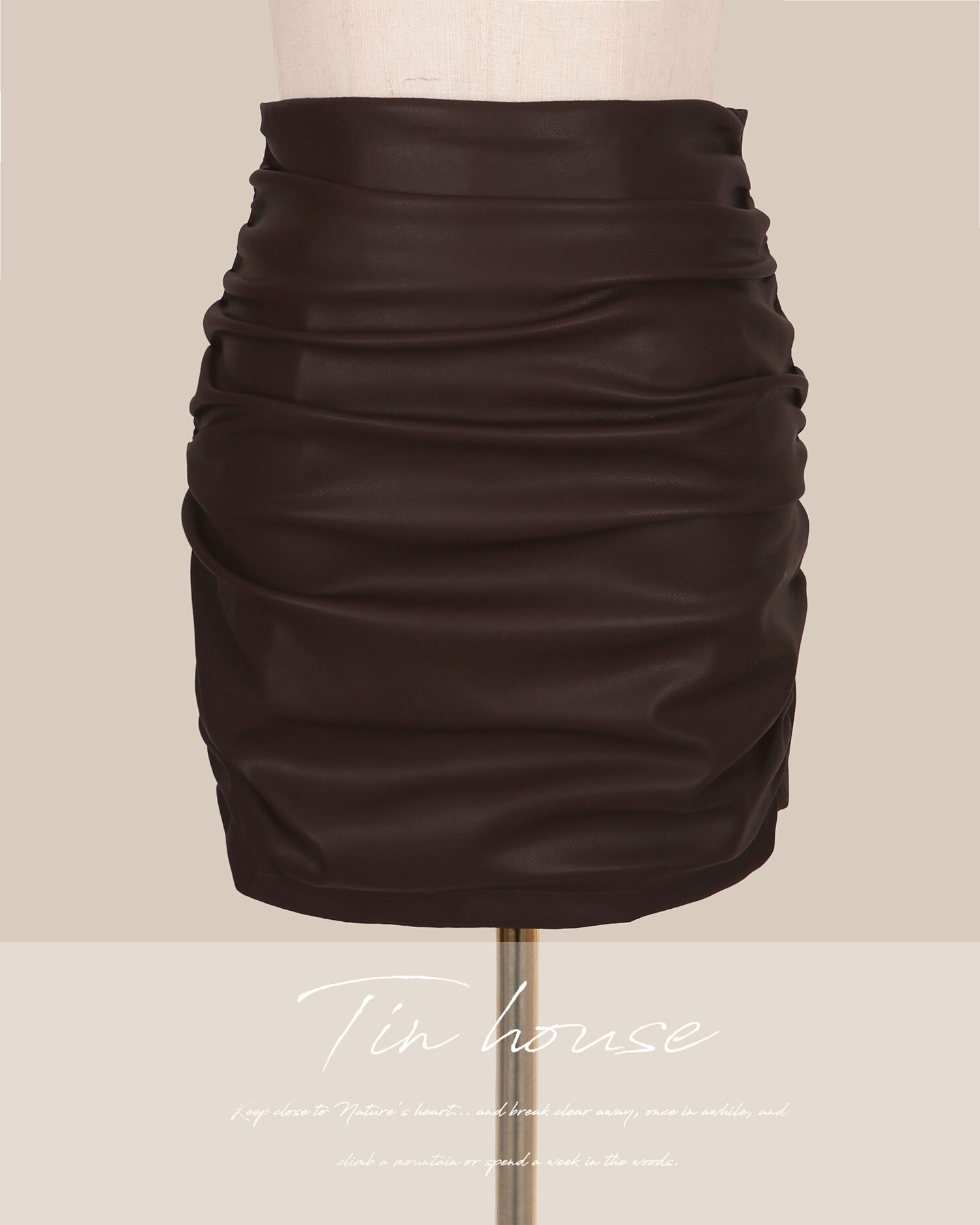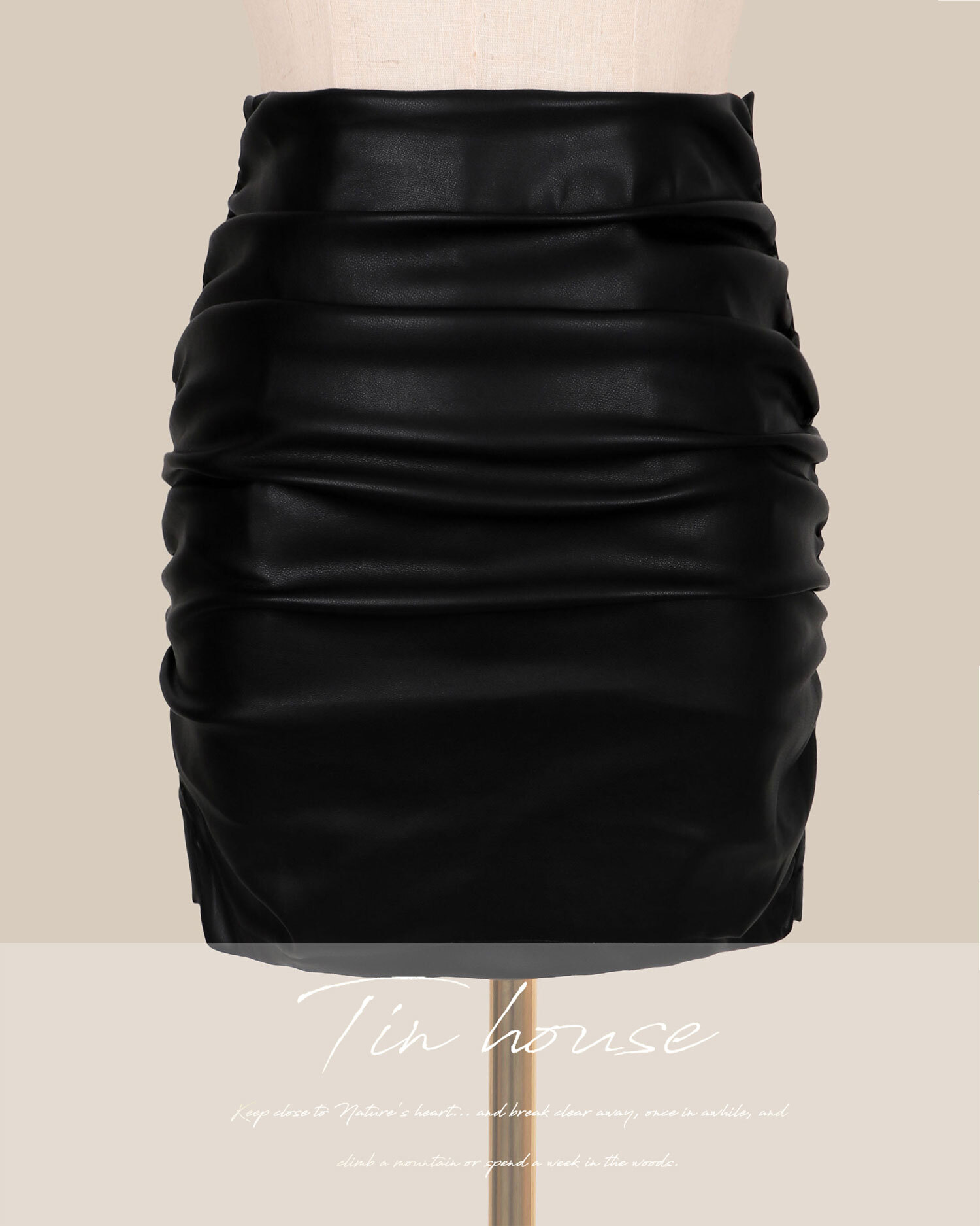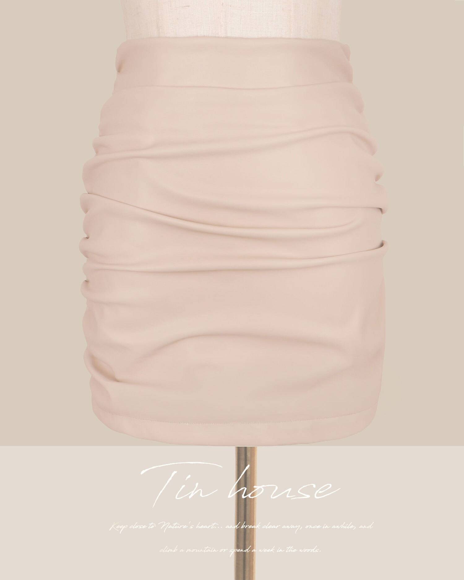 訂製-個性彈力抓皺皮革包臀短裙