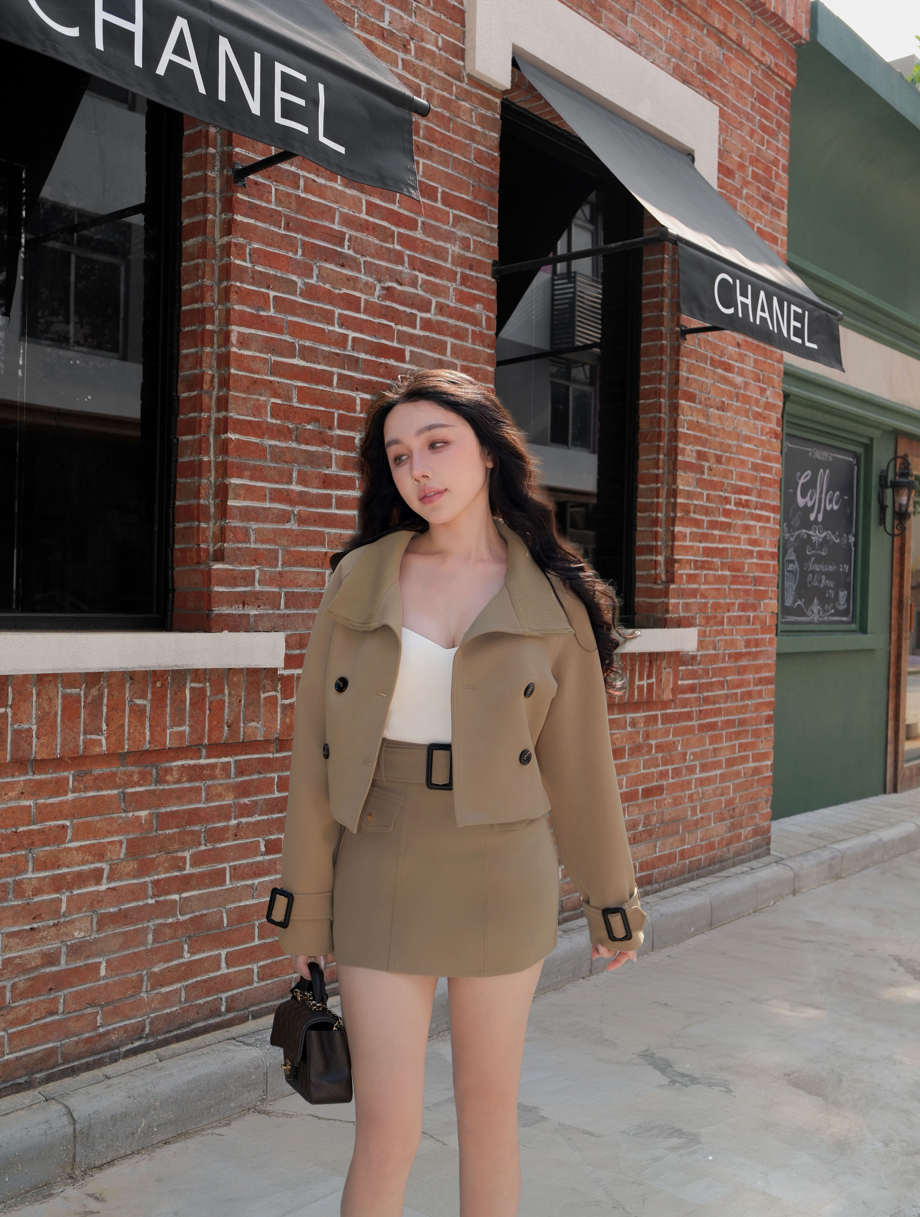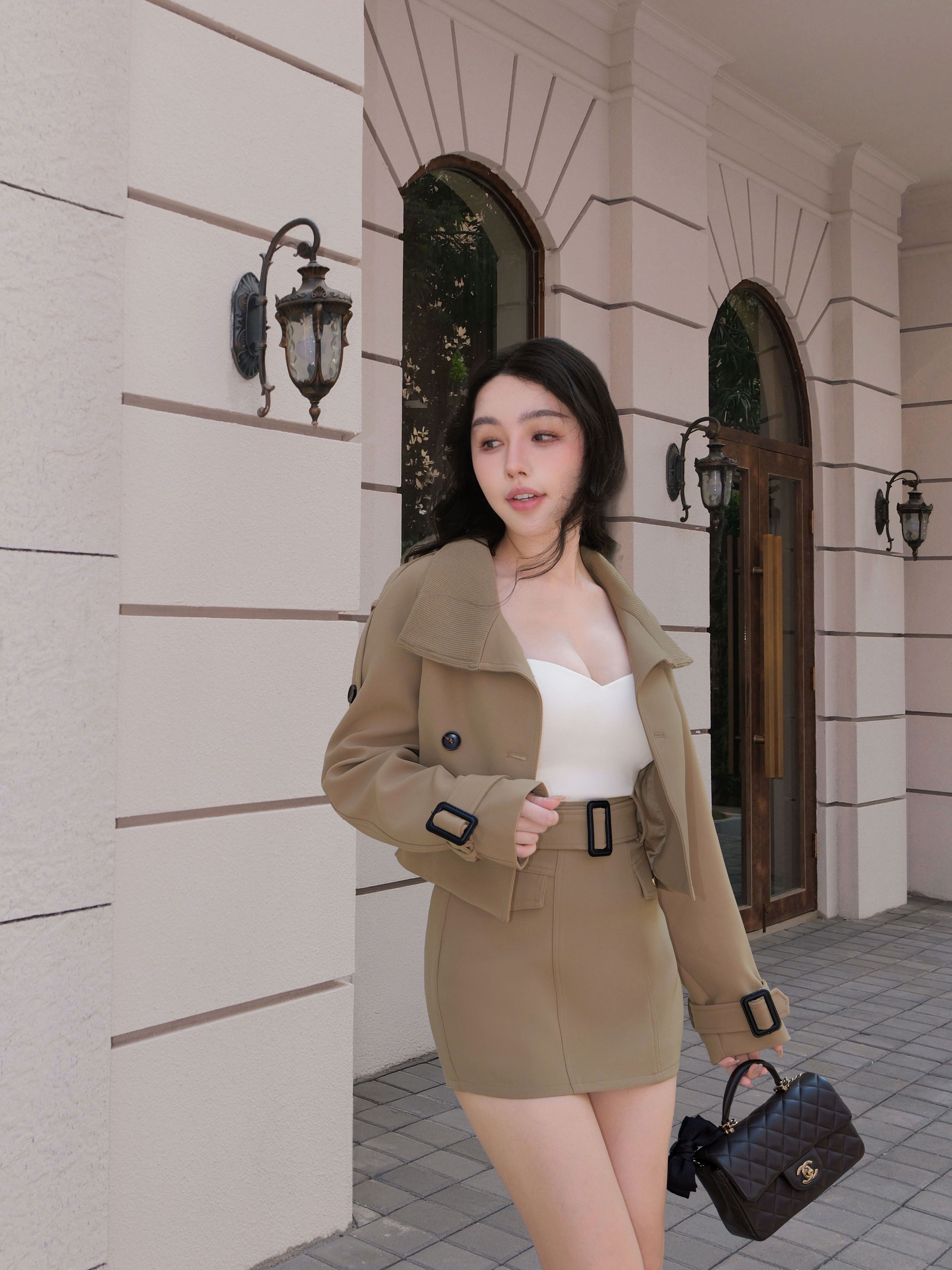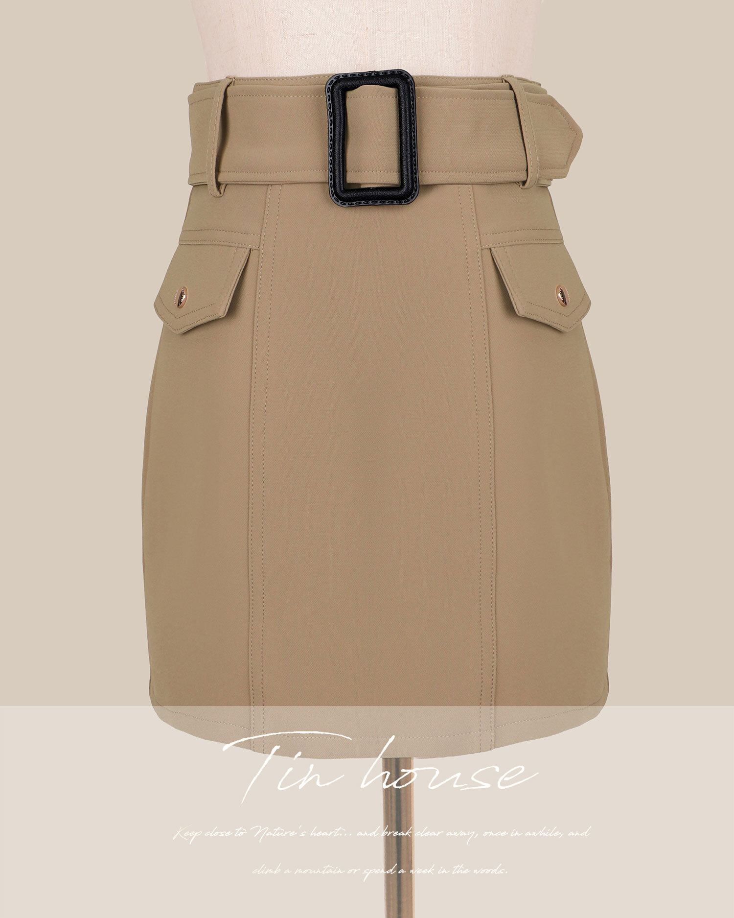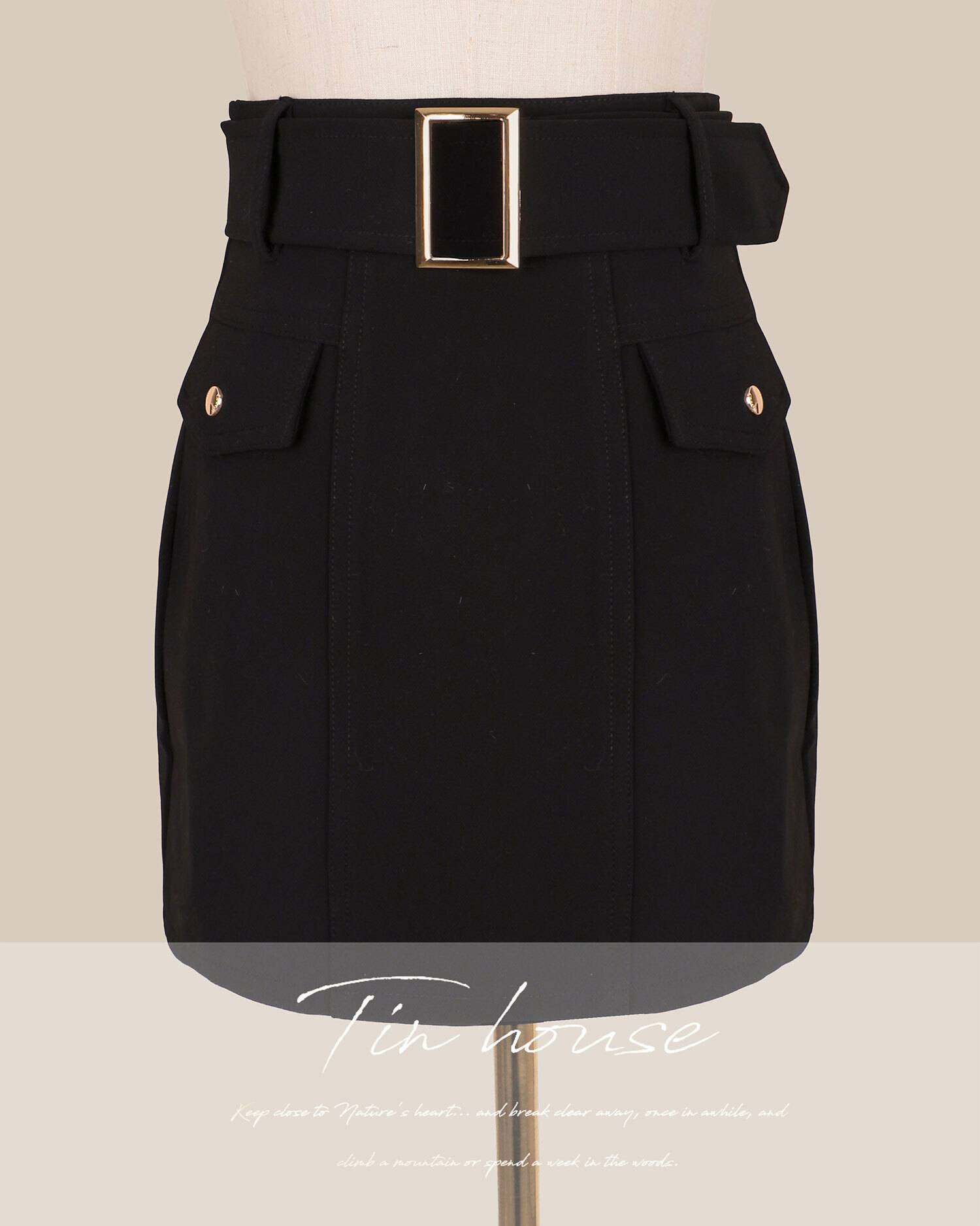 訂製-經典排釦腰帶短裙