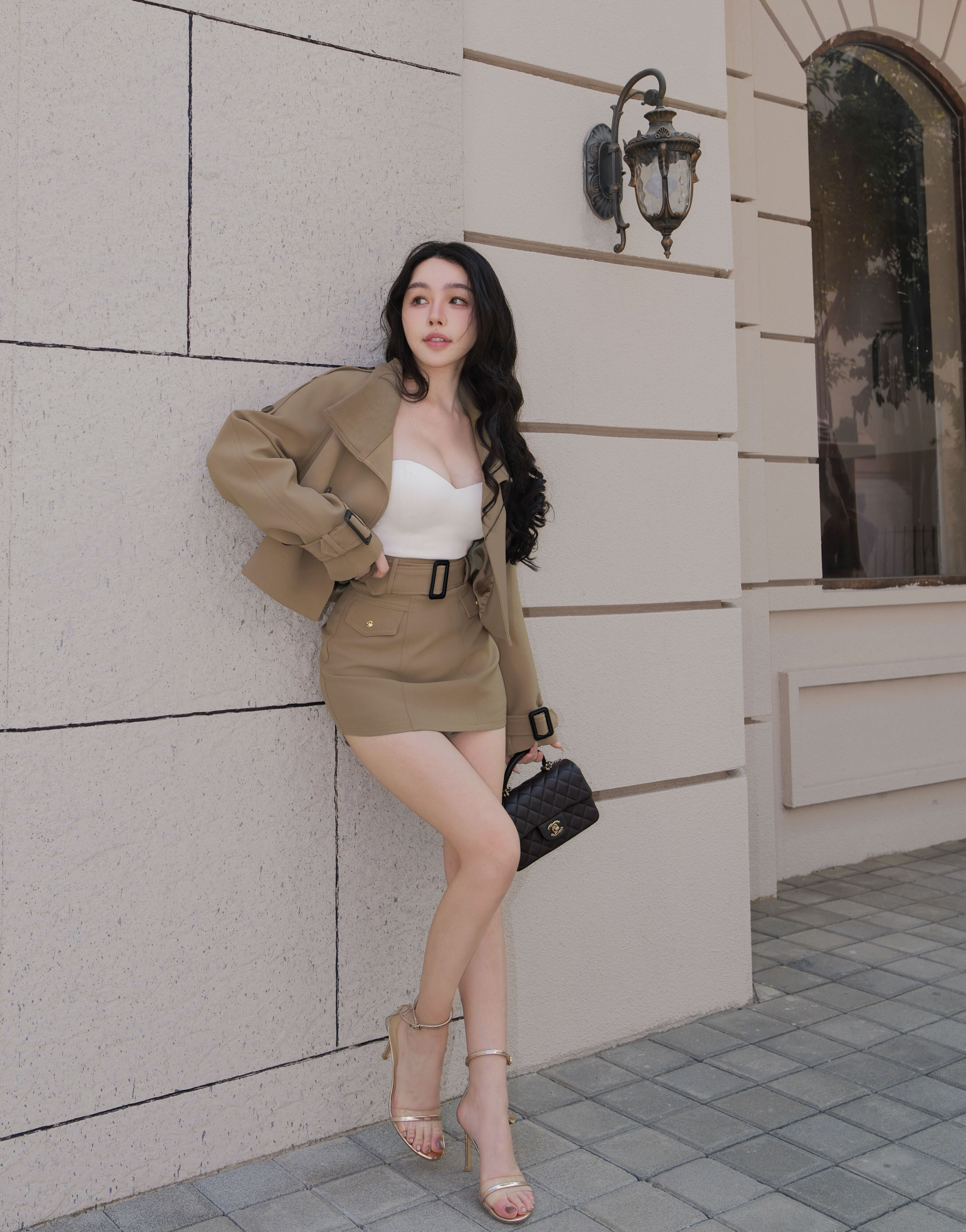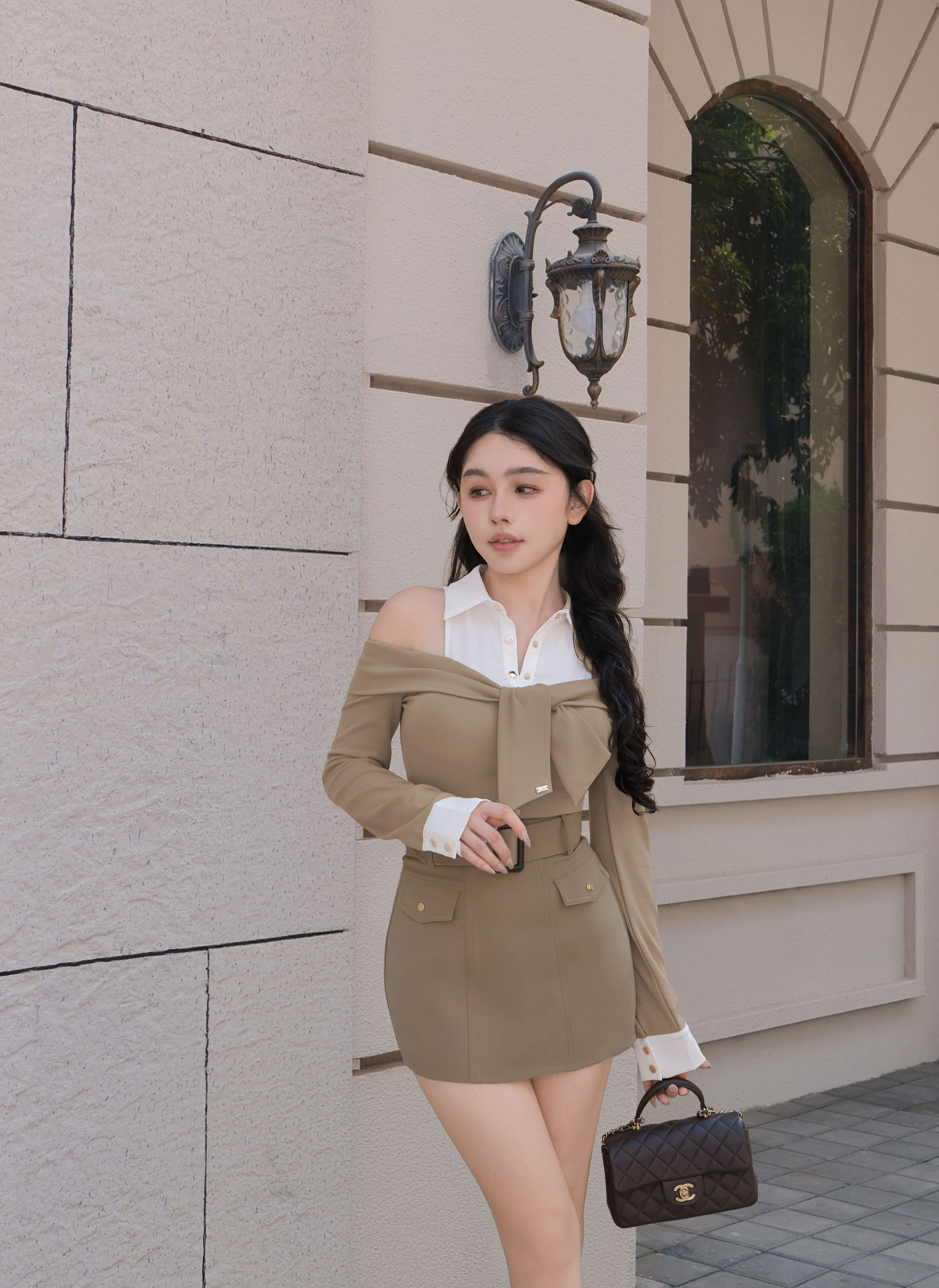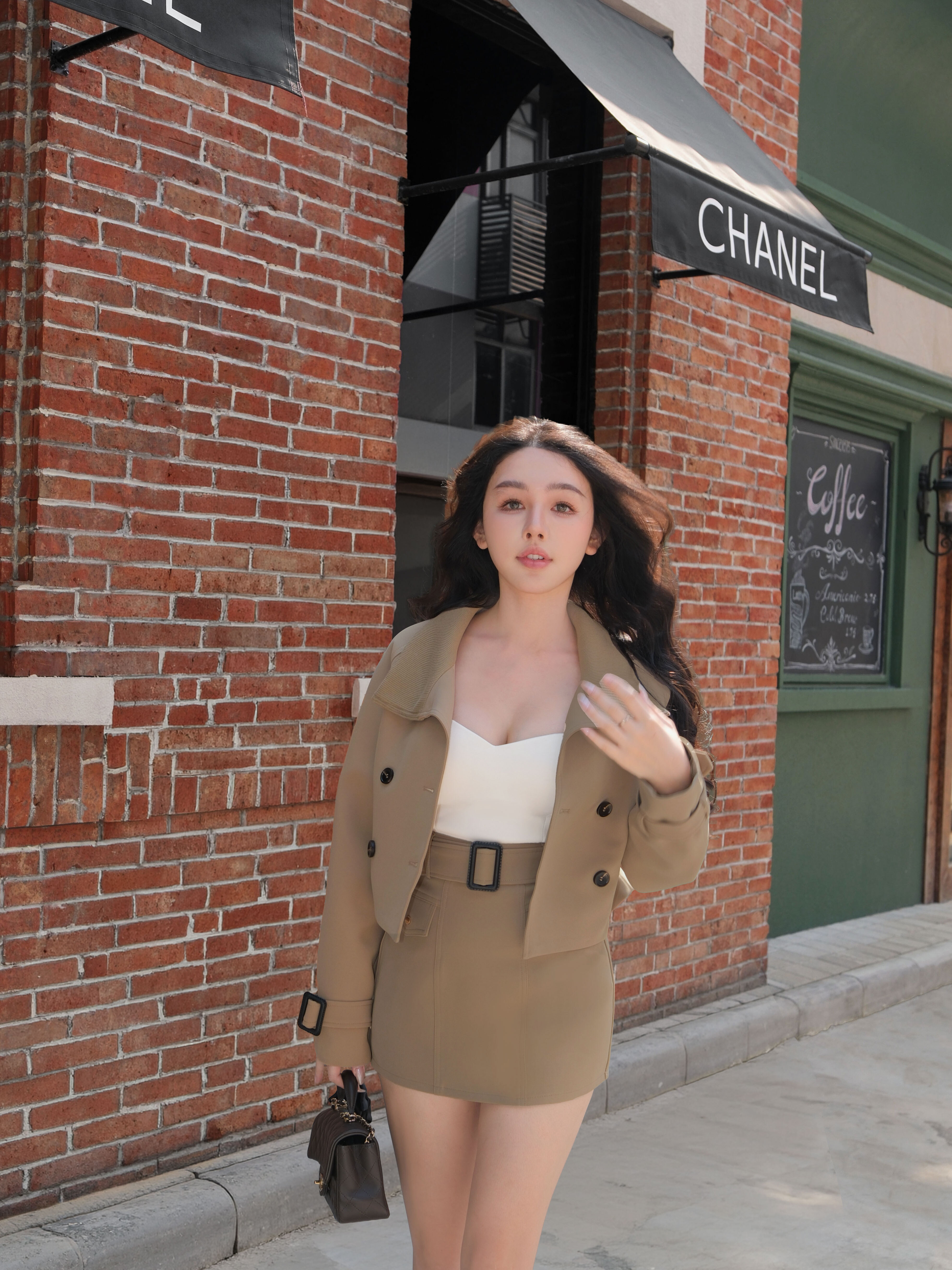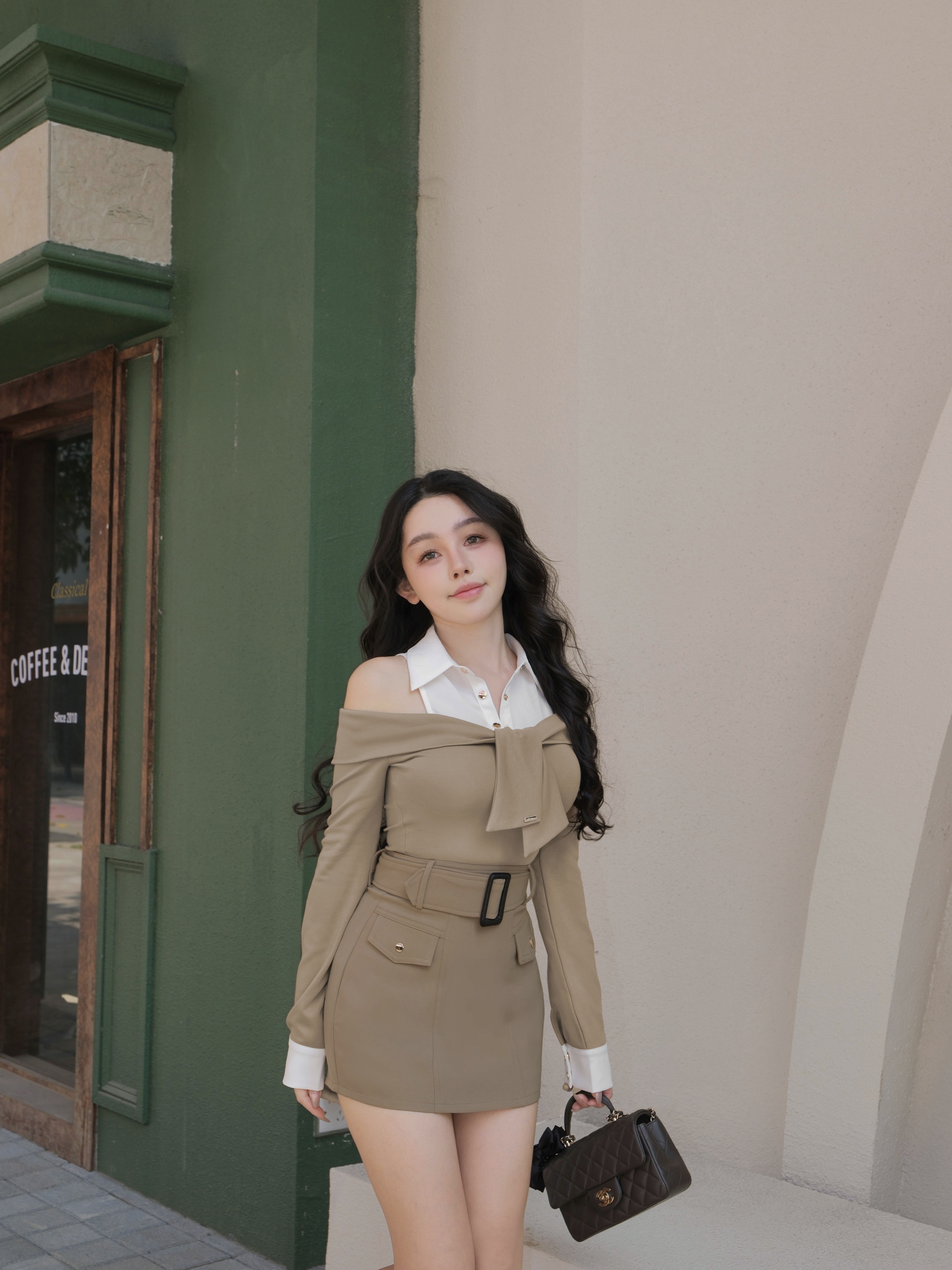 訂製-經典排釦腰帶短裙