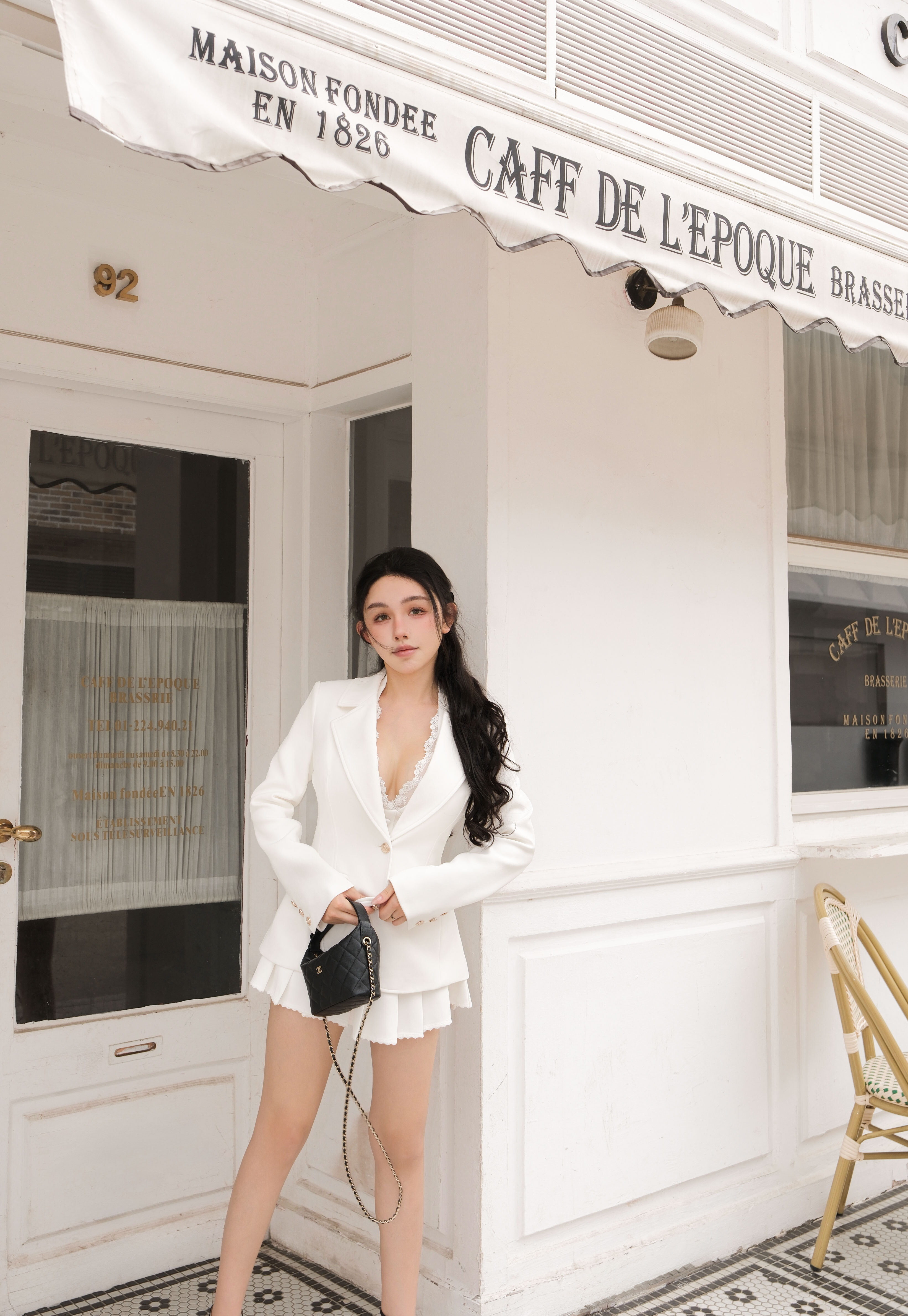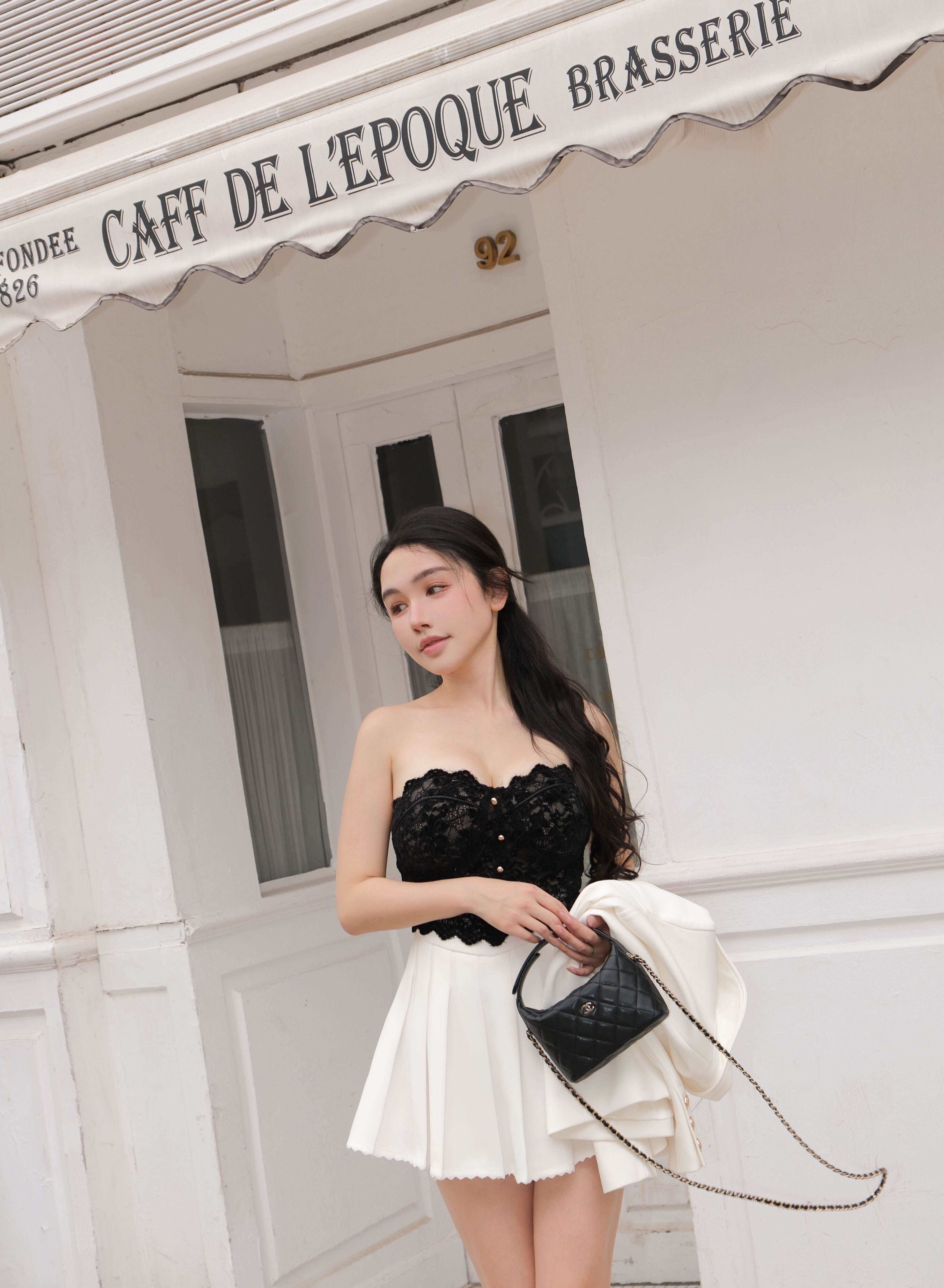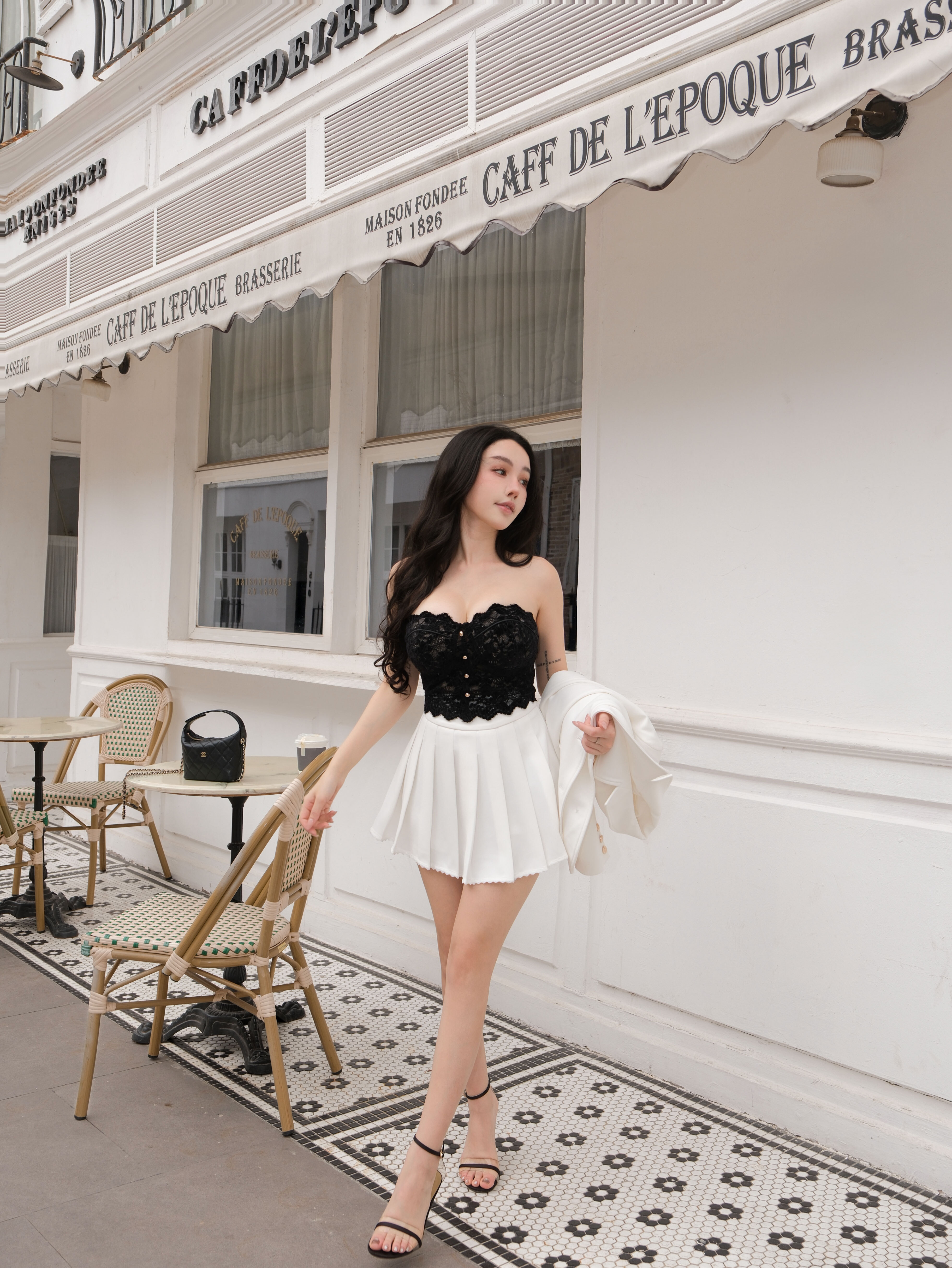 訂製-質感西裝蕾絲百褶短裙